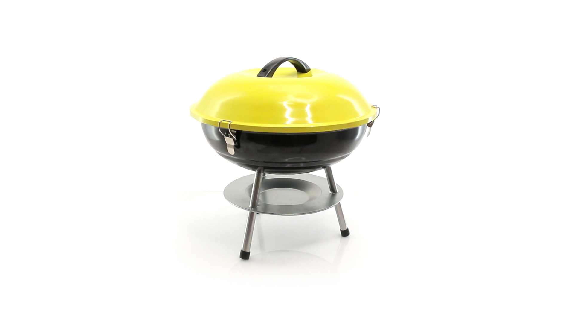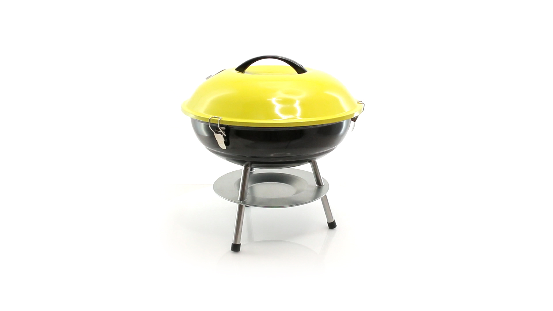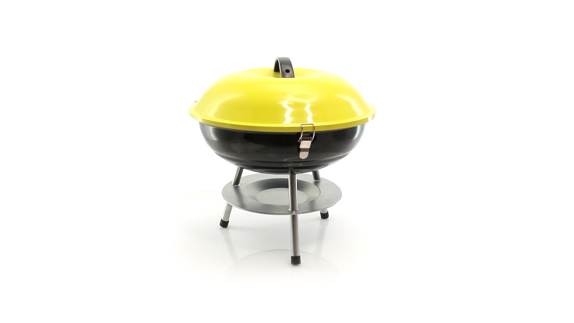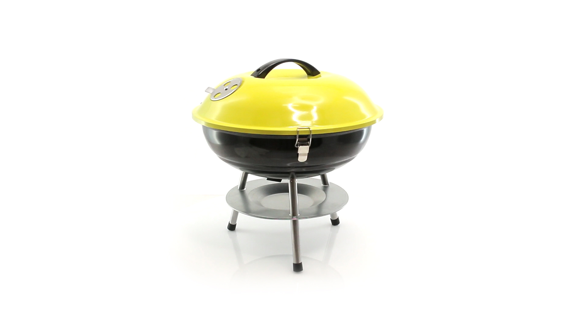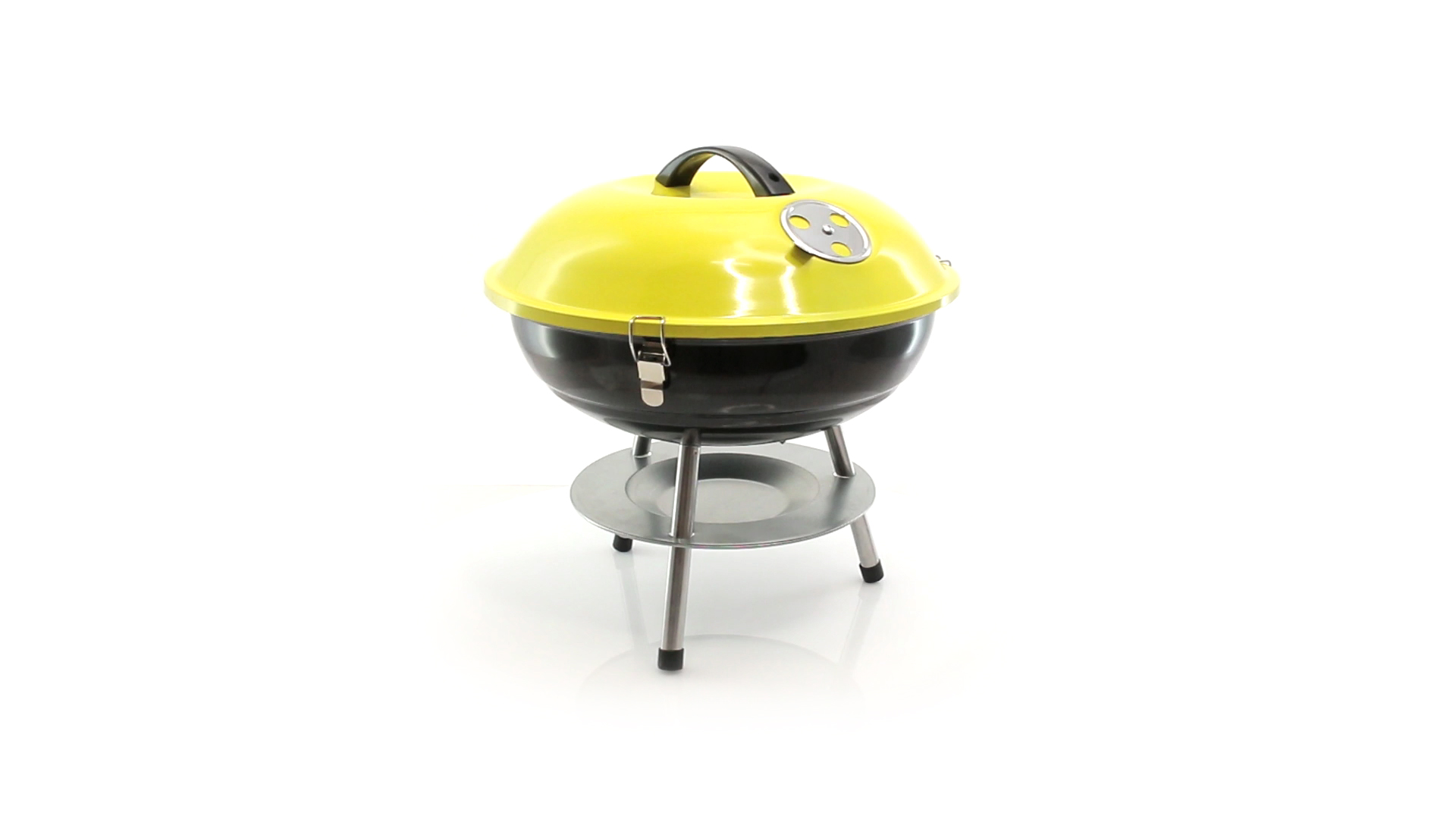 Grill aus resistentem Stahl mit schwarzer Grillschale und Deckel in lebendigen Farben mit komfortablem Griff und Lüftungsöffnungen. Zudem mit Metallrost und rutschfesten Standbeinen. Präsentiert in einer attraktiven Designbox.