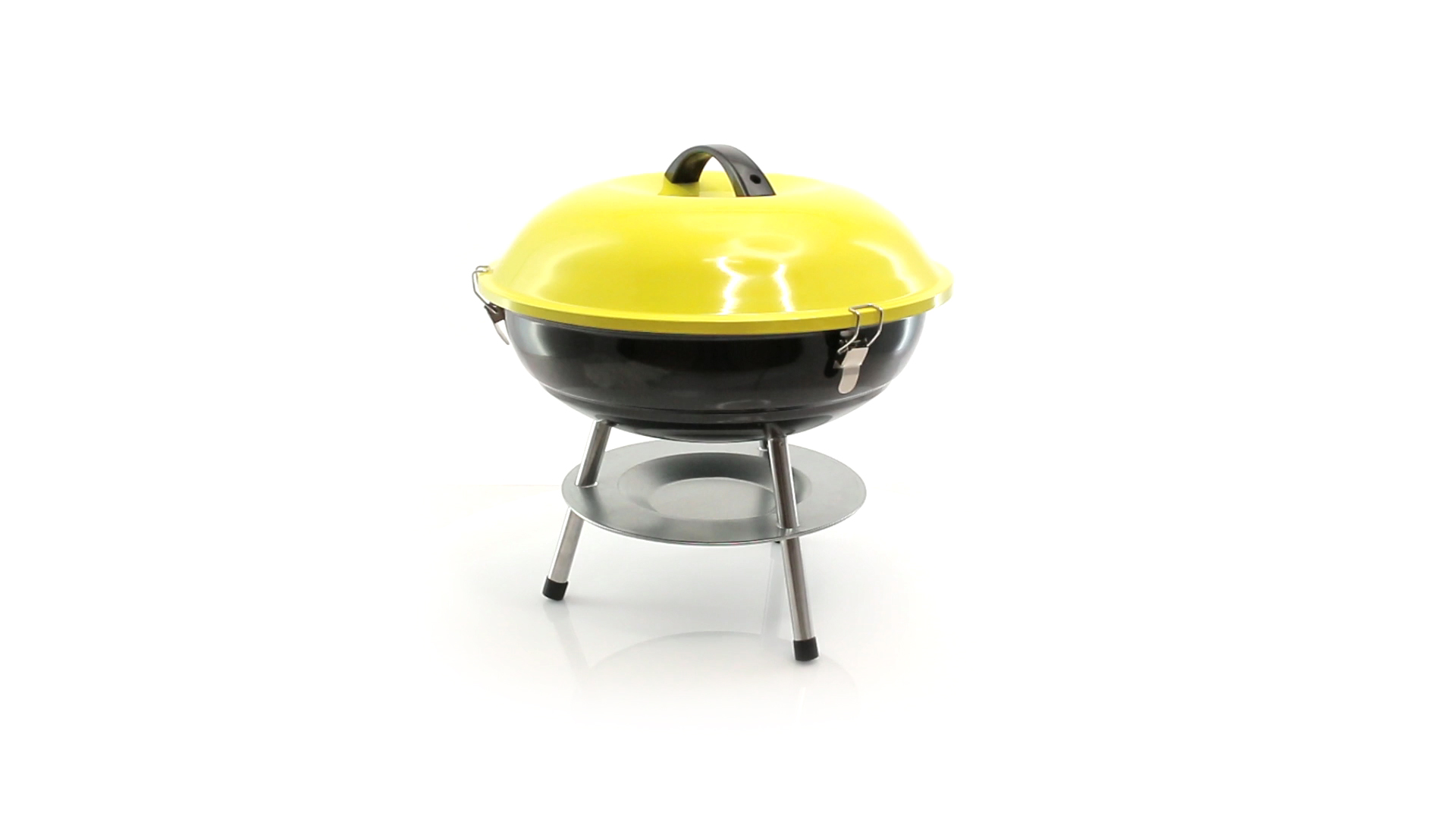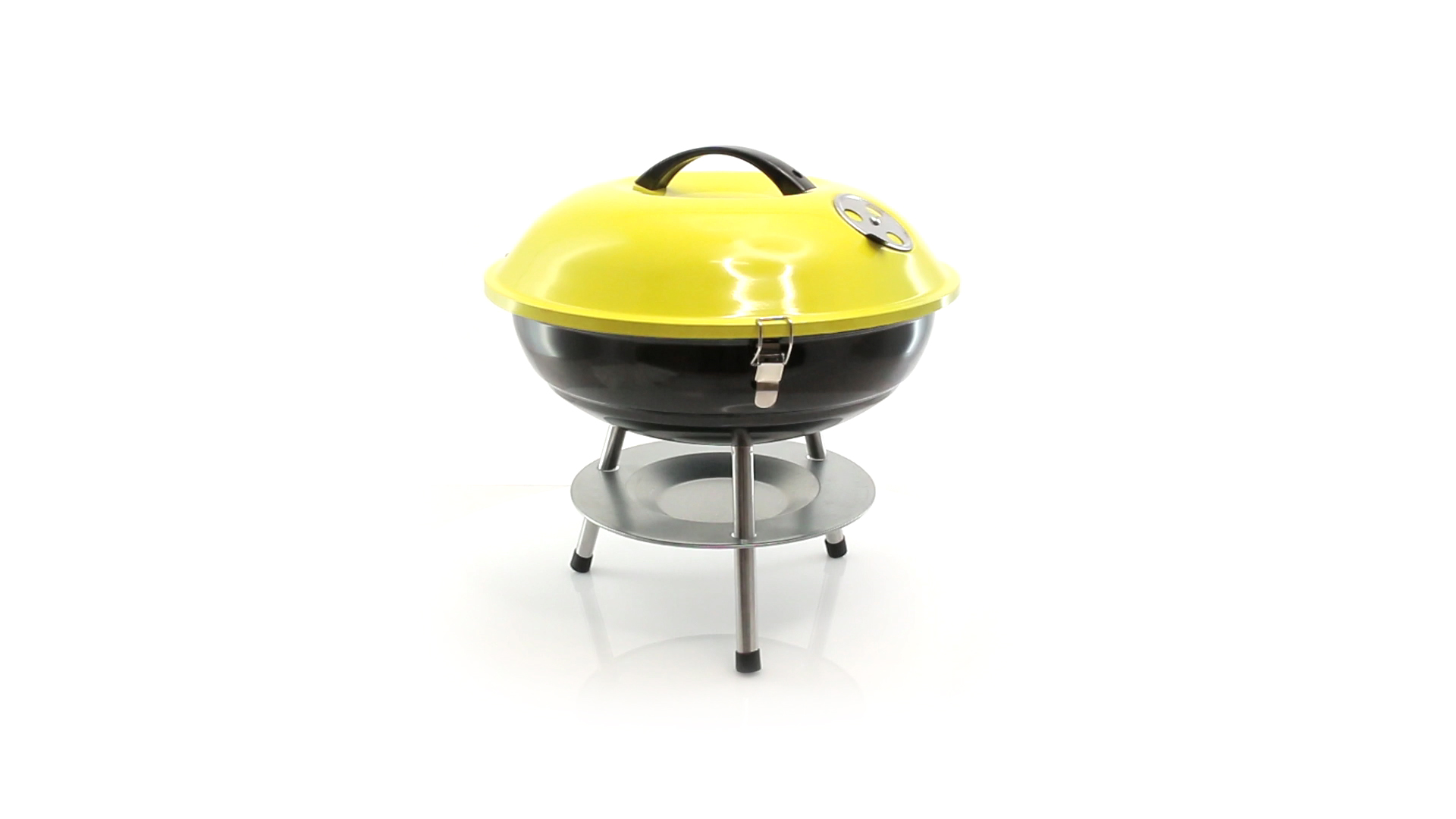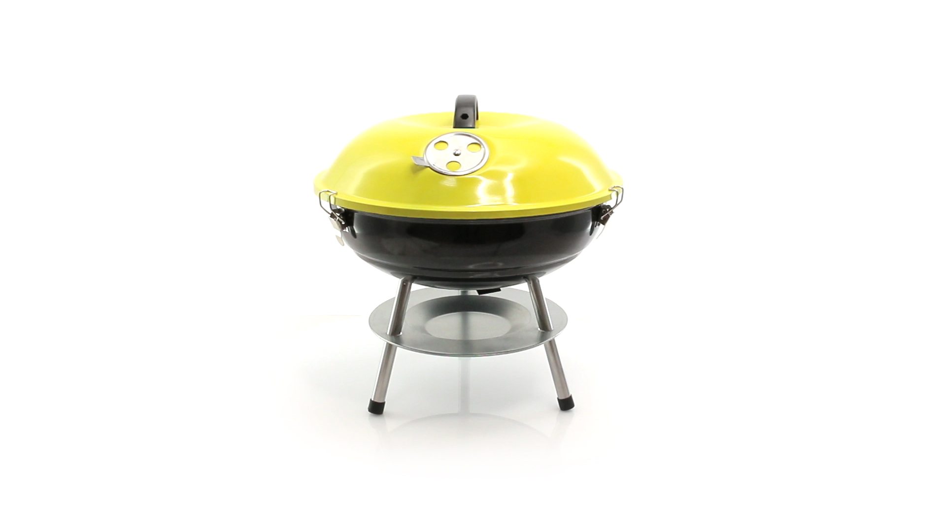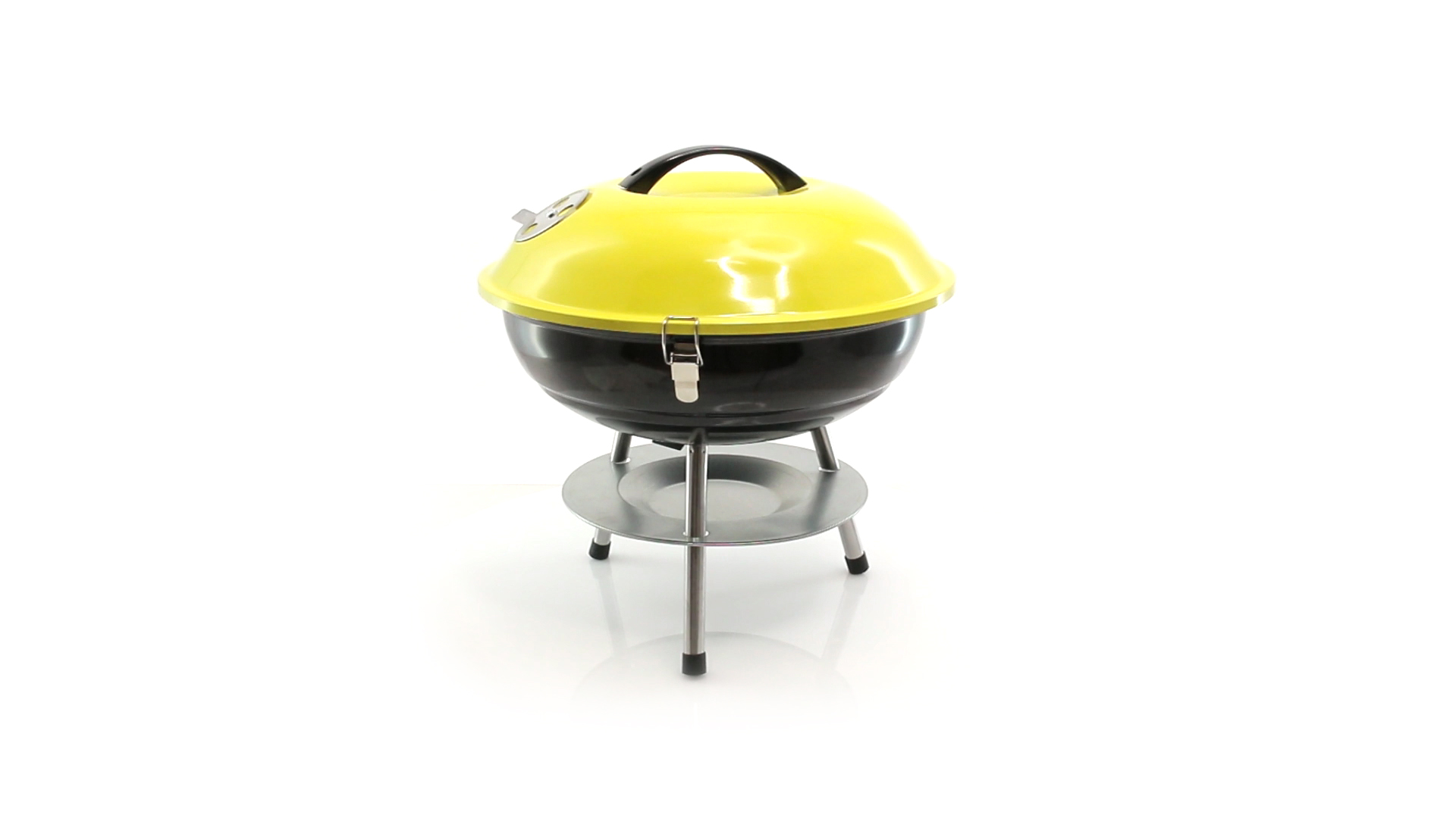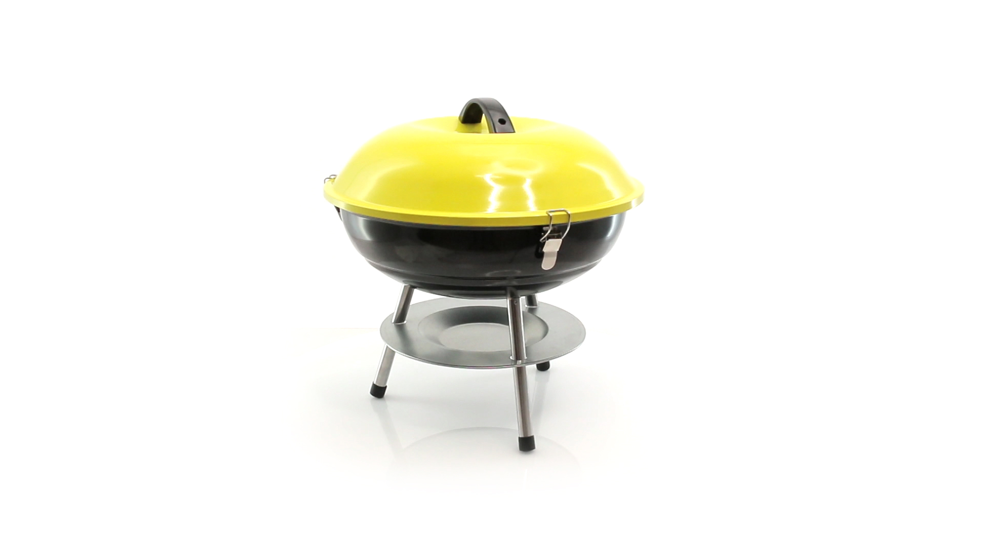 Grill aus resistentem Stahl mit schwarzer Grillschale und Deckel in lebendigen Farben mit komfortablem Griff und Lüftungsöffnungen. Zudem mit Metallrost und rutschfesten Standbeinen. Präsentiert in einer attraktiven Designbox.