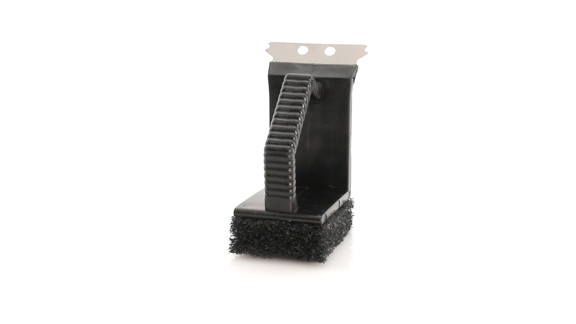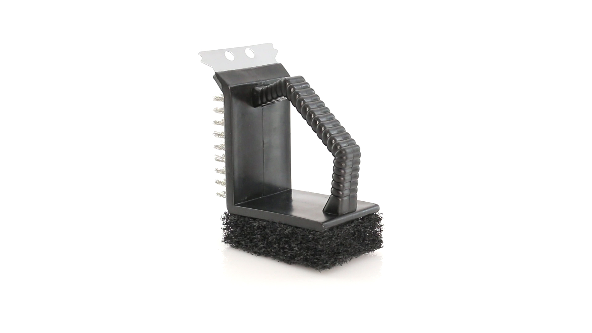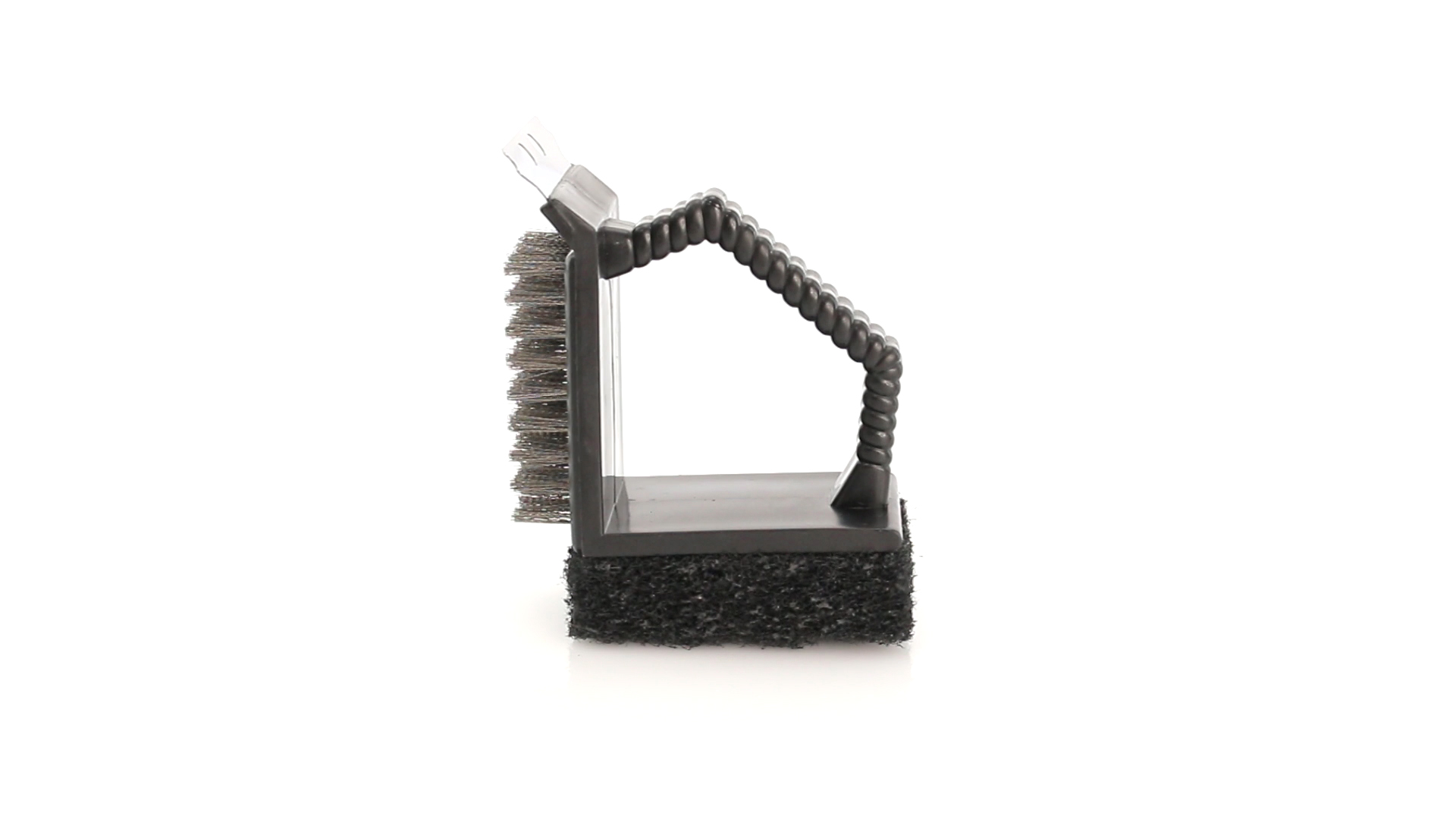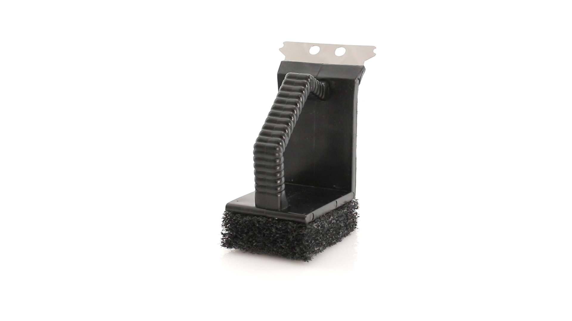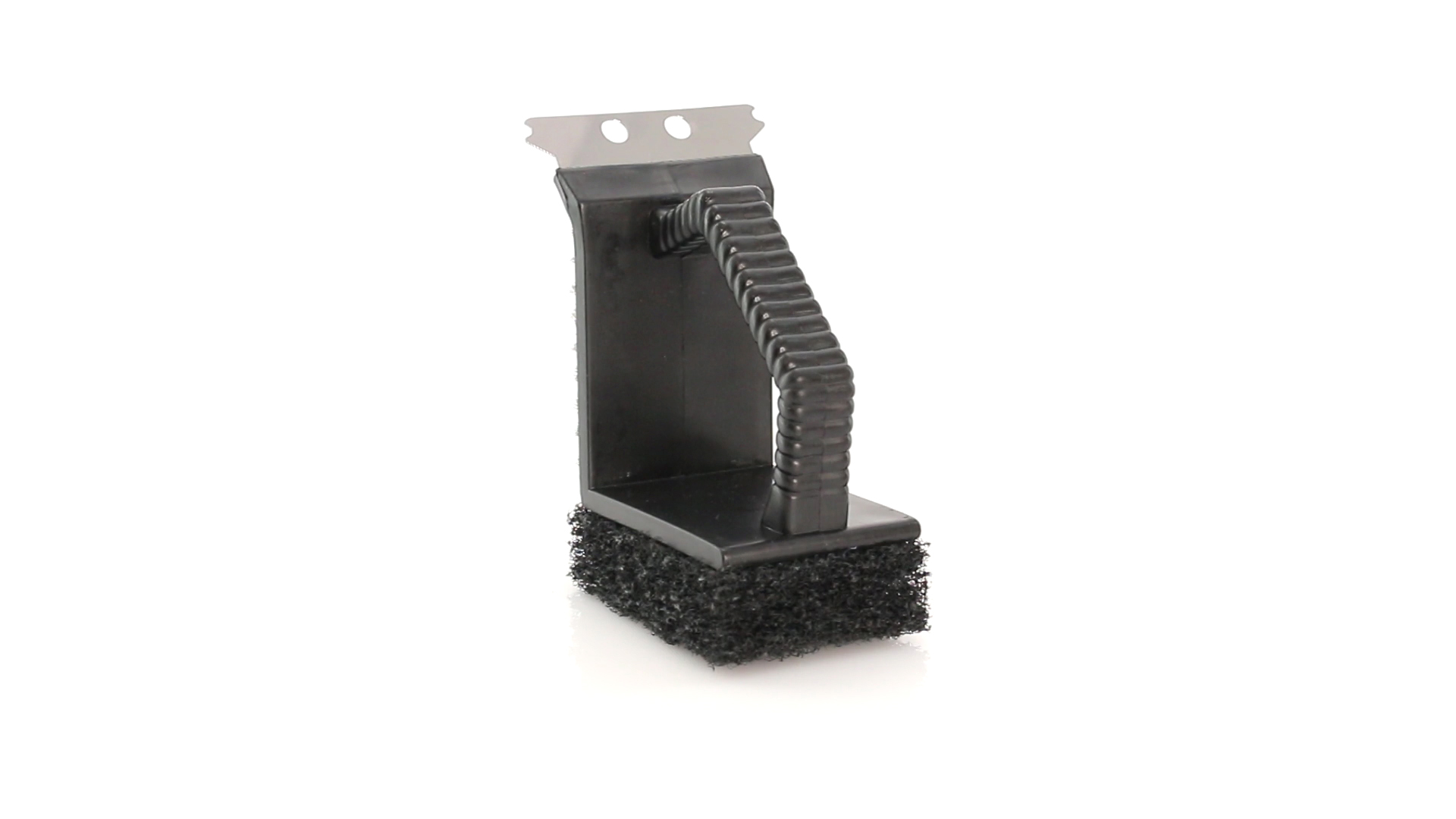 Grillreiniger mit komfortablem Griff. Enthält Edelstahlspachtel, hochresistenten Scheuerschwamm und Bürste mit Metallborsten. Präsentiert in einer individuellen Box in Silber.
