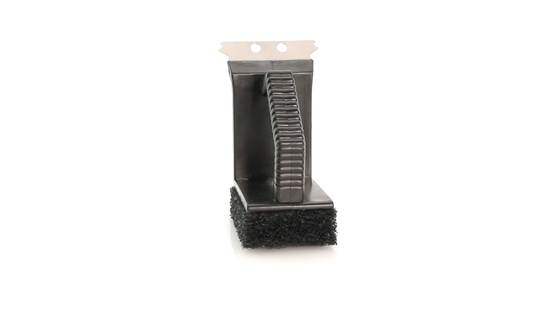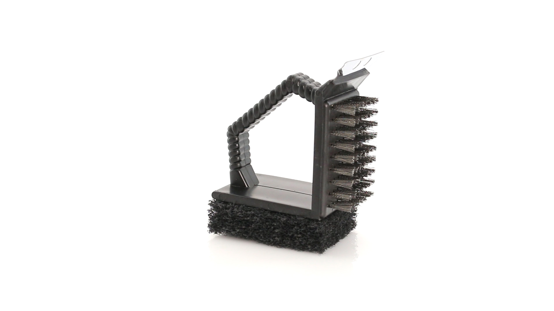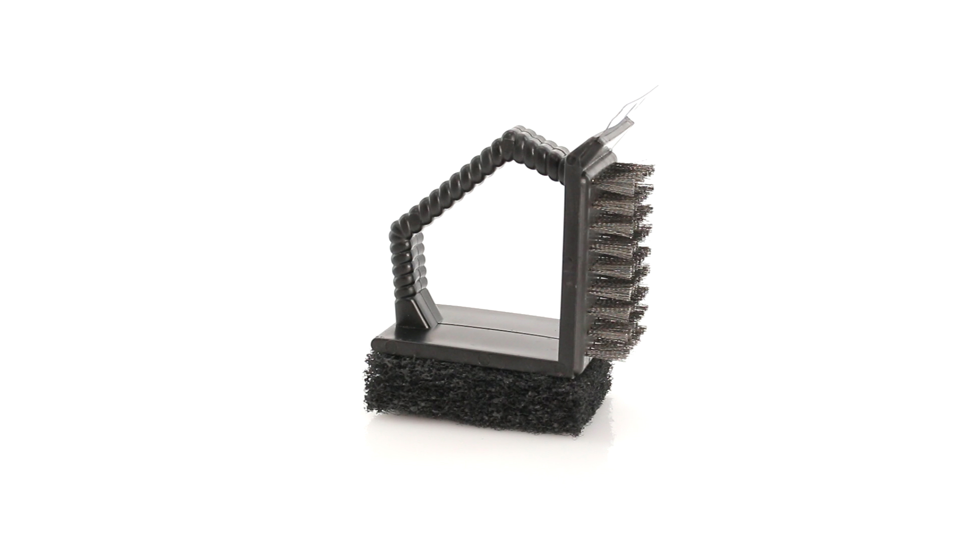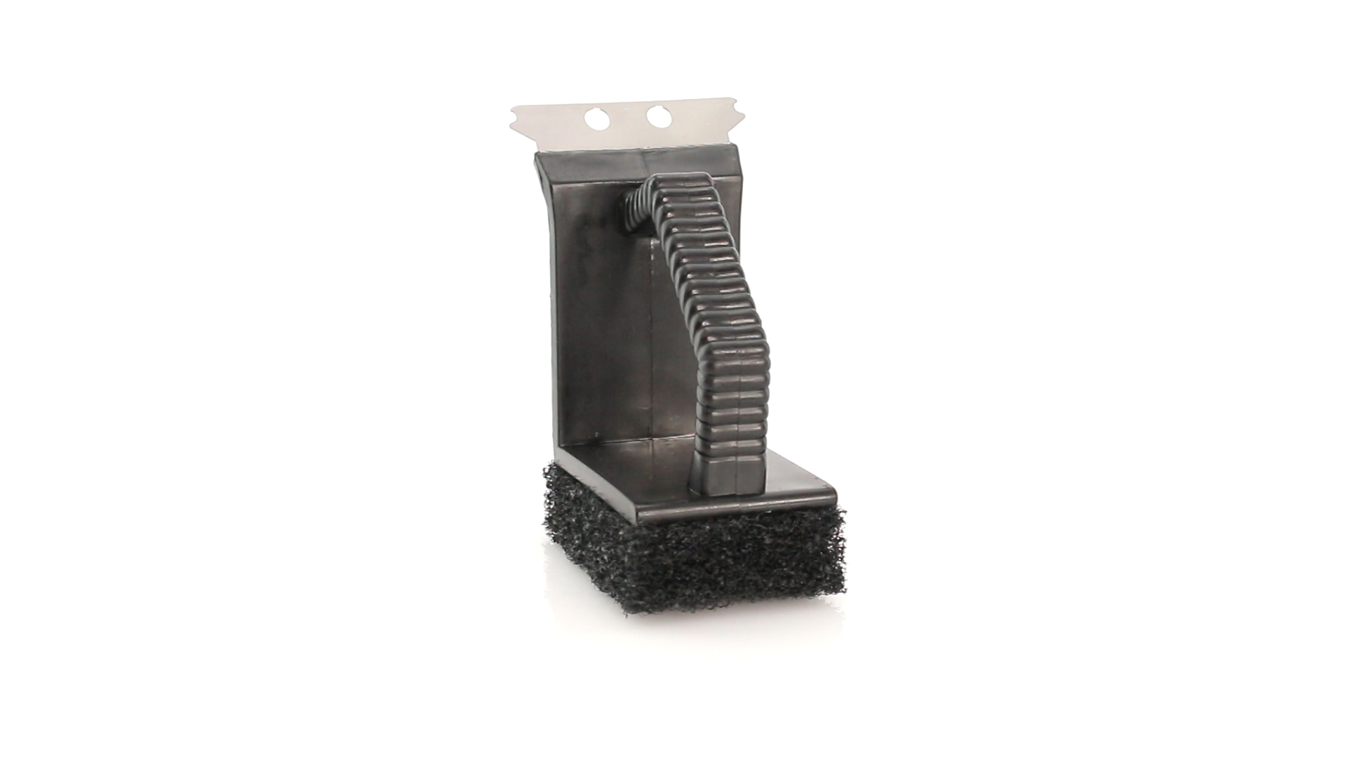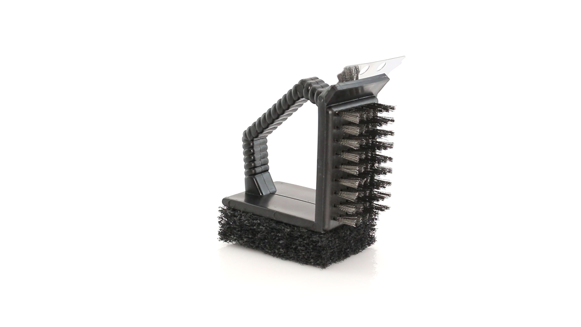 Grillreiniger mit komfortablem Griff. Enthält Edelstahlspachtel, hochresistenten Scheuerschwamm und Bürste mit Metallborsten. Präsentiert in einer individuellen Box in Silber.