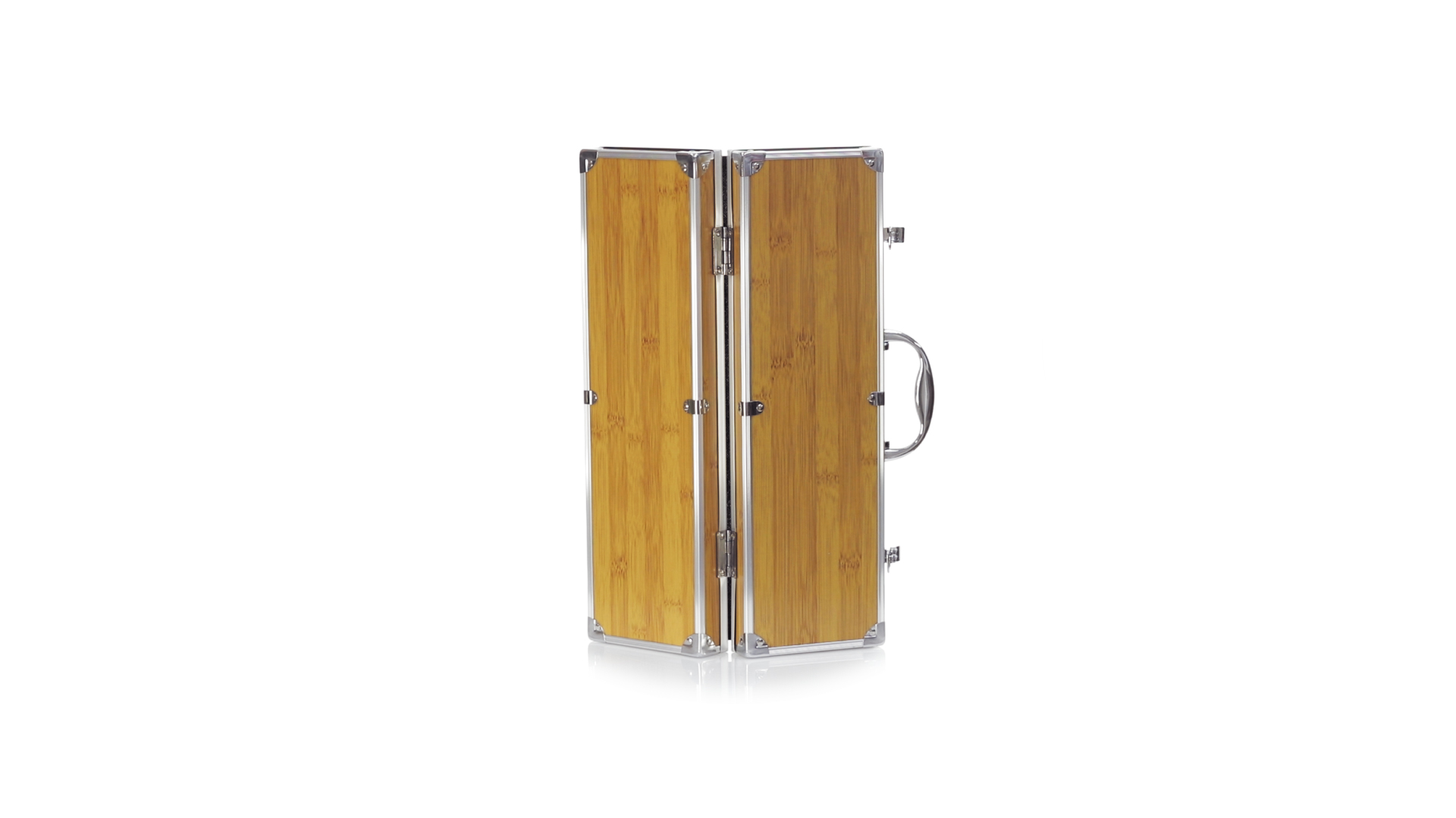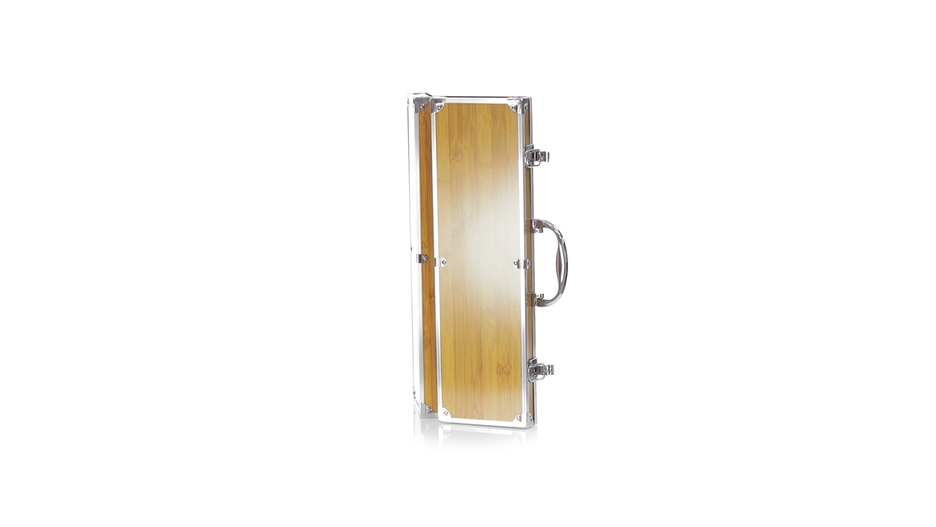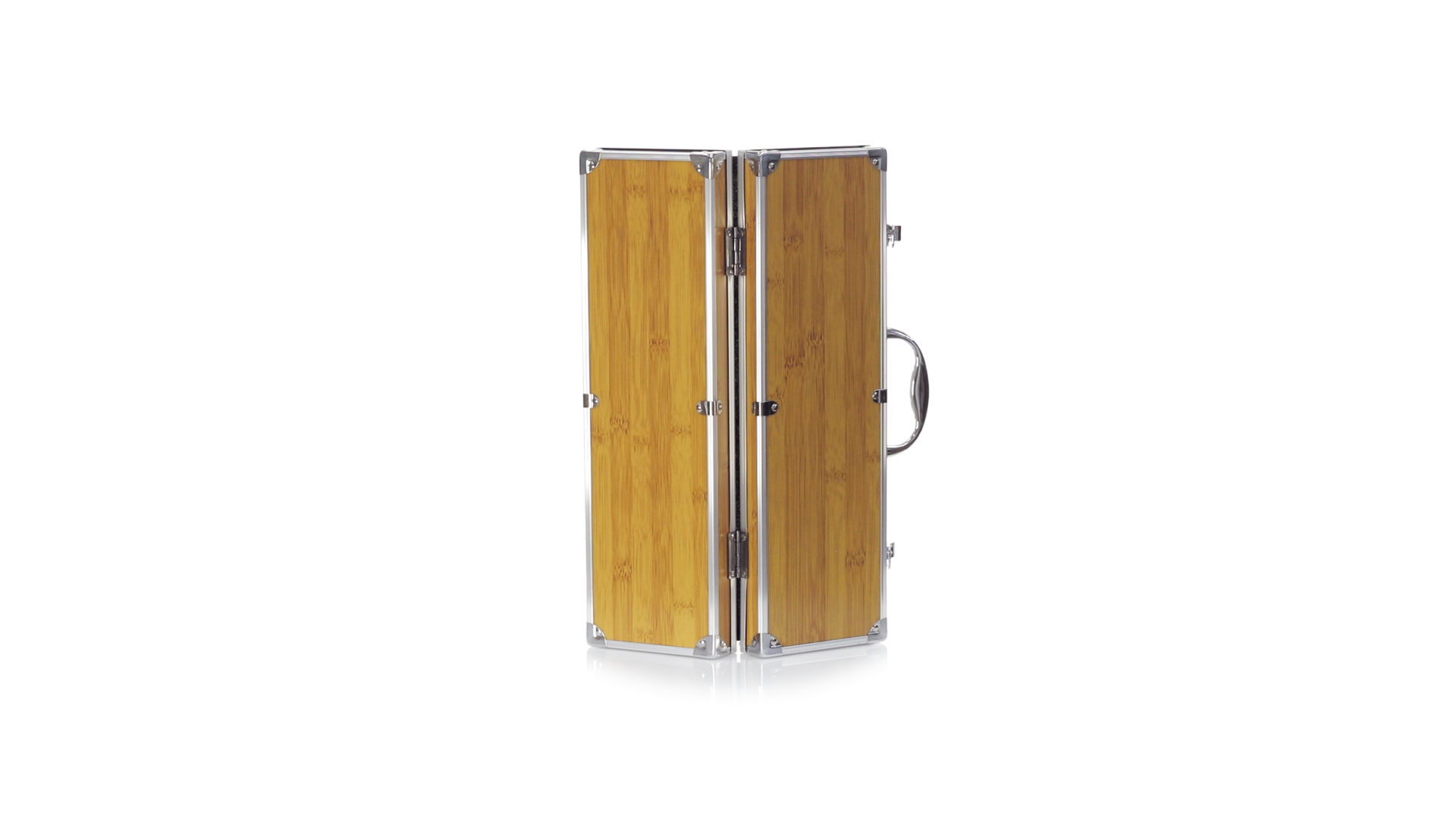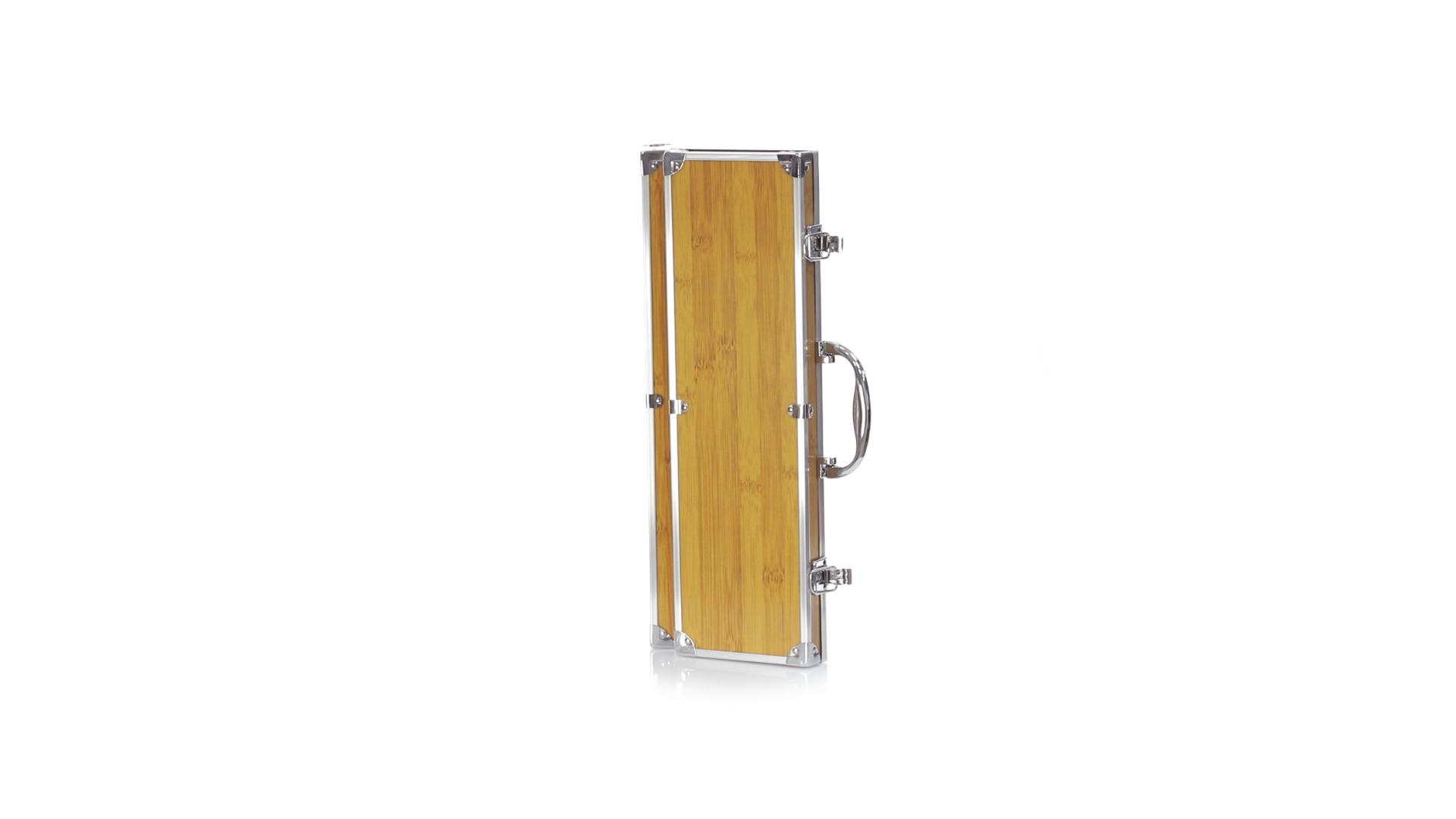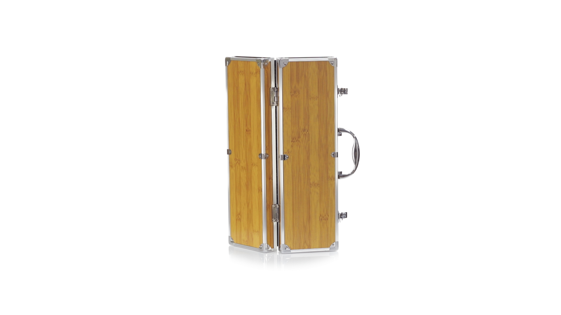 Grillset der Liene "Natur" und 3 Zubehörteile aus Metall mit Bambusgriff. Inklusive Kelle mit Öffner, Schnitzer und Pinzette. Präsentiert in einem imitierten Bambusgehäuse mit Metalloberflächen. Präsentiert in einer attraktiven Einzelbox im Öko-Design.