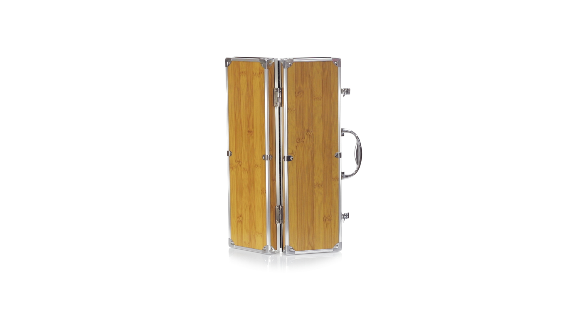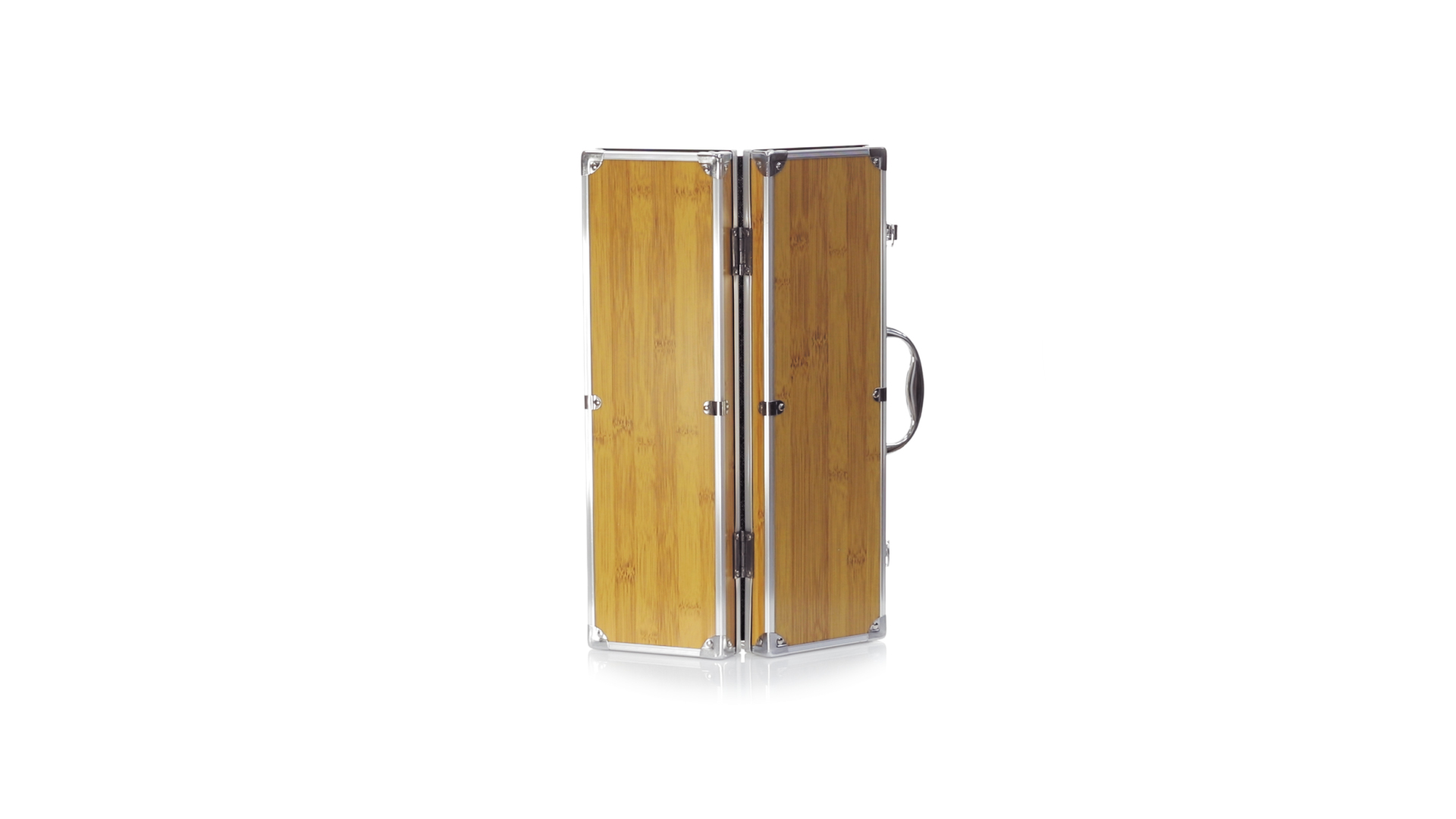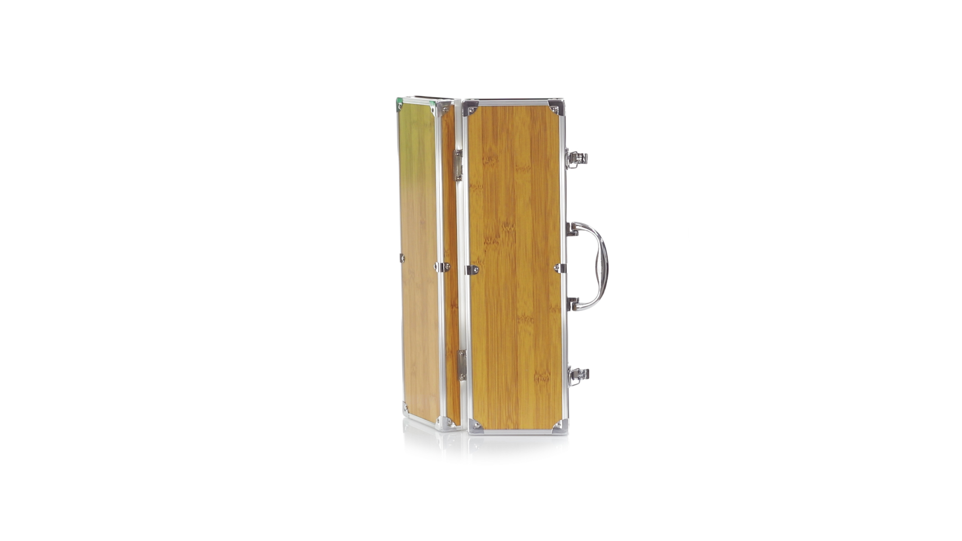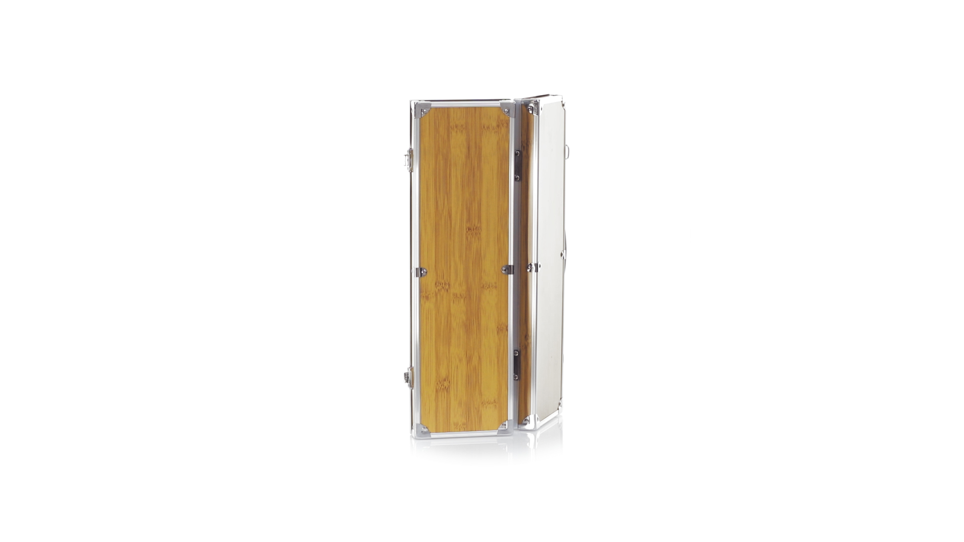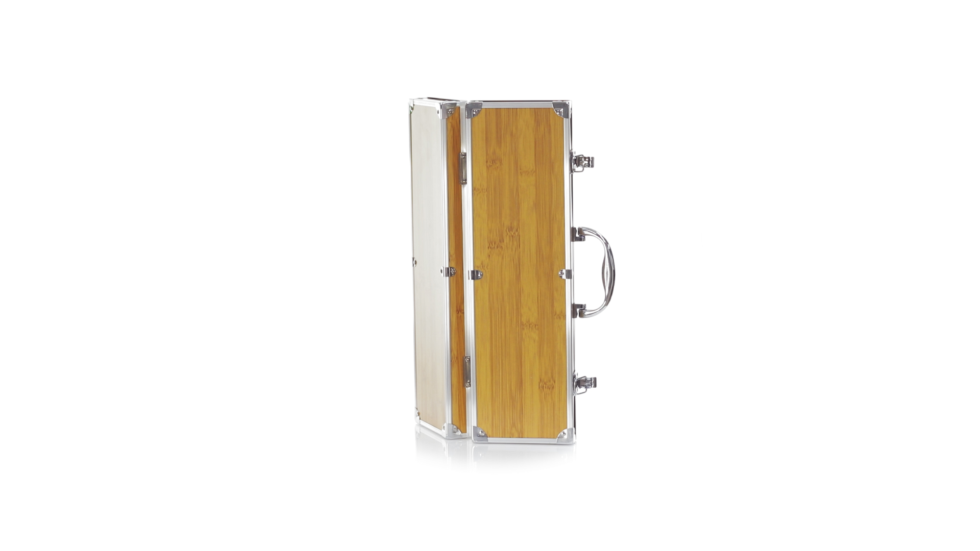 Grillset der Liene "Natur" und 3 Zubehörteile aus Metall mit Bambusgriff. Inklusive Kelle mit Öffner, Schnitzer und Pinzette. Präsentiert in einem imitierten Bambusgehäuse mit Metalloberflächen. Präsentiert in einer attraktiven Einzelbox im Öko-Design.