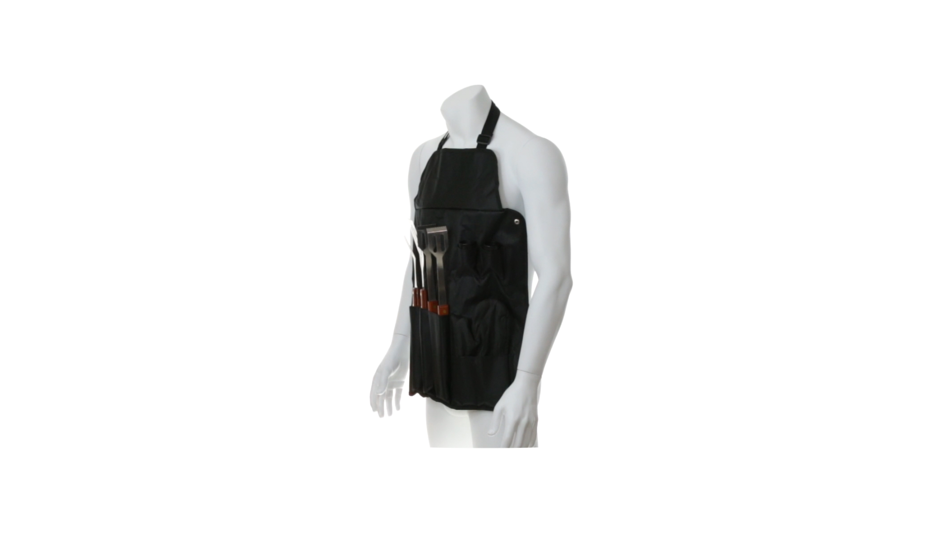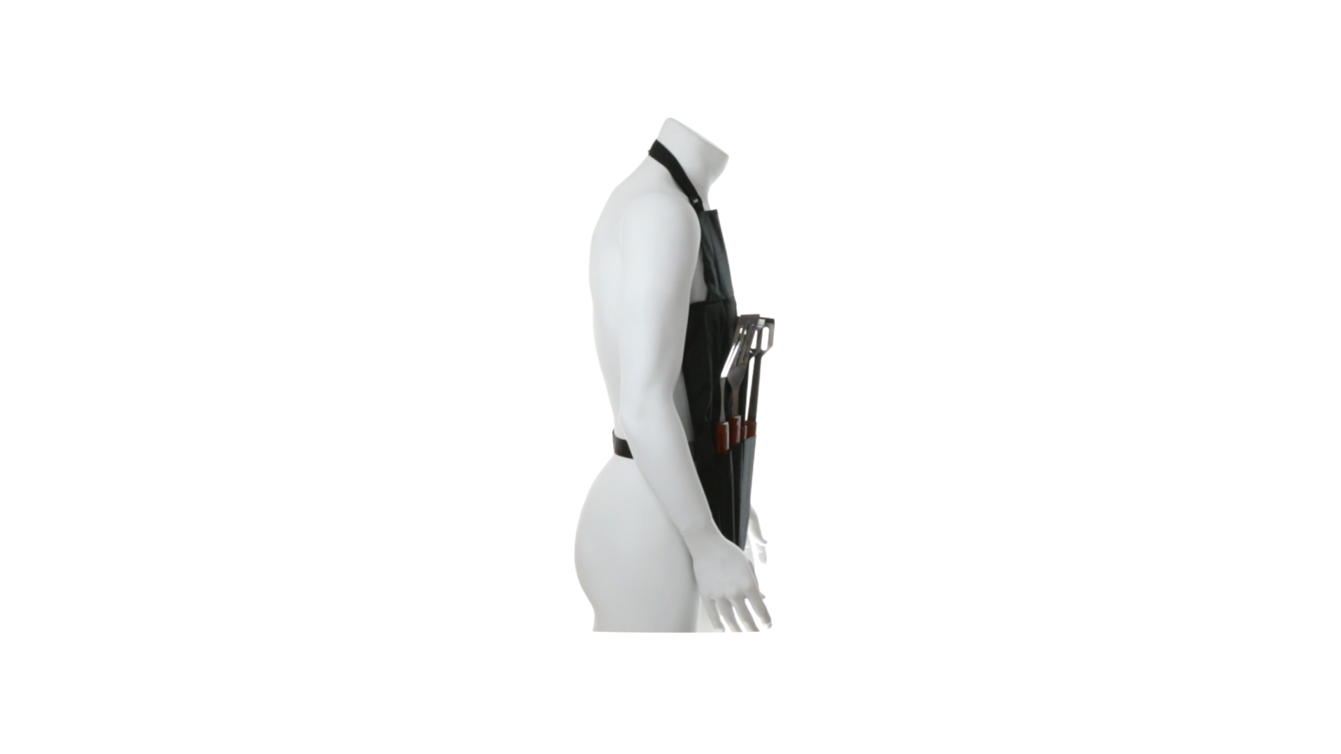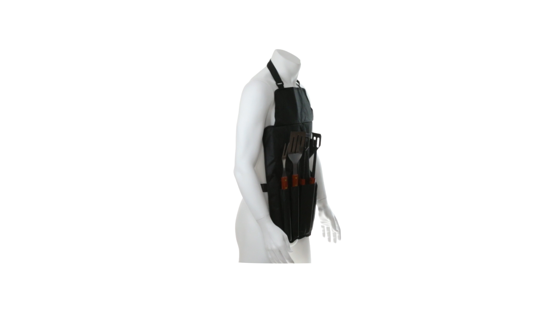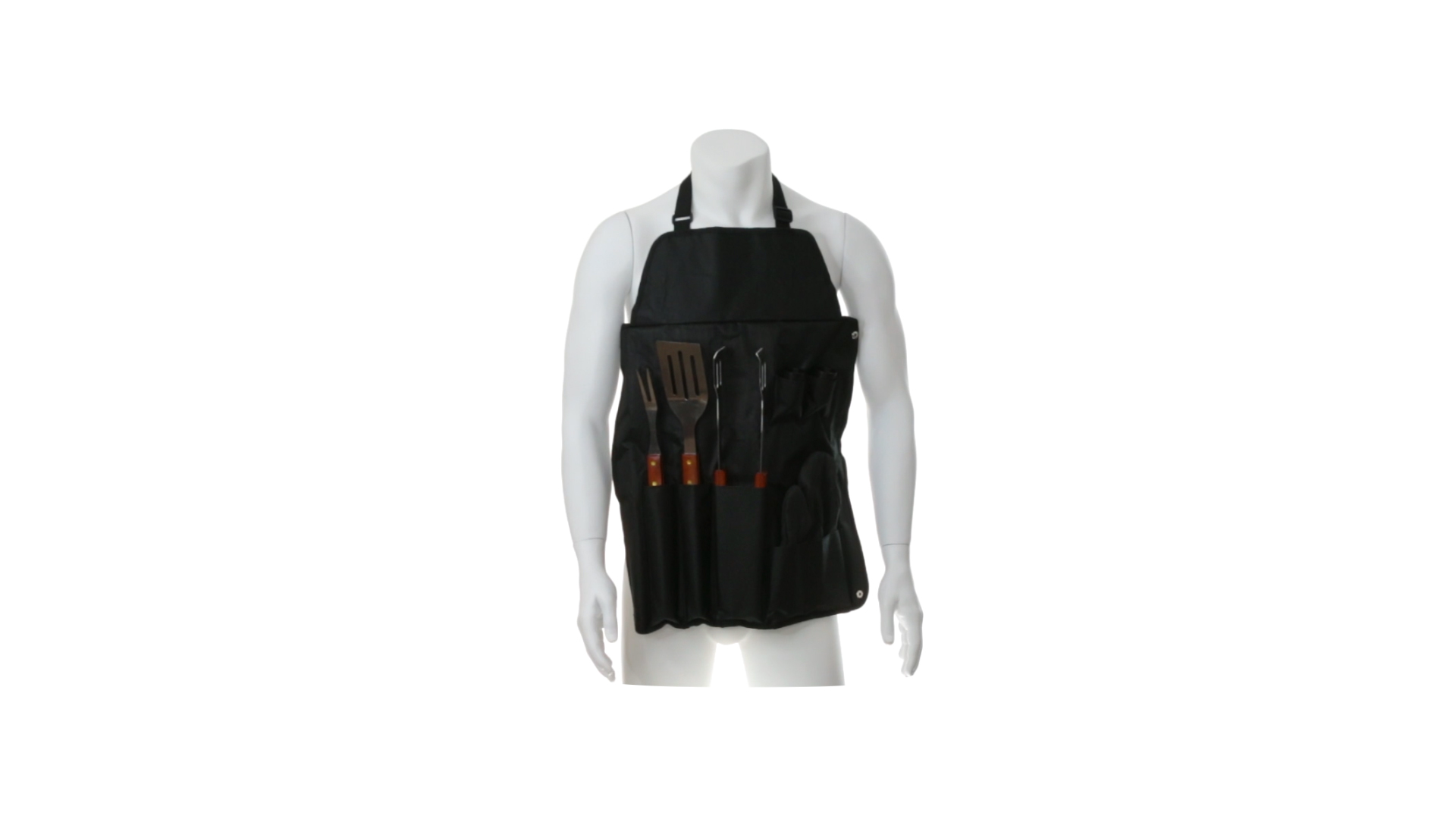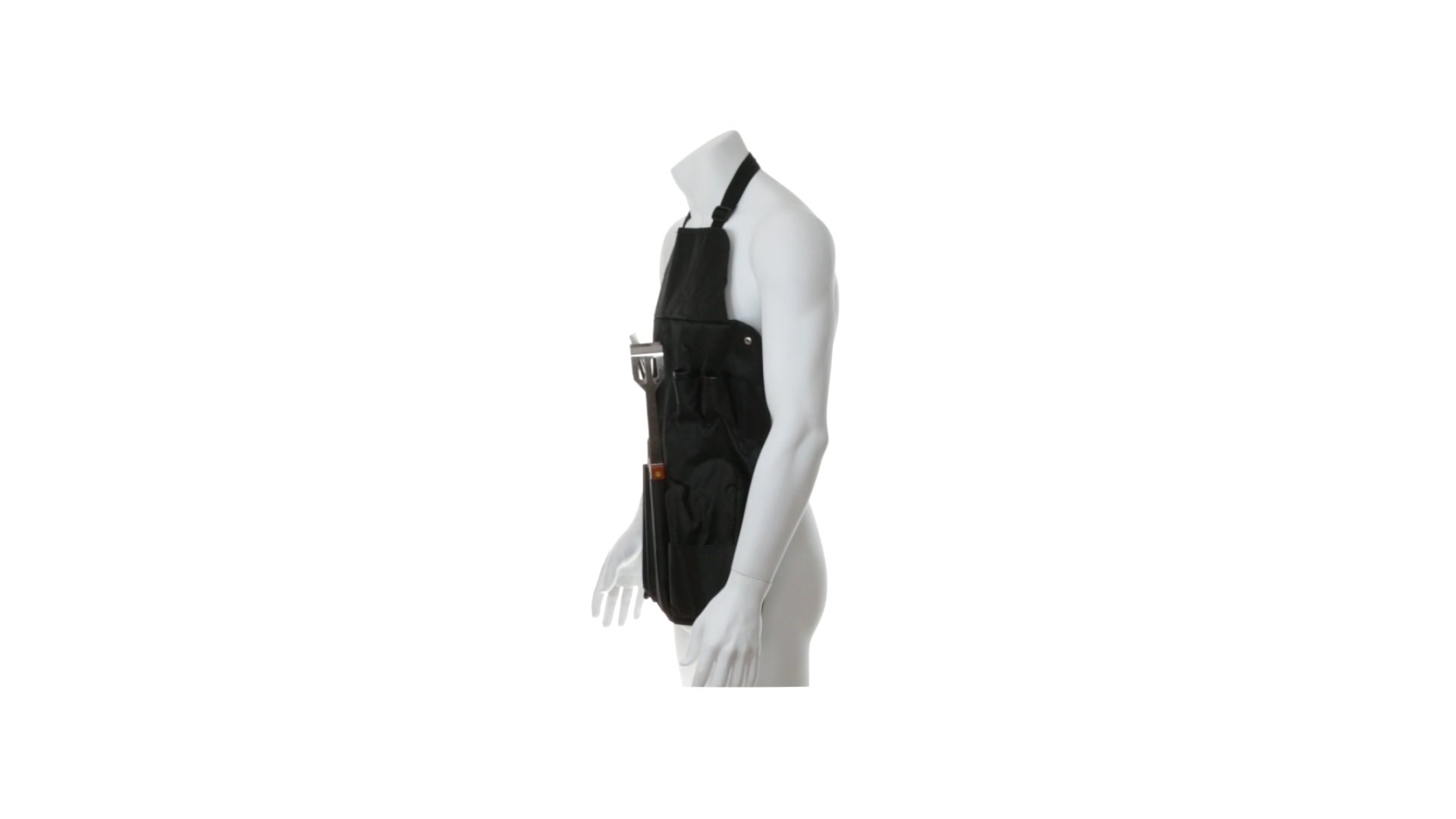7-teiliges Grill-Set mit Wender, Fleischgabel und Zange aus Edelstahl mit Holzgriff sowie gepolsterten Handschuhen und Salz- und Pfefferstreuer. Präsentiert in einem robusten 600D Polyester-Etui in Schwarz mit Metallknopfverschluss. Mit verstellbarem Tragegurt aus robustem Nylon mit Klickverschluss.