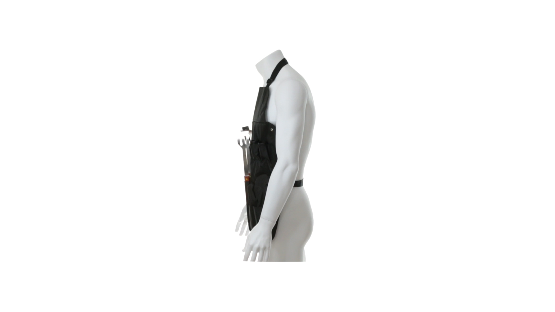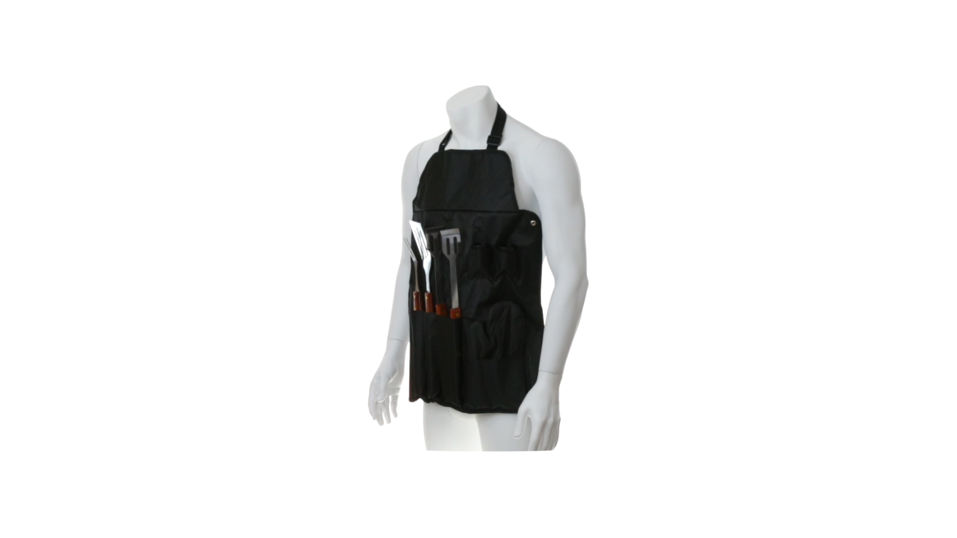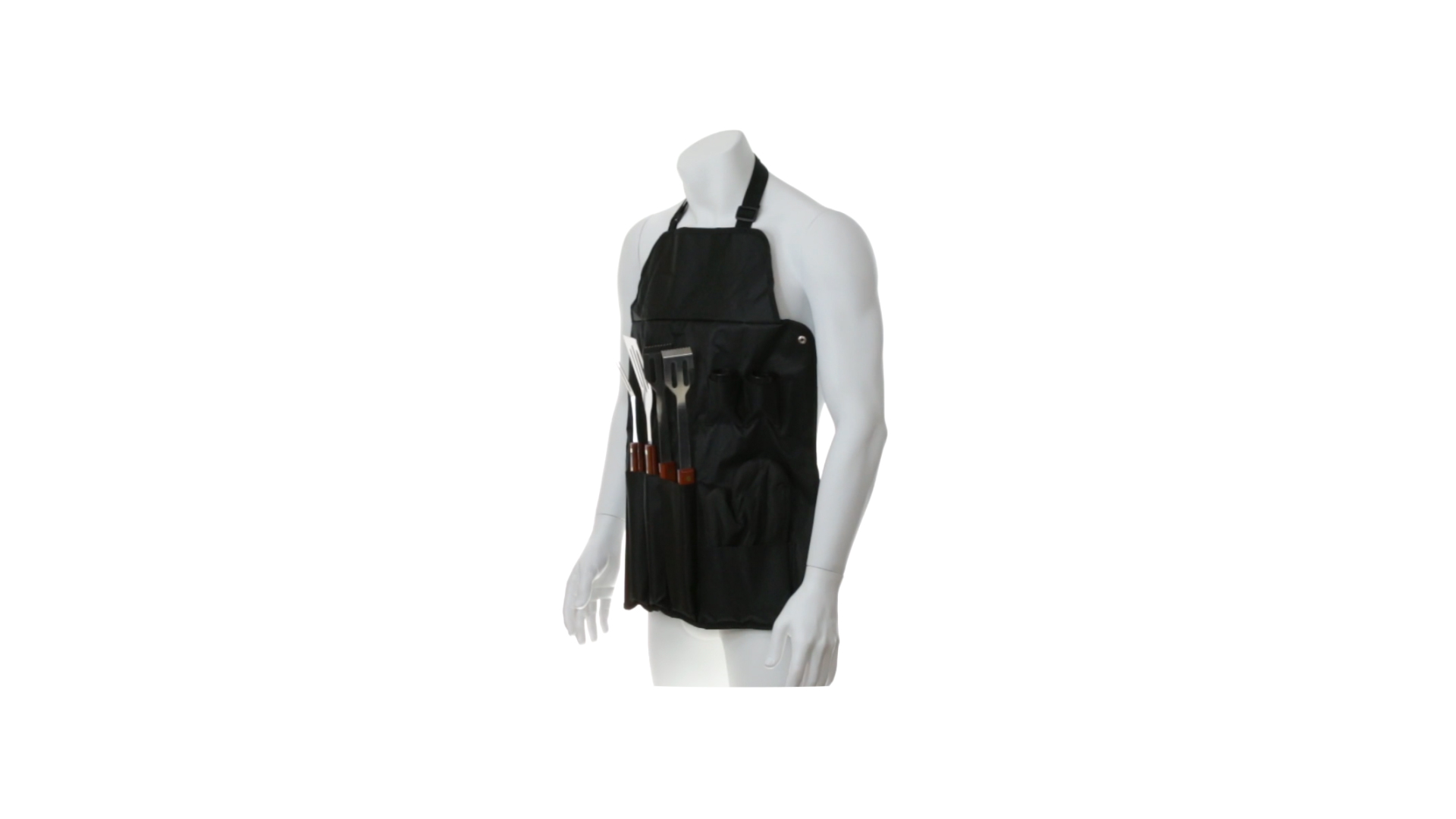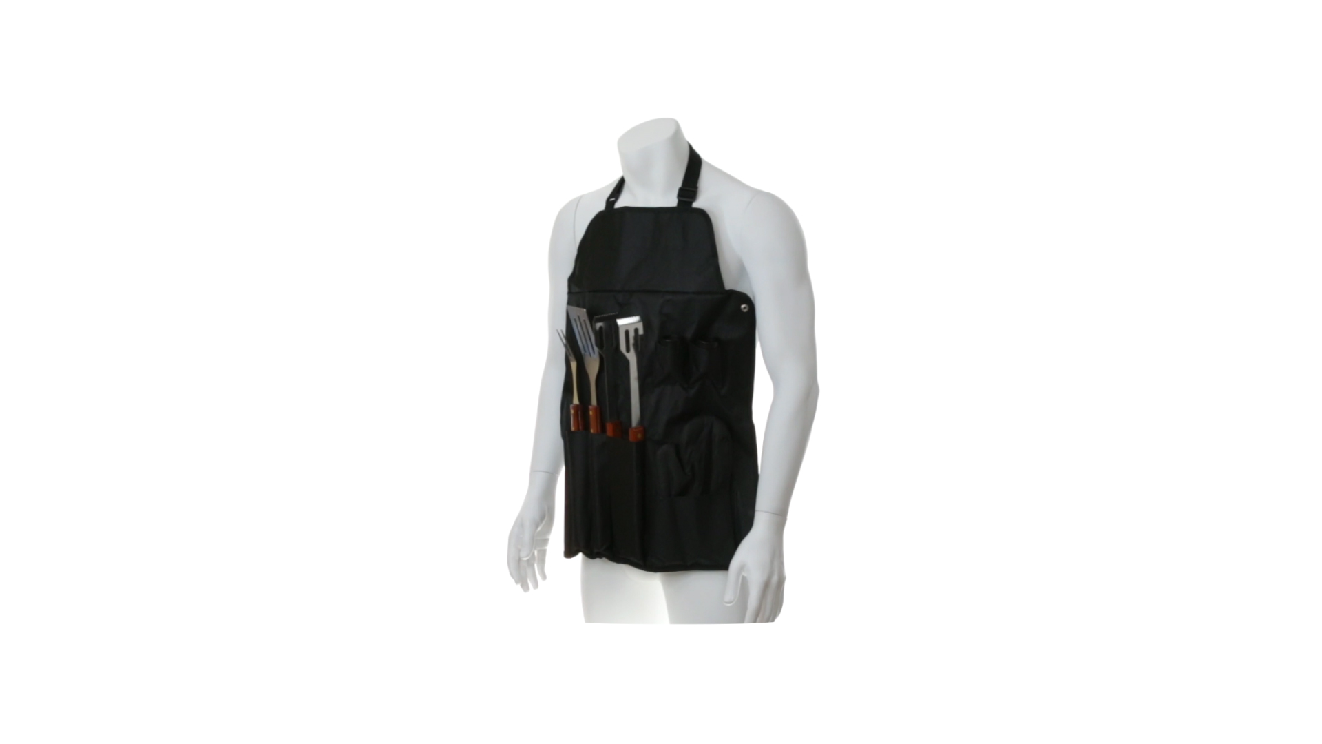 7-teiliges Grill-Set mit Wender, Fleischgabel und Zange aus Edelstahl mit Holzgriff sowie gepolsterten Handschuhen und Salz- und Pfefferstreuer. Präsentiert in einem robusten 600D Polyester-Etui in Schwarz mit Metallknopfverschluss. Mit verstellbarem Tragegurt aus robustem Nylon mit Klickverschluss.