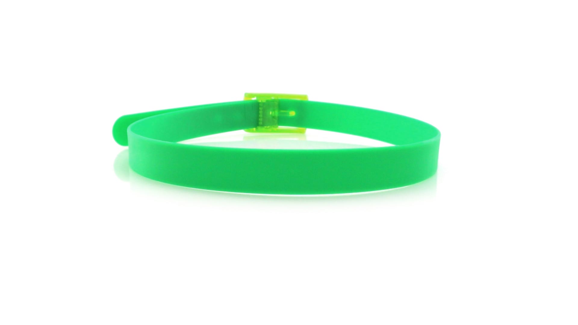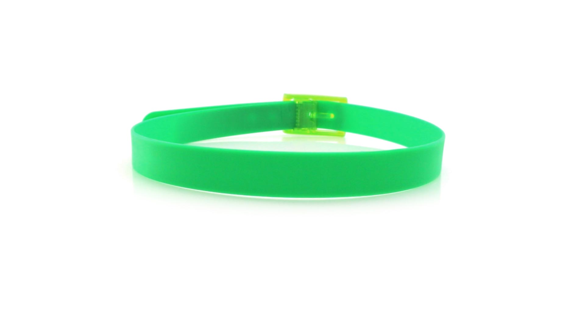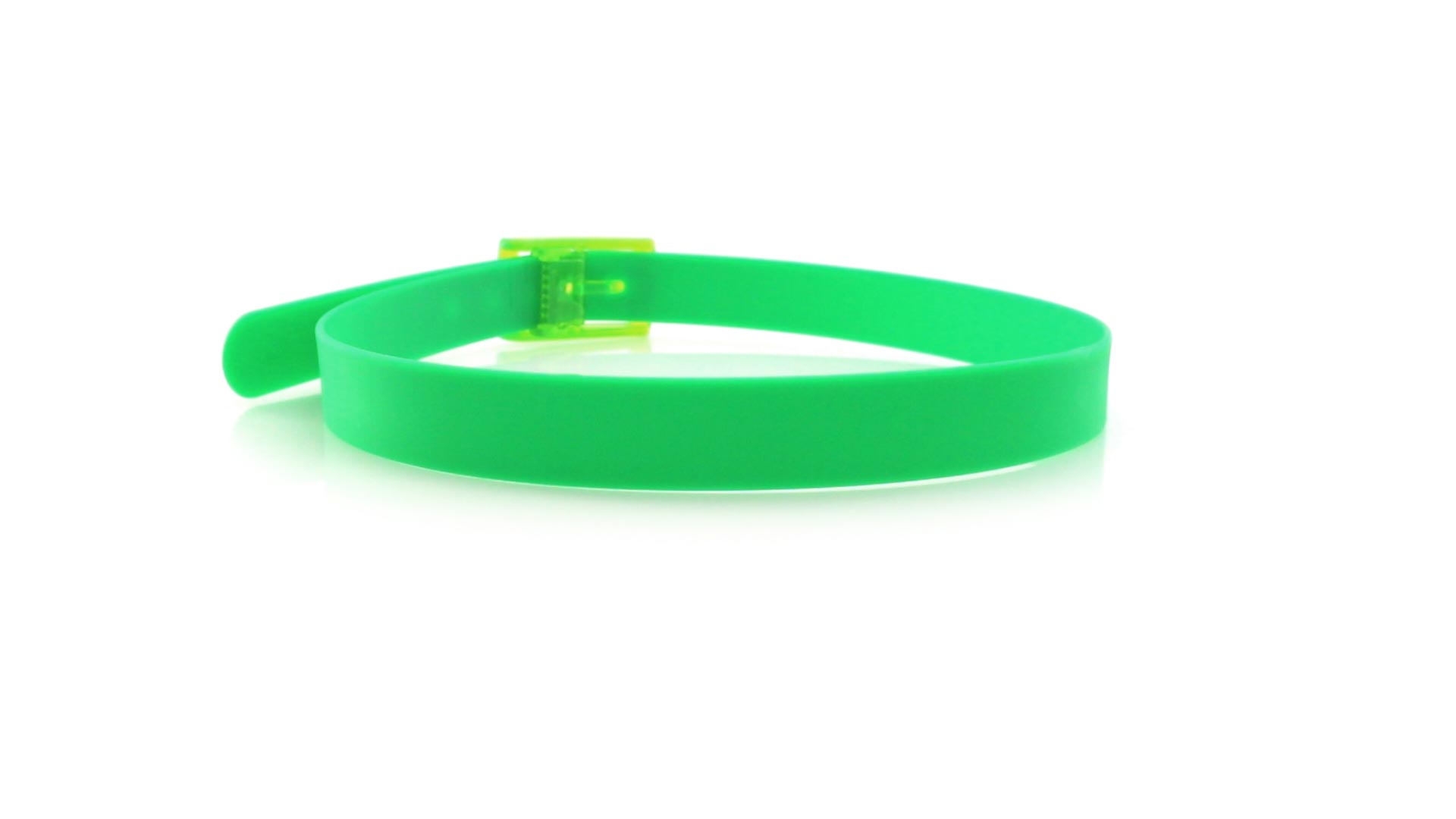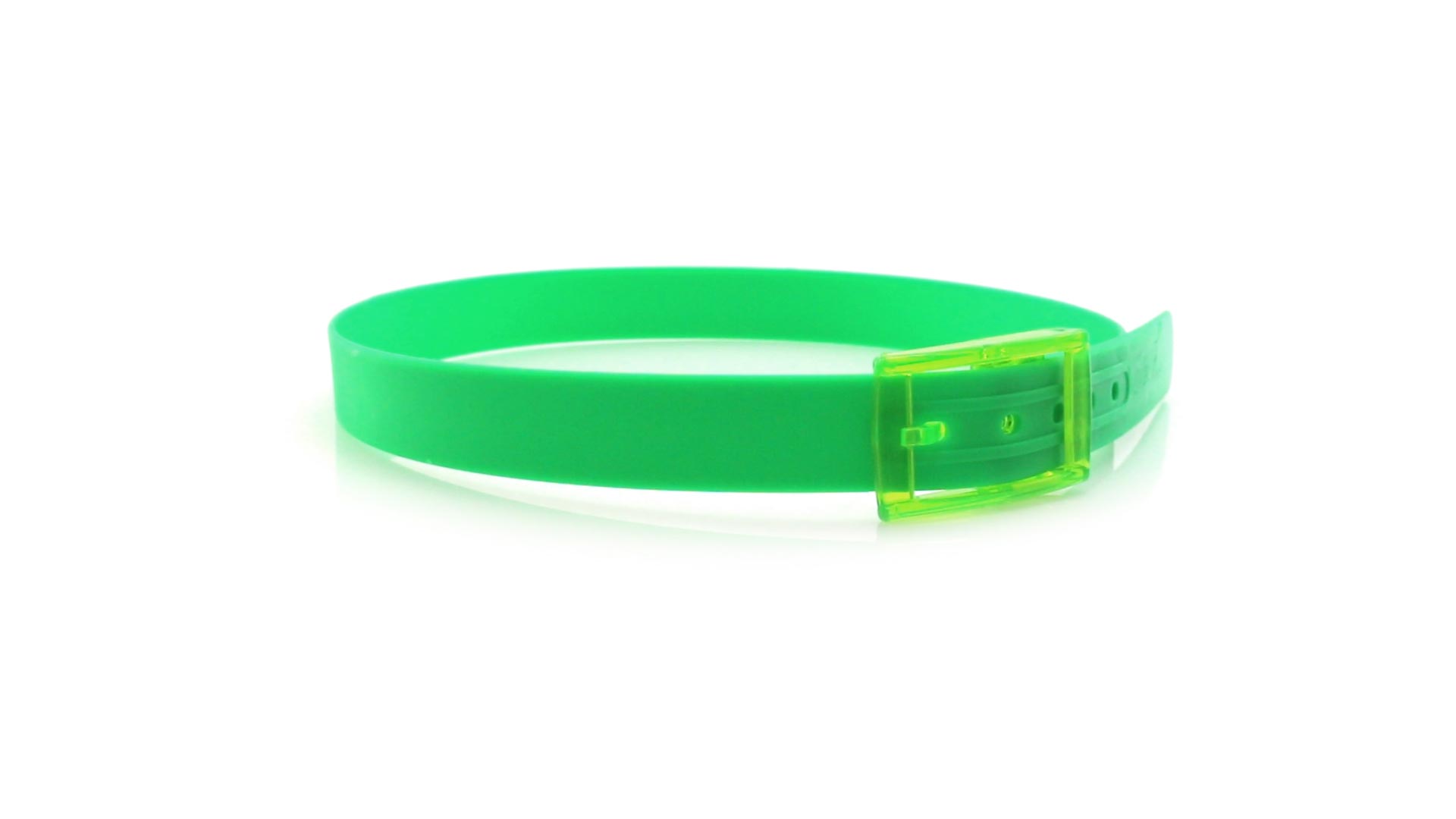 Auffälliger Gürtel aus weichem Silikon, 117 cm lang. Mit farblich passender, transparenter Abschlussschnalle. Erhältlich in einer grossen Auswahl an leuchtenden Farben.