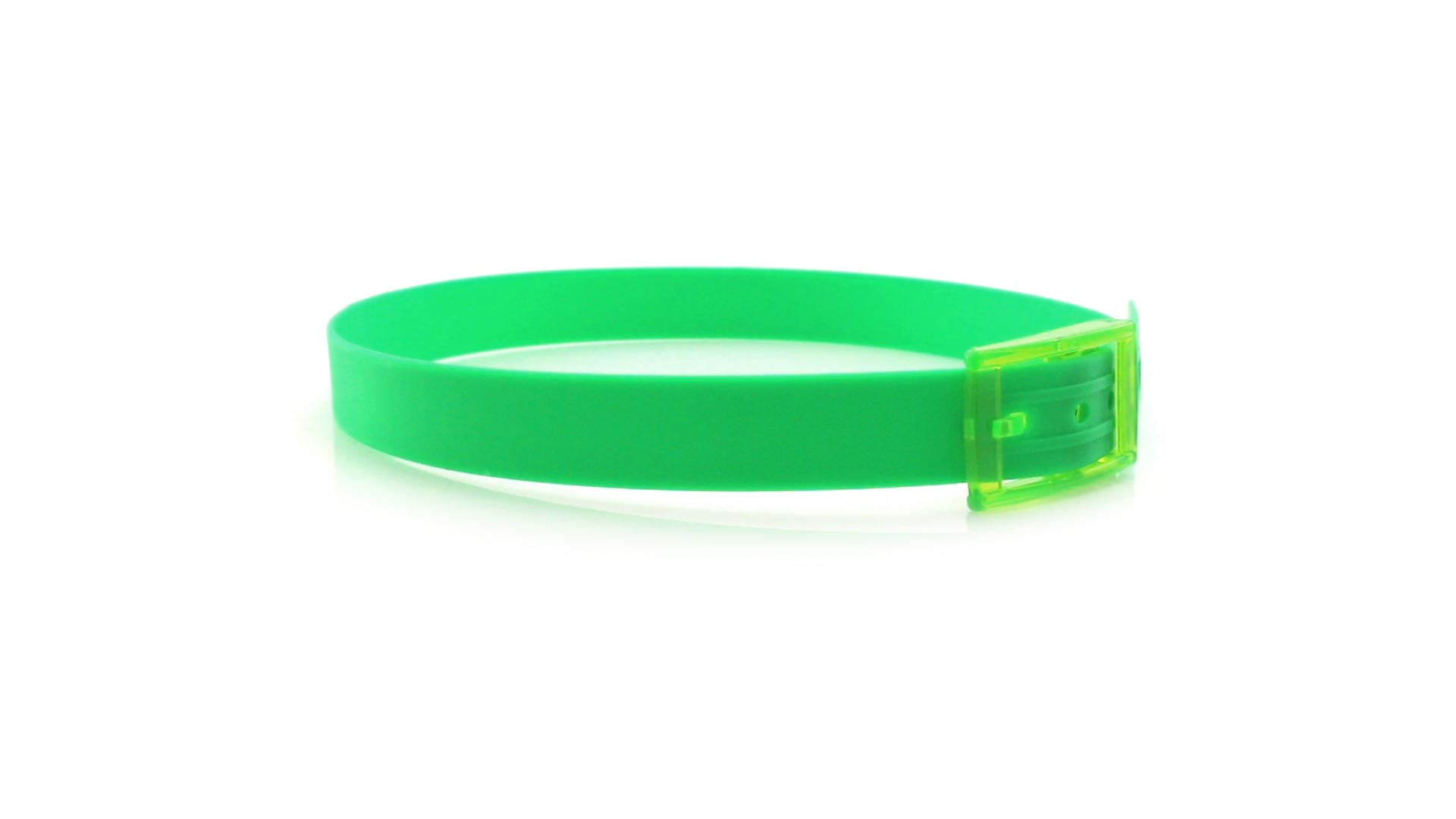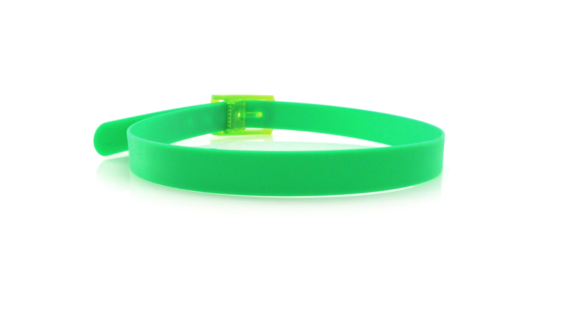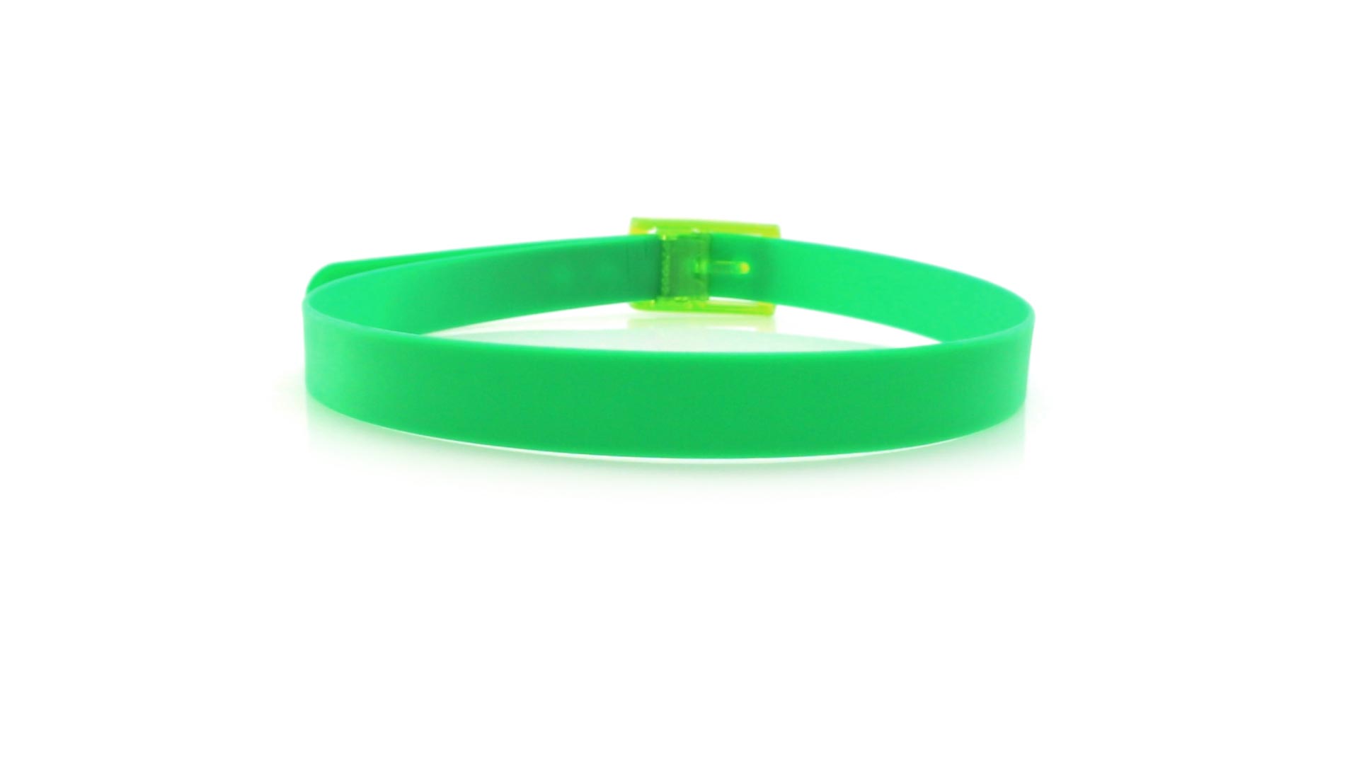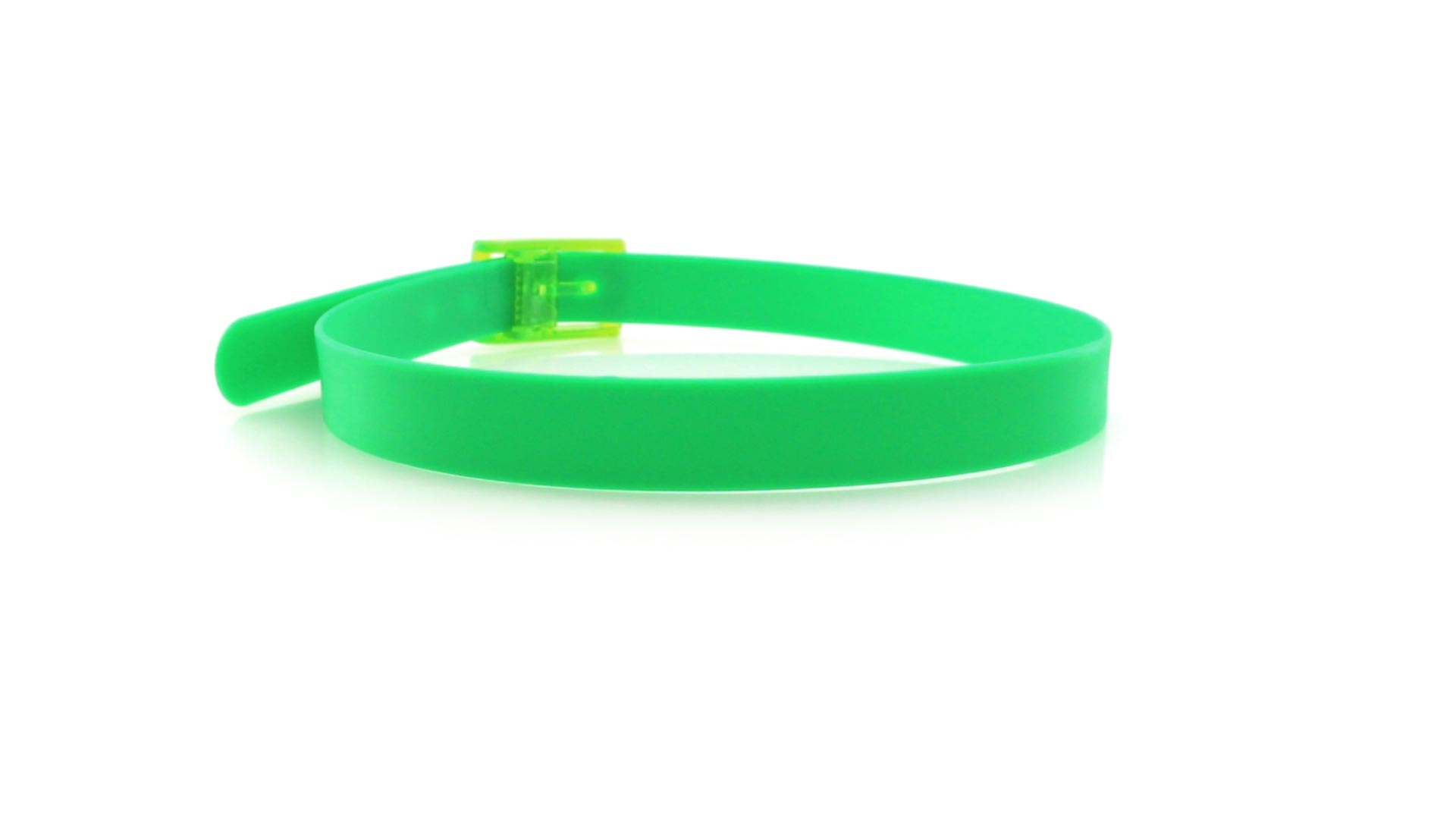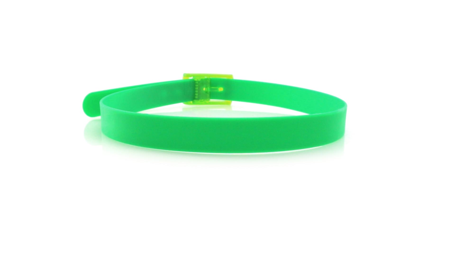 Auffälliger Gürtel aus weichem Silikon, 117 cm lang. Mit farblich passender, transparenter Abschlussschnalle. Erhältlich in einer grossen Auswahl an leuchtenden Farben.