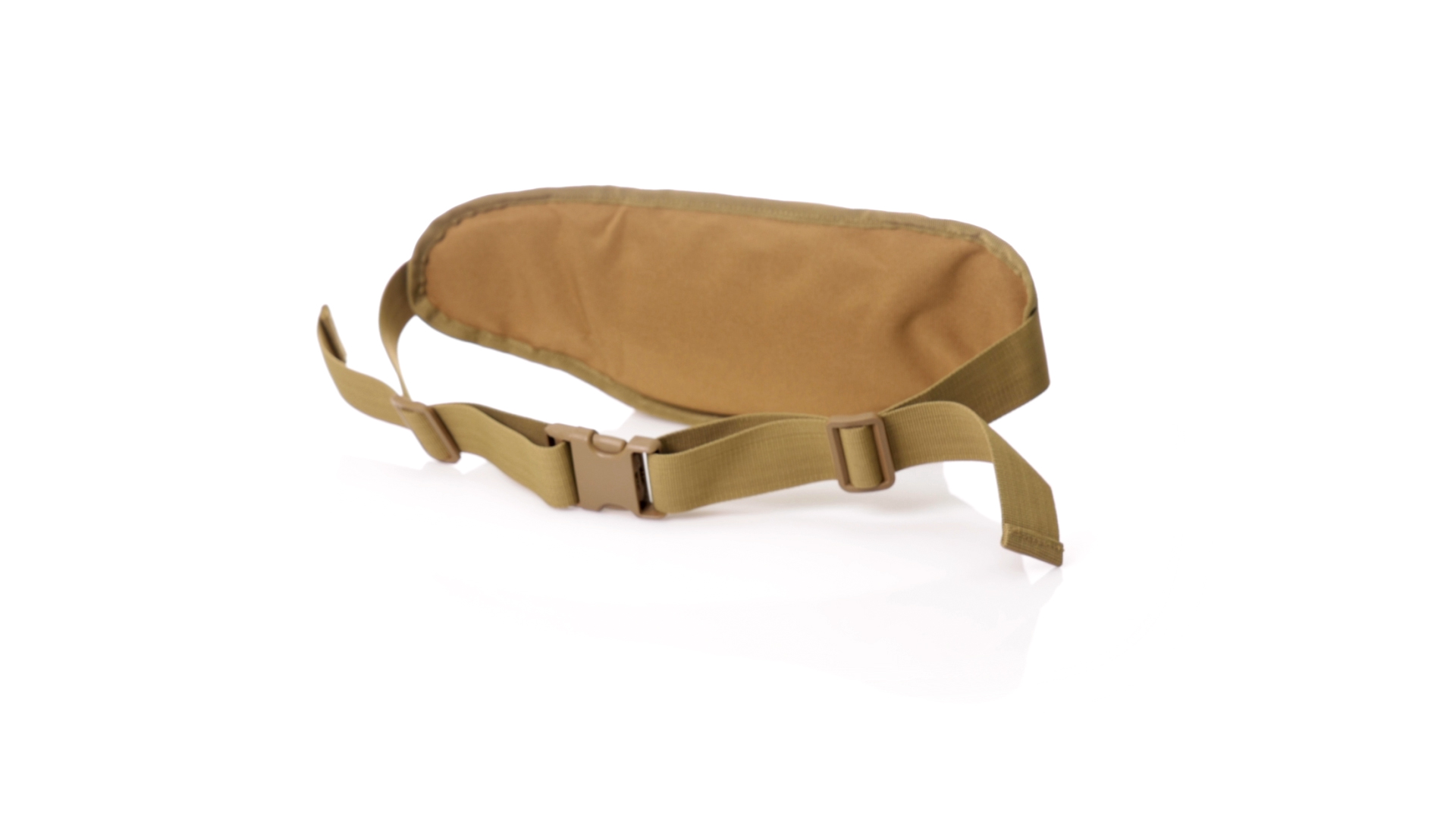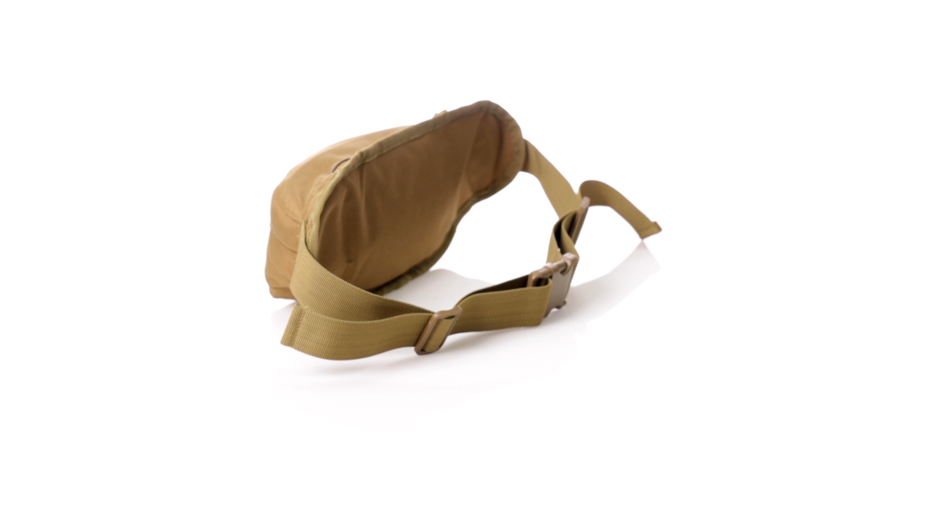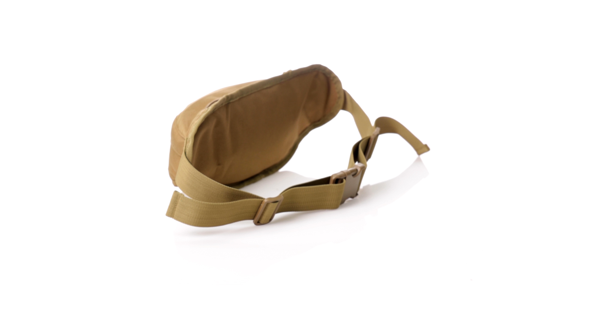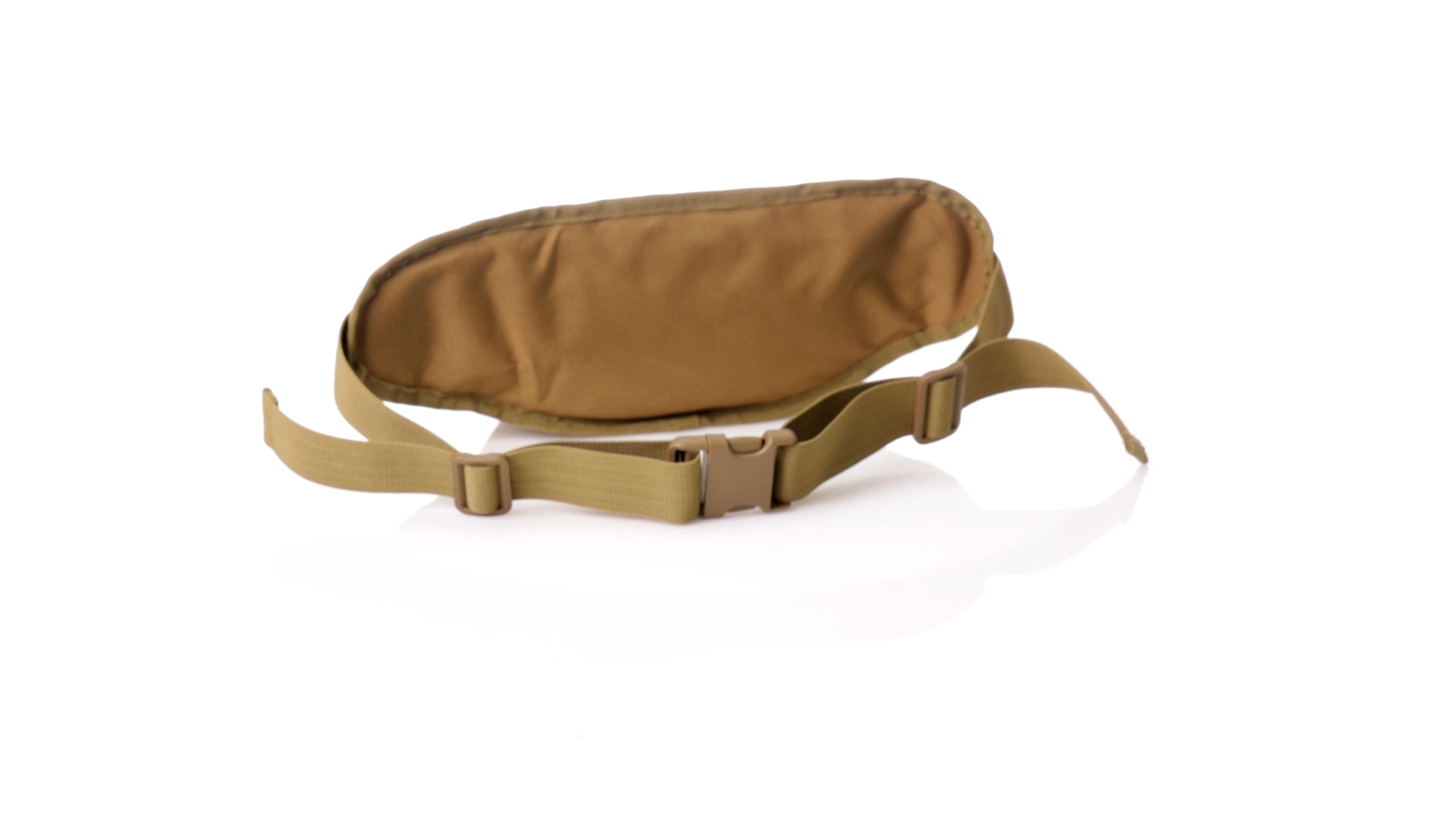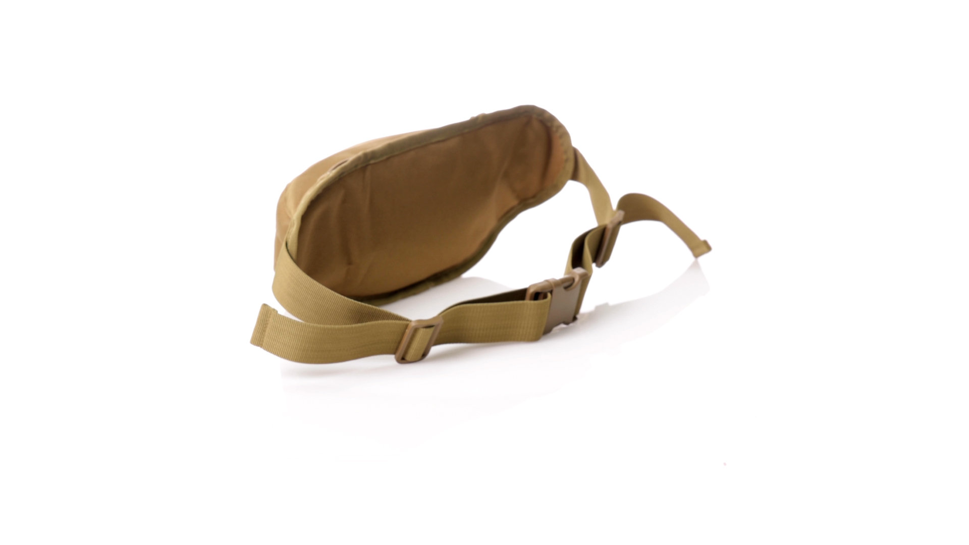 Gürteltasche aus strapazierfähigem 800D-Polyester und sandbraunem Ton. Mit 2 Reissverschlusstaschen und Riemen an Zugbändern zum einfachen Öffnen. Verstellbarer Gurt mit Schnallenverschluss, einzeln verpackt in einer recycelten Tasche.