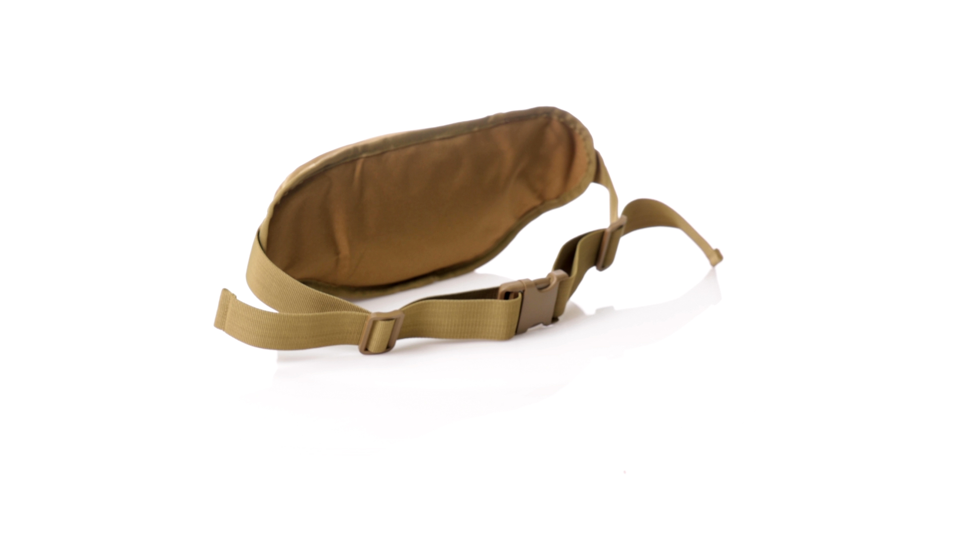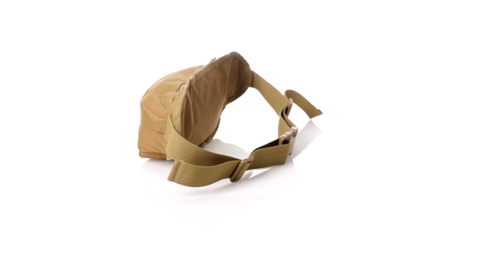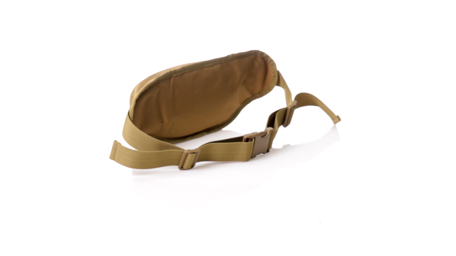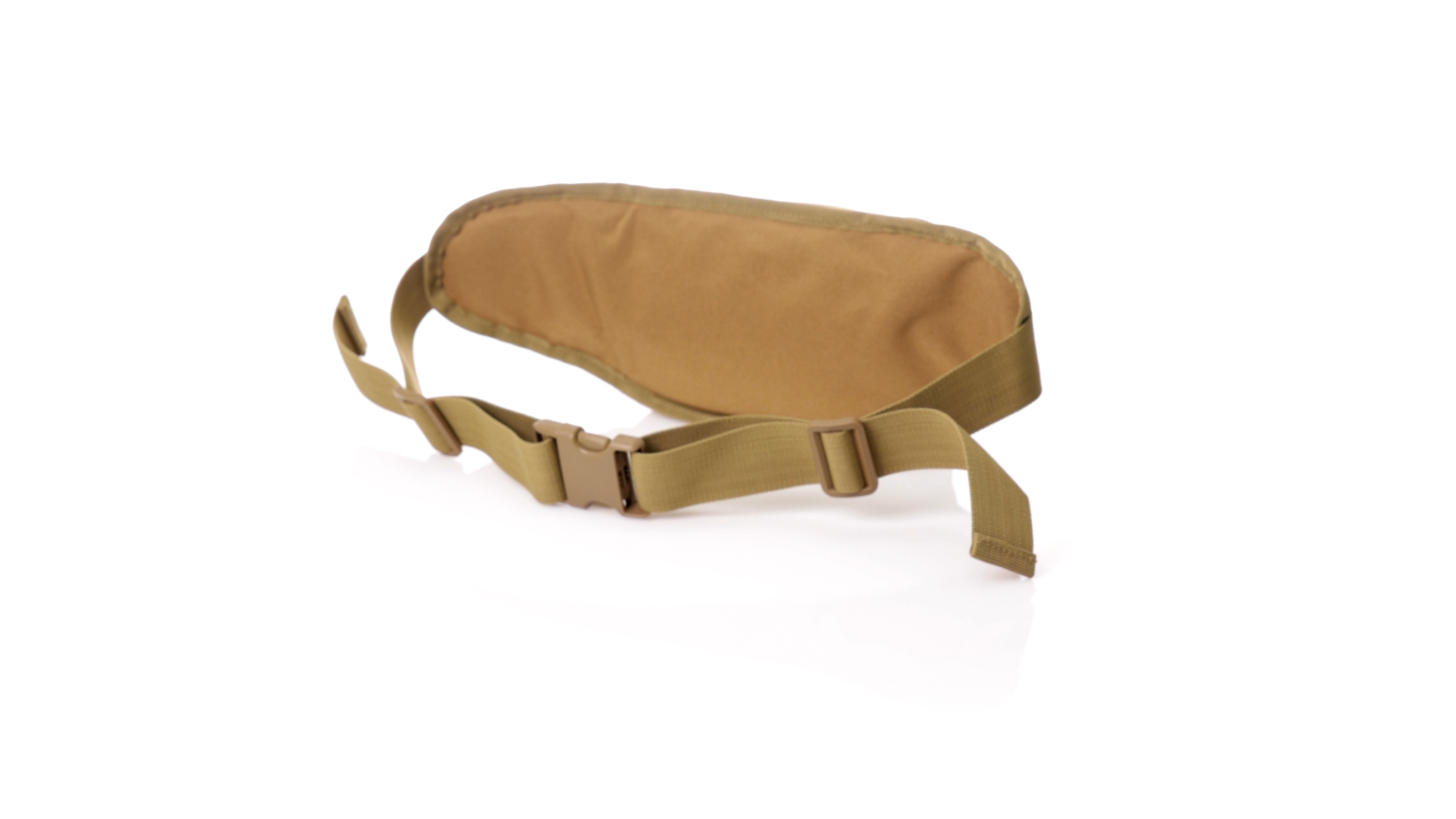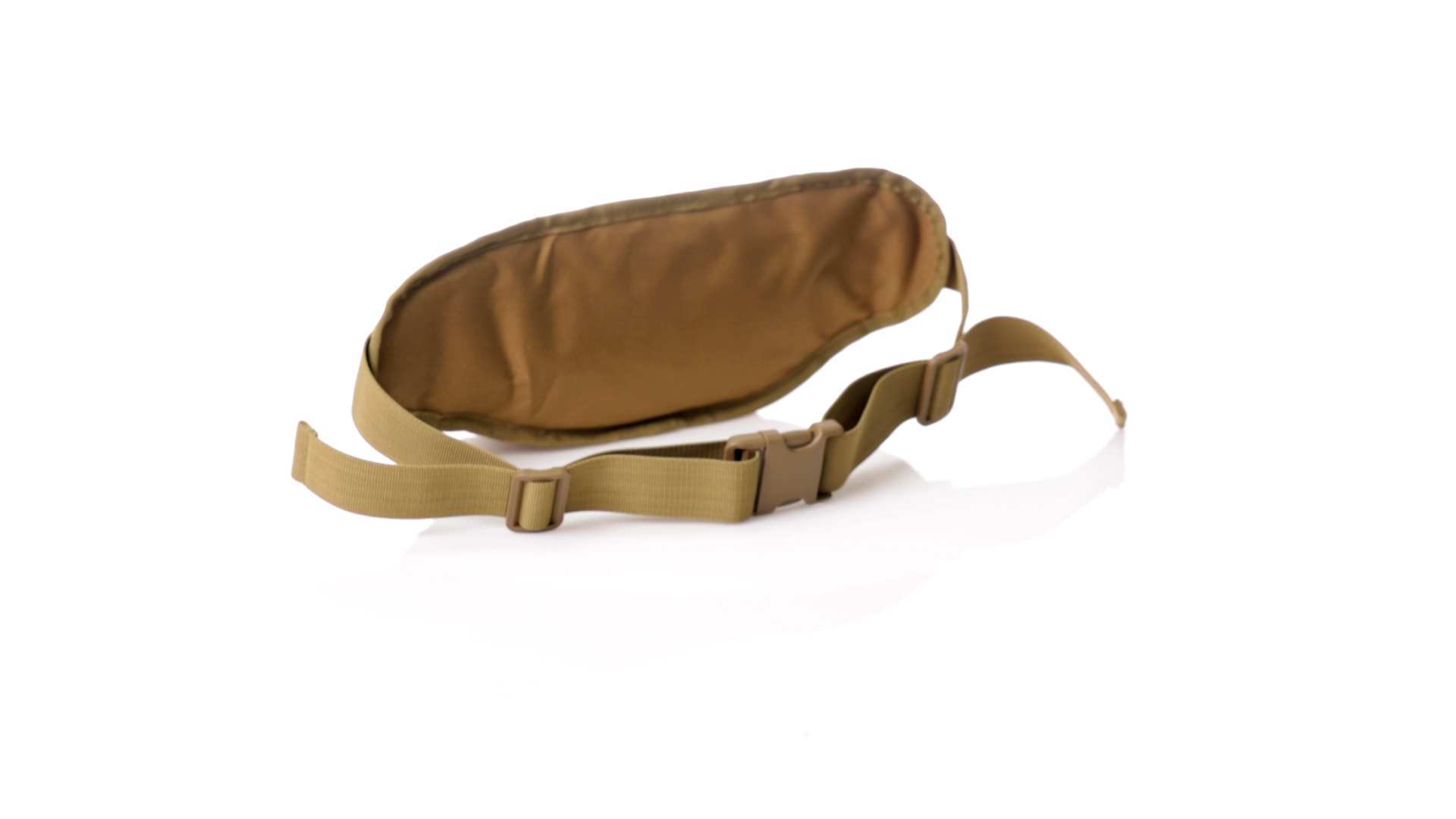 Gürteltasche aus strapazierfähigem 800D-Polyester und sandbraunem Ton. Mit 2 Reissverschlusstaschen und Riemen an Zugbändern zum einfachen Öffnen. Verstellbarer Gurt mit Schnallenverschluss, einzeln verpackt in einer recycelten Tasche.