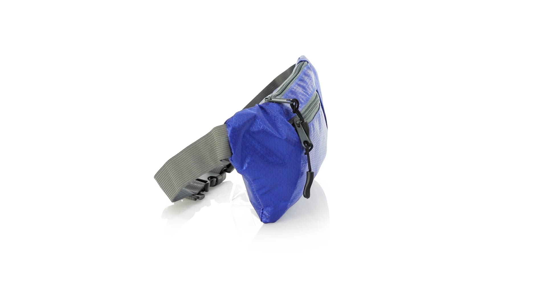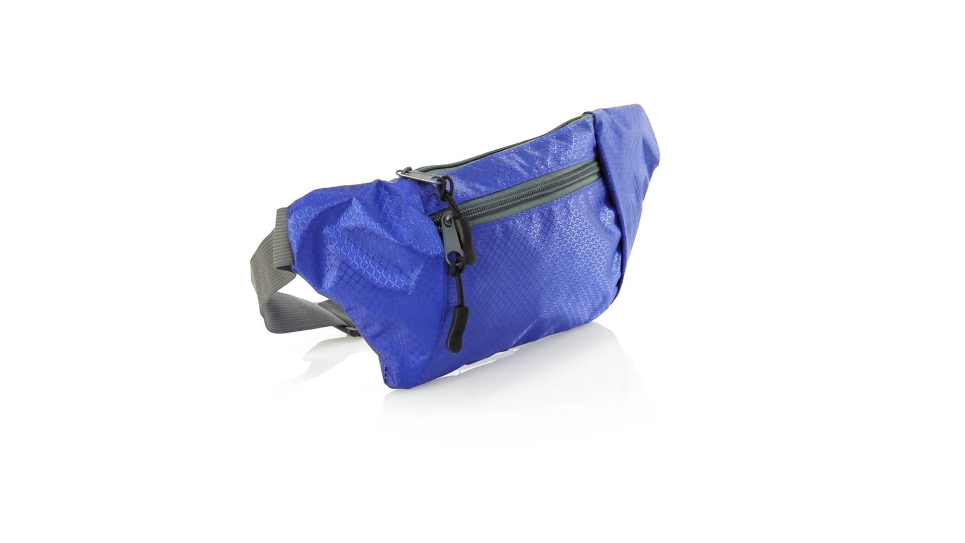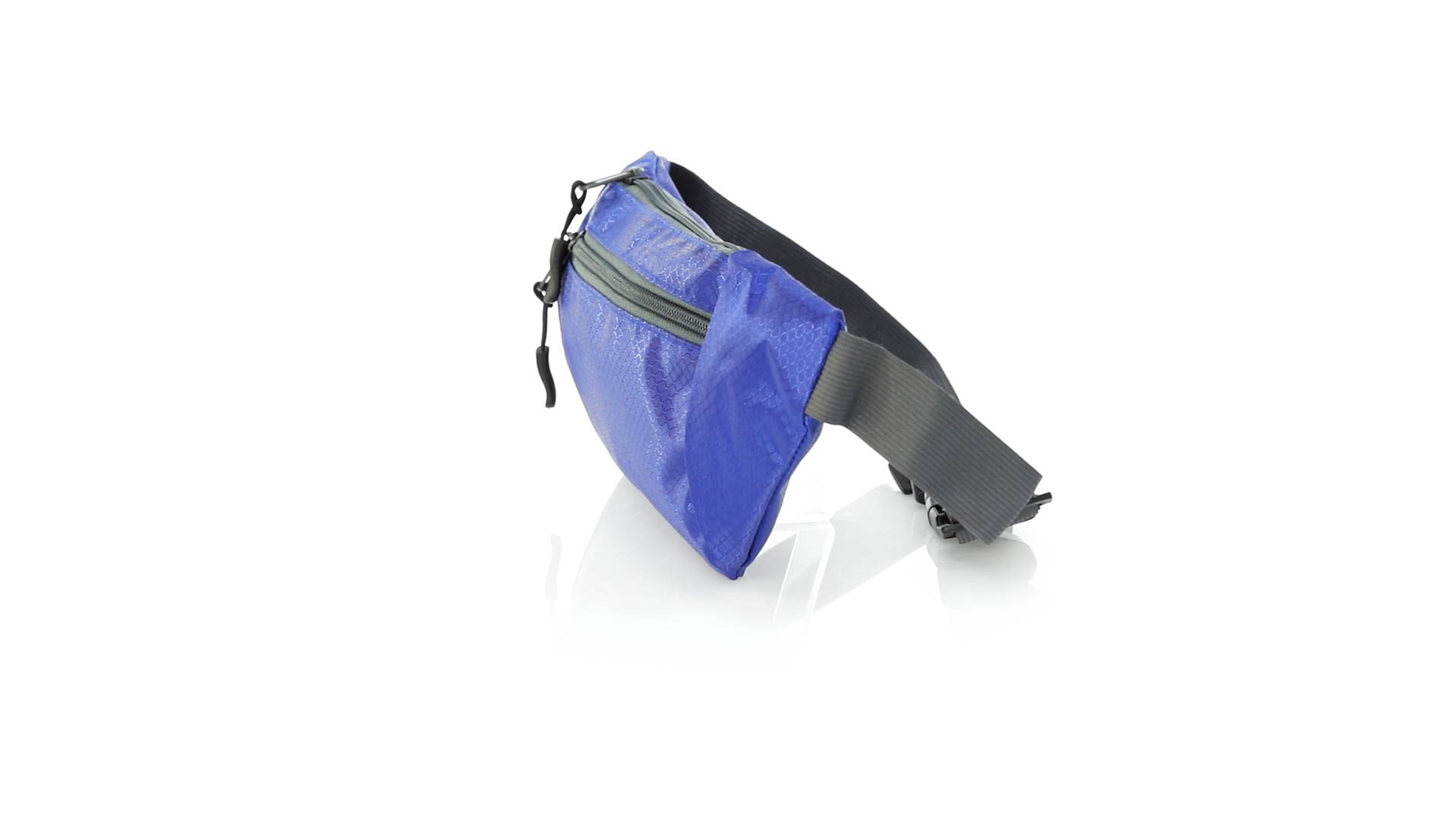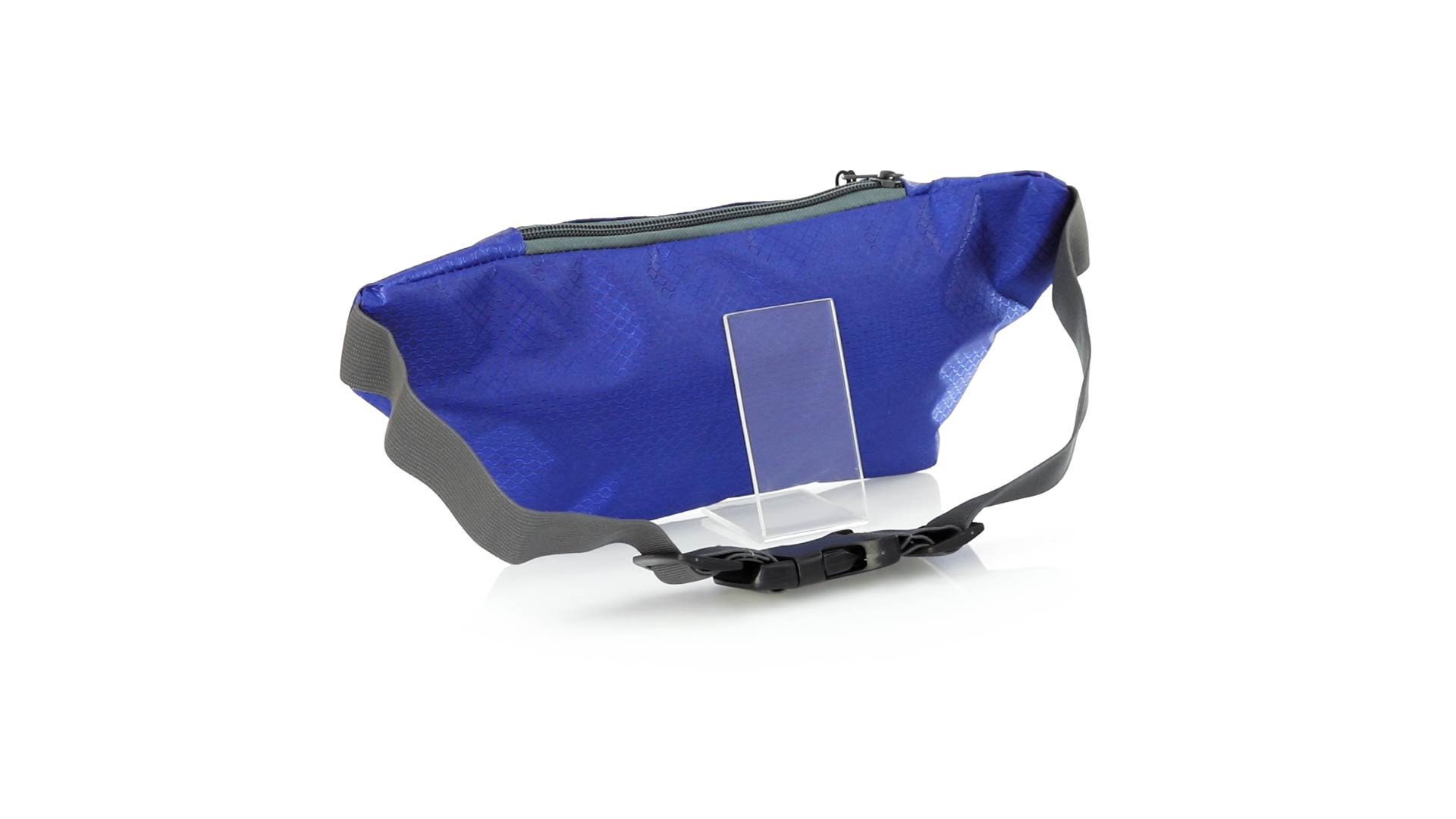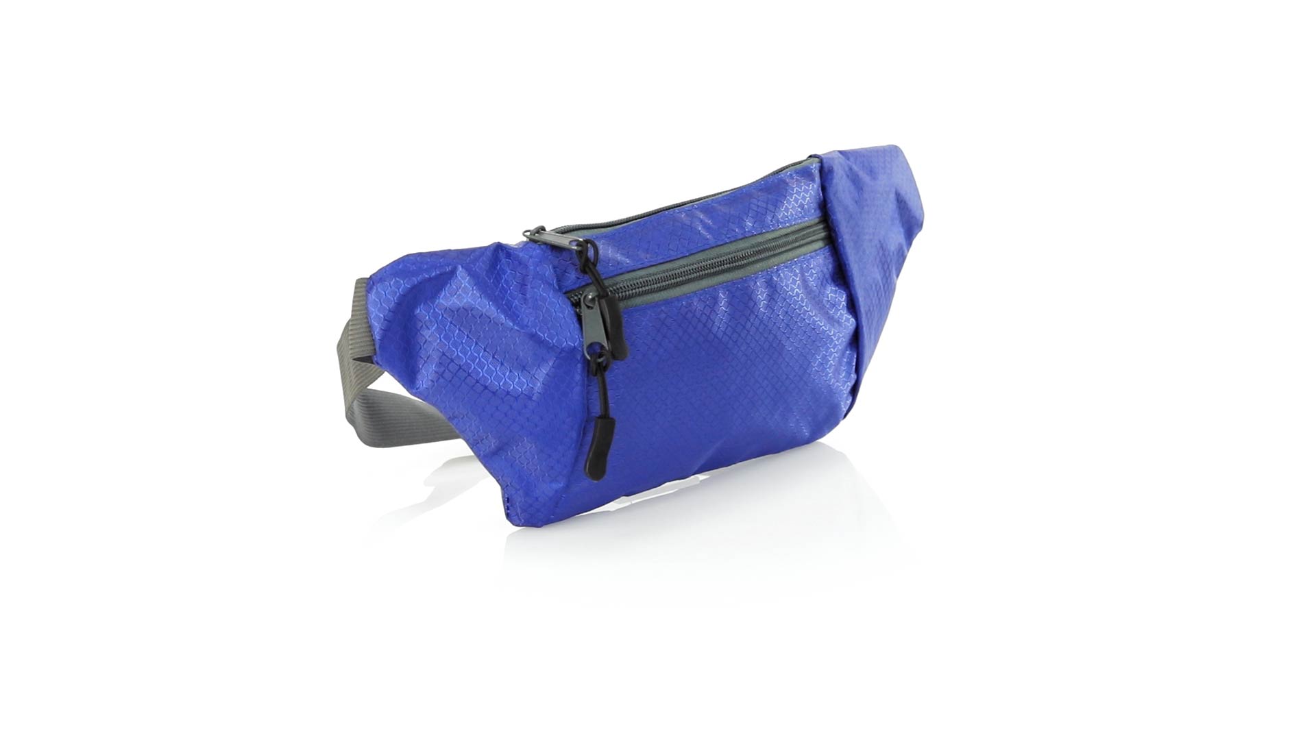Gürteltasche aus widerstandsfähigem Ripstop-Material in Wabenform. Zwei Reissverschlusstaschen mit Stoffzug für eine bequeme Öffnung. Einen aus Nylon verstellbaren Gurt mit Schnallenverschluss. Entwickelt für Sport- und Freizeitaktivitäten.