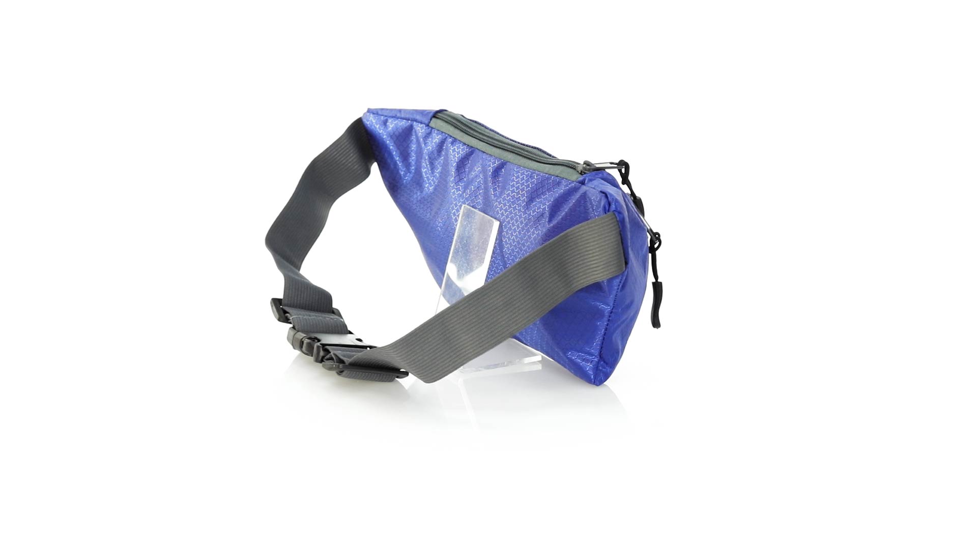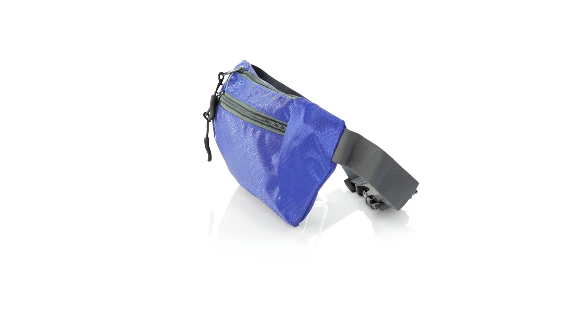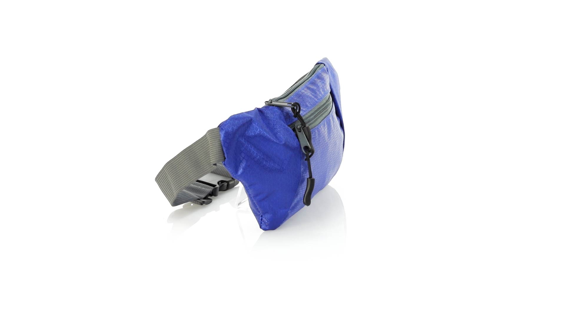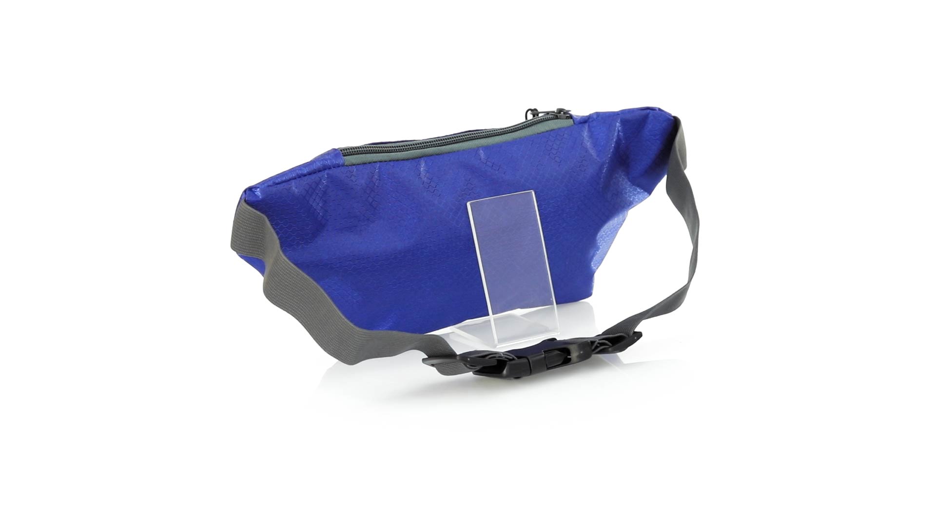 Gürteltasche aus widerstandsfähigem Ripstop-Material in Wabenform. Zwei Reissverschlusstaschen mit Stoffzug für eine bequeme Öffnung. Einen aus Nylon verstellbaren Gurt mit Schnallenverschluss. Entwickelt für Sport- und Freizeitaktivitäten.