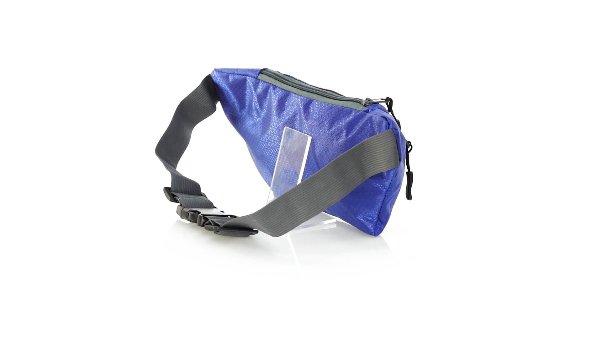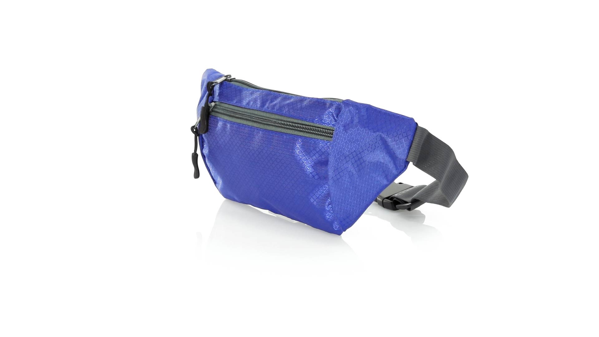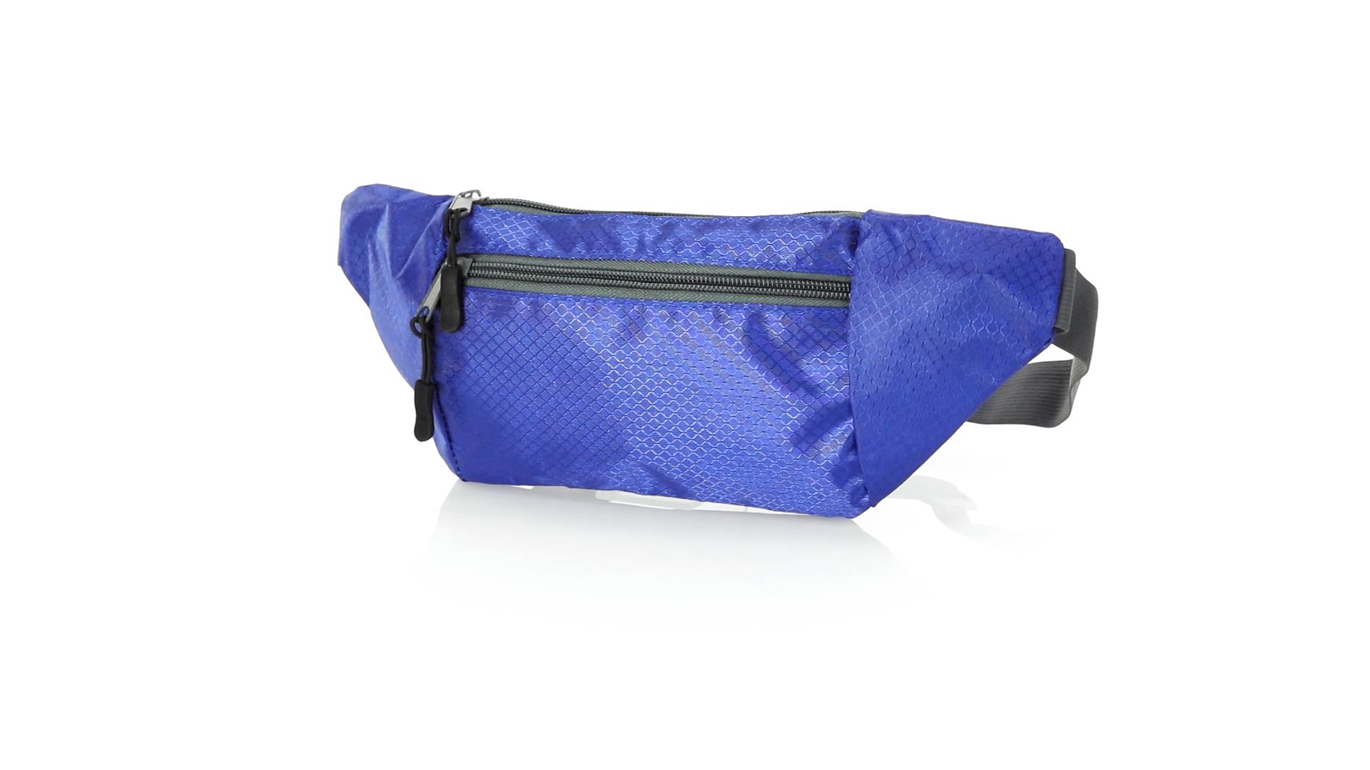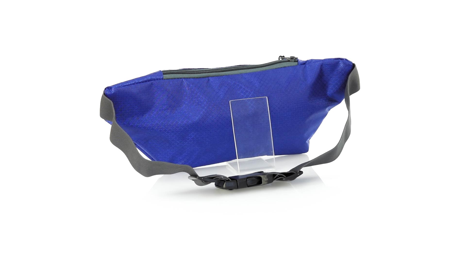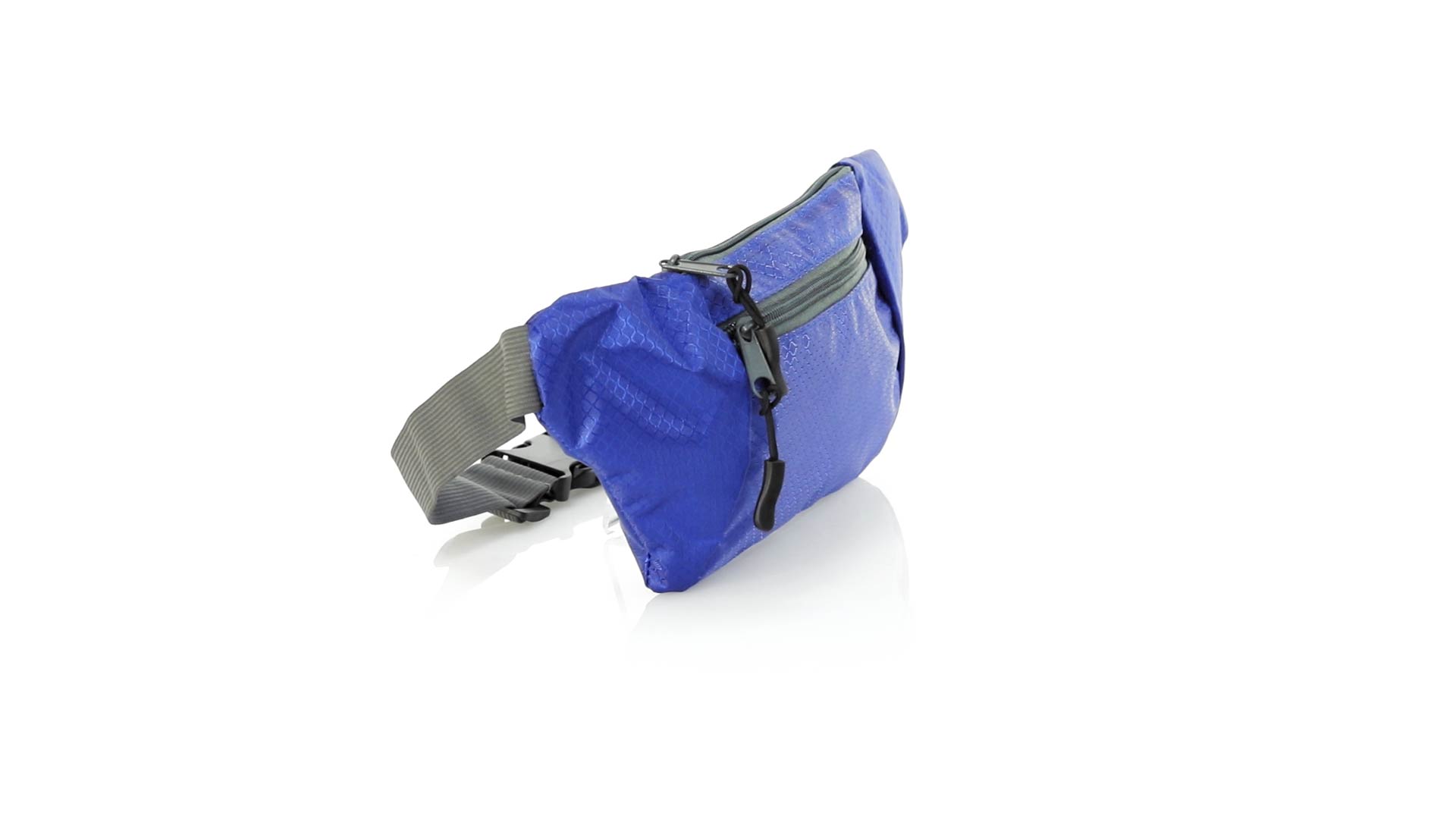 Gürteltasche aus widerstandsfähigem Ripstop-Material in Wabenform. Zwei Reissverschlusstaschen mit Stoffzug für eine bequeme Öffnung. Einen aus Nylon verstellbaren Gurt mit Schnallenverschluss. Entwickelt für Sport- und Freizeitaktivitäten.
