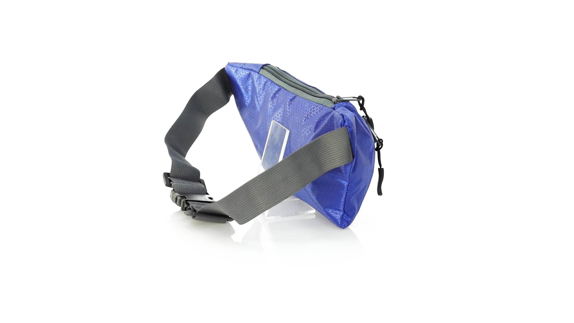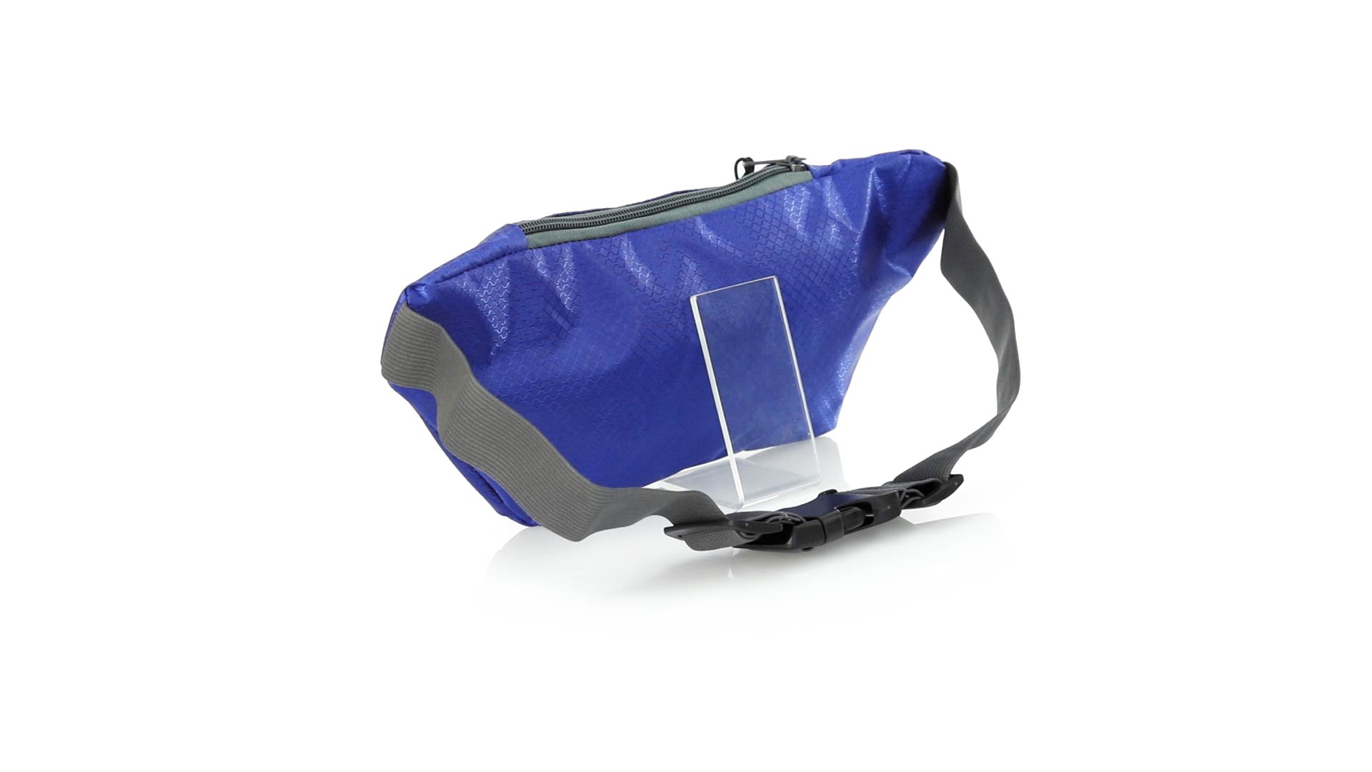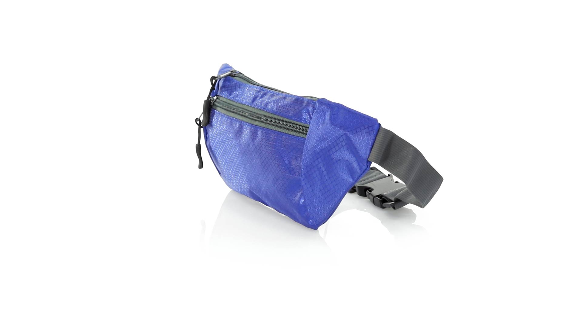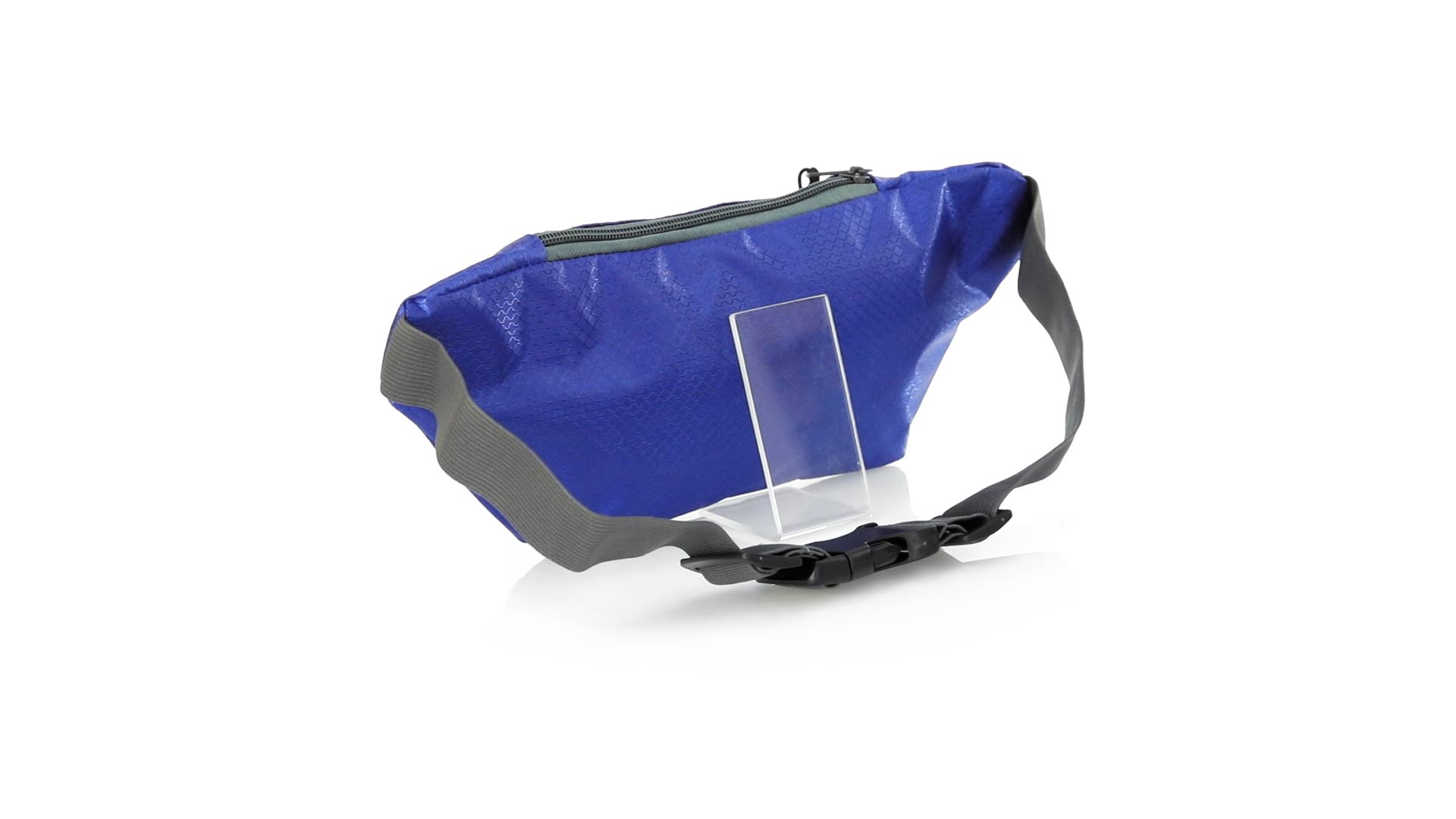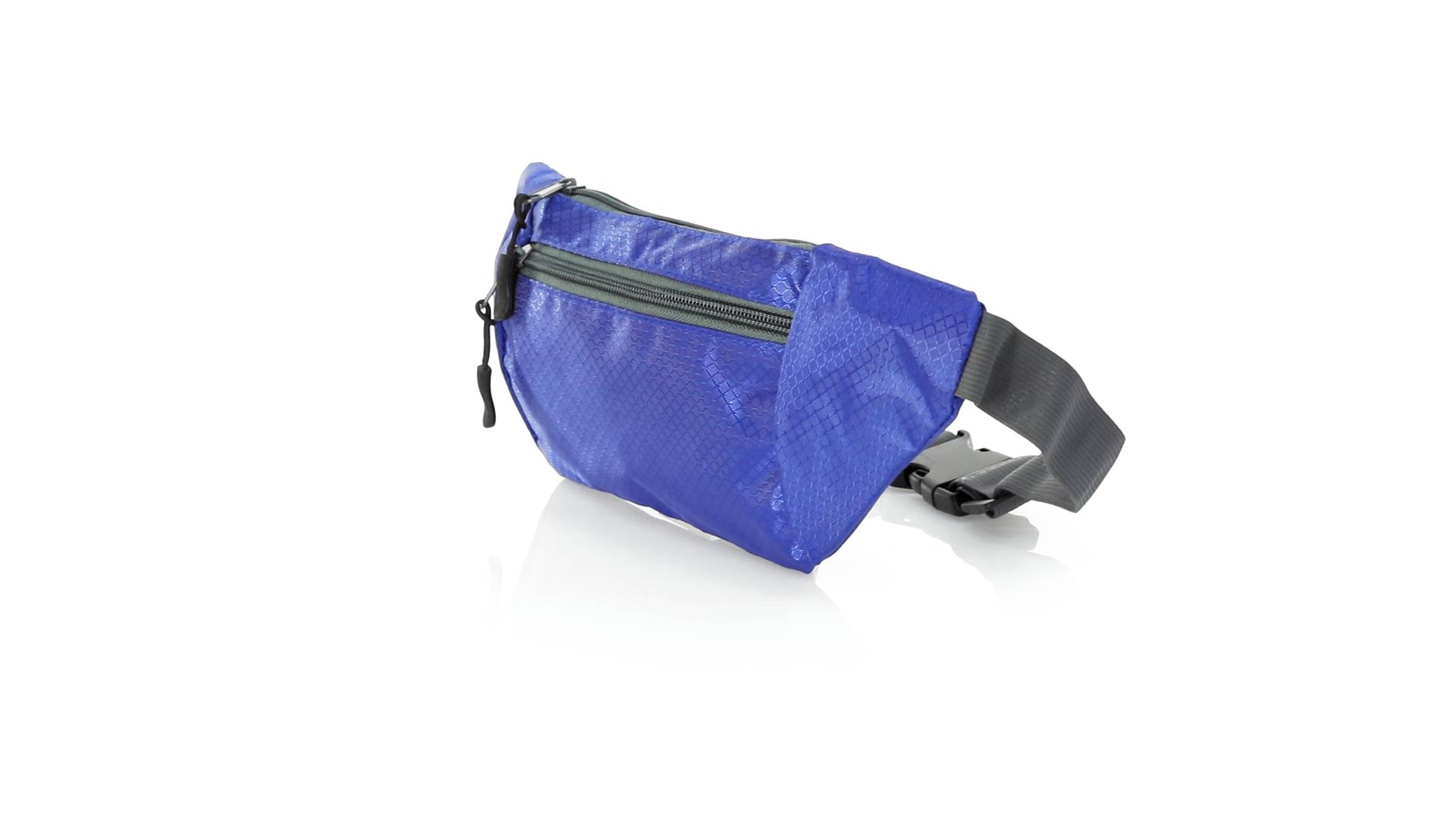 Gürteltasche aus widerstandsfähigem Ripstop-Material in Wabenform. Zwei Reissverschlusstaschen mit Stoffzug für eine bequeme Öffnung. Einen aus Nylon verstellbaren Gurt mit Schnallenverschluss. Entwickelt für Sport- und Freizeitaktivitäten.