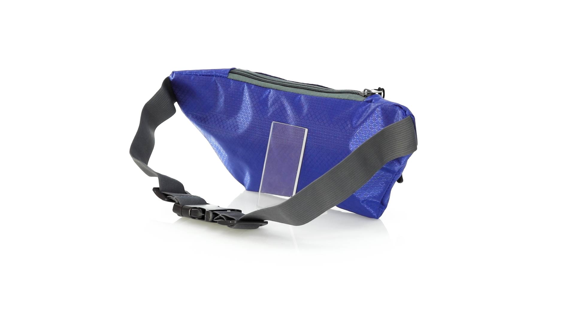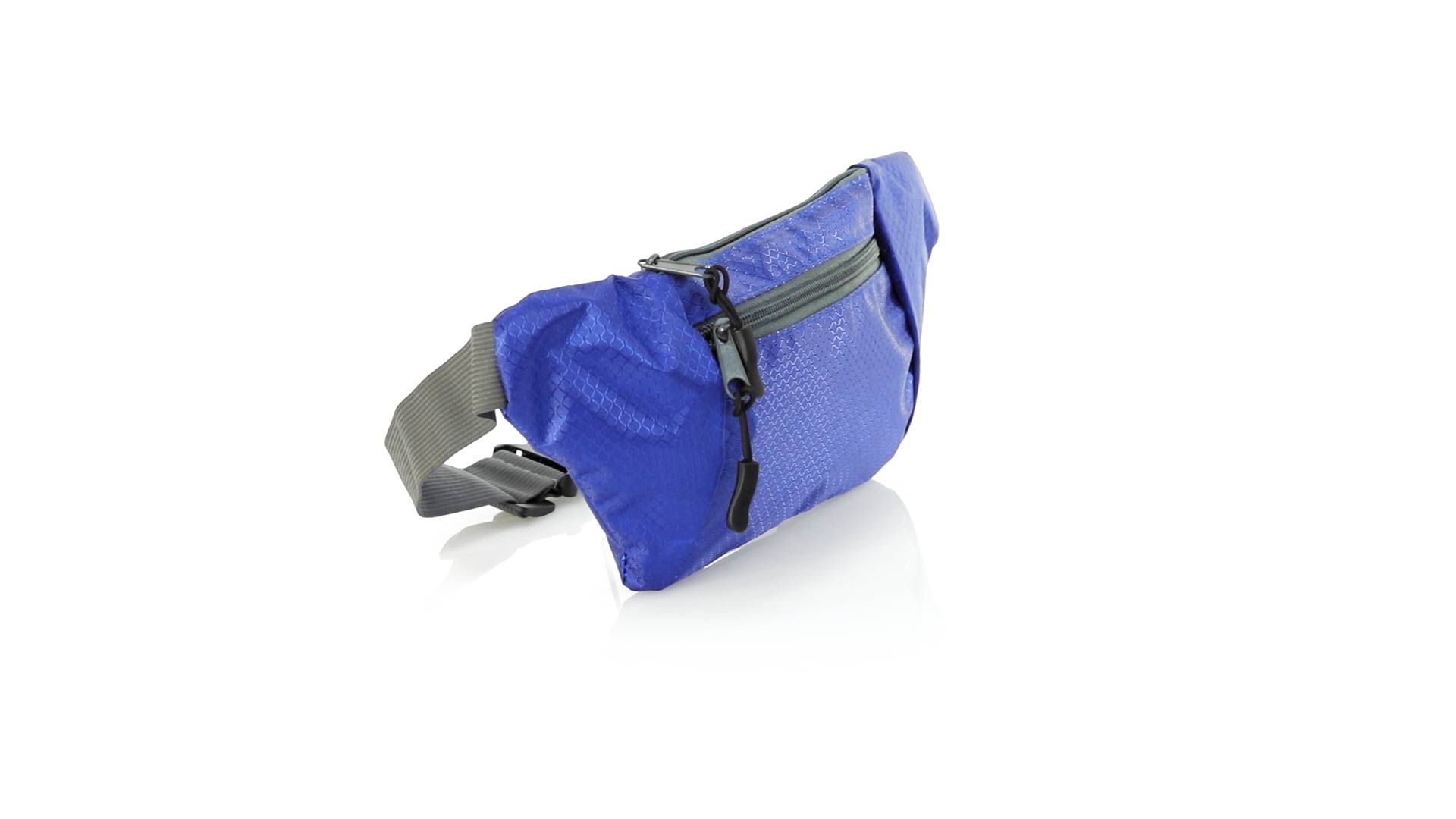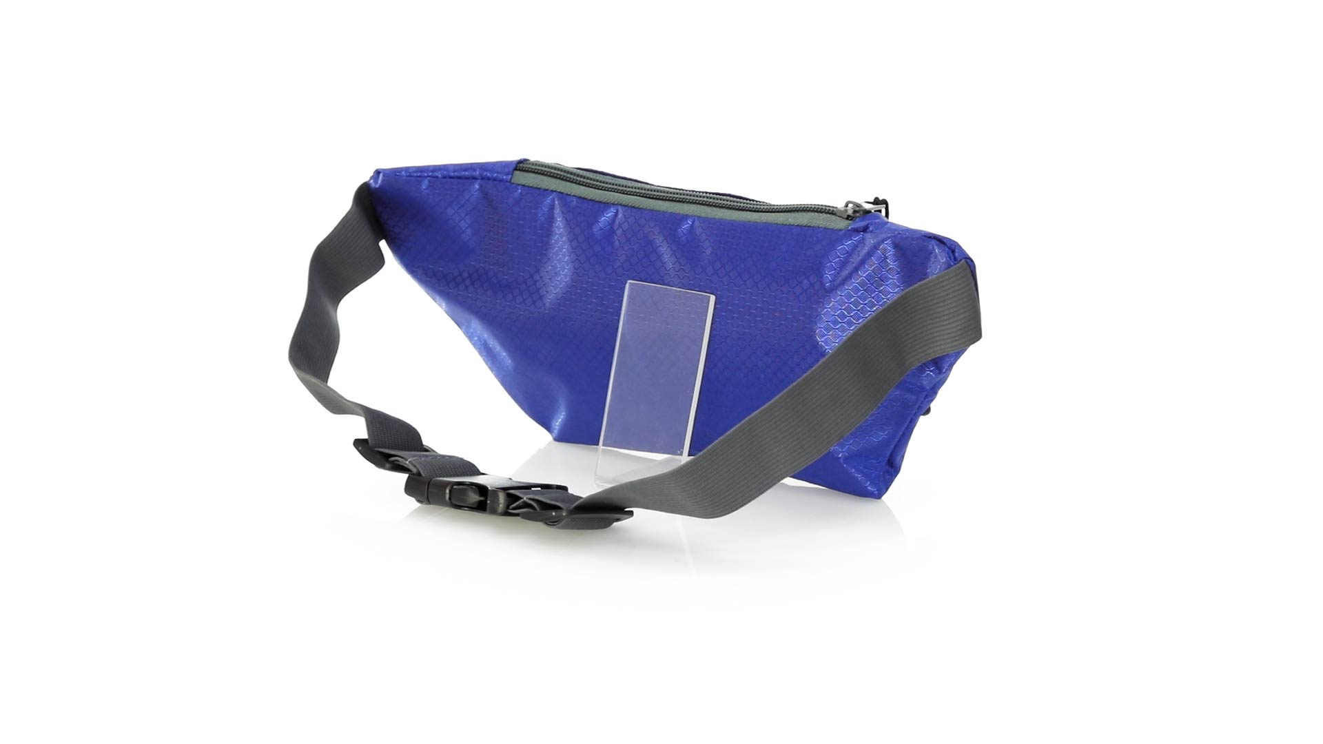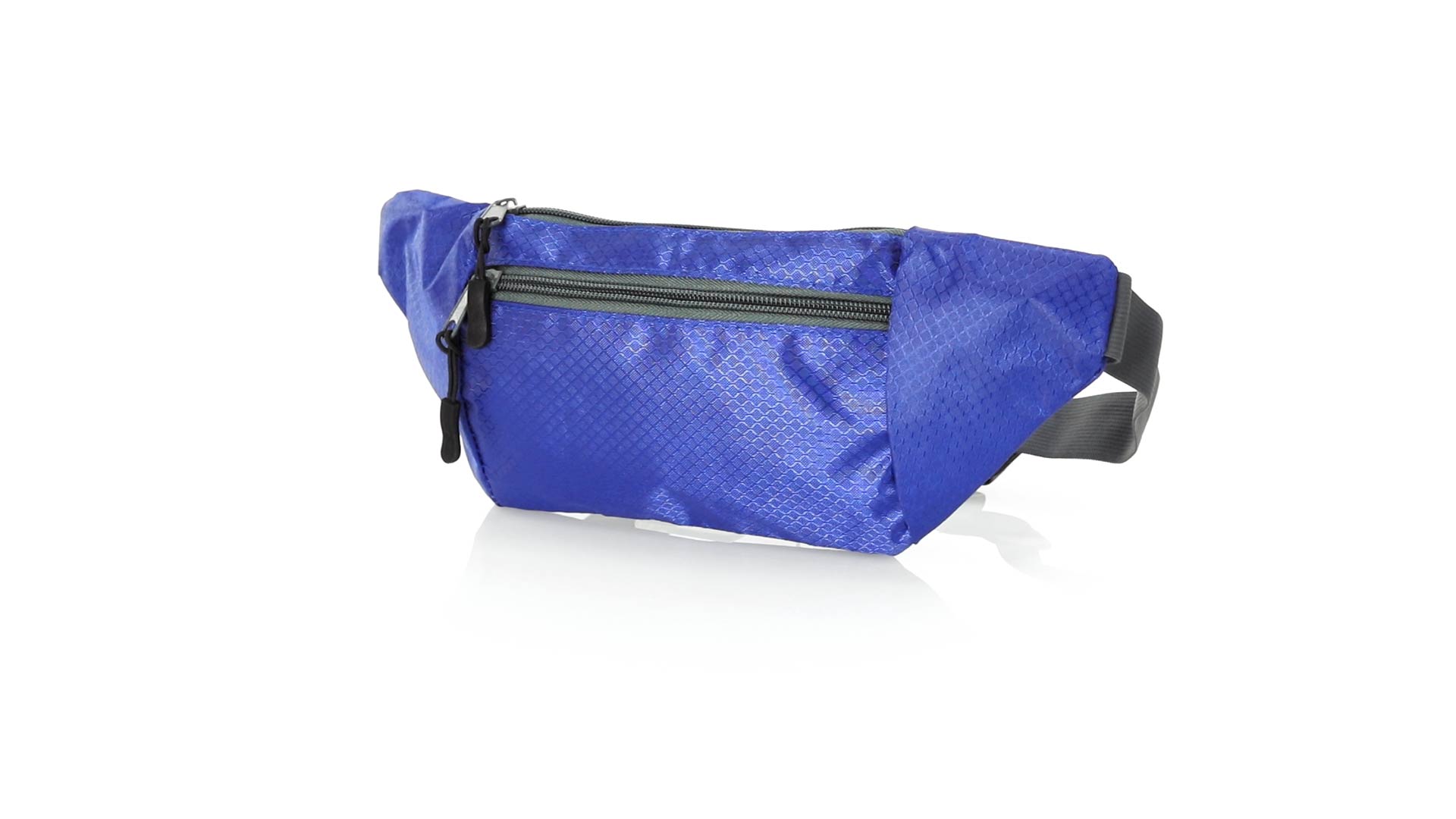 Gürteltasche aus widerstandsfähigem Ripstop-Material in Wabenform. Zwei Reissverschlusstaschen mit Stoffzug für eine bequeme Öffnung. Einen aus Nylon verstellbaren Gurt mit Schnallenverschluss. Entwickelt für Sport- und Freizeitaktivitäten.