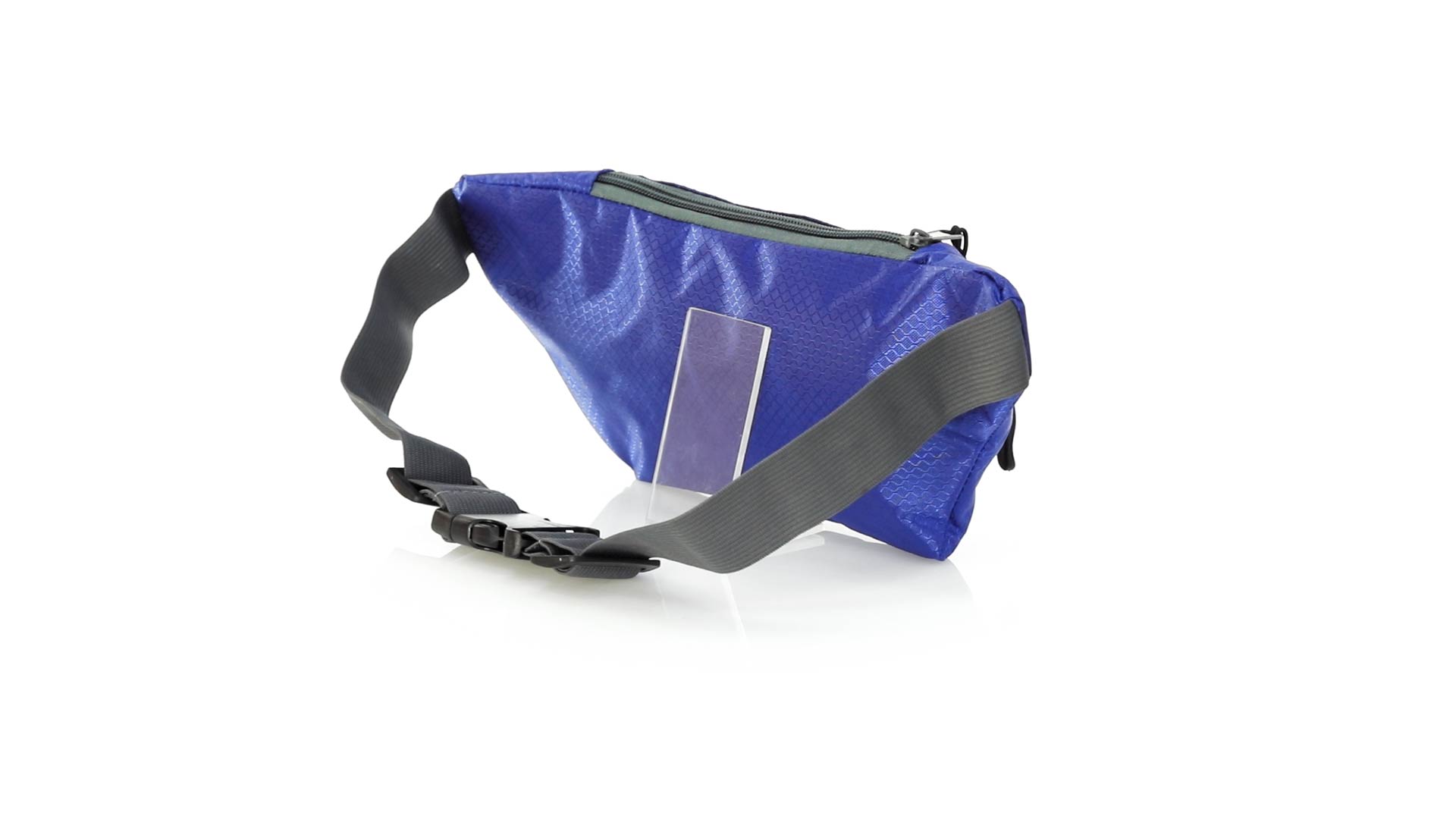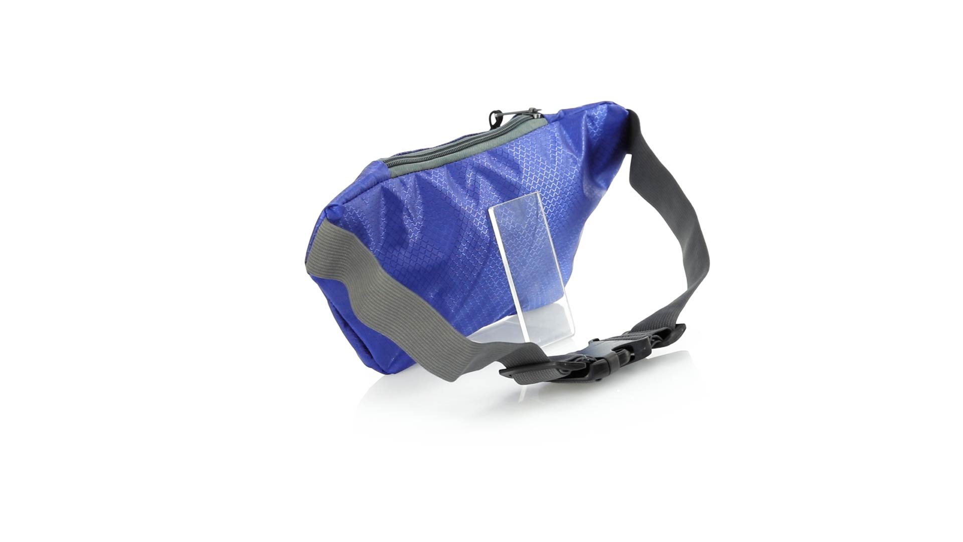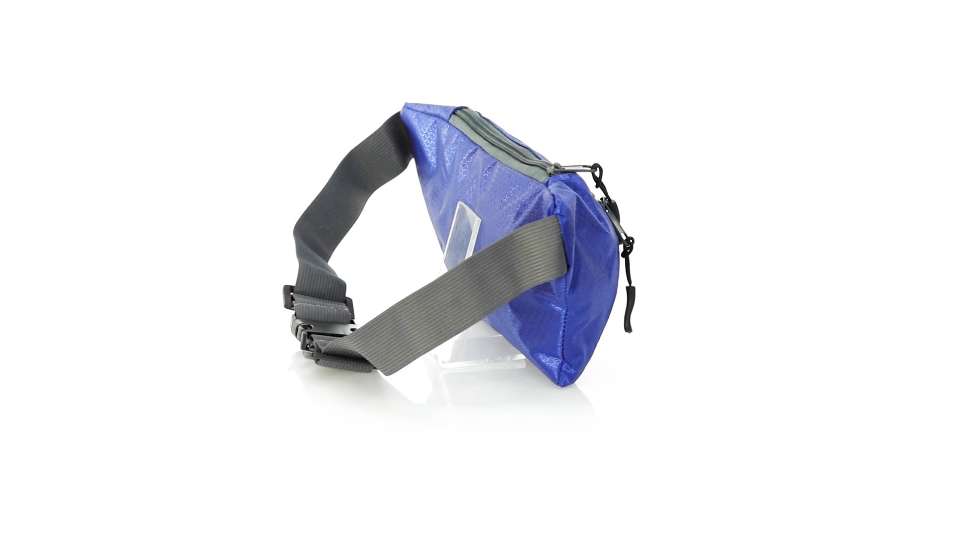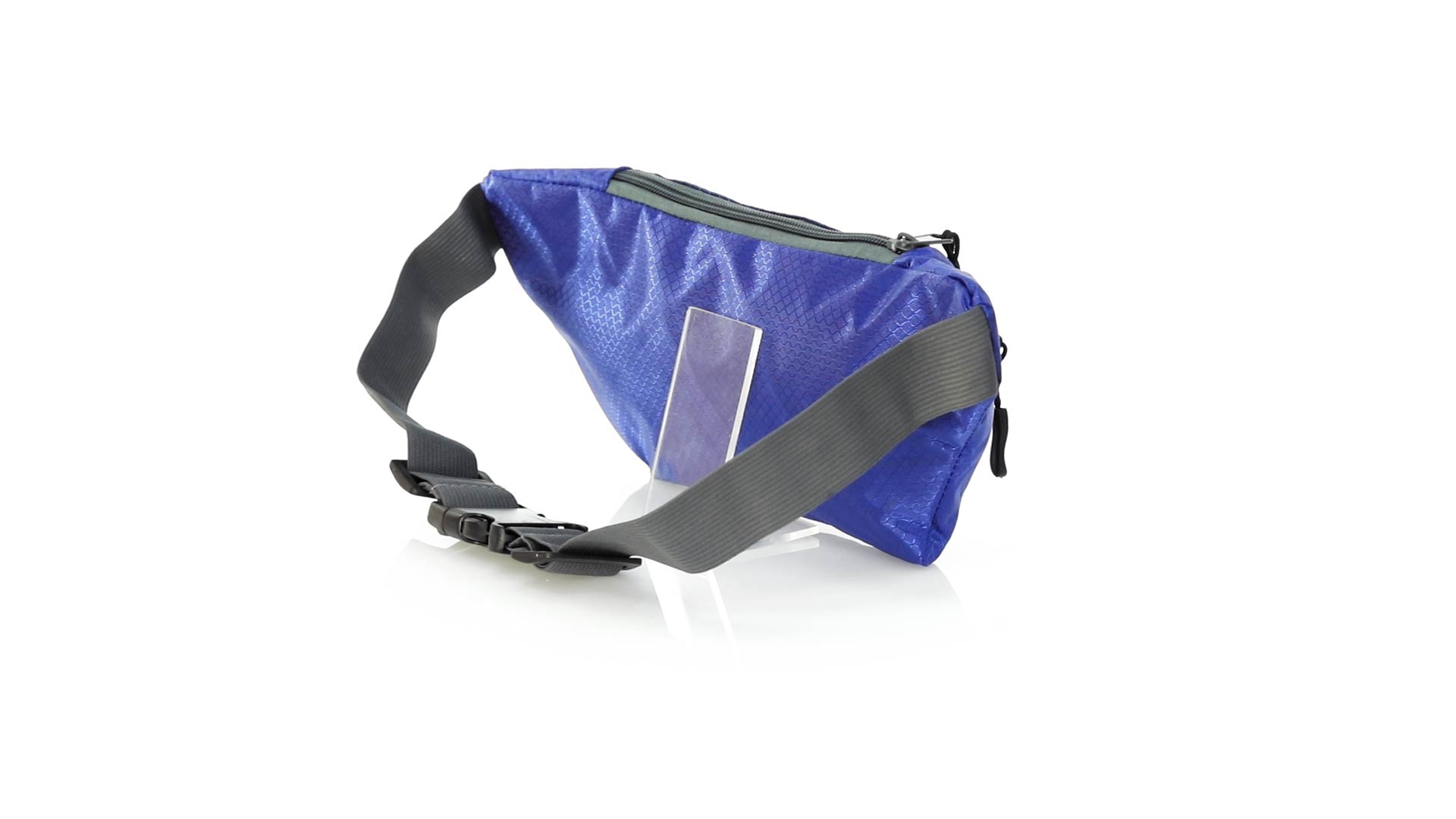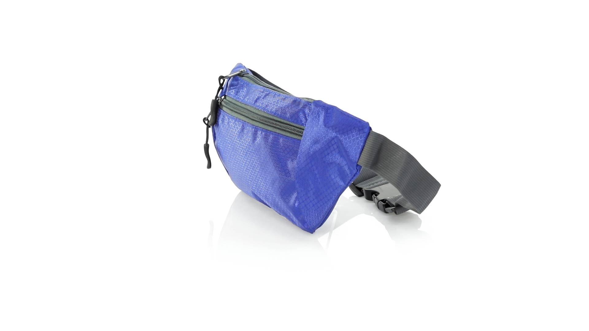 Gürteltasche aus widerstandsfähigem Ripstop-Material in Wabenform. Zwei Reissverschlusstaschen mit Stoffzug für eine bequeme Öffnung. Einen aus Nylon verstellbaren Gurt mit Schnallenverschluss. Entwickelt für Sport- und Freizeitaktivitäten.
