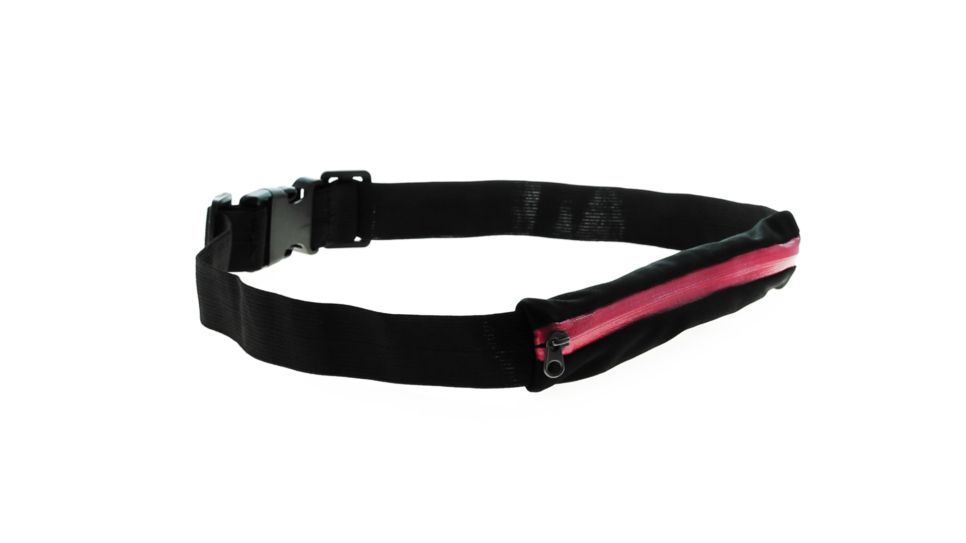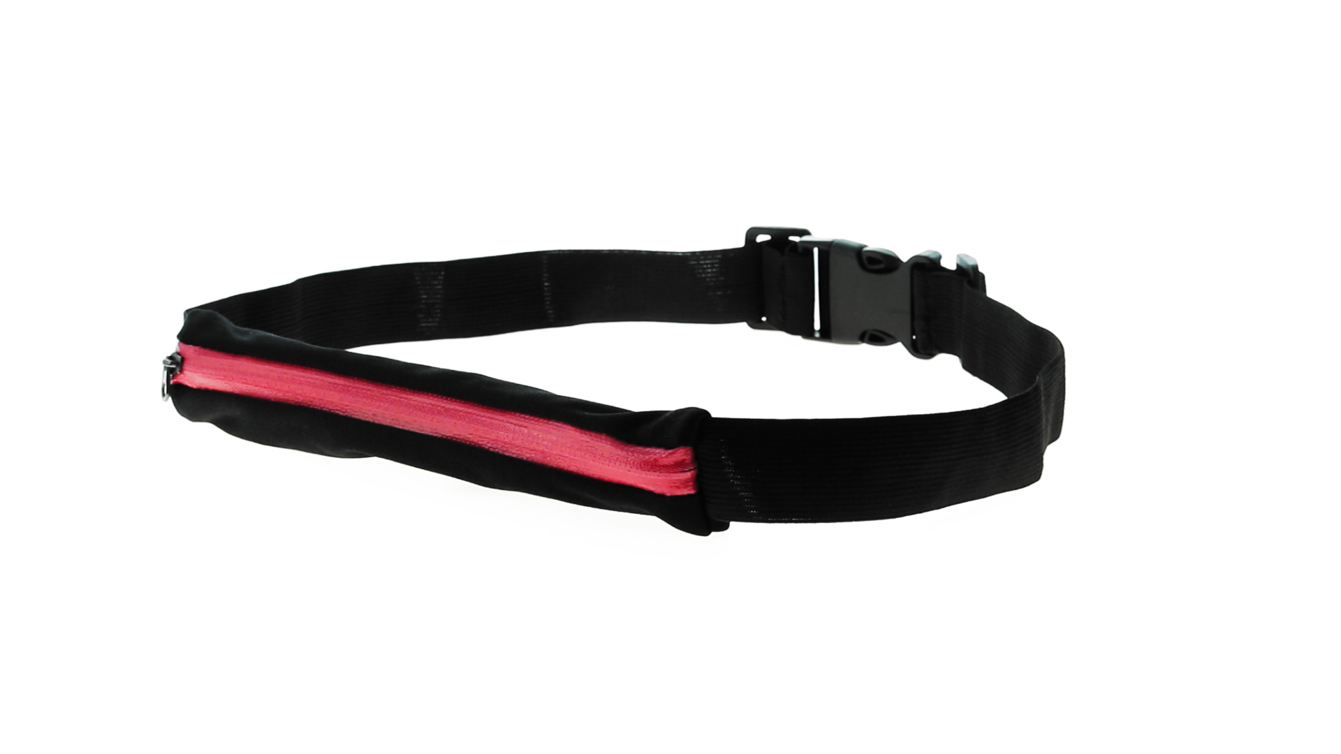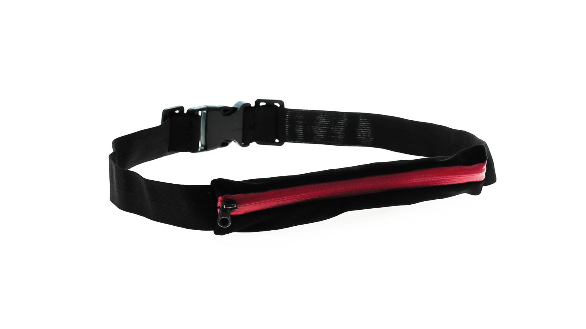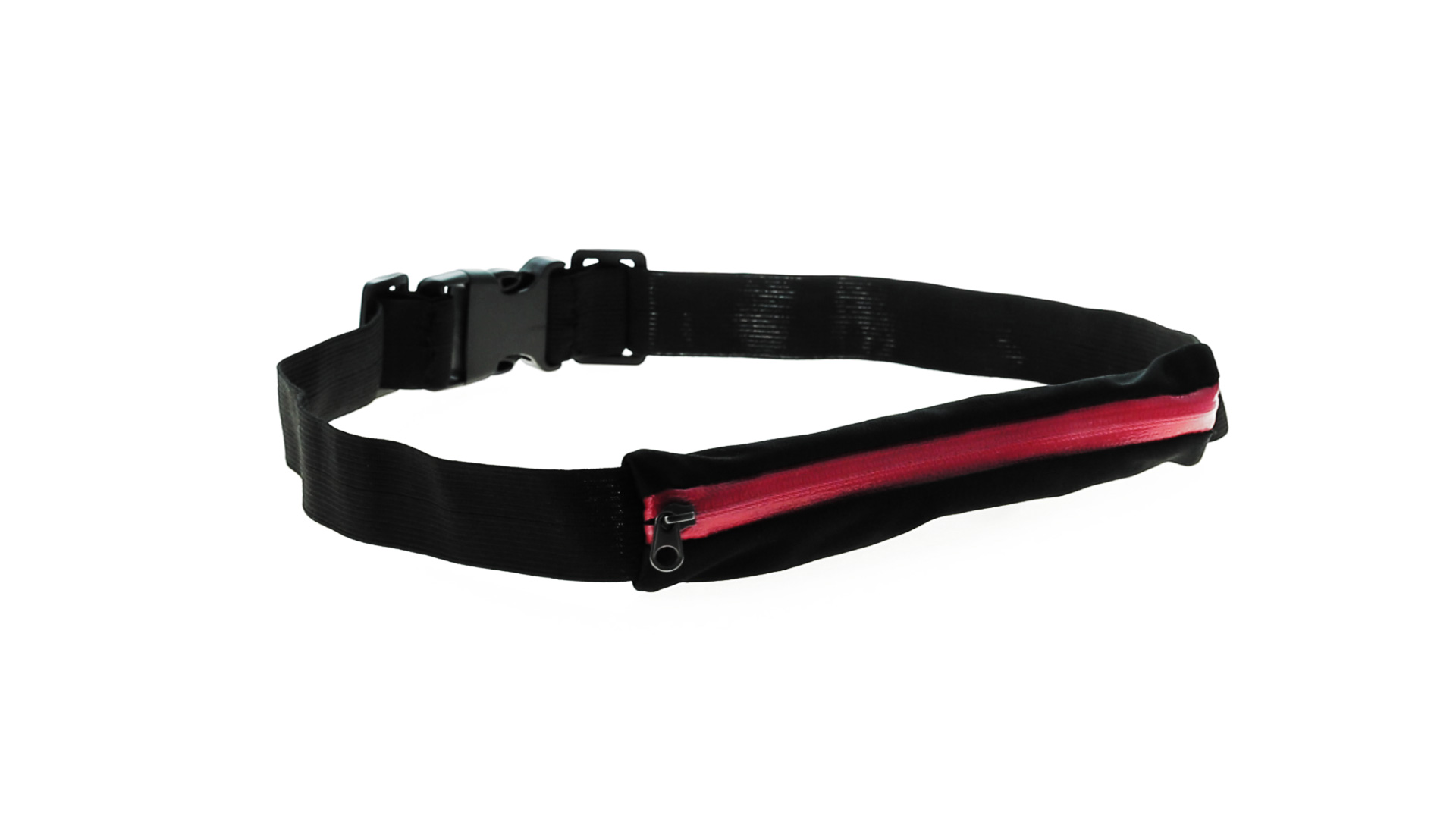 Hochwertige Bauchtasche aus spritzwasserresistentem Spandex-Material mit Reissverschluss in verschiedenen kräftigen Farben. Entwickelt für Sport- und Freizeitaktivitäten. Mit Kopfhörerausgang auf der Rückseite und elastischem, verstellbarem Gurt mit Klickverschluss.