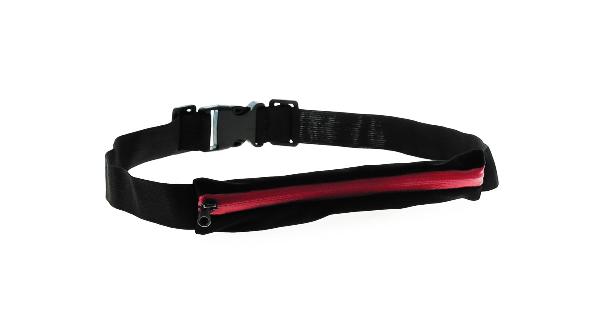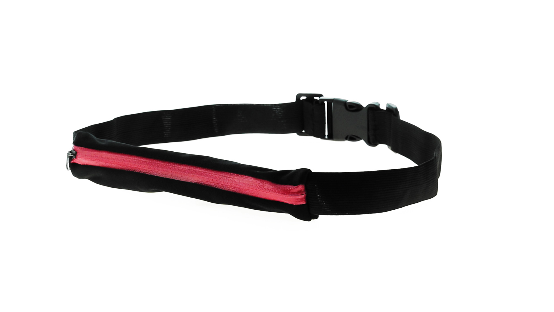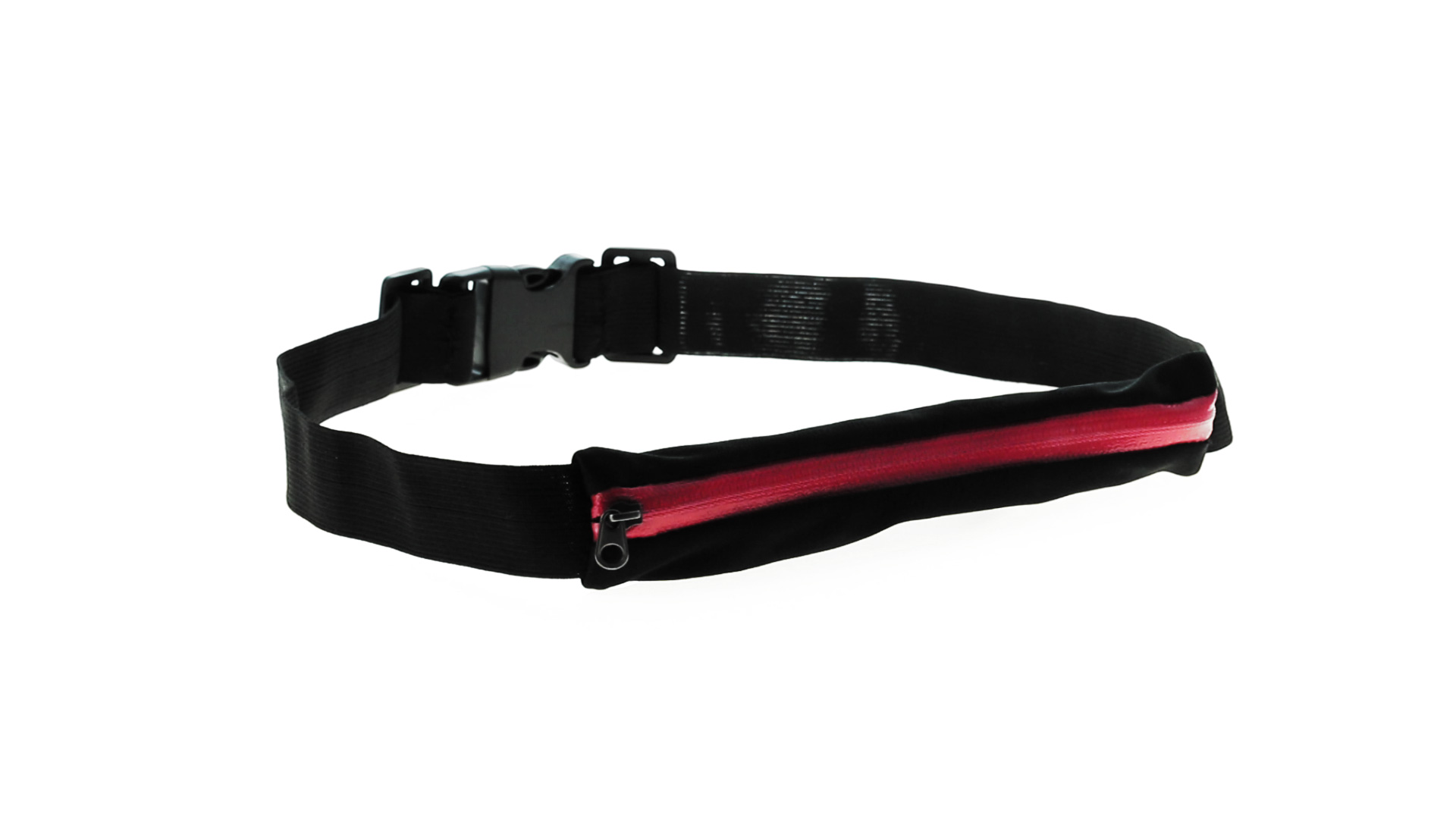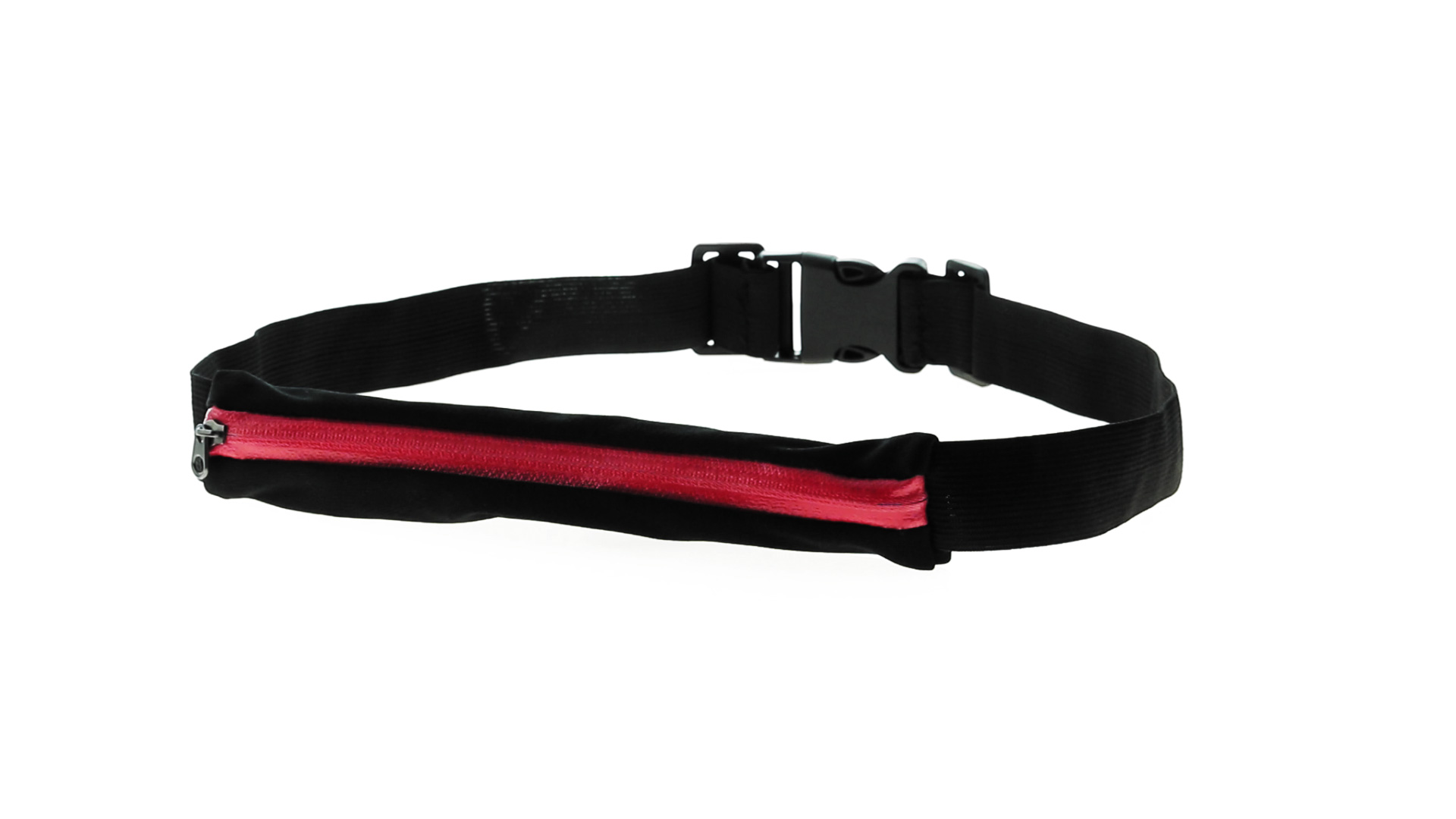 Hochwertige Bauchtasche aus spritzwasserresistentem Spandex-Material mit Reissverschluss in verschiedenen kräftigen Farben. Entwickelt für Sport- und Freizeitaktivitäten. Mit Kopfhörerausgang auf der Rückseite und elastischem, verstellbarem Gurt mit Klickverschluss.