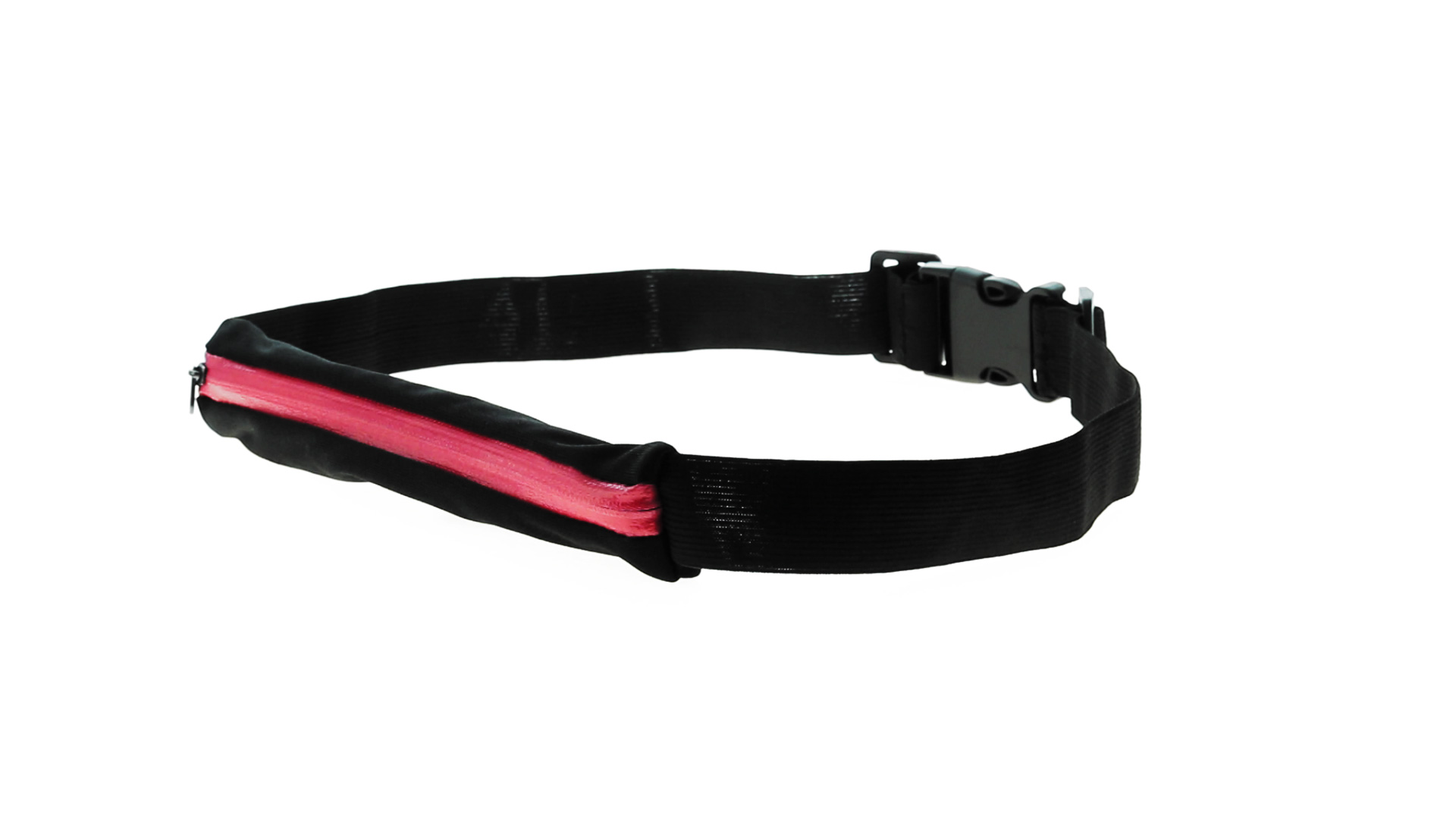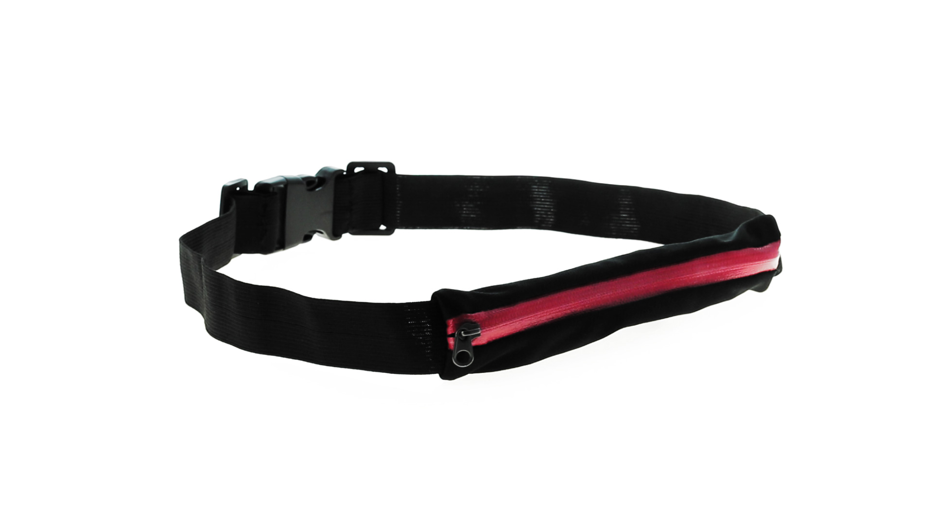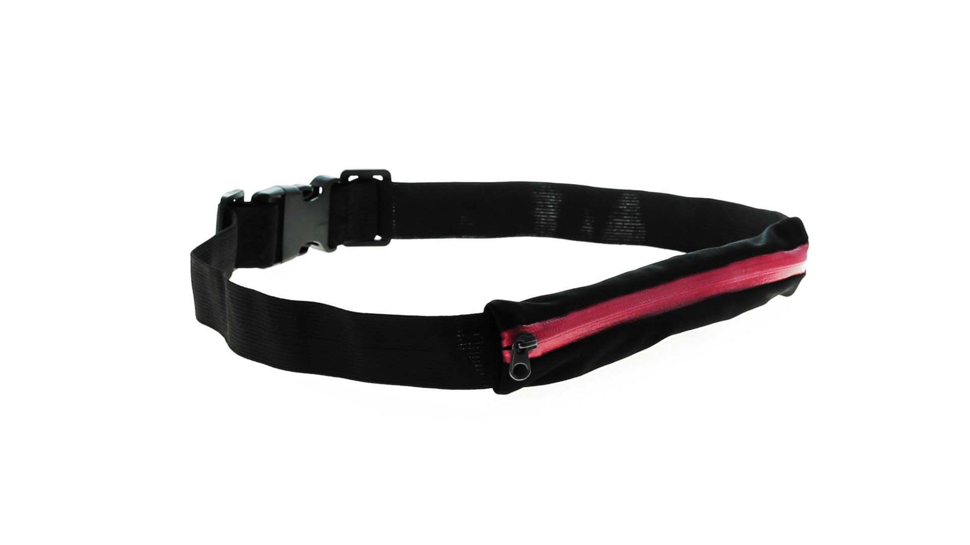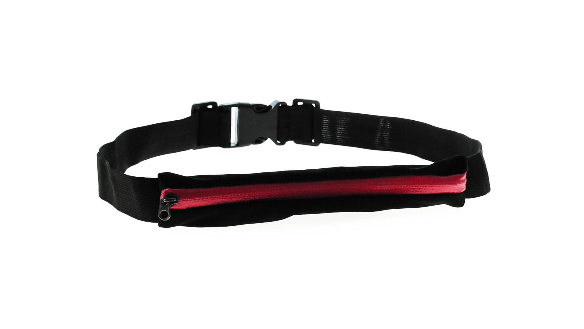Hochwertige Bauchtasche aus spritzwasserresistentem Spandex-Material mit Reissverschluss in verschiedenen kräftigen Farben. Entwickelt für Sport- und Freizeitaktivitäten. Mit Kopfhörerausgang auf der Rückseite und elastischem, verstellbarem Gurt mit Klickverschluss.