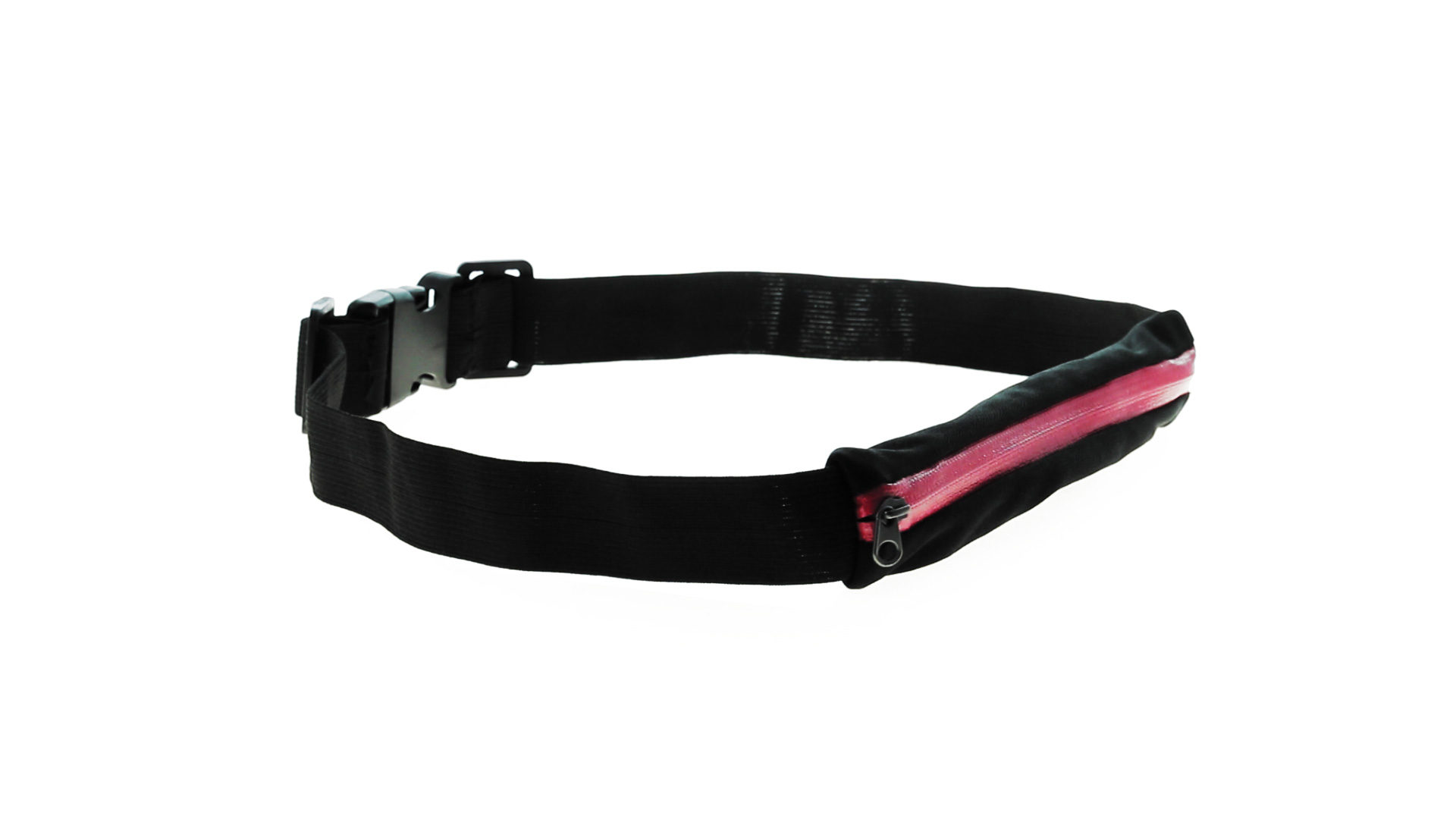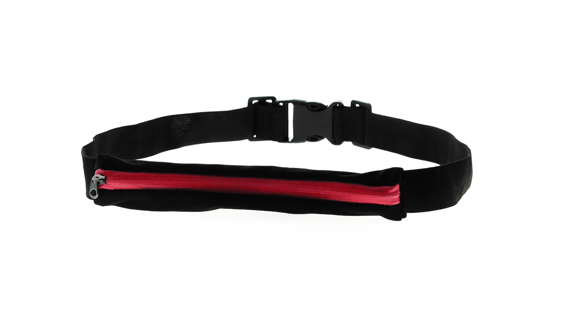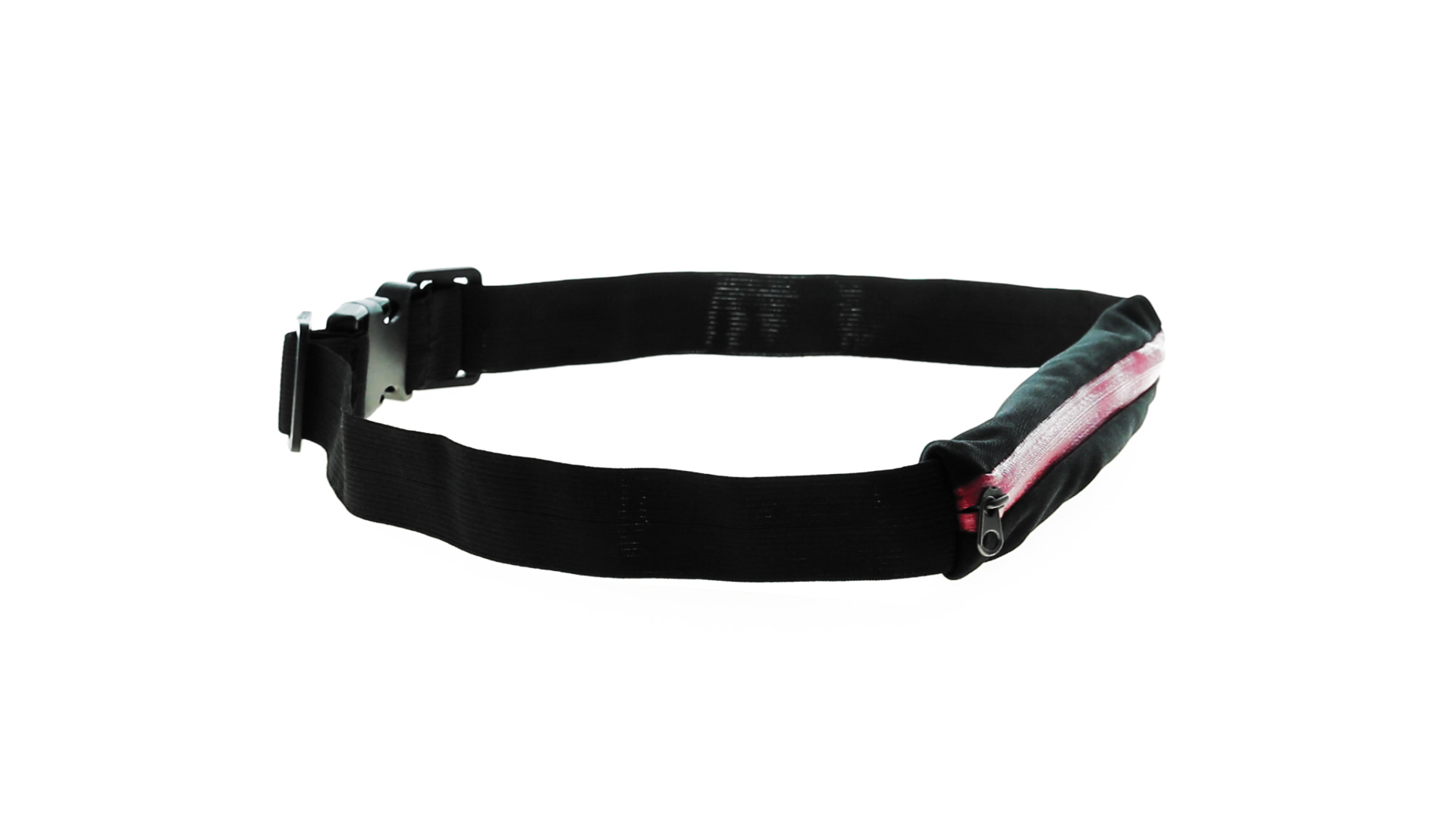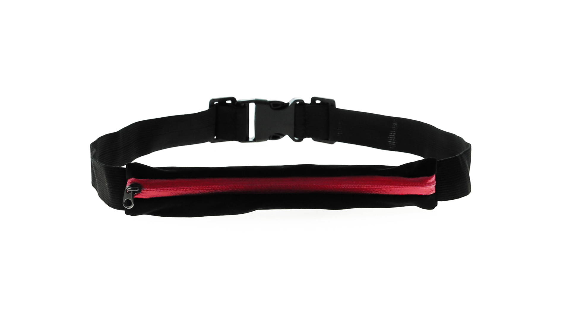 Hochwertige Bauchtasche aus spritzwasserresistentem Spandex-Material mit Reissverschluss in verschiedenen kräftigen Farben. Entwickelt für Sport- und Freizeitaktivitäten. Mit Kopfhörerausgang auf der Rückseite und elastischem, verstellbarem Gurt mit Klickverschluss.