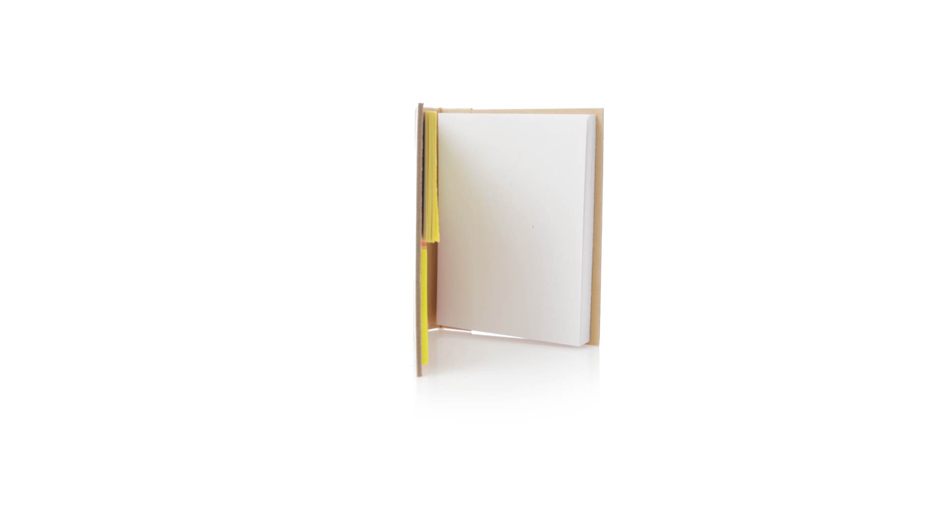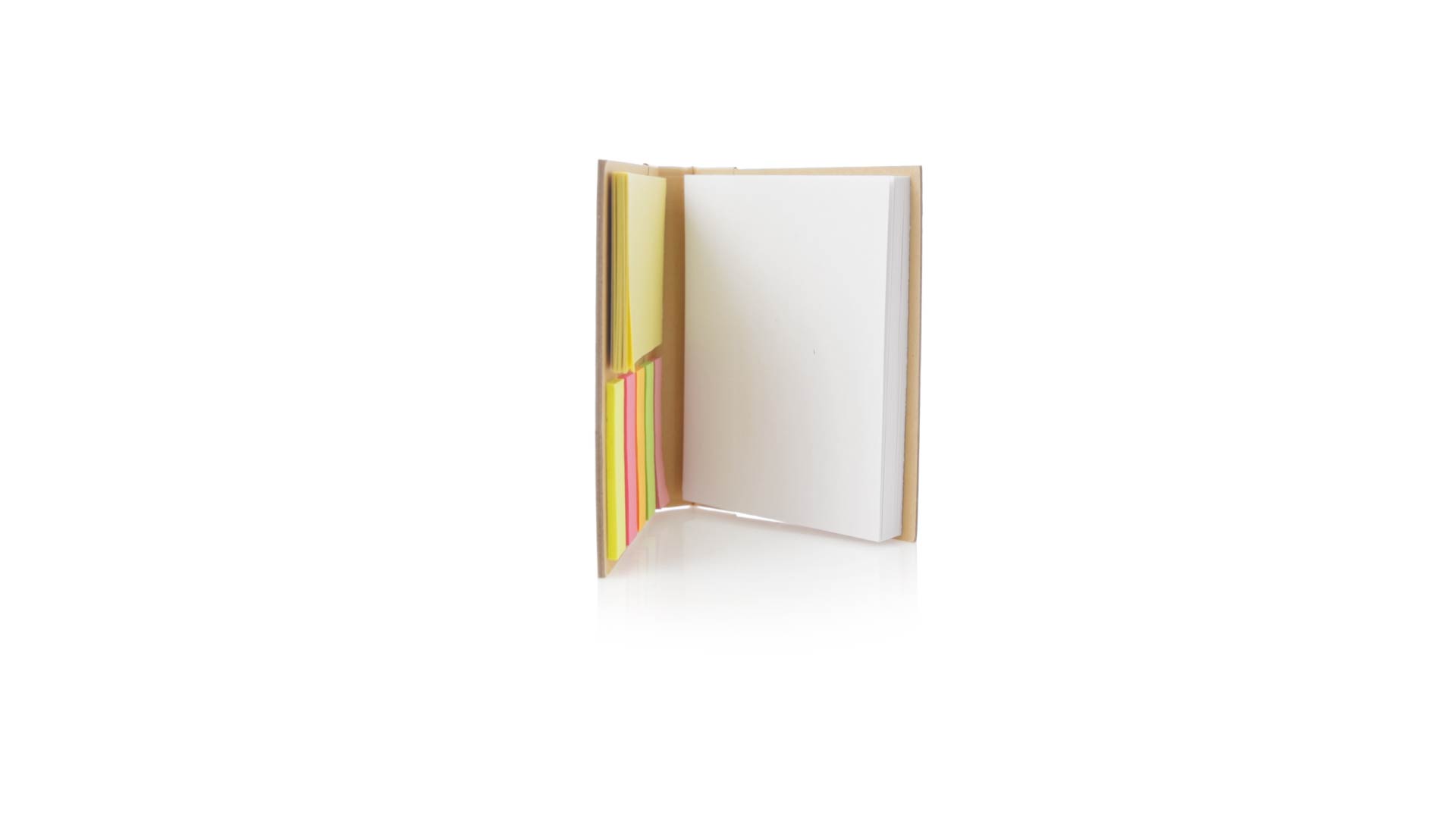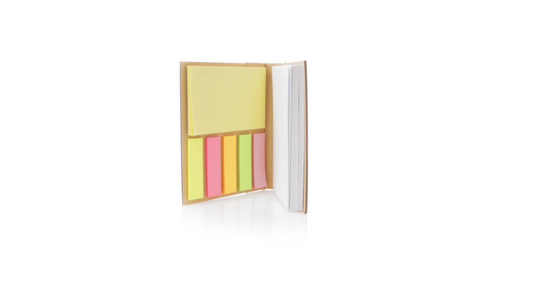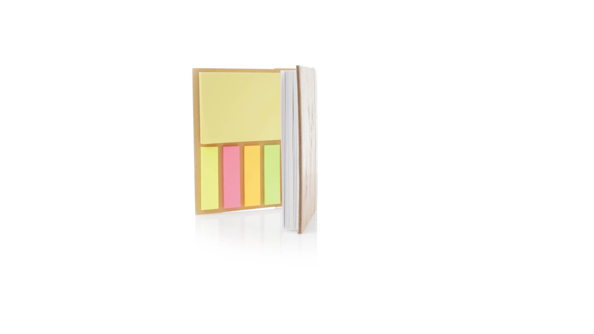 70-Blatt-Notizblock mit hartem Bambusdeckel. Innen mit 25 Haftnotizen von 7,5 x 5 cm und 125 Mini-Haftnotizen von 4,5 x 1,2 cm, in 5 verschiedenen Farben. Präsentiert in einer individuellen Papiertüte.