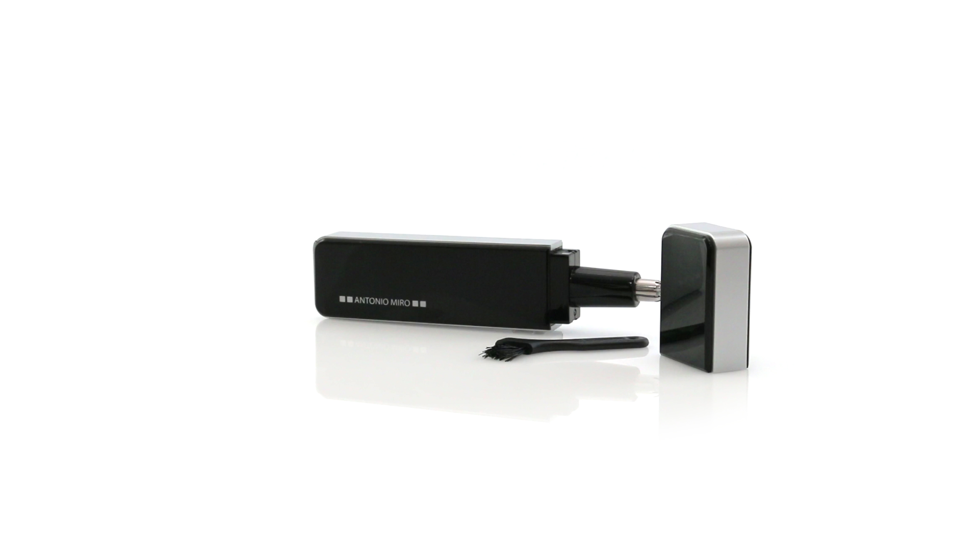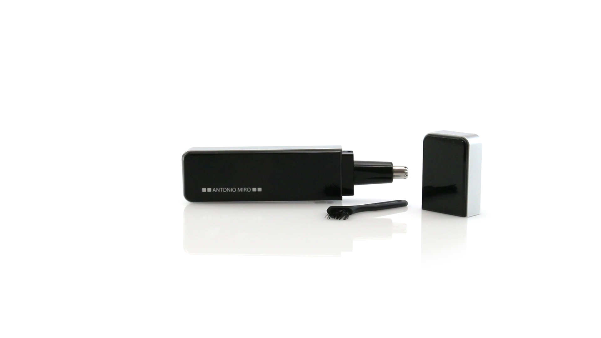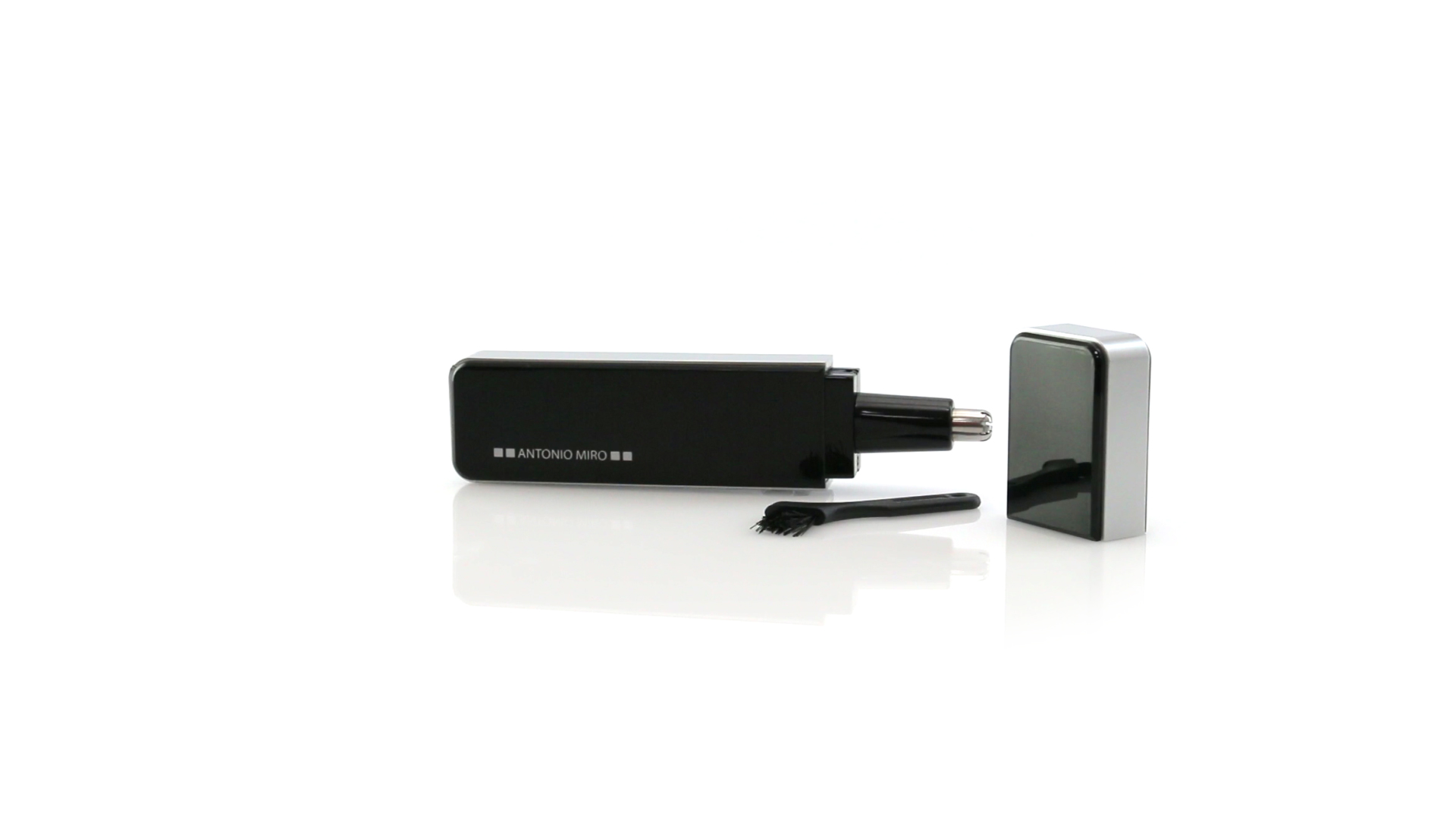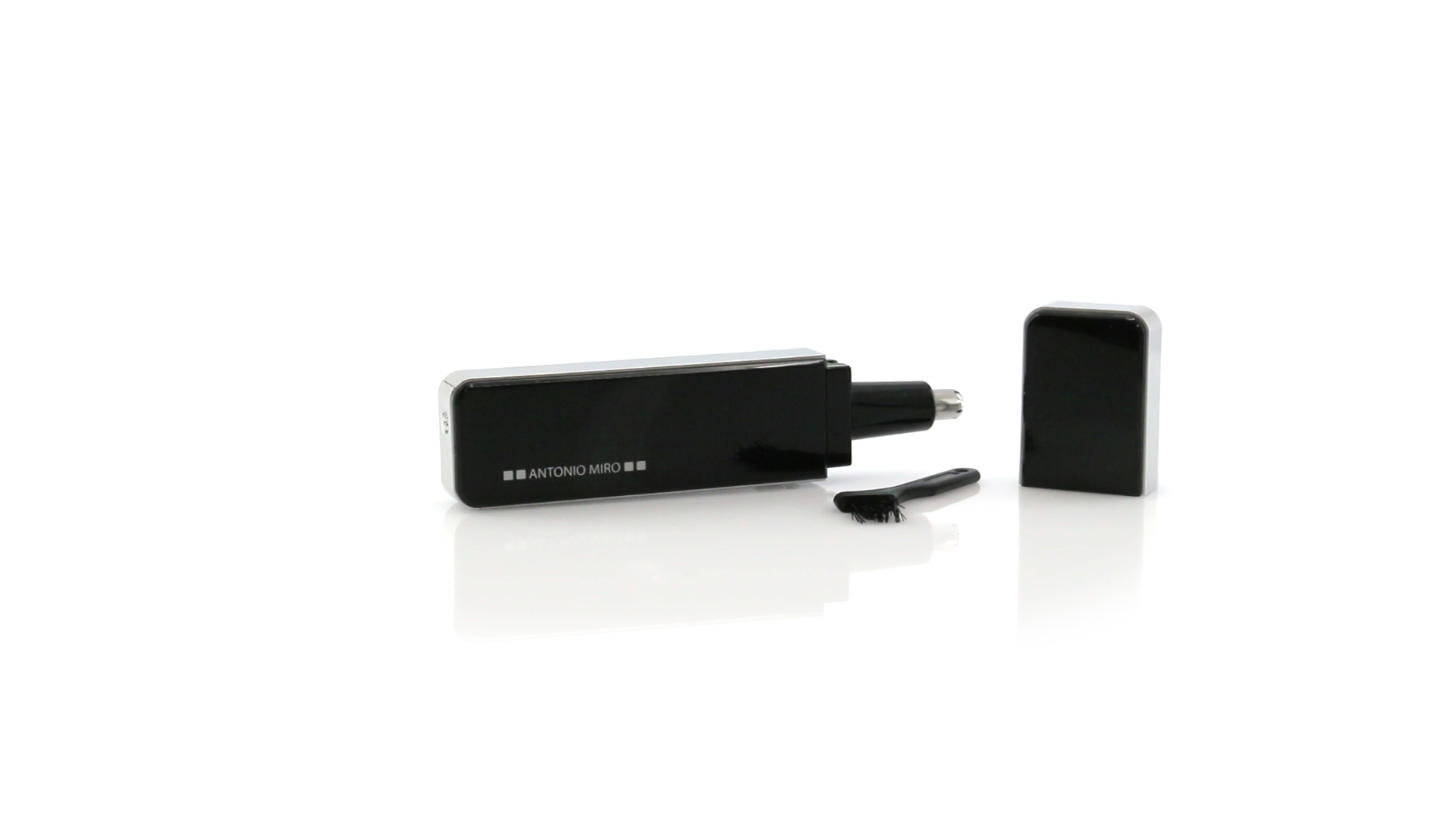 Nasen- und Ohrhaarschneider von Antonio Miró mit elegantem Design und Pinsel zur Reinigung. Präsentiert in einer individuellen Box mit dem Markenlogo. Batteriebetrieben - 2 x AAA nicht inklusive.