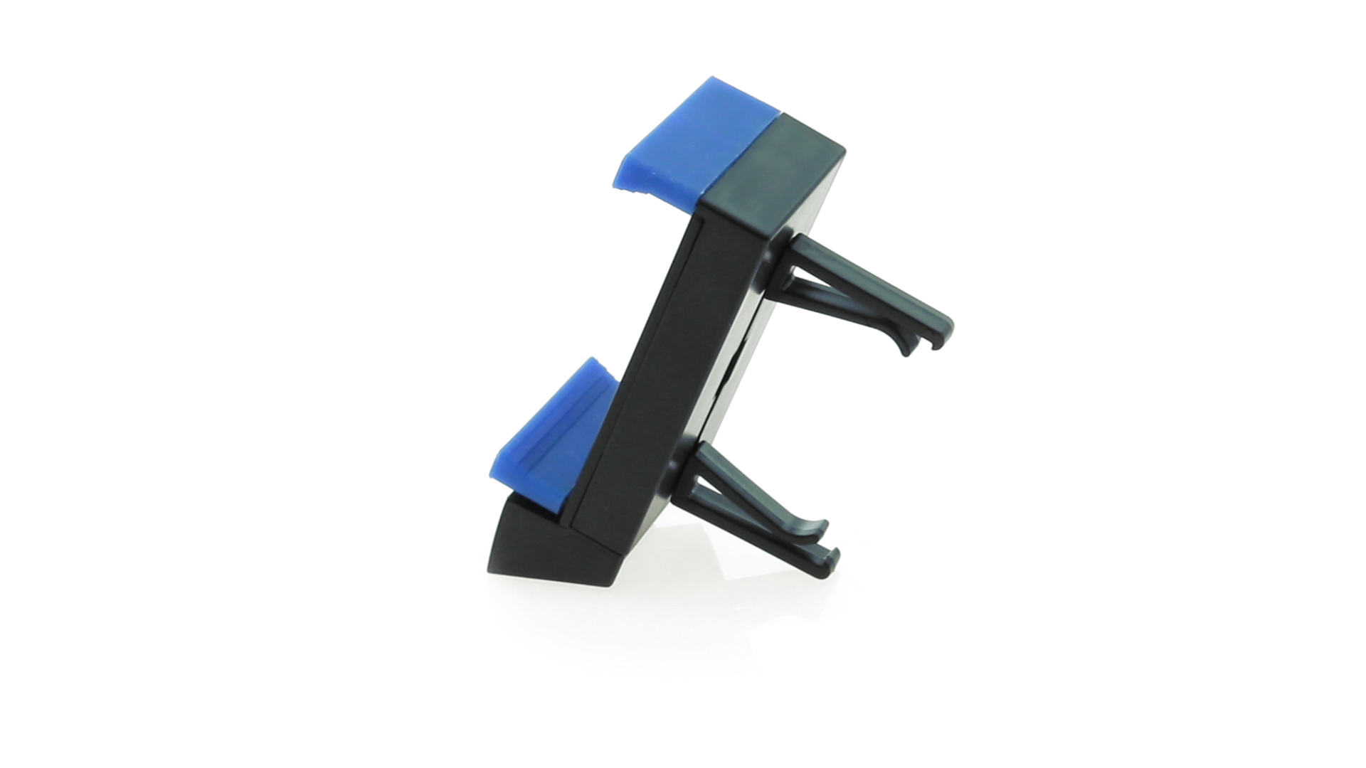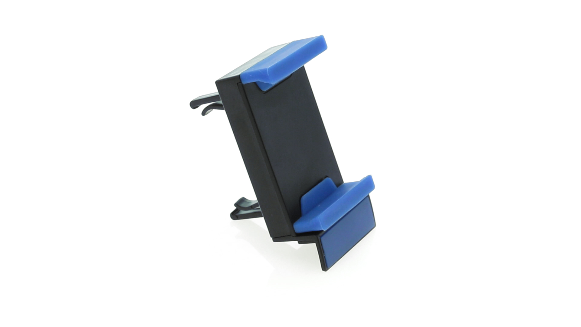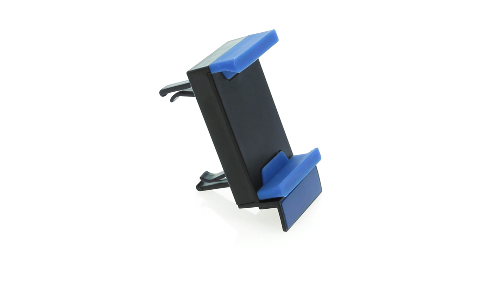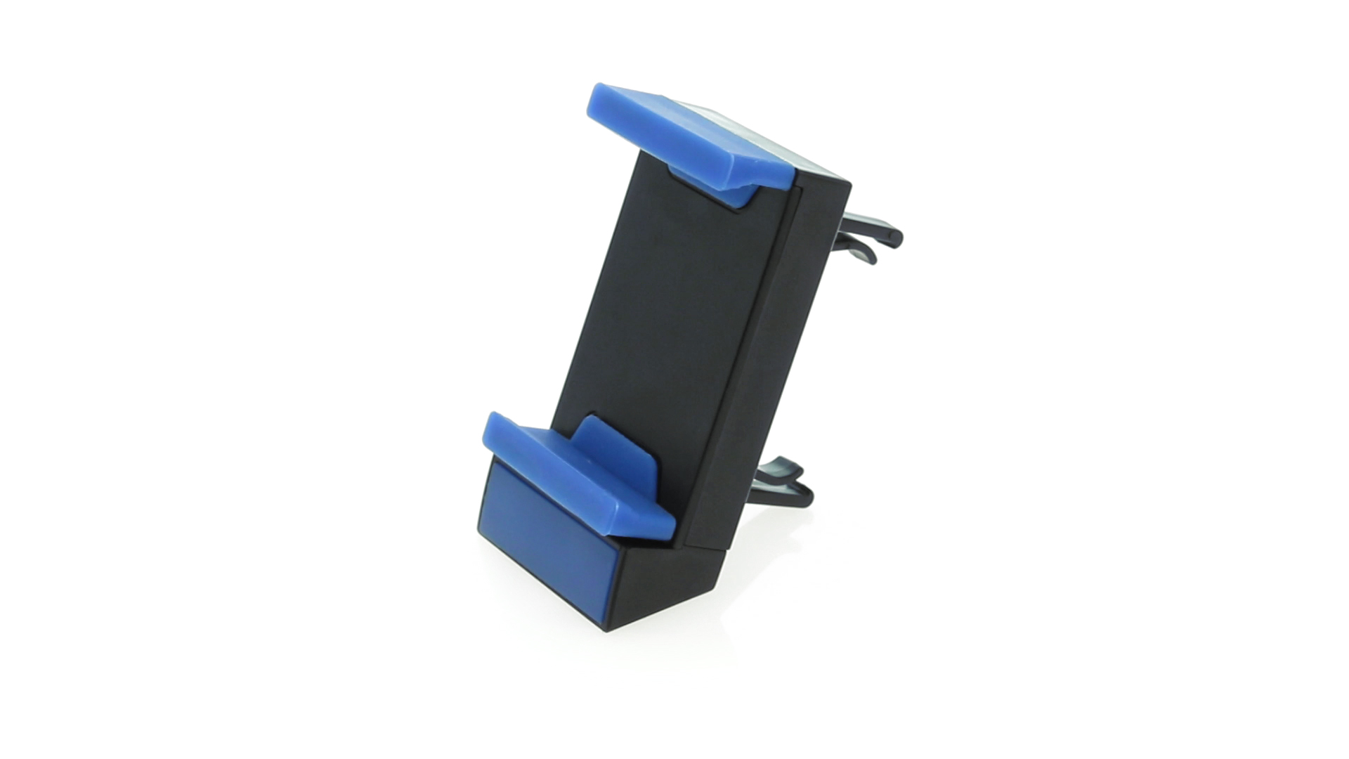 Origineller Smartphone-Halter mit doppeltem Befestigungssystem für die Autolüftung. Mit elegantem, zweifarbigem Design sowie Polsterung im oberen und unteren Teil der Halterung für optimalen Halt und Schutz des Smartphones. Farblich passende Druckfläche auf der Vorderseite - speziell entworfen für den Tampondruck.