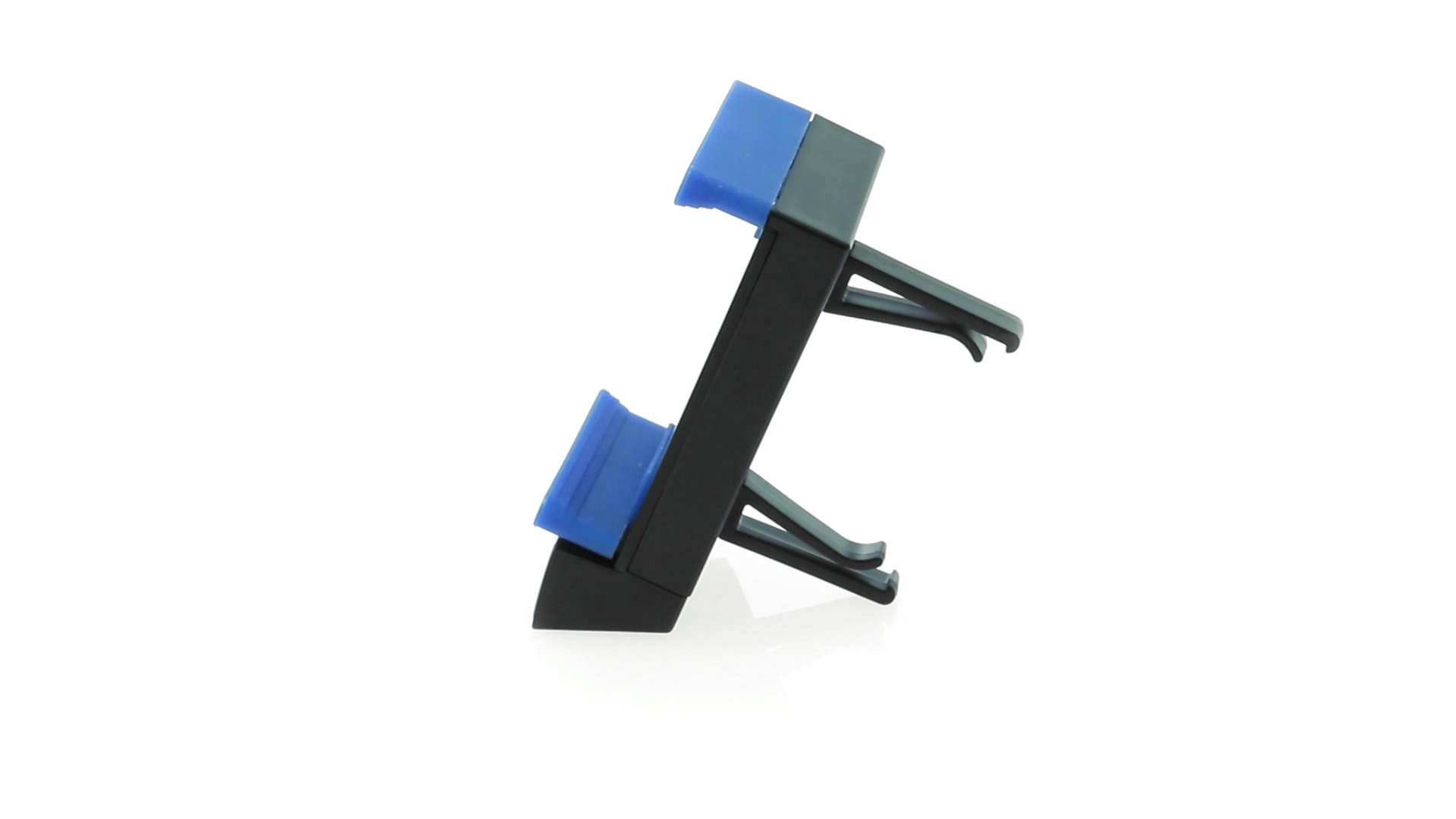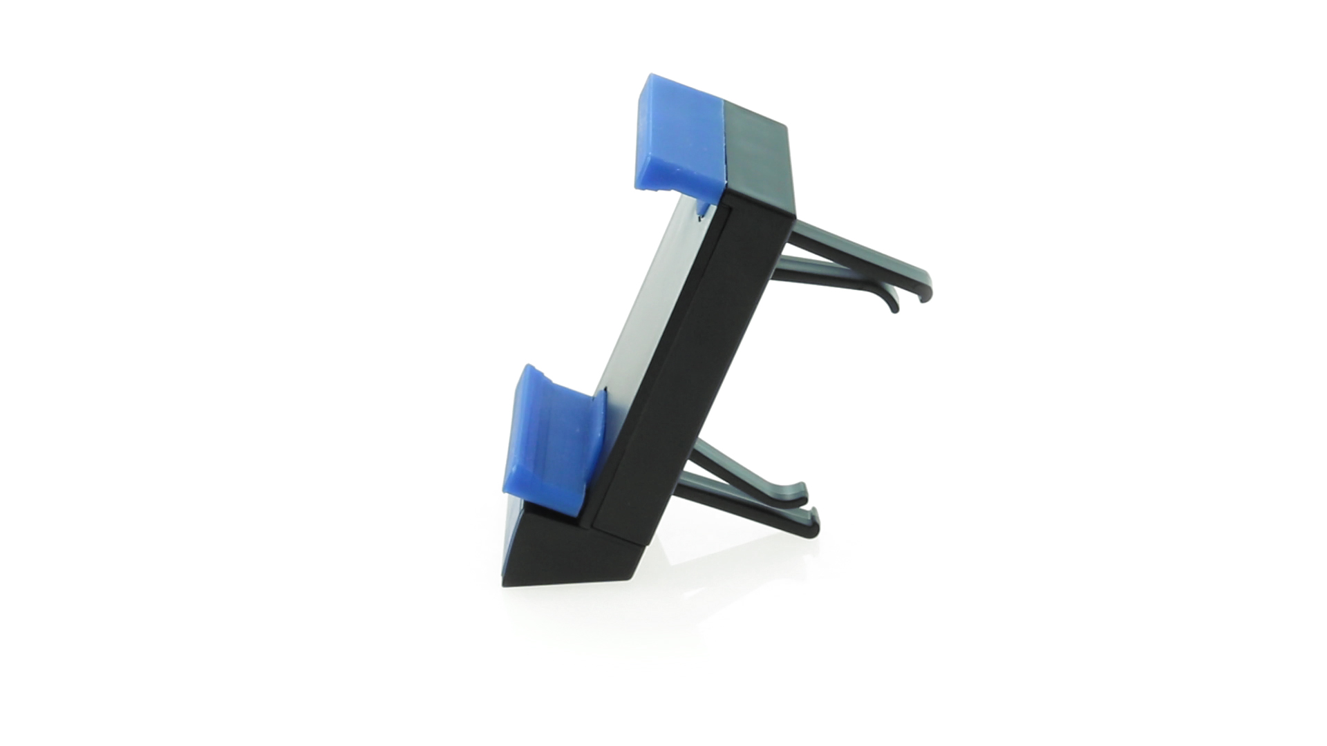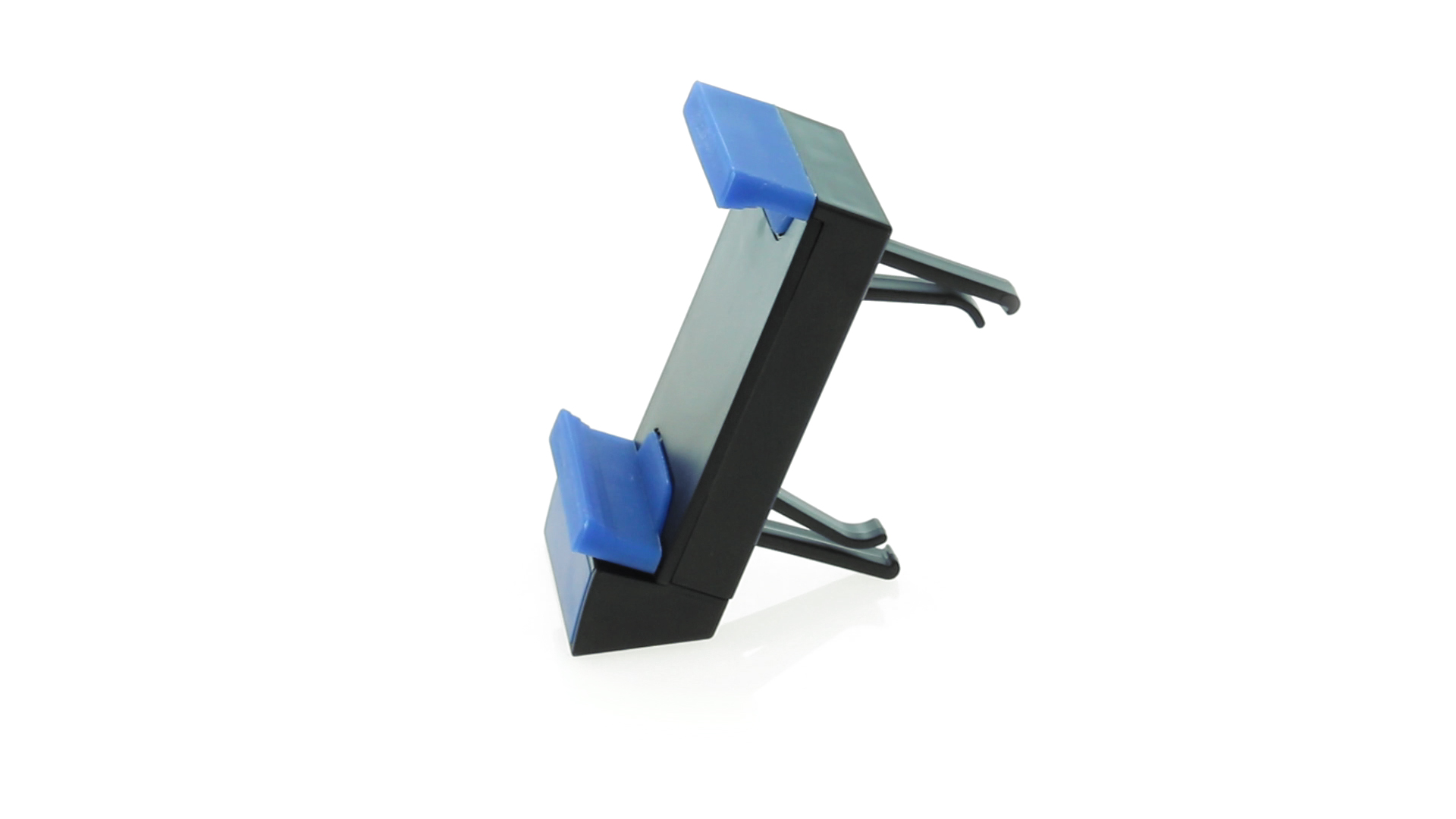Origineller Smartphone-Halter mit doppeltem Befestigungssystem für die Autolüftung. Mit elegantem, zweifarbigem Design sowie Polsterung im oberen und unteren Teil der Halterung für optimalen Halt und Schutz des Smartphones. Farblich passende Druckfläche auf der Vorderseite - speziell entworfen für den Tampondruck.