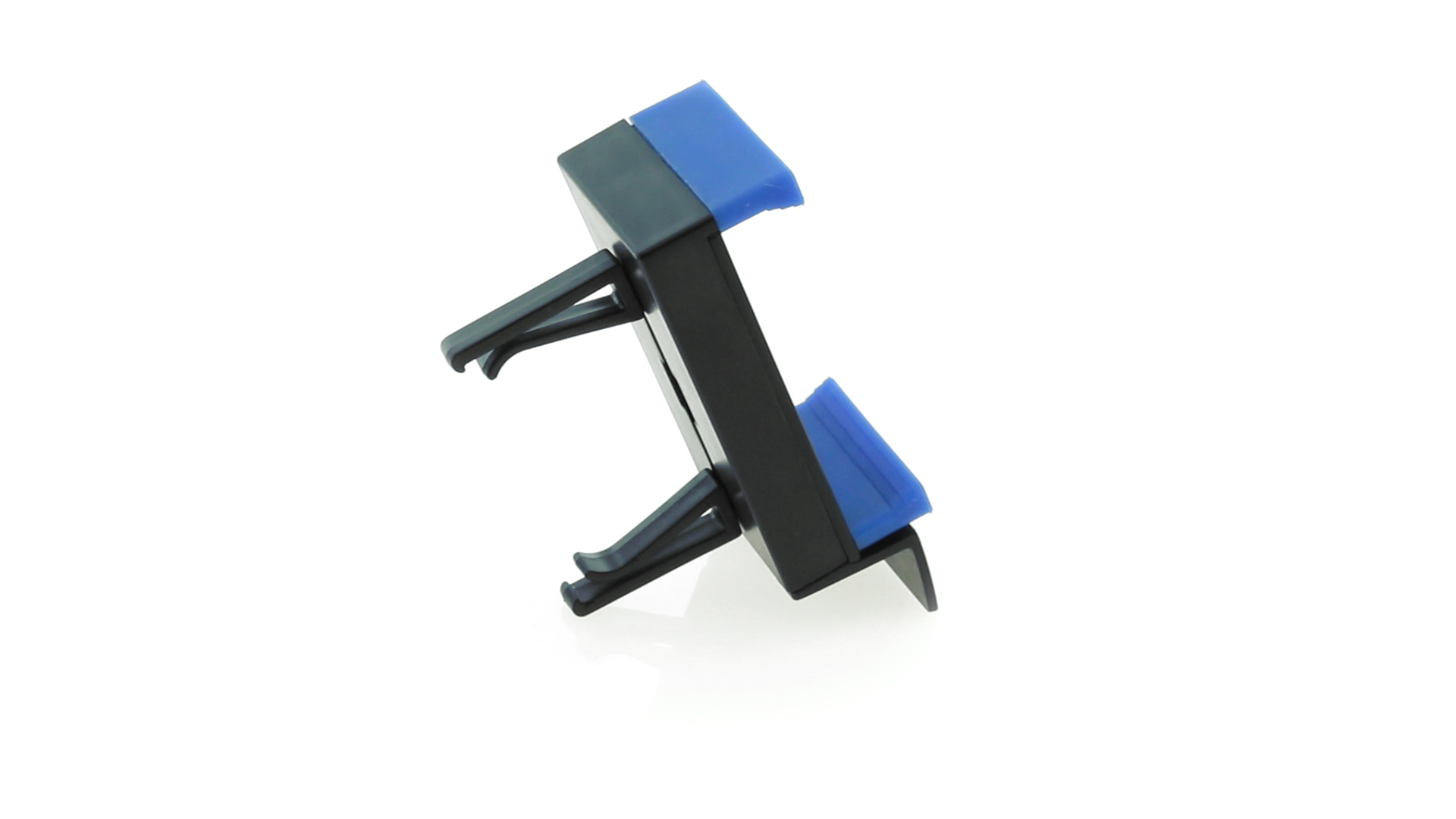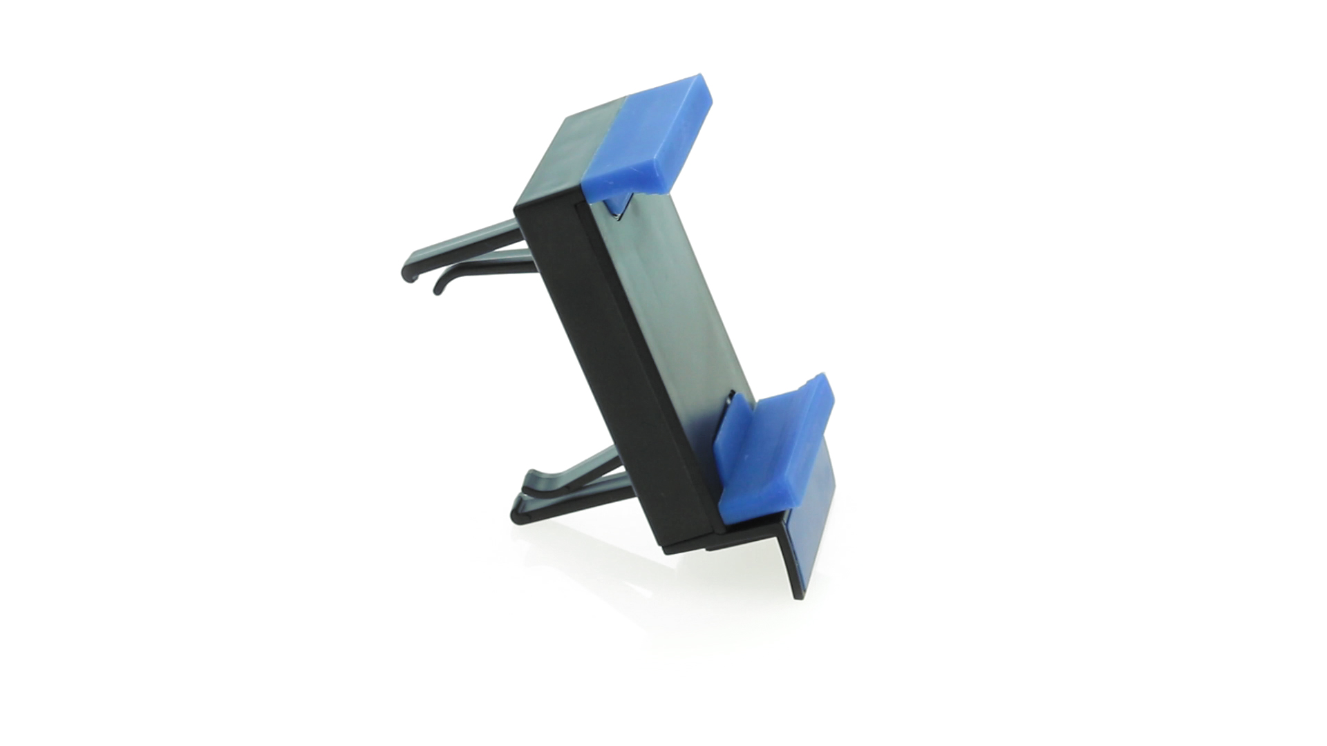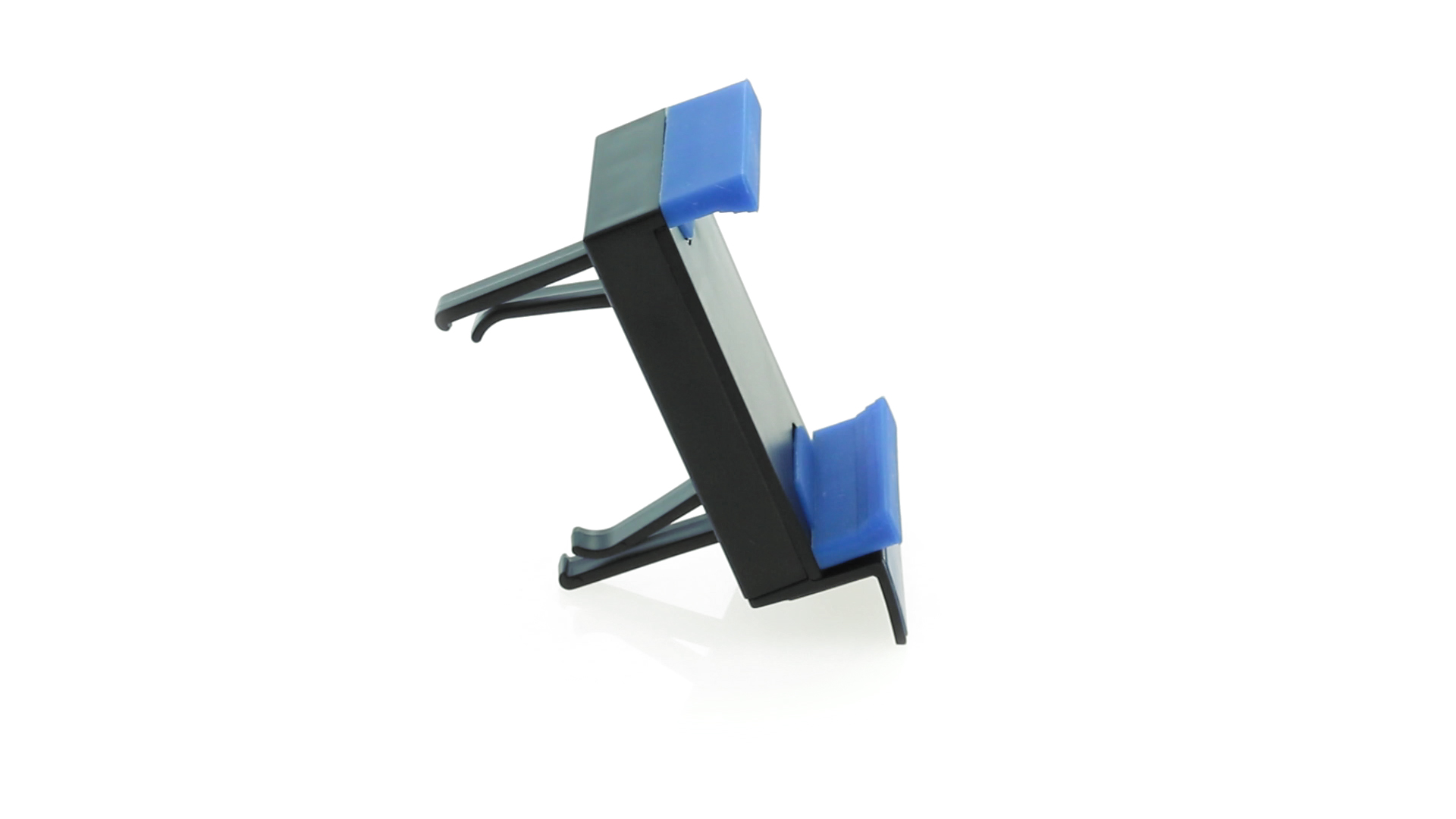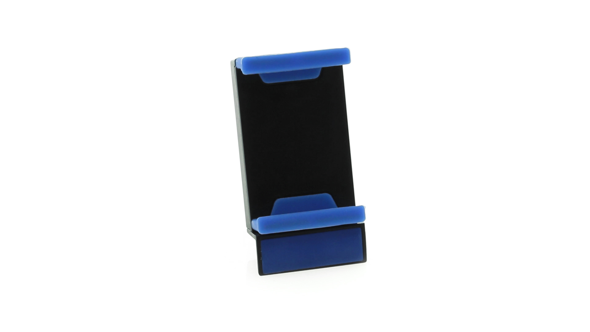 Origineller Smartphone-Halter mit doppeltem Befestigungssystem für die Autolüftung. Mit elegantem, zweifarbigem Design sowie Polsterung im oberen und unteren Teil der Halterung für optimalen Halt und Schutz des Smartphones. Farblich passende Druckfläche auf der Vorderseite - speziell entworfen für den Tampondruck.
