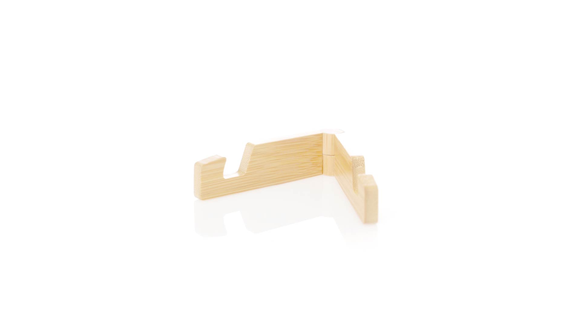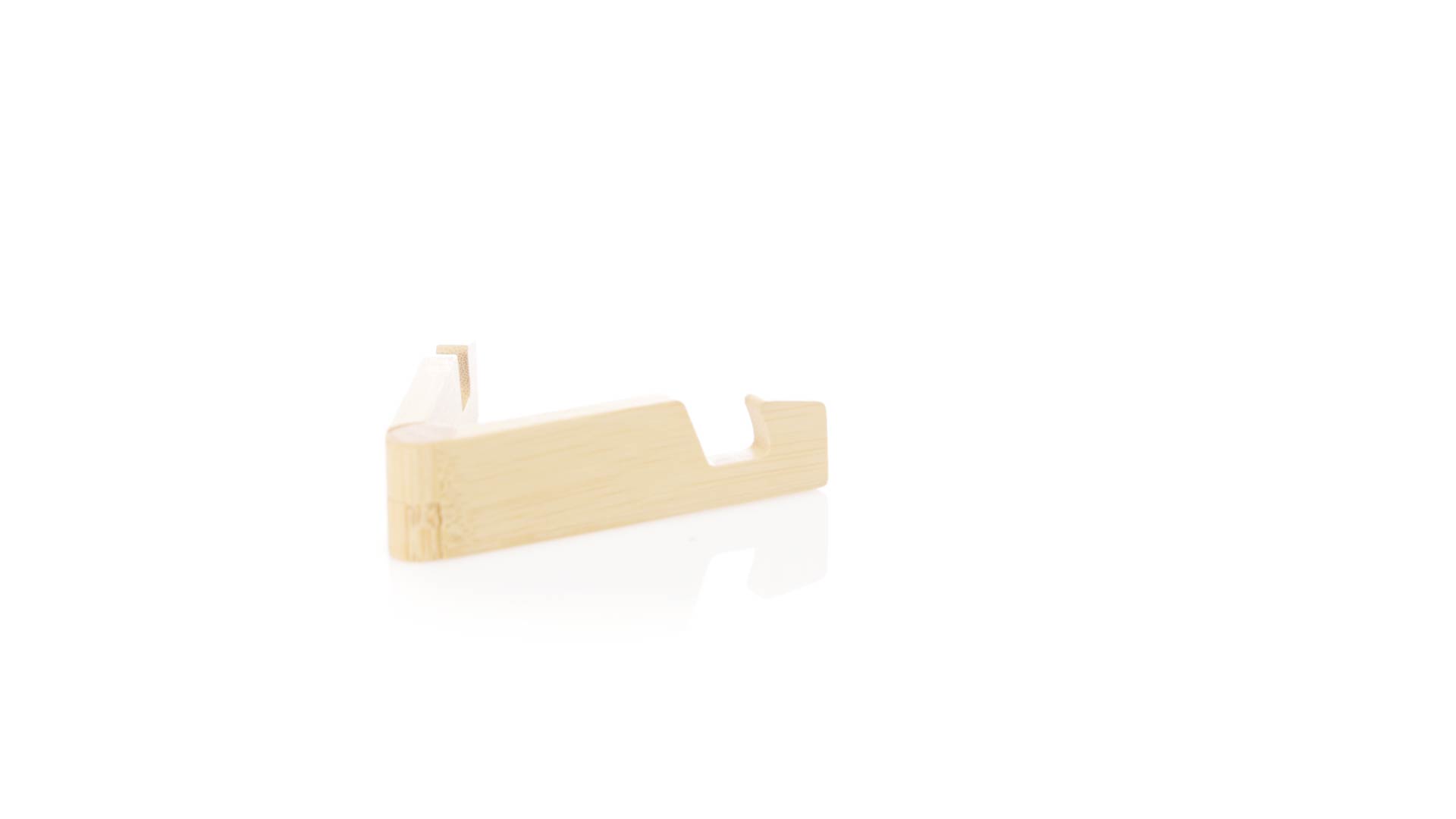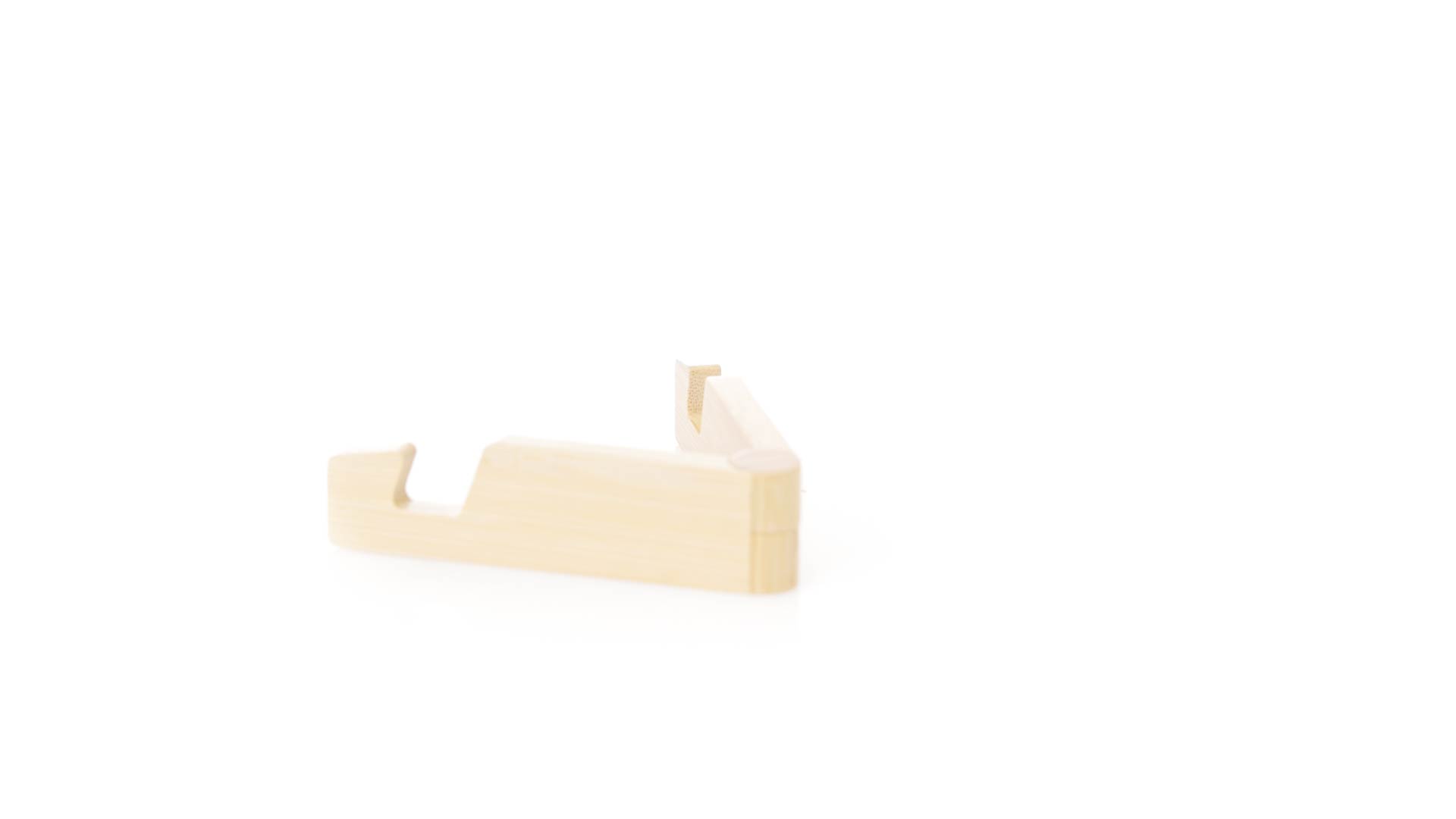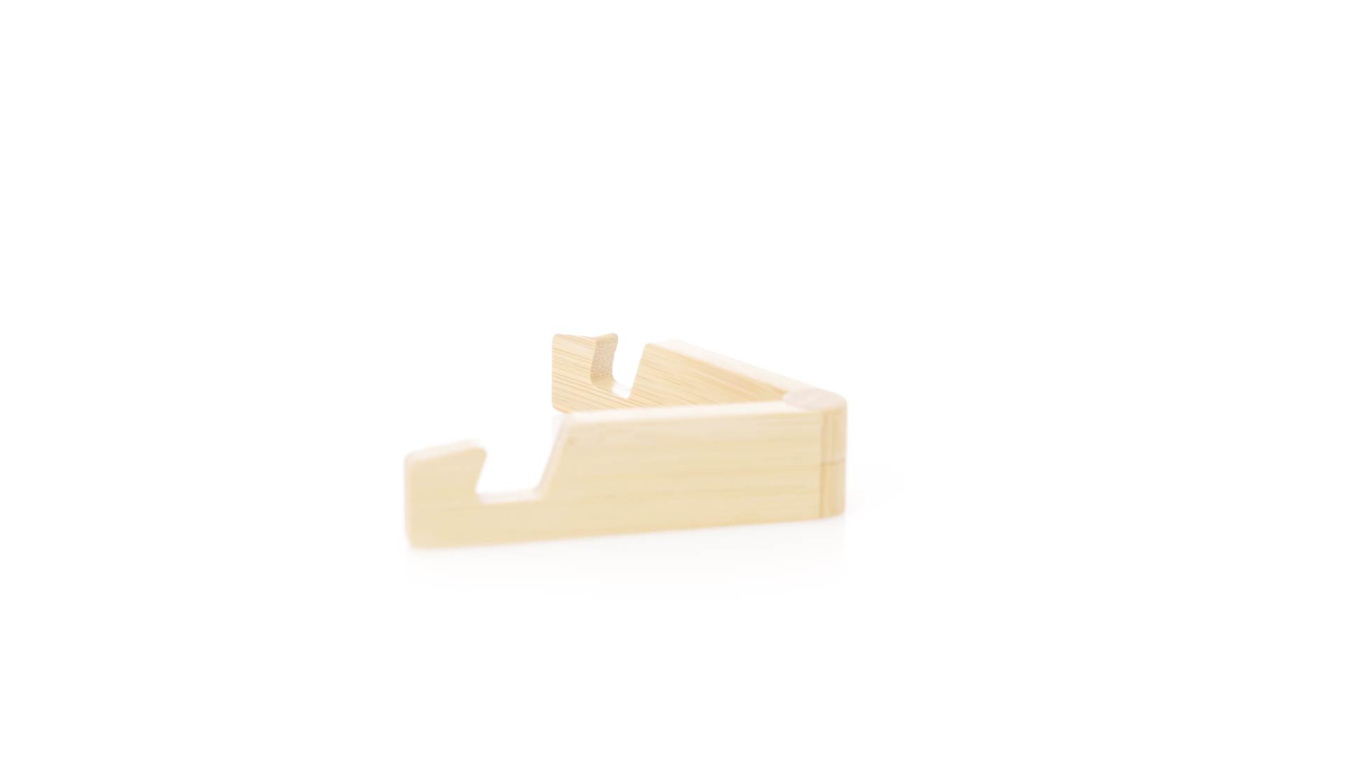 Faltbarer Halter für mobile Geräte aus widerstandsfähigem Bambus. Mit verstellbaren Füssen und einzeln in einer recycelten Papiertüte präsentiert.Materialien wie Bambus fördern die Verwendung von natürlichen Rohstoffen und reduzieren den Schadstoffausstoss. Es handelt sich um eine sehr widerstandsfähige und vielseitige Pflanze, die schnell wächst und sich regeneriert, was sie zu einer hervorragenden Alternative zu herkömmlichem Holz macht.