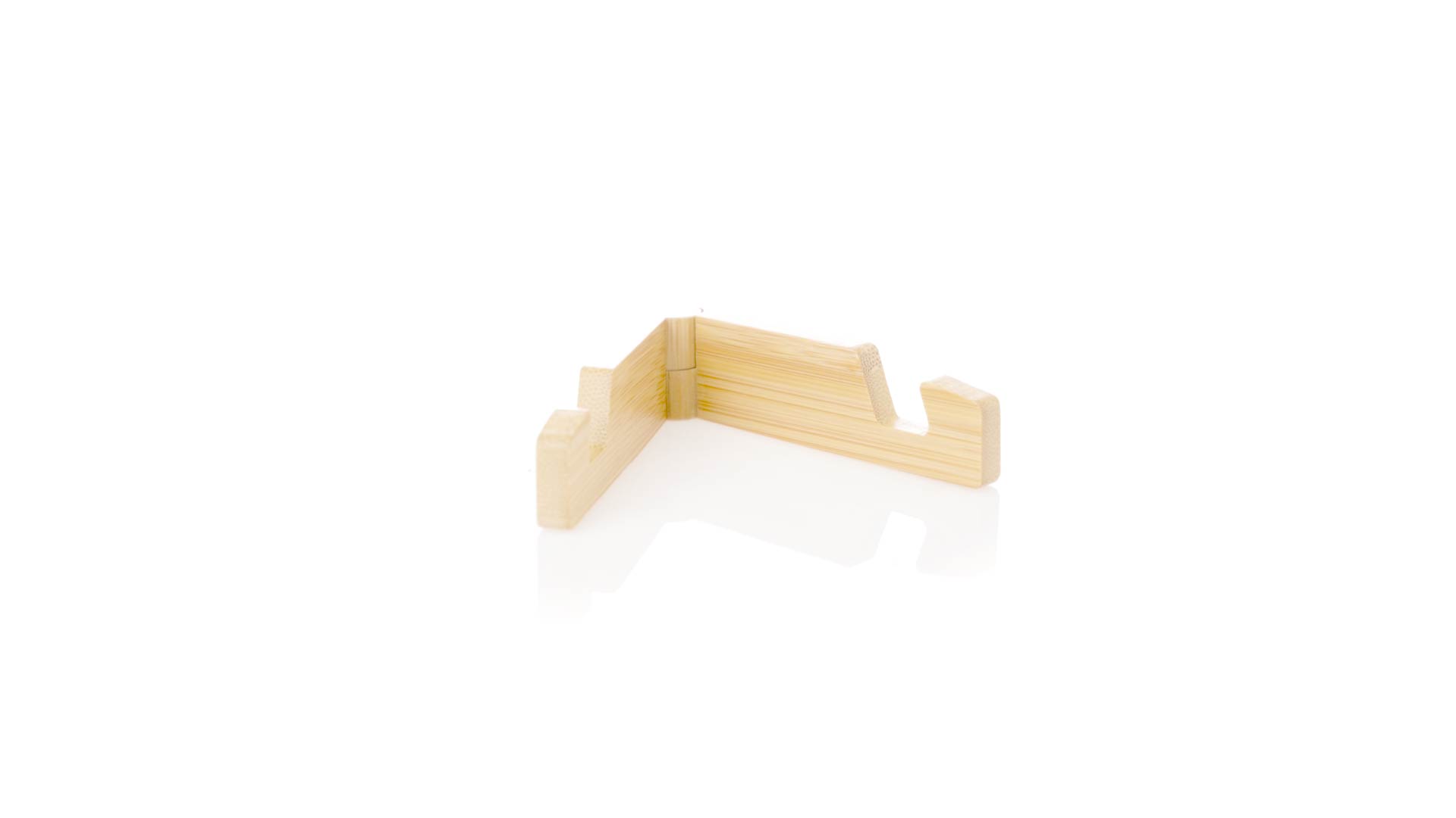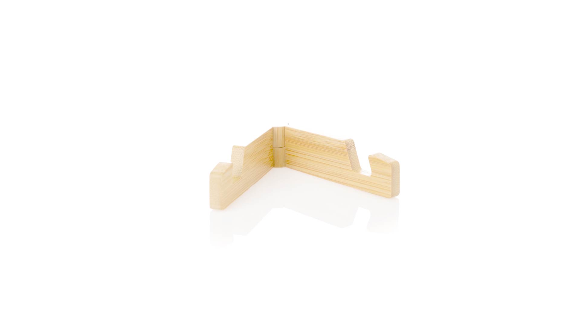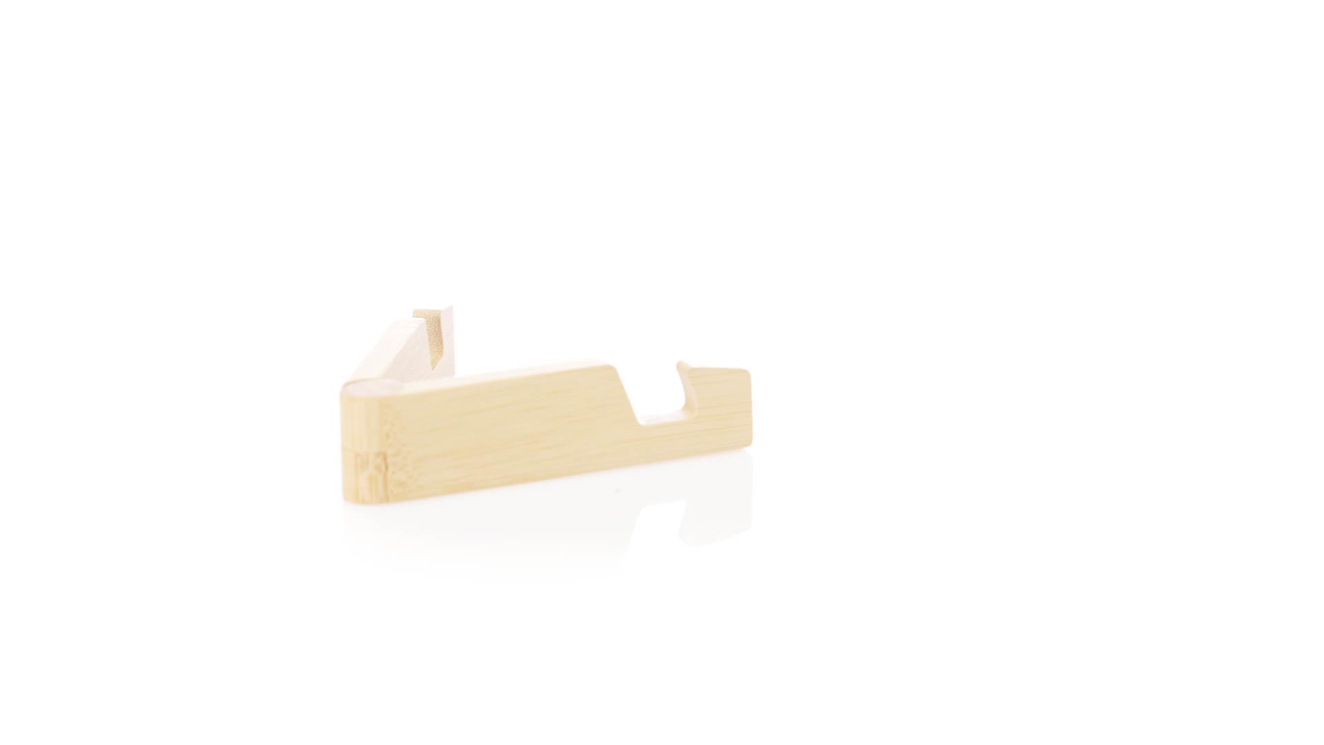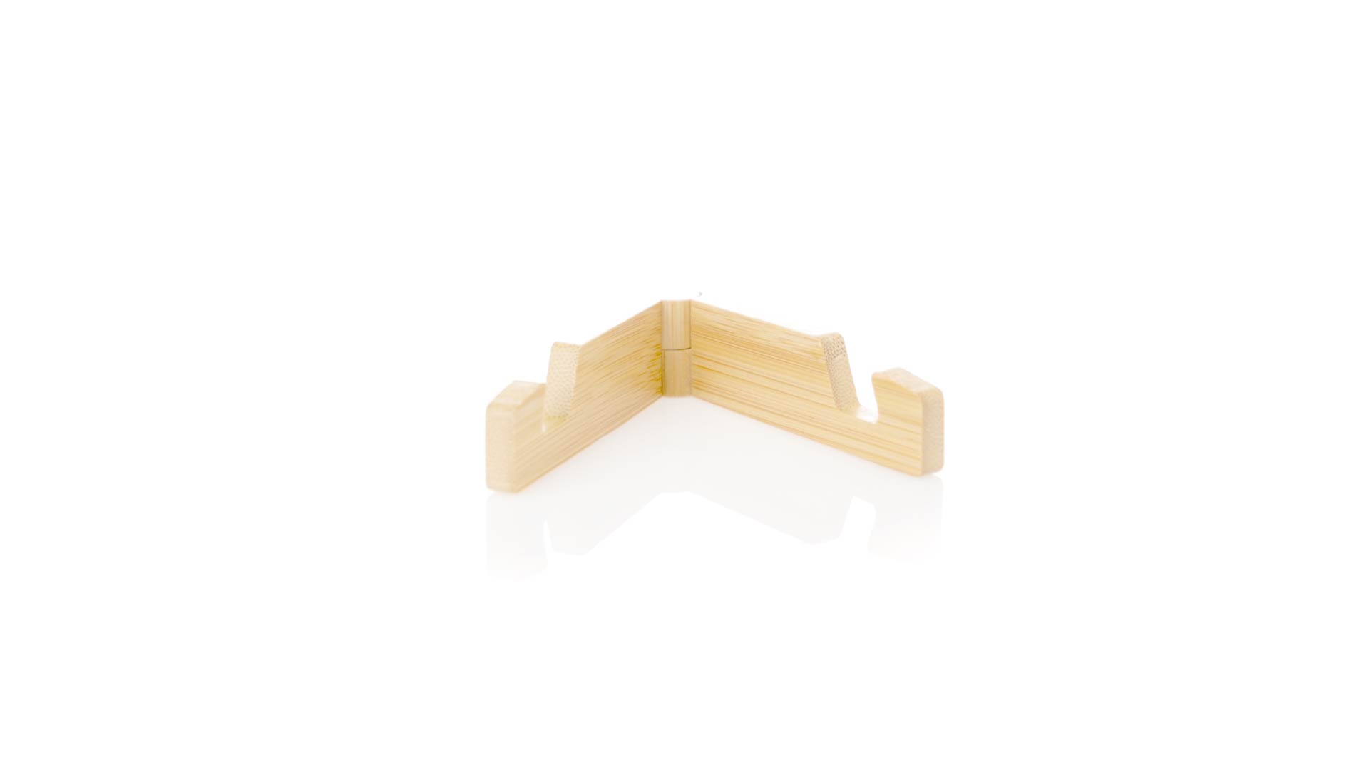 Faltbarer Halter für mobile Geräte aus widerstandsfähigem Bambus. Mit verstellbaren Füssen und einzeln in einer recycelten Papiertüte präsentiert.Materialien wie Bambus fördern die Verwendung von natürlichen Rohstoffen und reduzieren den Schadstoffausstoss. Es handelt sich um eine sehr widerstandsfähige und vielseitige Pflanze, die schnell wächst und sich regeneriert, was sie zu einer hervorragenden Alternative zu herkömmlichem Holz macht.