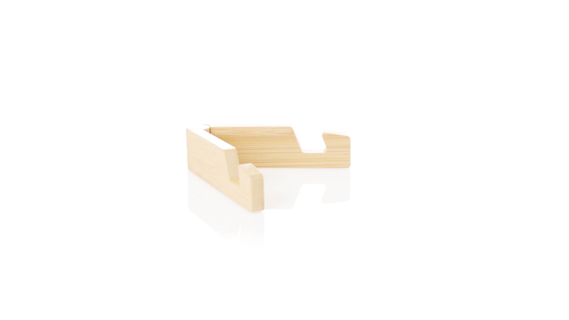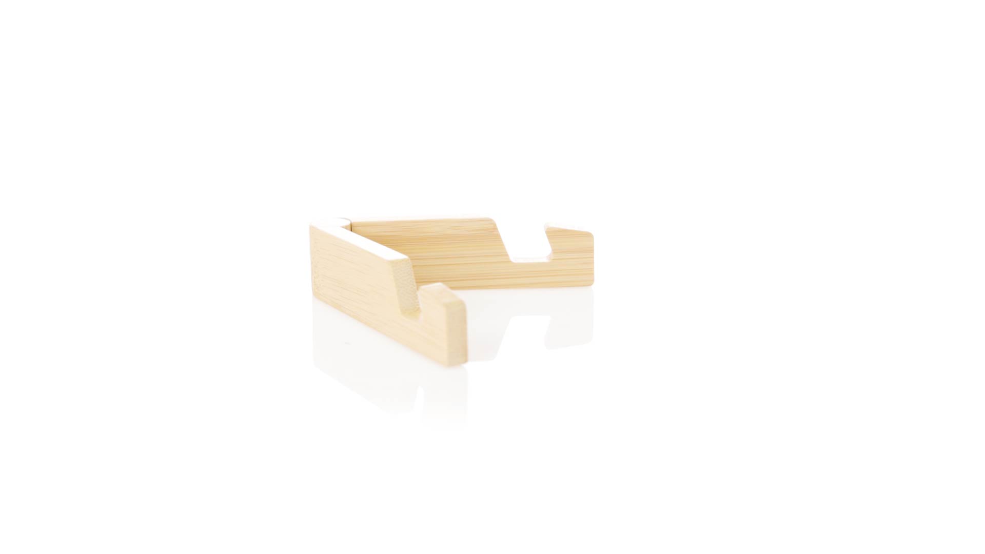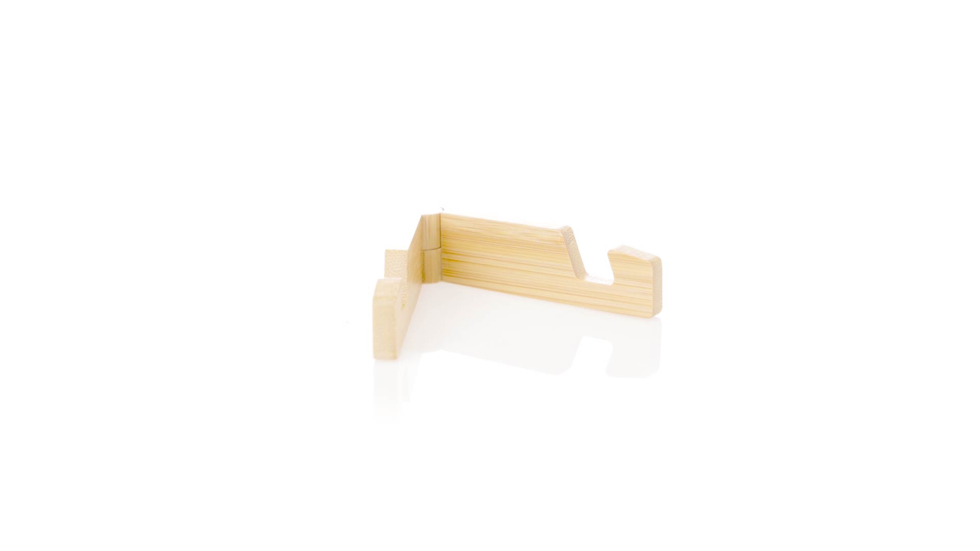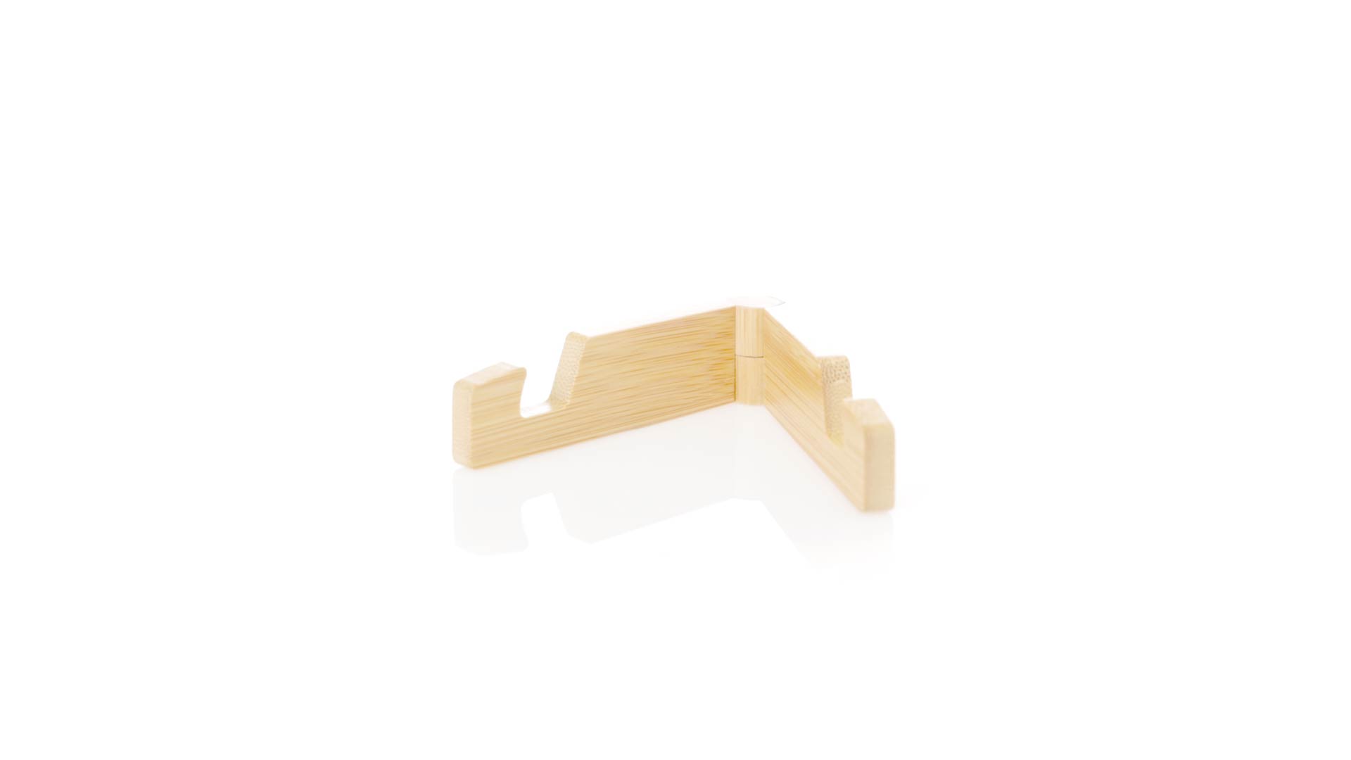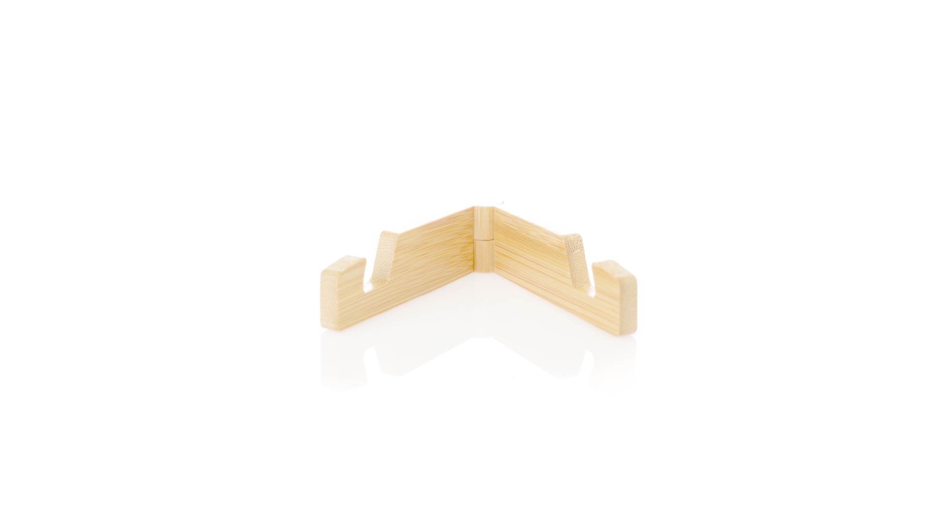 Faltbarer Halter für mobile Geräte aus widerstandsfähigem Bambus. Mit verstellbaren Füssen und einzeln in einer recycelten Papiertüte präsentiert.Materialien wie Bambus fördern die Verwendung von natürlichen Rohstoffen und reduzieren den Schadstoffausstoss. Es handelt sich um eine sehr widerstandsfähige und vielseitige Pflanze, die schnell wächst und sich regeneriert, was sie zu einer hervorragenden Alternative zu herkömmlichem Holz macht.