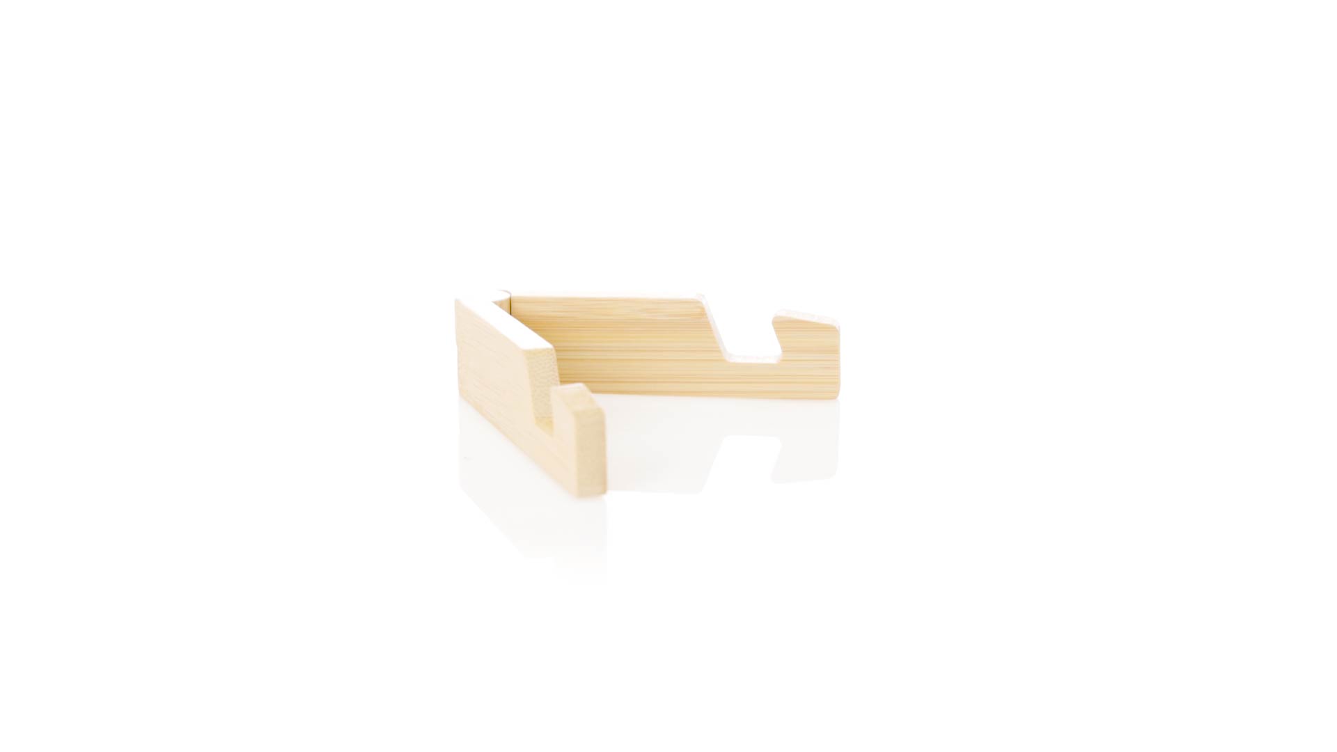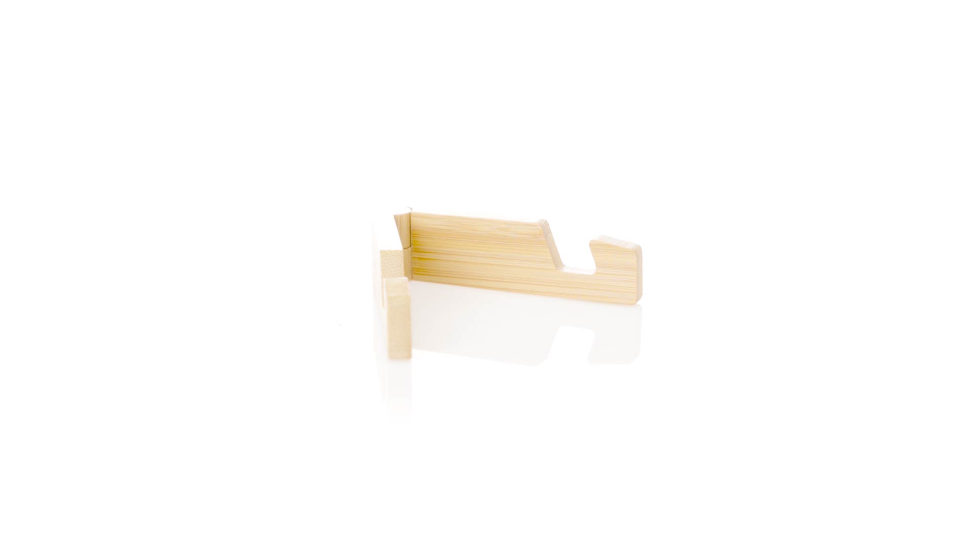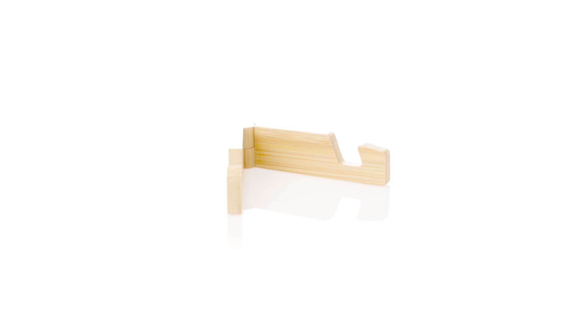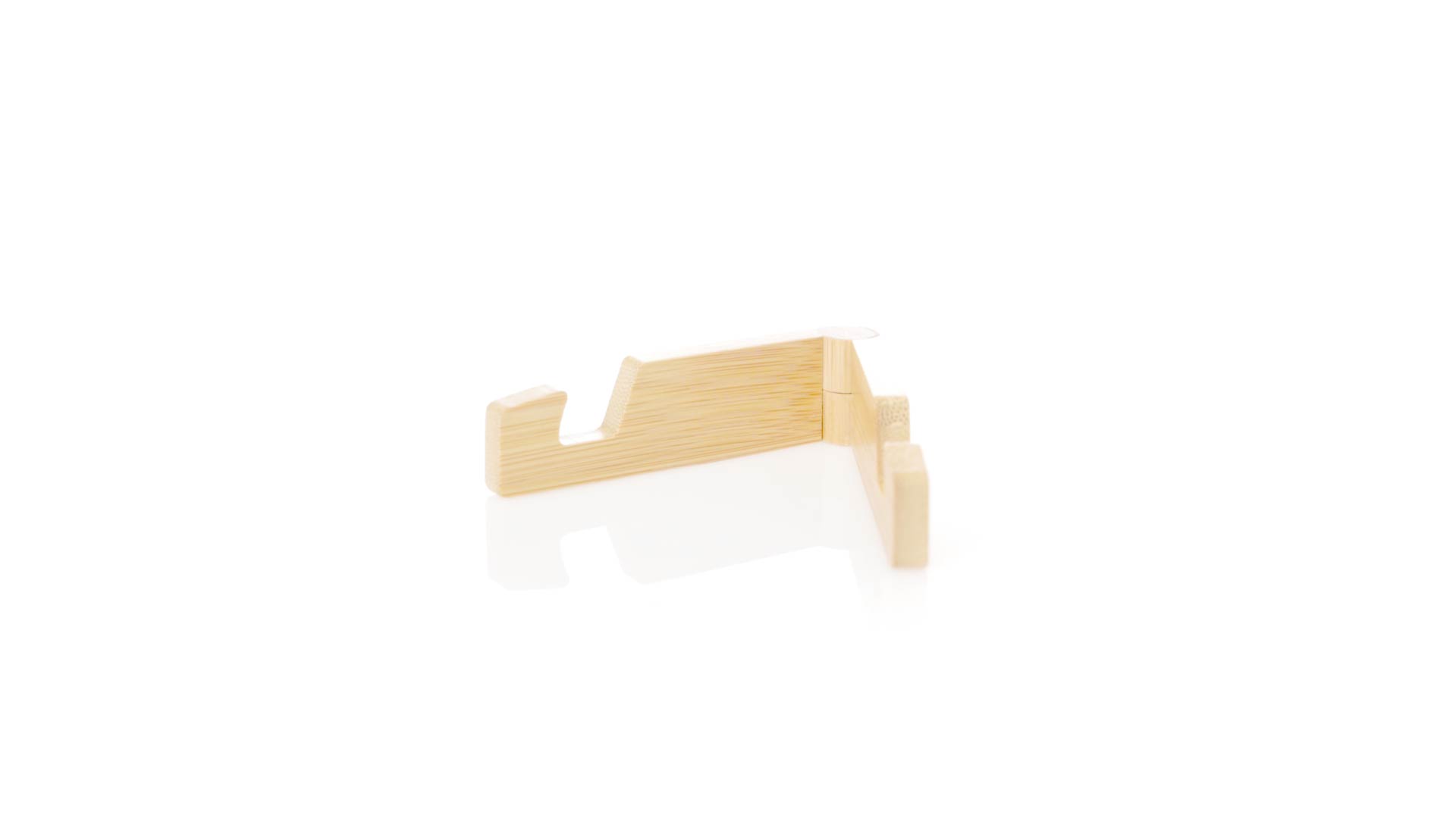 Faltbarer Halter für mobile Geräte aus widerstandsfähigem Bambus. Mit verstellbaren Füssen und einzeln in einer recycelten Papiertüte präsentiert.Materialien wie Bambus fördern die Verwendung von natürlichen Rohstoffen und reduzieren den Schadstoffausstoss. Es handelt sich um eine sehr widerstandsfähige und vielseitige Pflanze, die schnell wächst und sich regeneriert, was sie zu einer hervorragenden Alternative zu herkömmlichem Holz macht.