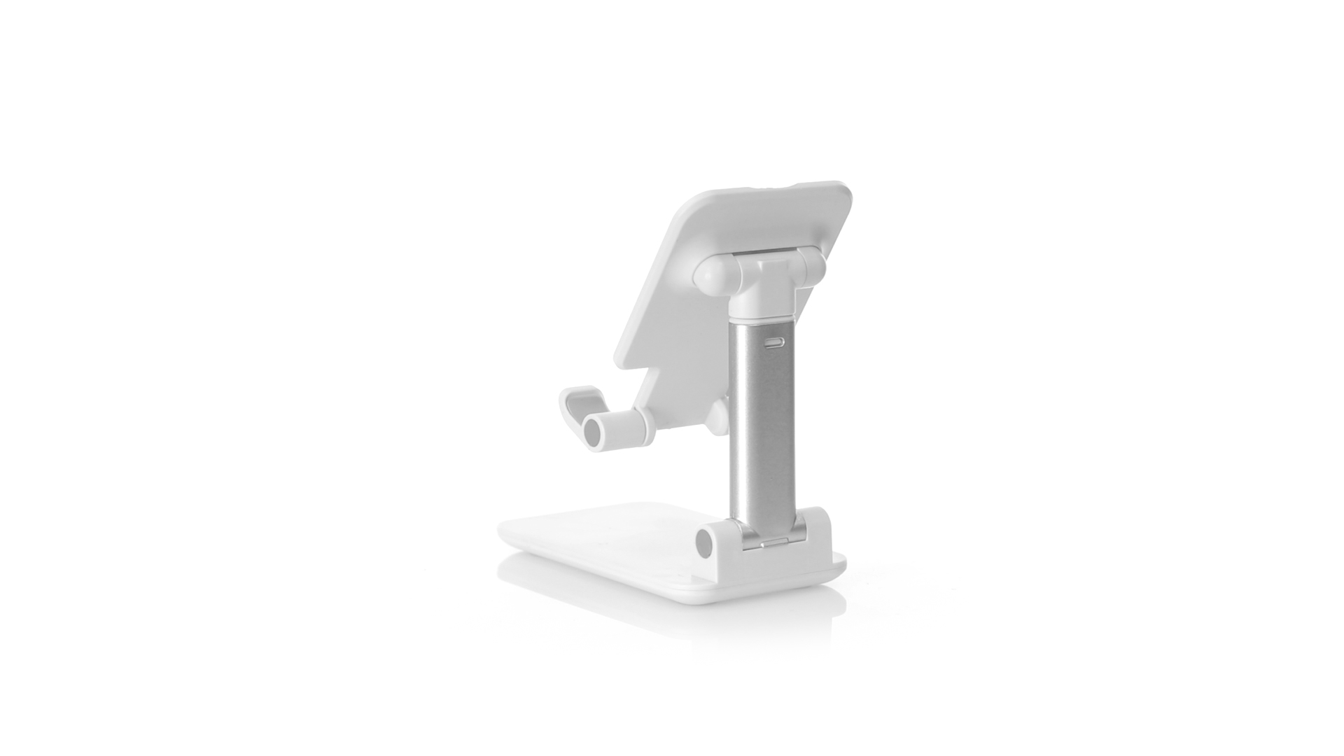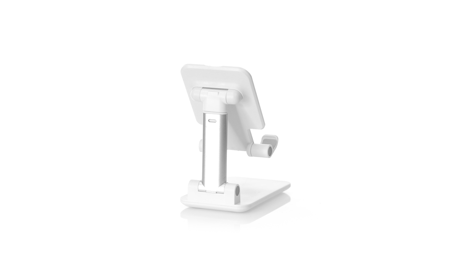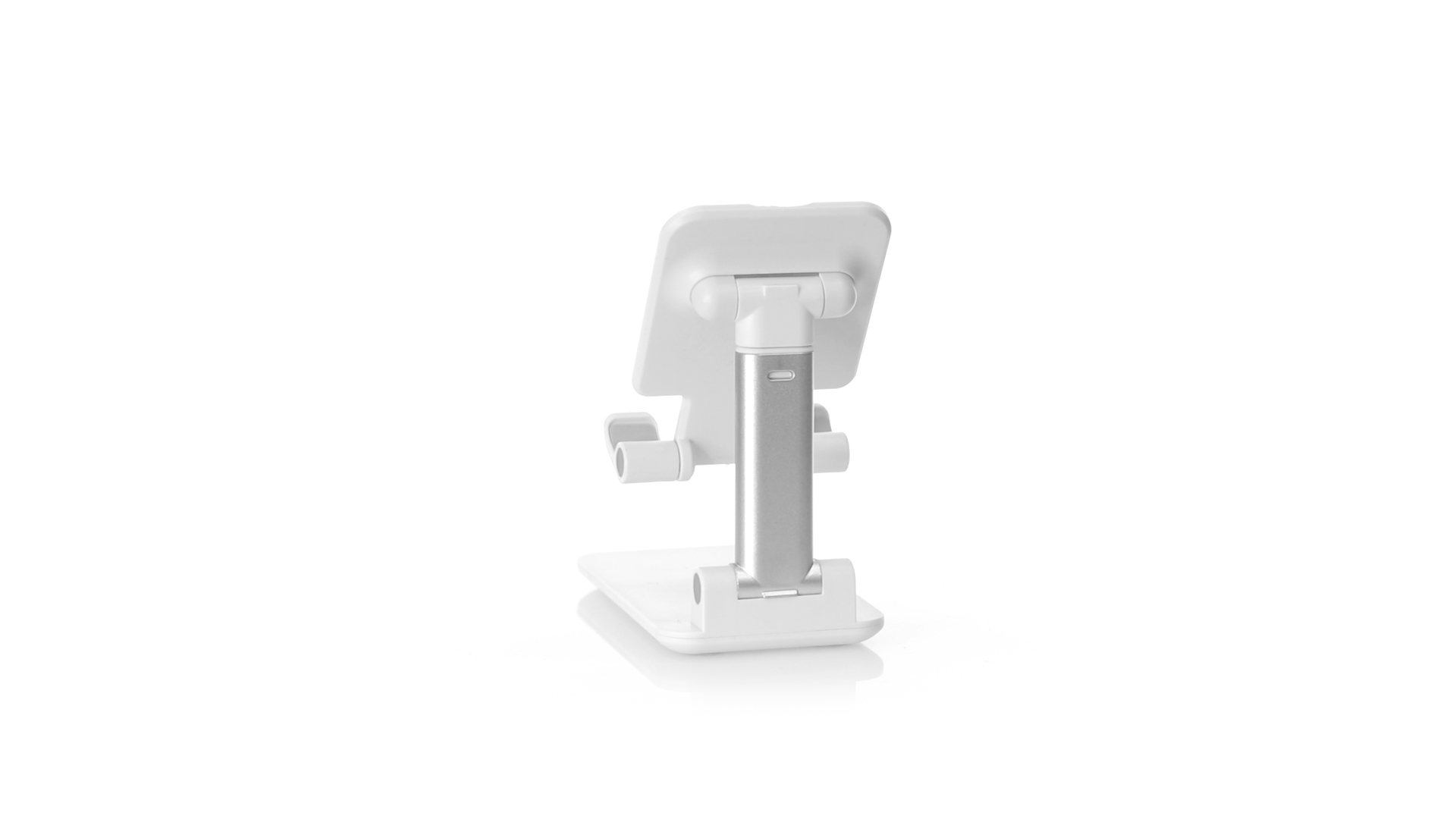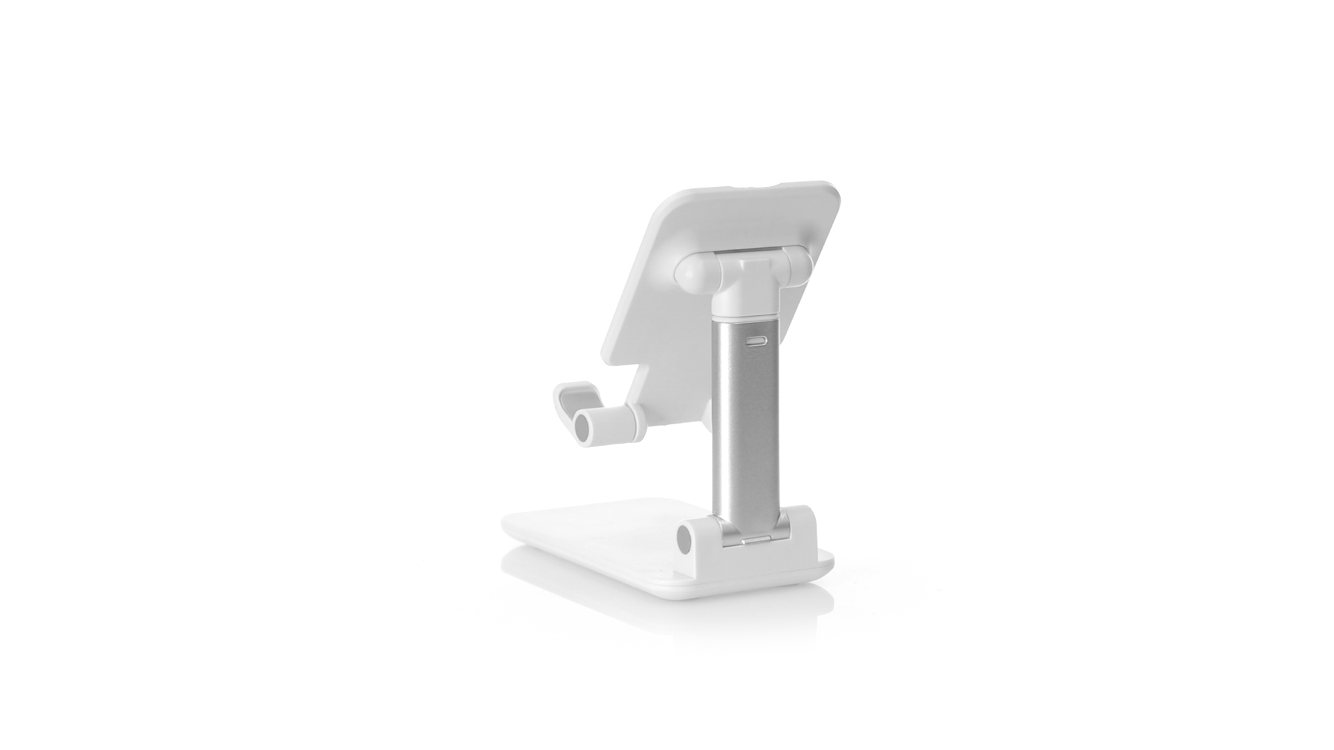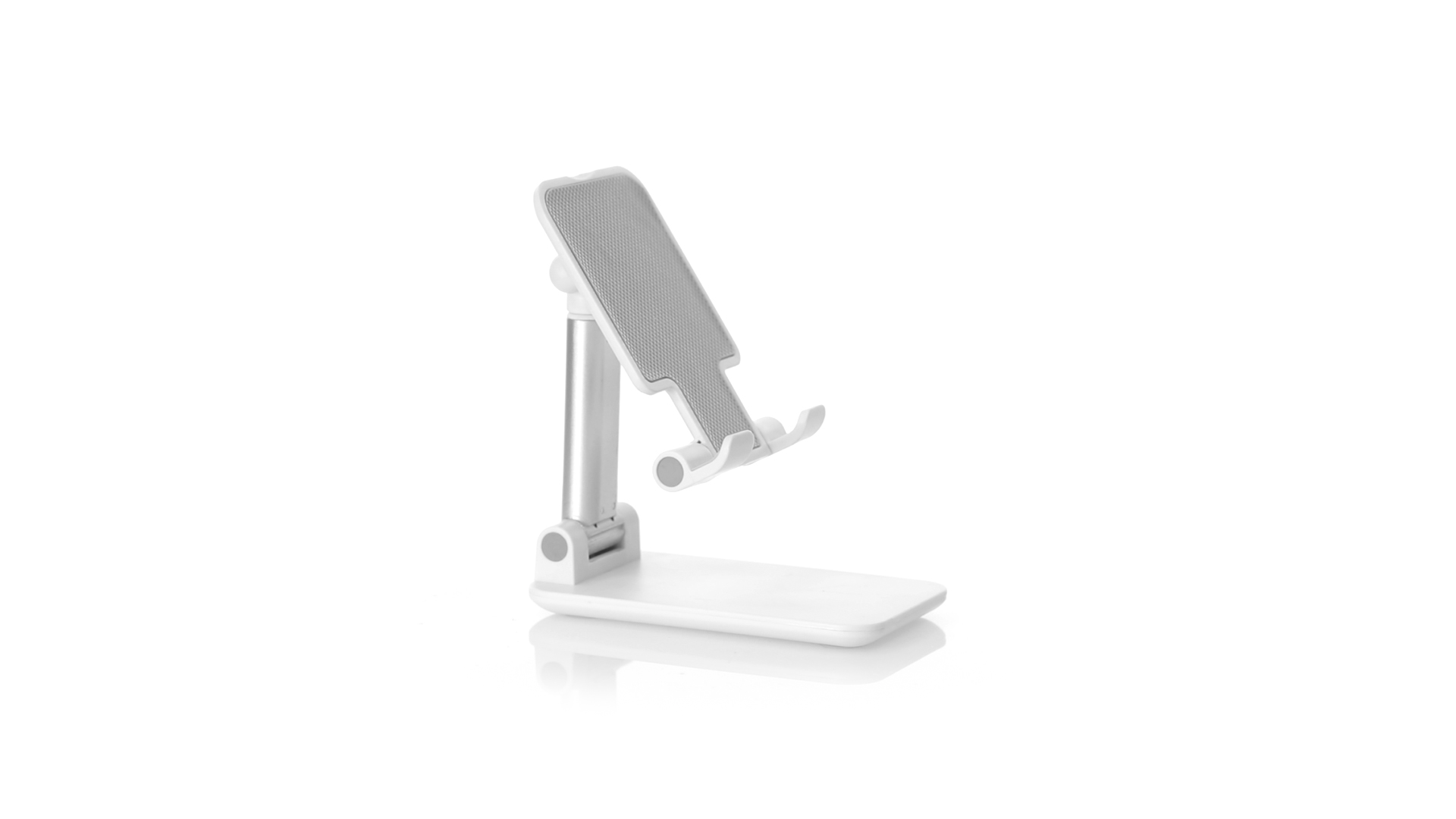Faltbarer Ständer für Smartphones und Tablets. Höhenverstellbar, inklusive rutschfesten Gummischutz an der Basis und Stütze. In schlichtem Weiss und mit grosser Beschriftungsfläche, besonders geeignet für den Tampondruck. Präsentiert in einer attraktiven Designbox.