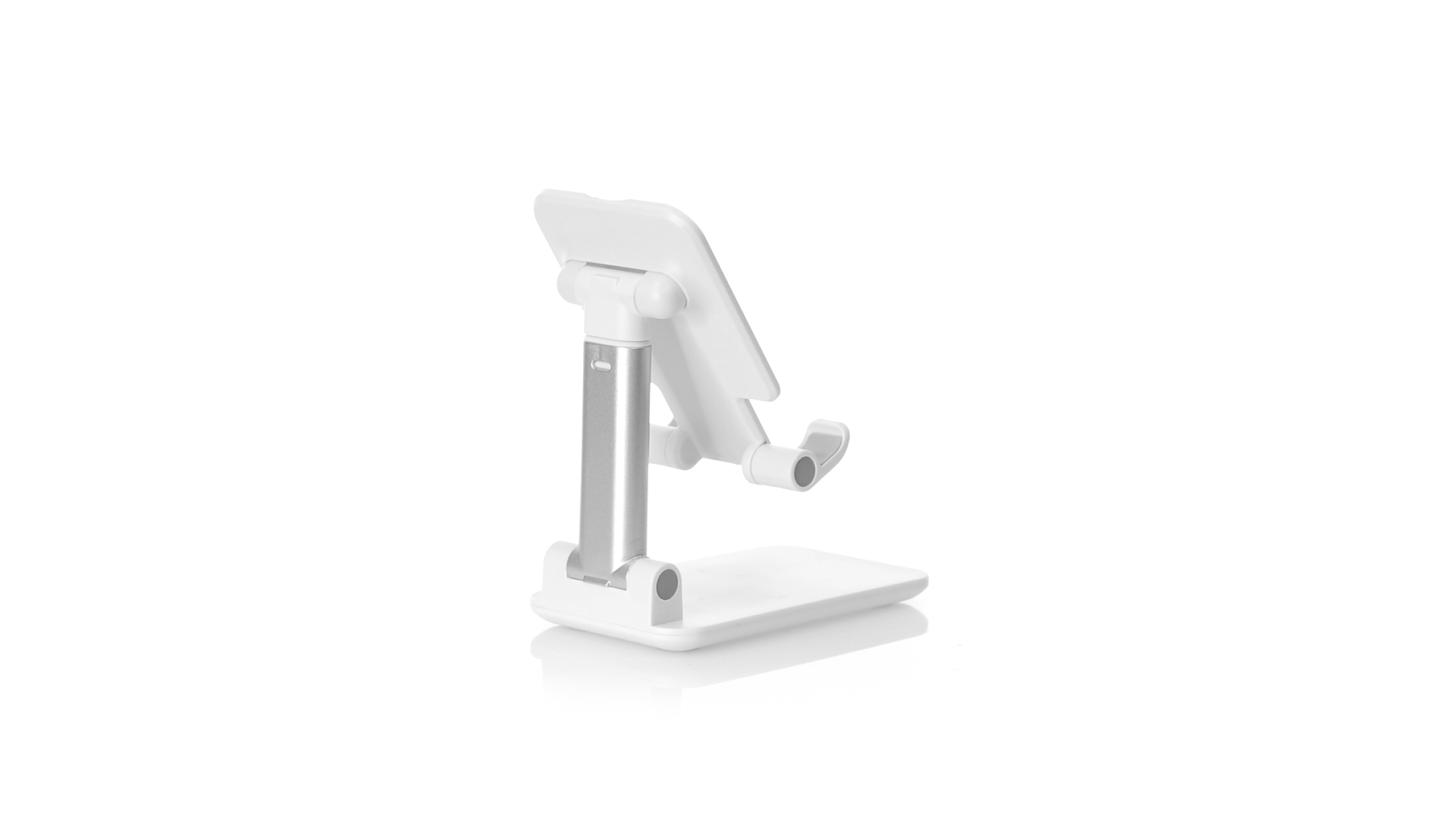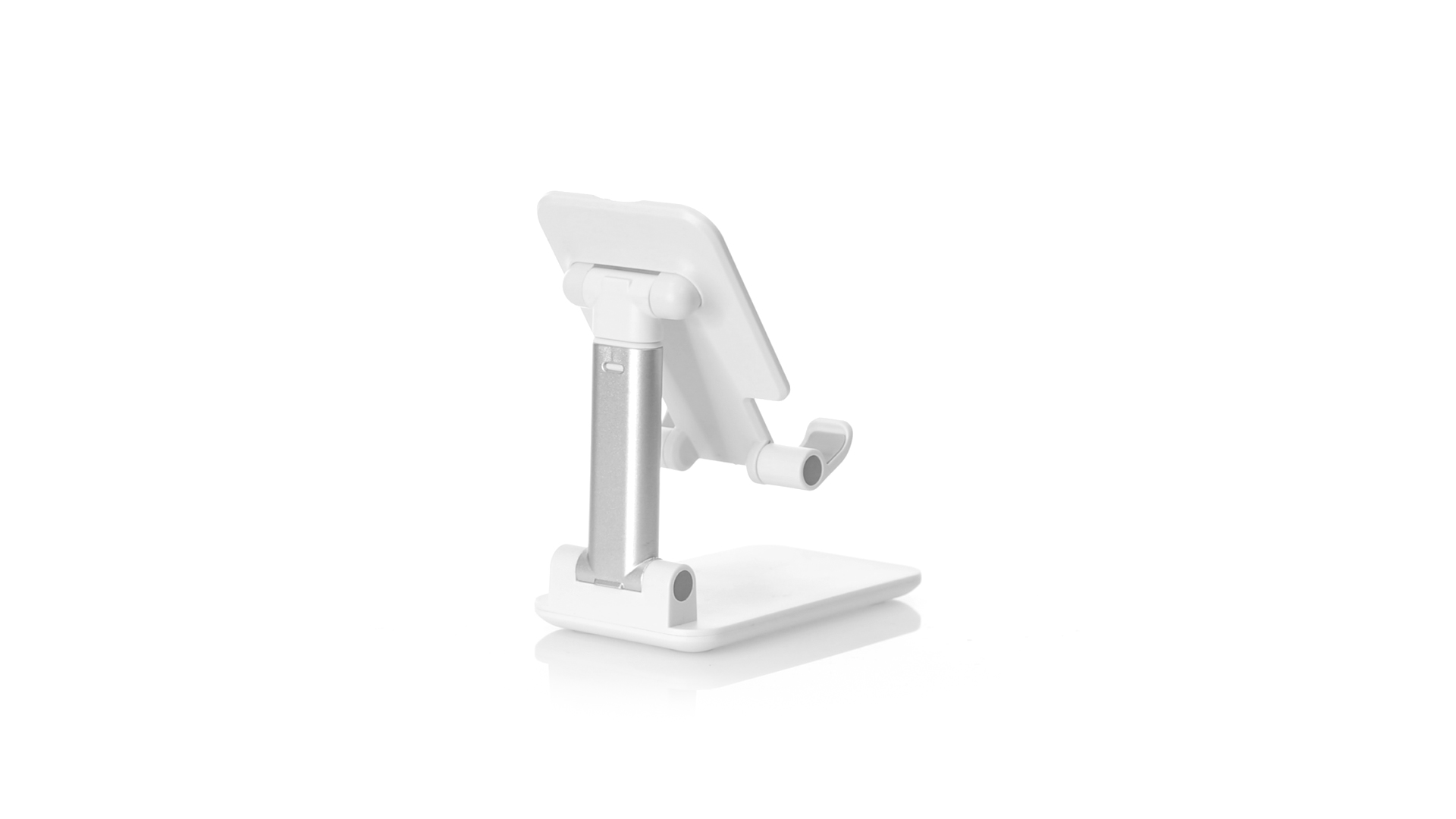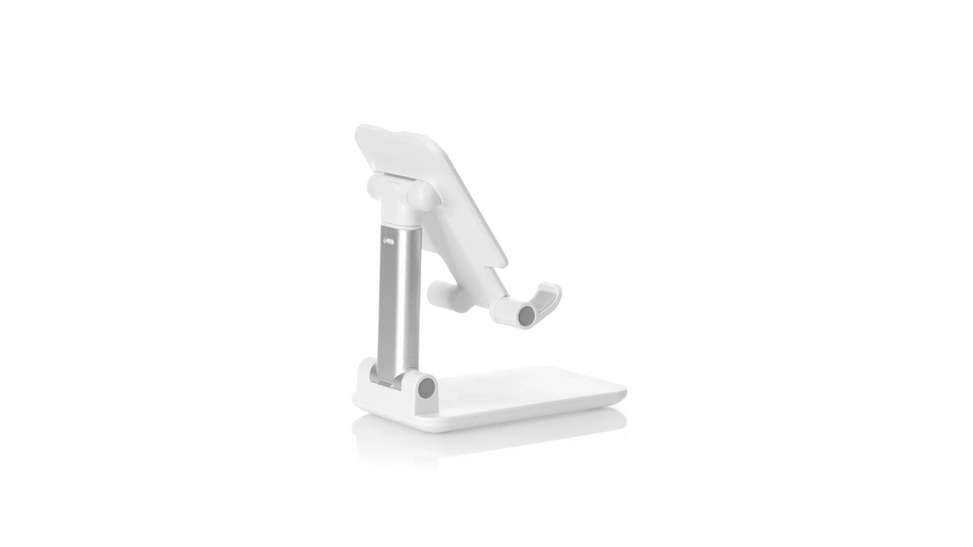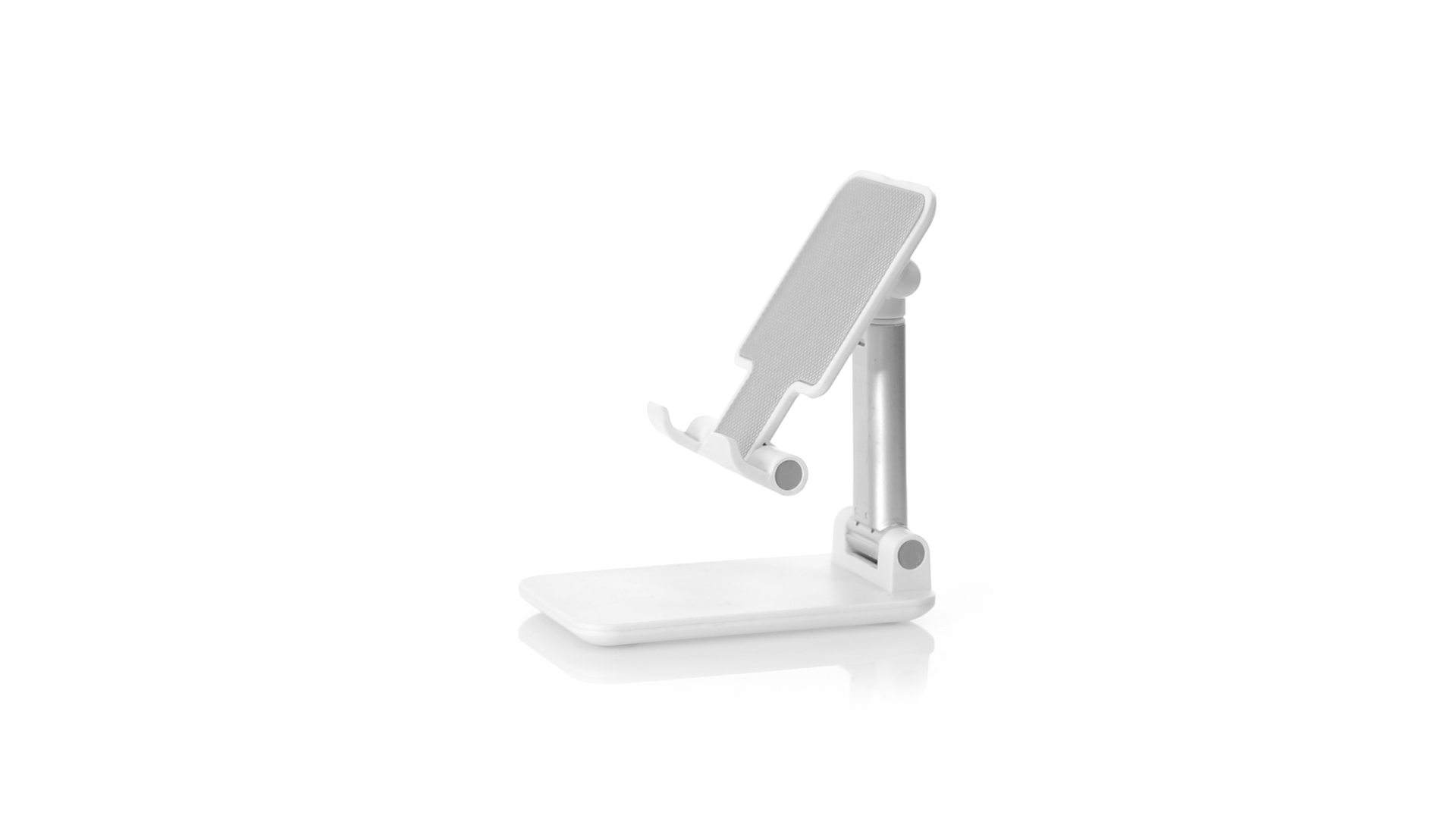 Faltbarer Ständer für Smartphones und Tablets. Höhenverstellbar, inklusive rutschfesten Gummischutz an der Basis und Stütze. In schlichtem Weiss und mit grosser Beschriftungsfläche, besonders geeignet für den Tampondruck. Präsentiert in einer attraktiven Designbox.