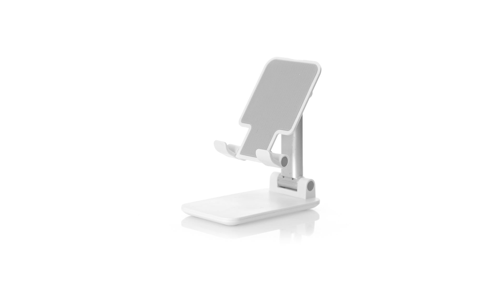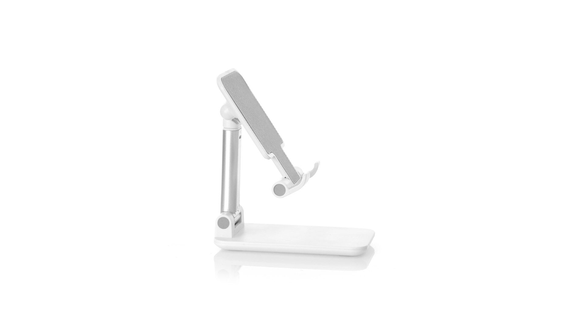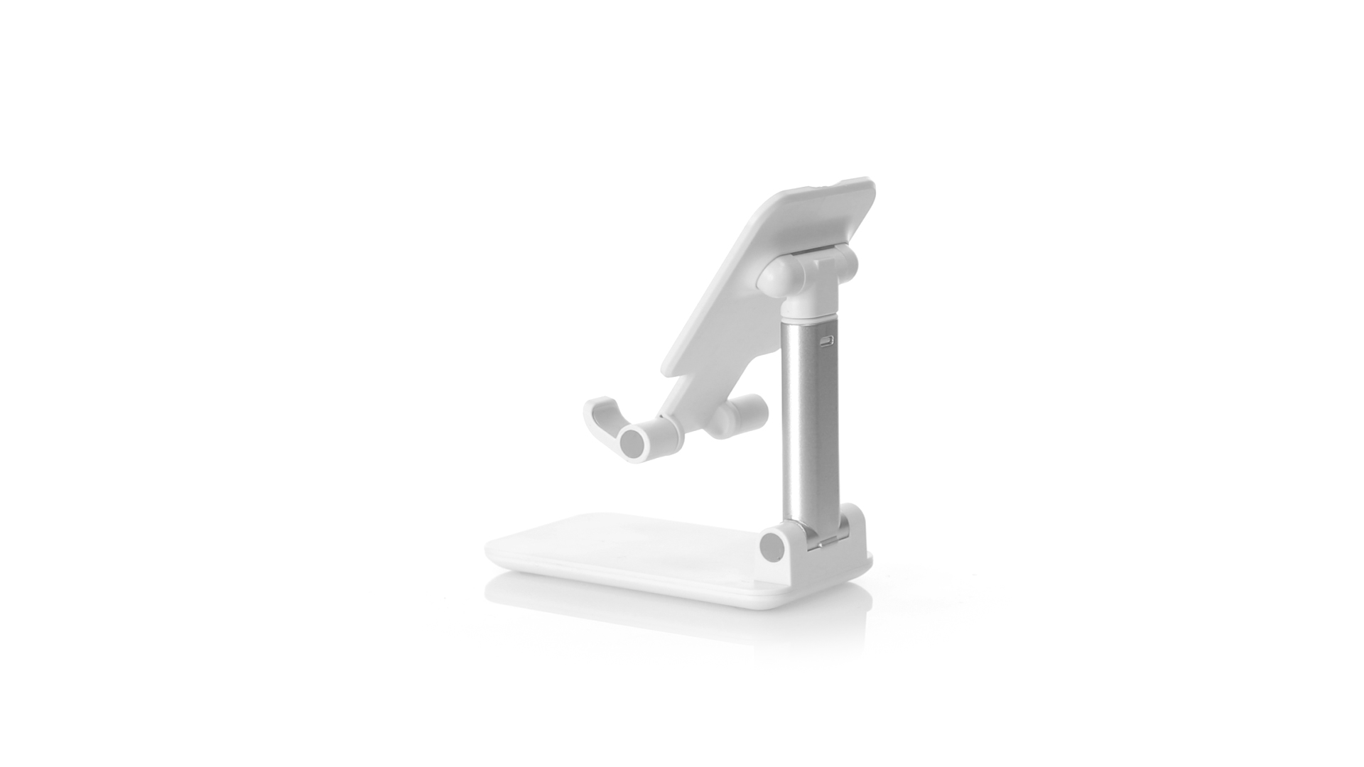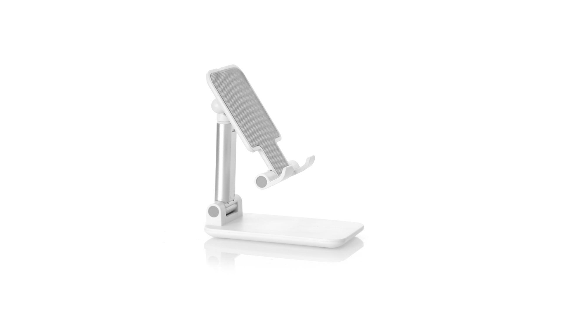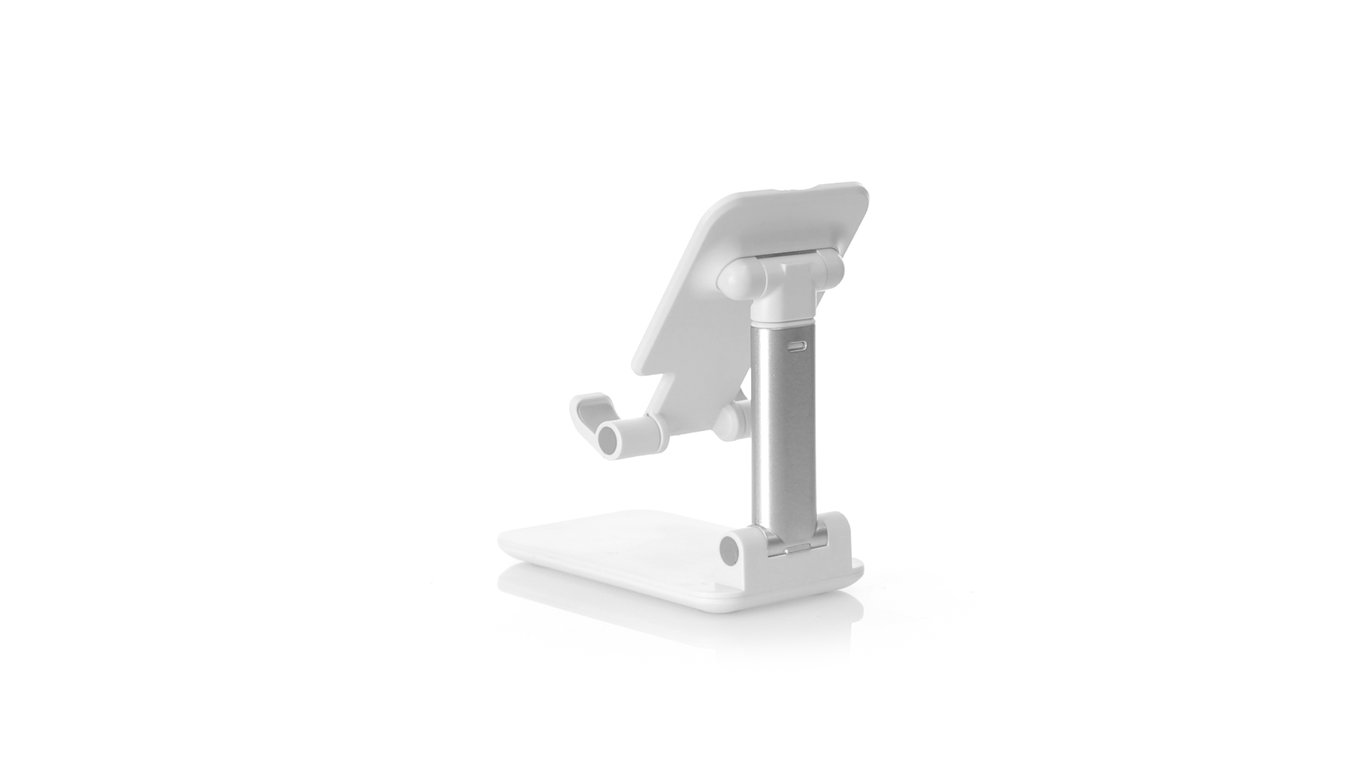 Faltbarer Ständer für Smartphones und Tablets. Höhenverstellbar, inklusive rutschfesten Gummischutz an der Basis und Stütze. In schlichtem Weiss und mit grosser Beschriftungsfläche, besonders geeignet für den Tampondruck. Präsentiert in einer attraktiven Designbox.