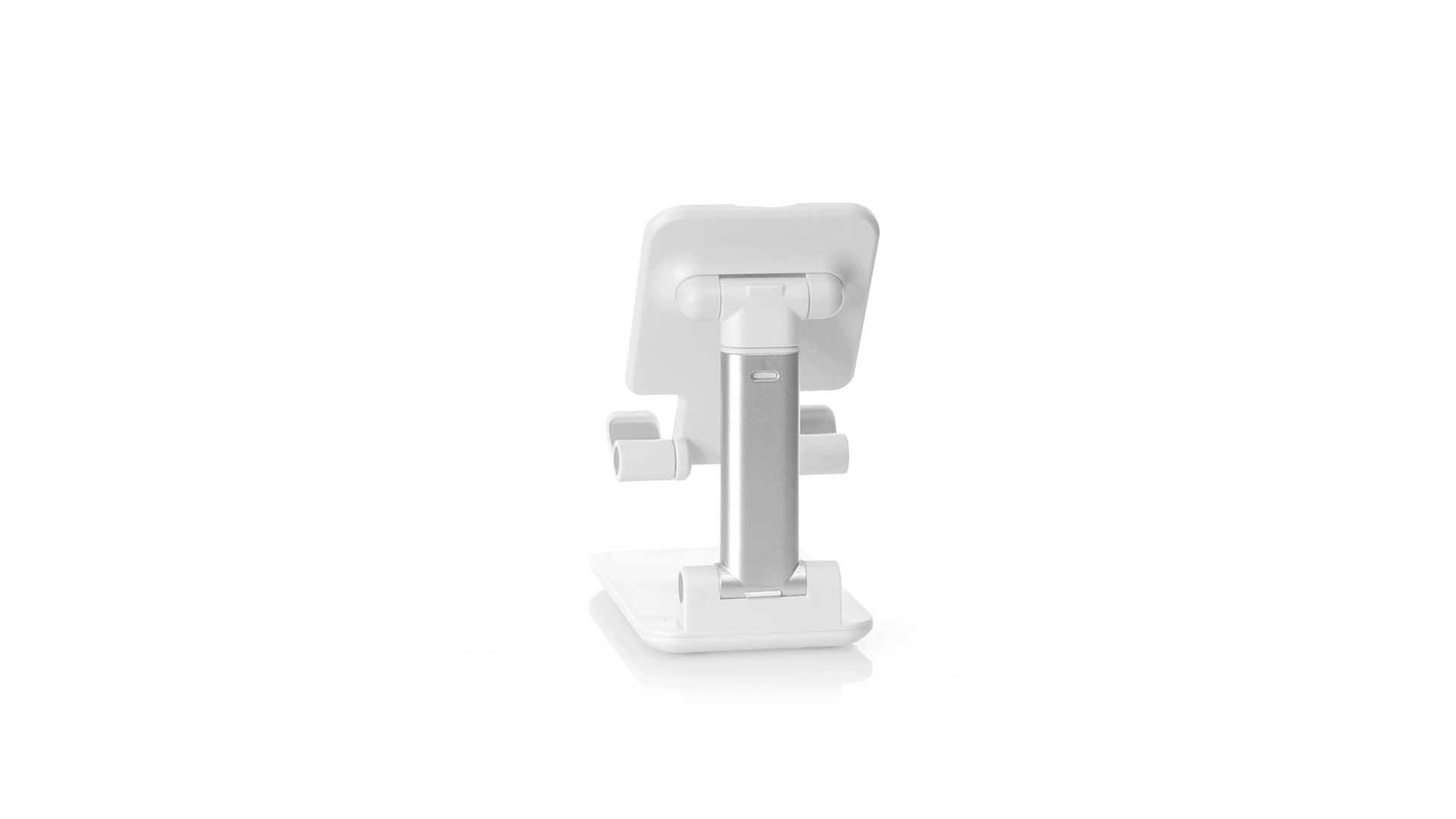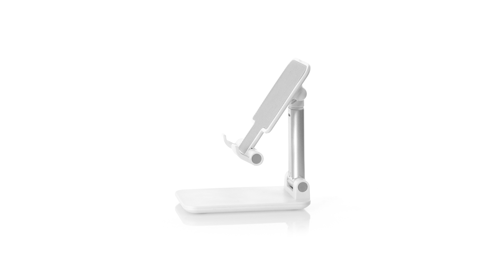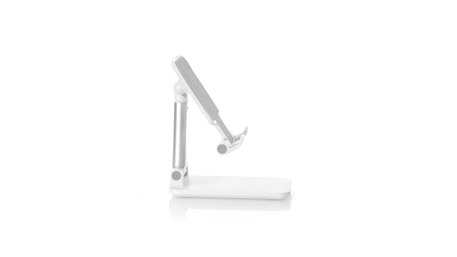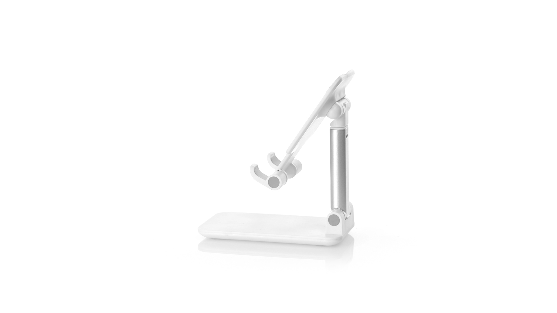 Faltbarer Ständer für Smartphones und Tablets. Höhenverstellbar, inklusive rutschfesten Gummischutz an der Basis und Stütze. In schlichtem Weiss und mit grosser Beschriftungsfläche, besonders geeignet für den Tampondruck. Präsentiert in einer attraktiven Designbox.