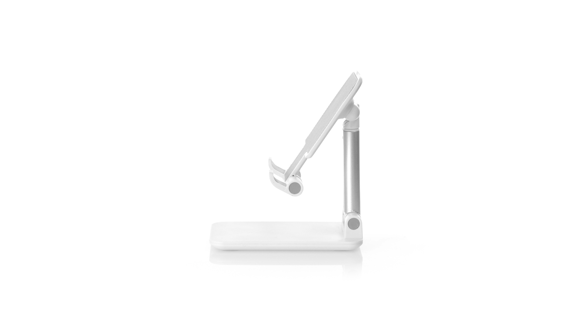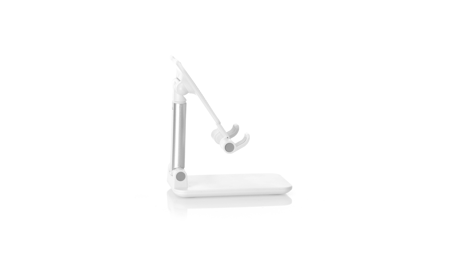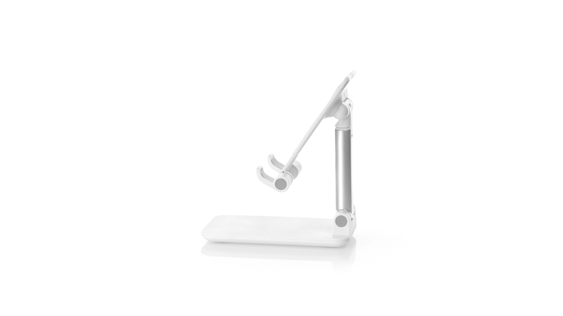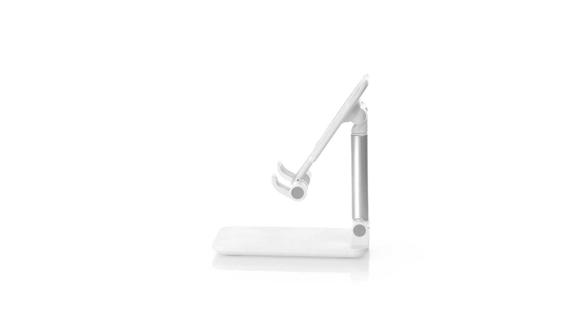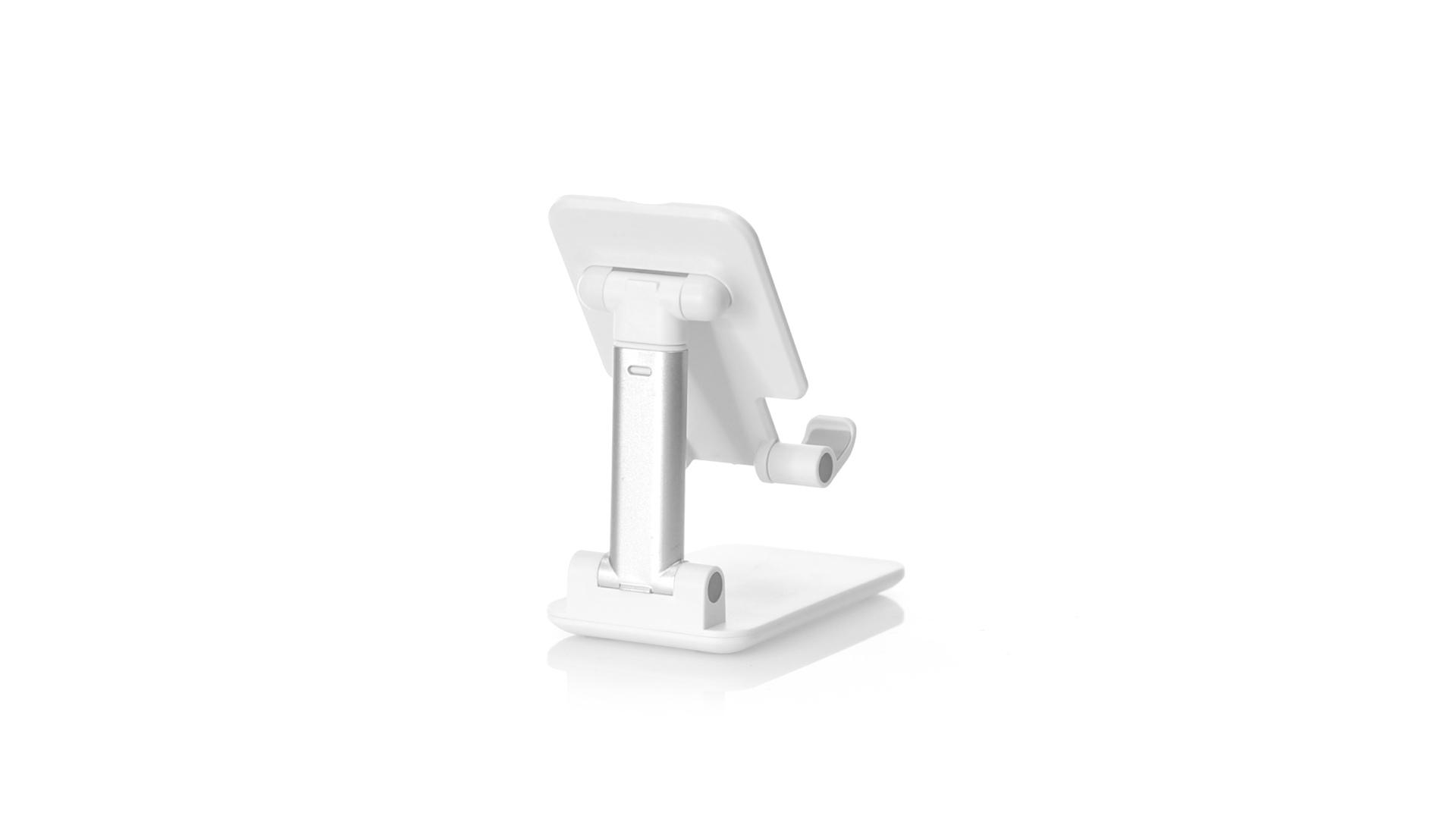 Faltbarer Ständer für Smartphones und Tablets. Höhenverstellbar, inklusive rutschfesten Gummischutz an der Basis und Stütze. In schlichtem Weiss und mit grosser Beschriftungsfläche, besonders geeignet für den Tampondruck. Präsentiert in einer attraktiven Designbox.