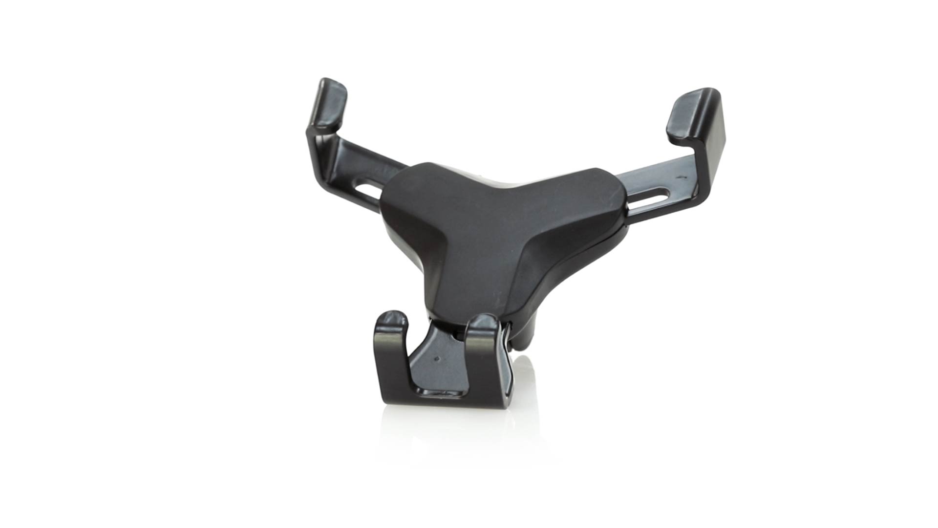 Smartphone-Halterung mit minimalistischem Design und speziell für Smartphones im XXL-Format entworfen. Mit universellem Befestigungssystem, das durch das Gewicht des Telefons selbst aktiviert wird und die seitlichen Griffe verstellt, sobald das Gerät in die Halterung eingesetzt wird. Für Autolüftungsgitter und mit einer speziell für den Tampondruck entwickelten Vorderseite.