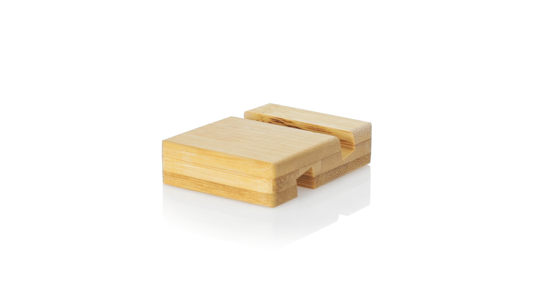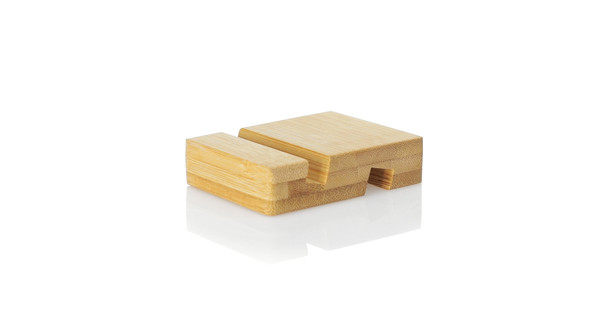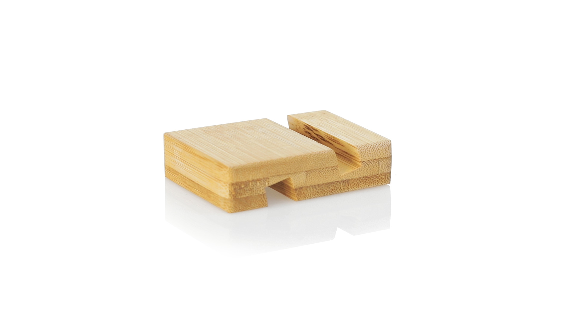 Nature Line Halter für mobile Geräte (Smartphones und Tablets). Aus widerstandsfähigem Bambus mit lackierter Oberfläche, mit beidseitigem Schlitz/Auflage.