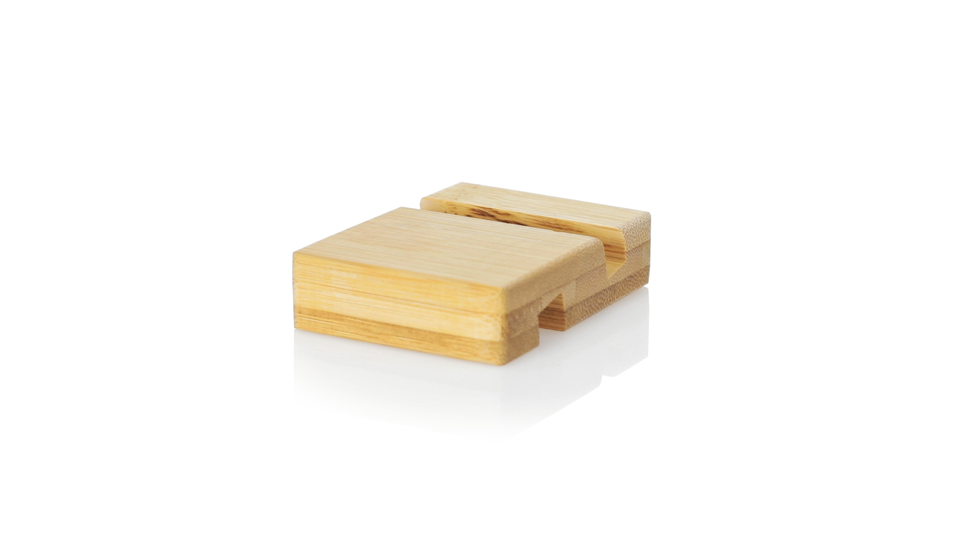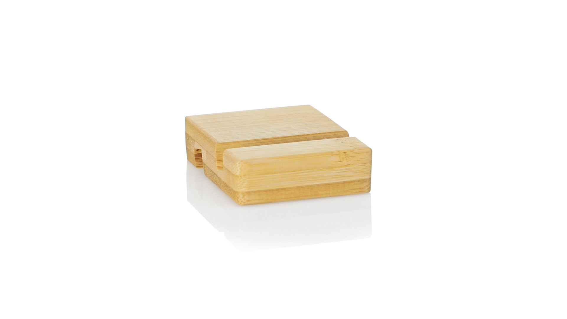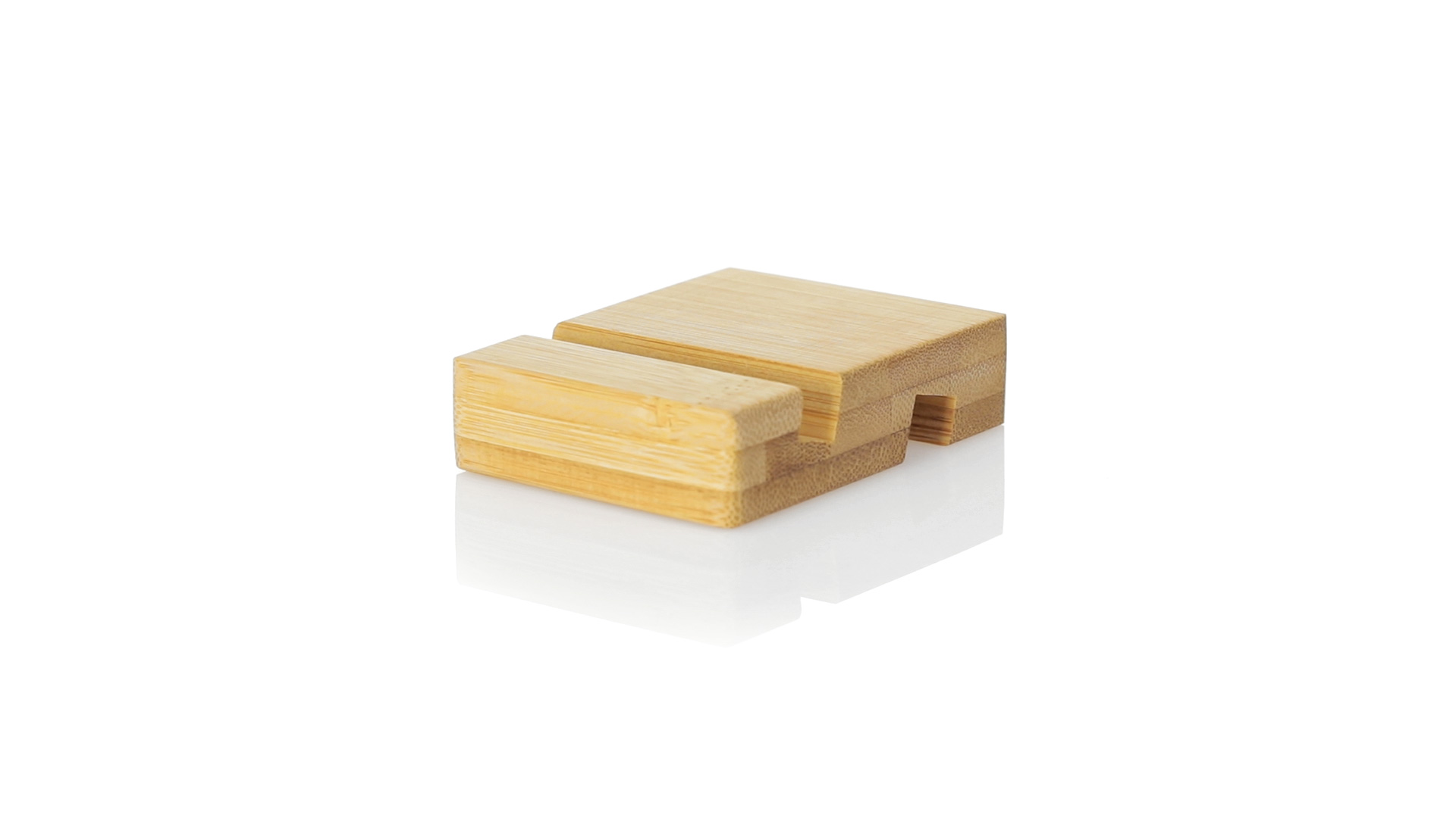 Nature Line Halter für mobile Geräte (Smartphones und Tablets). Aus widerstandsfähigem Bambus mit lackierter Oberfläche, mit beidseitigem Schlitz/Auflage.