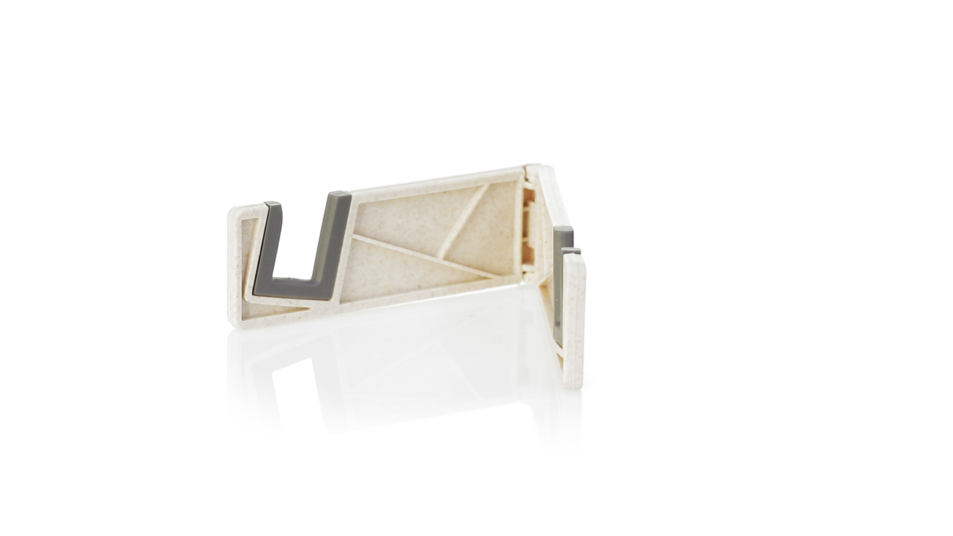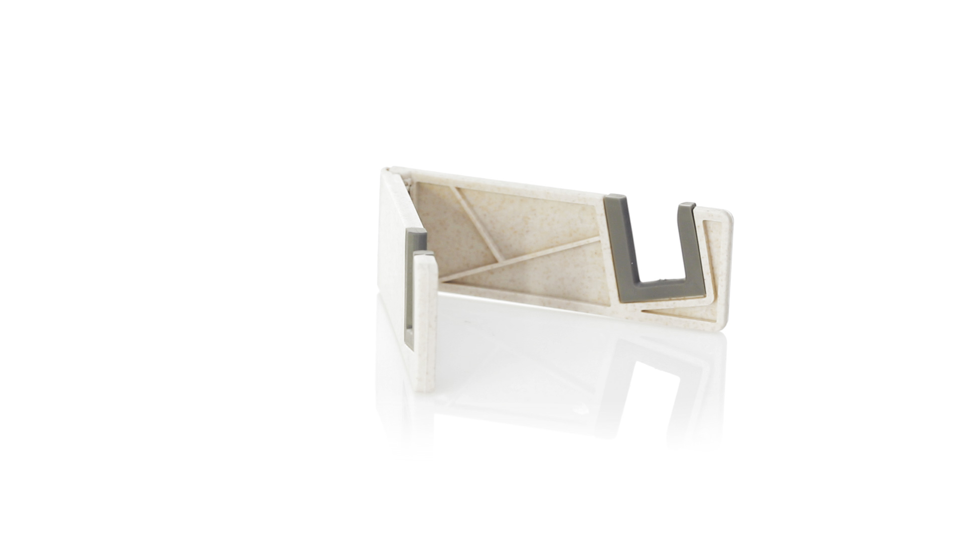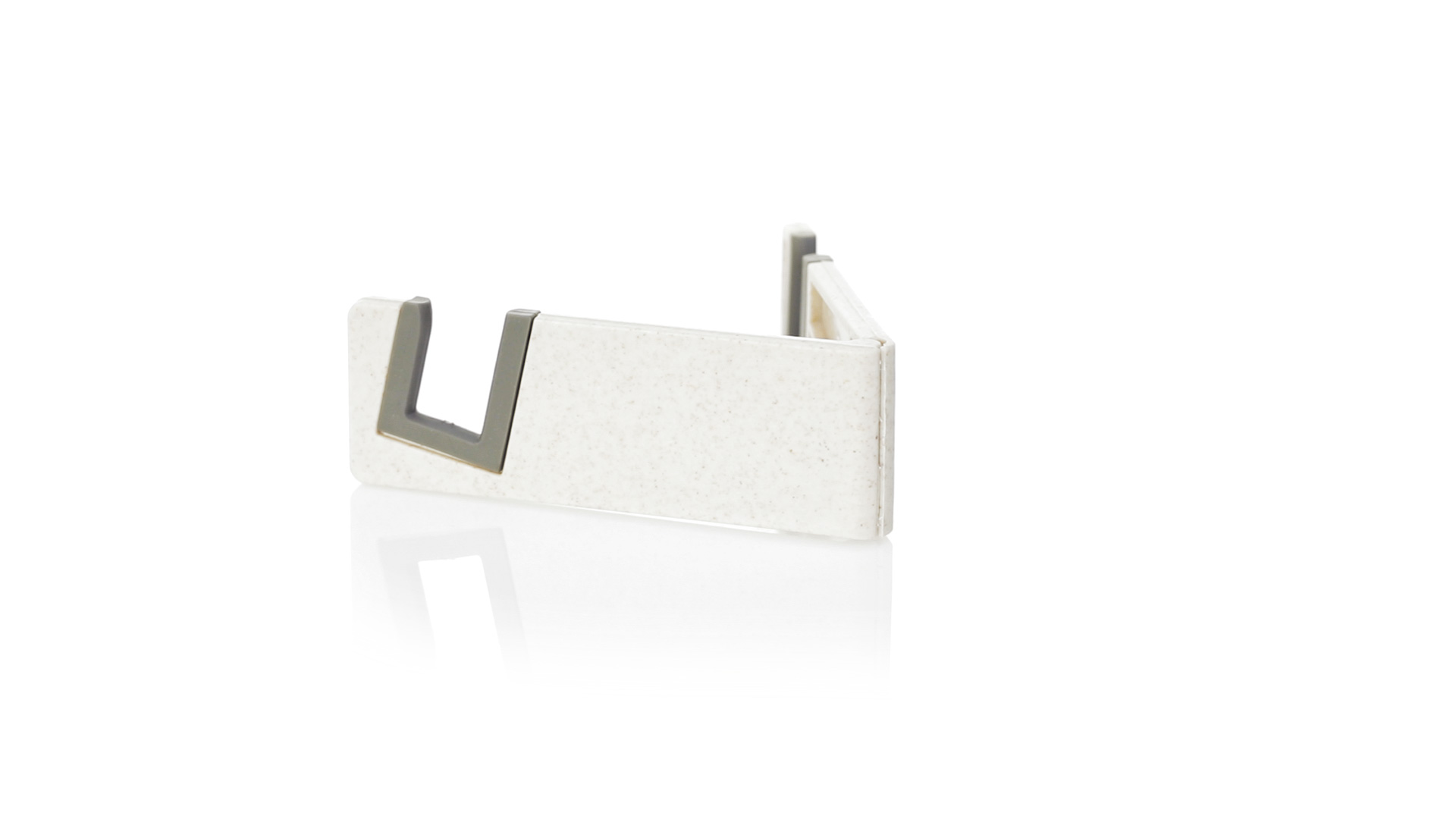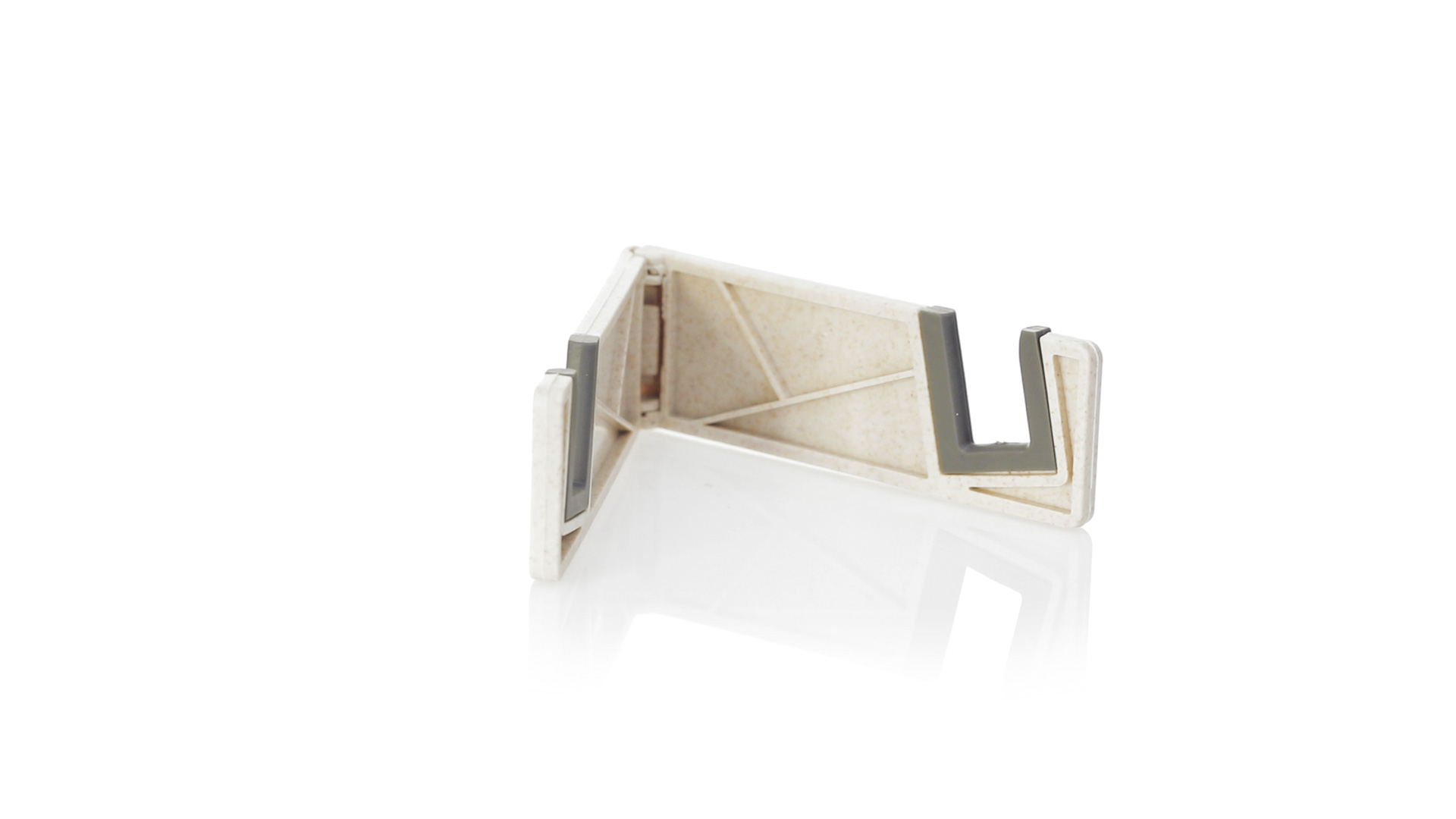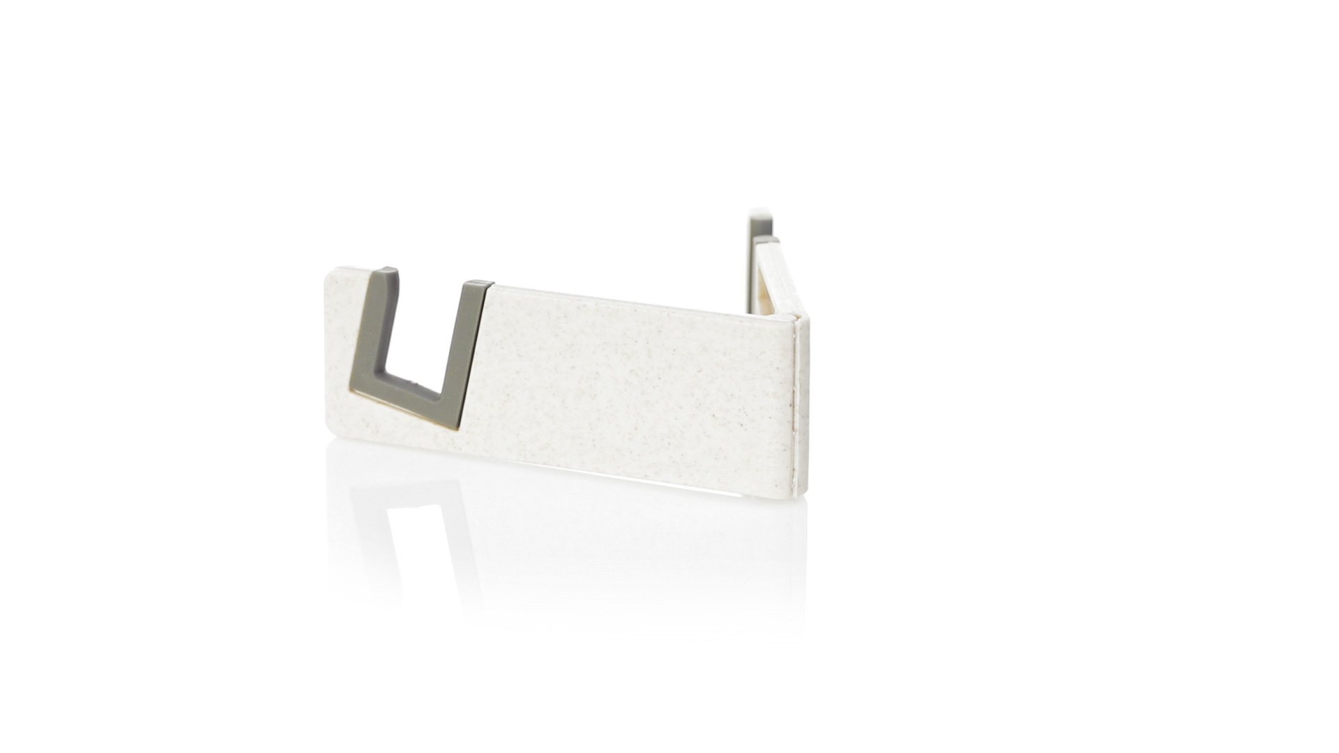 Mobilgerätehalter aus der Naturlinie. Hergestellt aus Weizenrohr/PP, um die Verwendung natürlicher Rohstoffe zu fördern und Schadstoffemissionen zu reduzieren.Klappbare Füsse mit rutschfesten PVC-Puffern, speziell für den Tampondruck entwickelt.