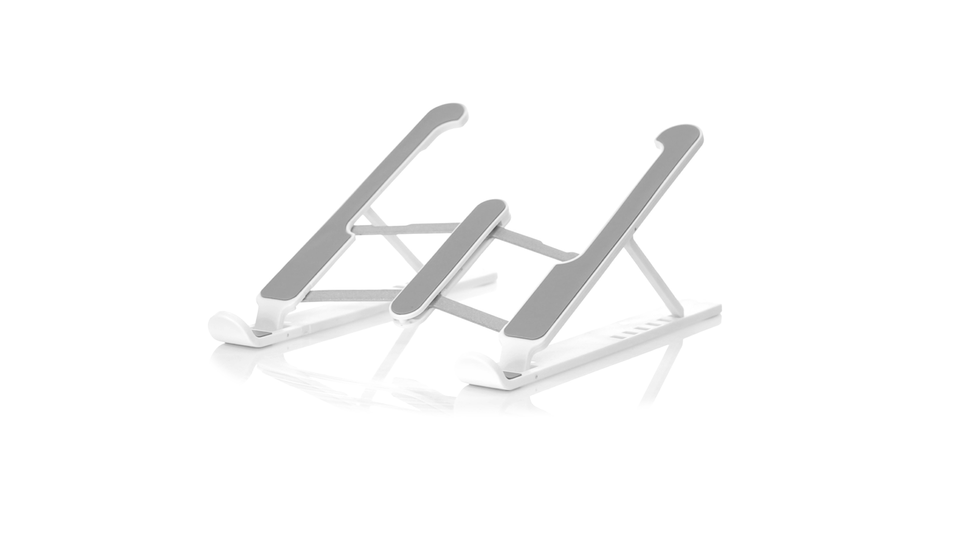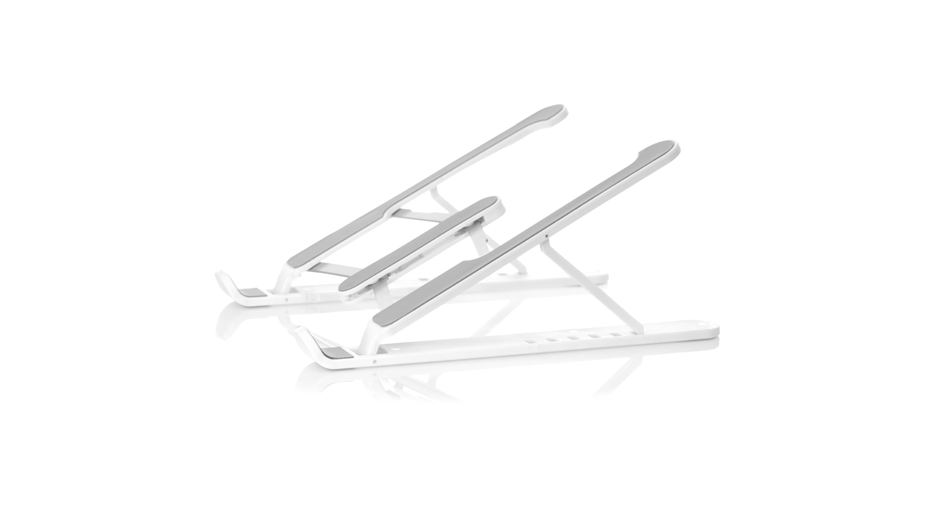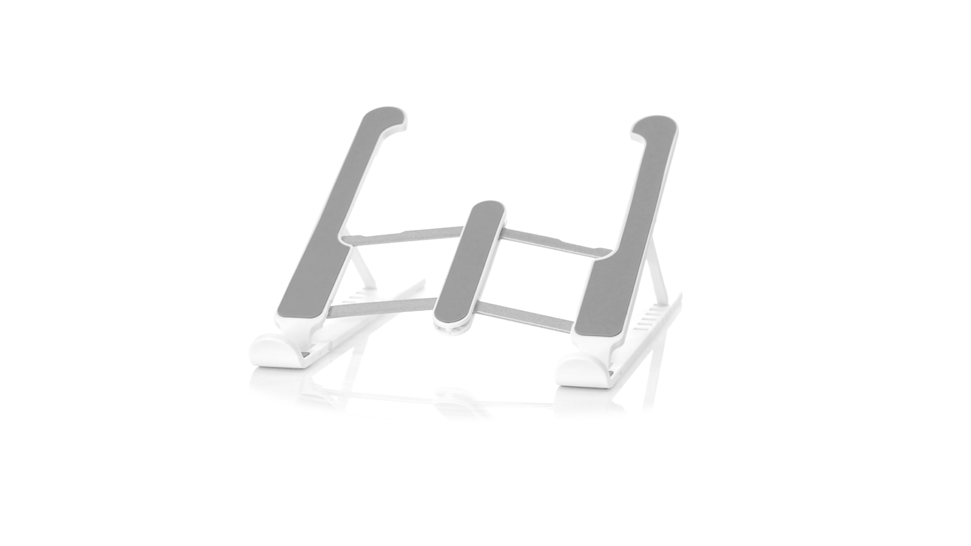 Zusammenklappbarer Laptop-Ständer. Hergestellt aus strapazierfähigem ABS mit rutschfestem TPR-Schutz für einen festen Sitz auf dem Gerät. Höhenverstellbar, kompaktes Faltmass und präsentiert in einer Wildlederhülle mit Kordelzugverschluss und in einer individuellen Designbox.