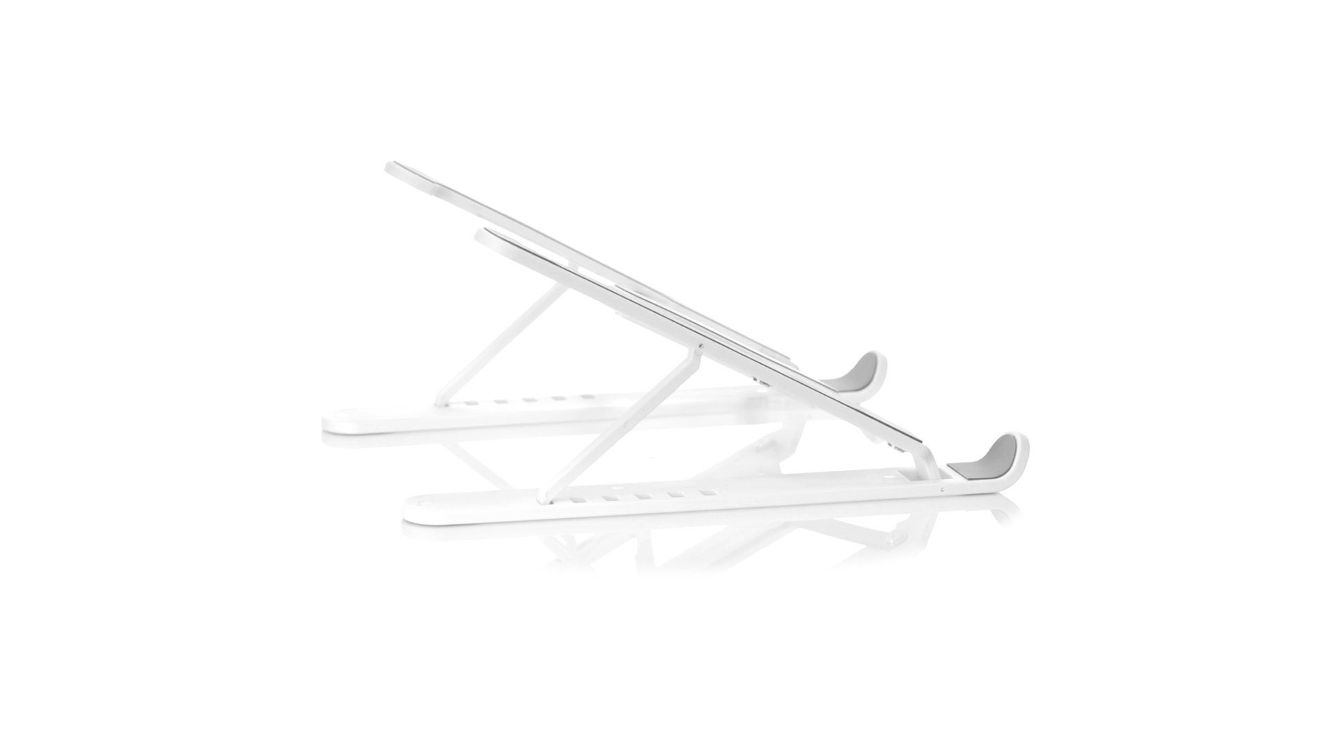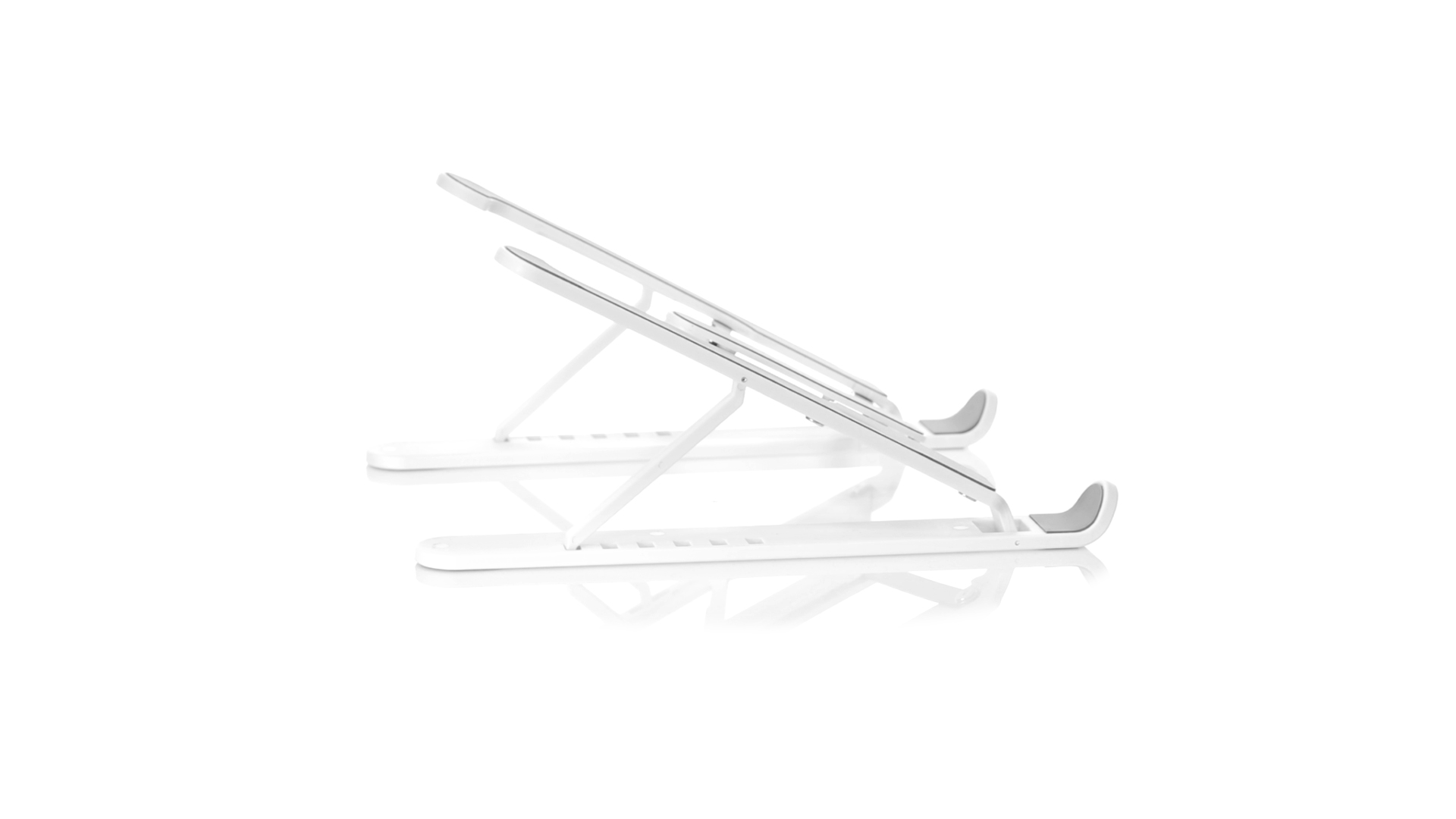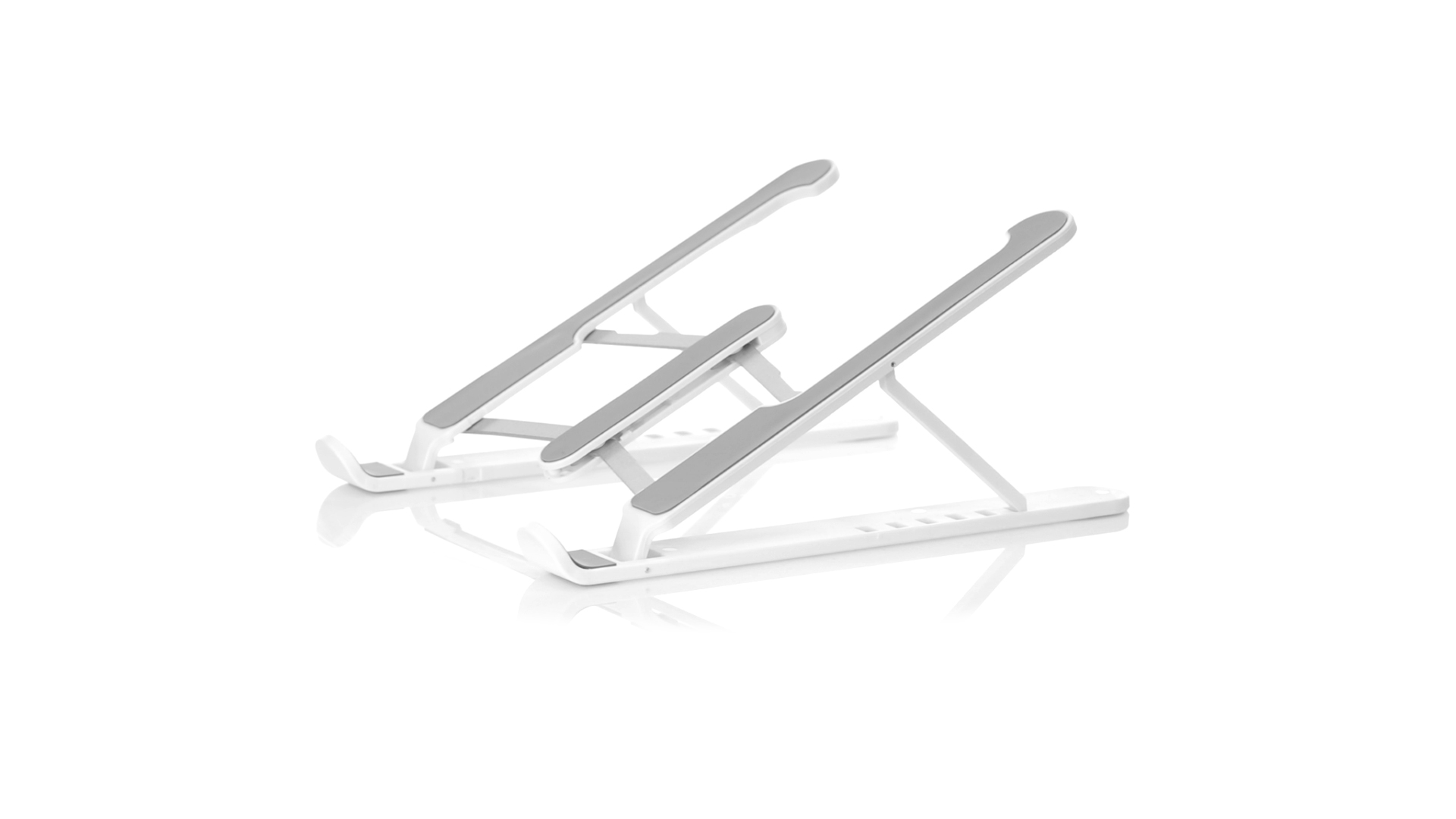 Zusammenklappbarer Laptop-Ständer. Hergestellt aus strapazierfähigem ABS mit rutschfestem TPR-Schutz für einen festen Sitz auf dem Gerät. Höhenverstellbar, kompaktes Faltmass und präsentiert in einer Wildlederhülle mit Kordelzugverschluss und in einer individuellen Designbox.