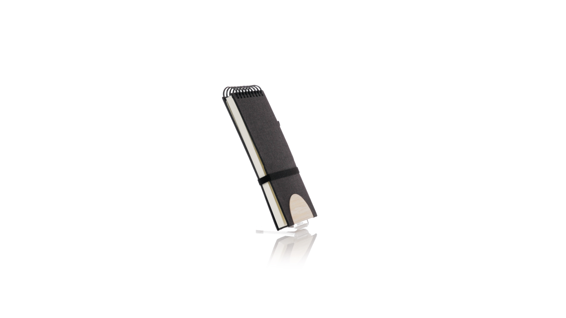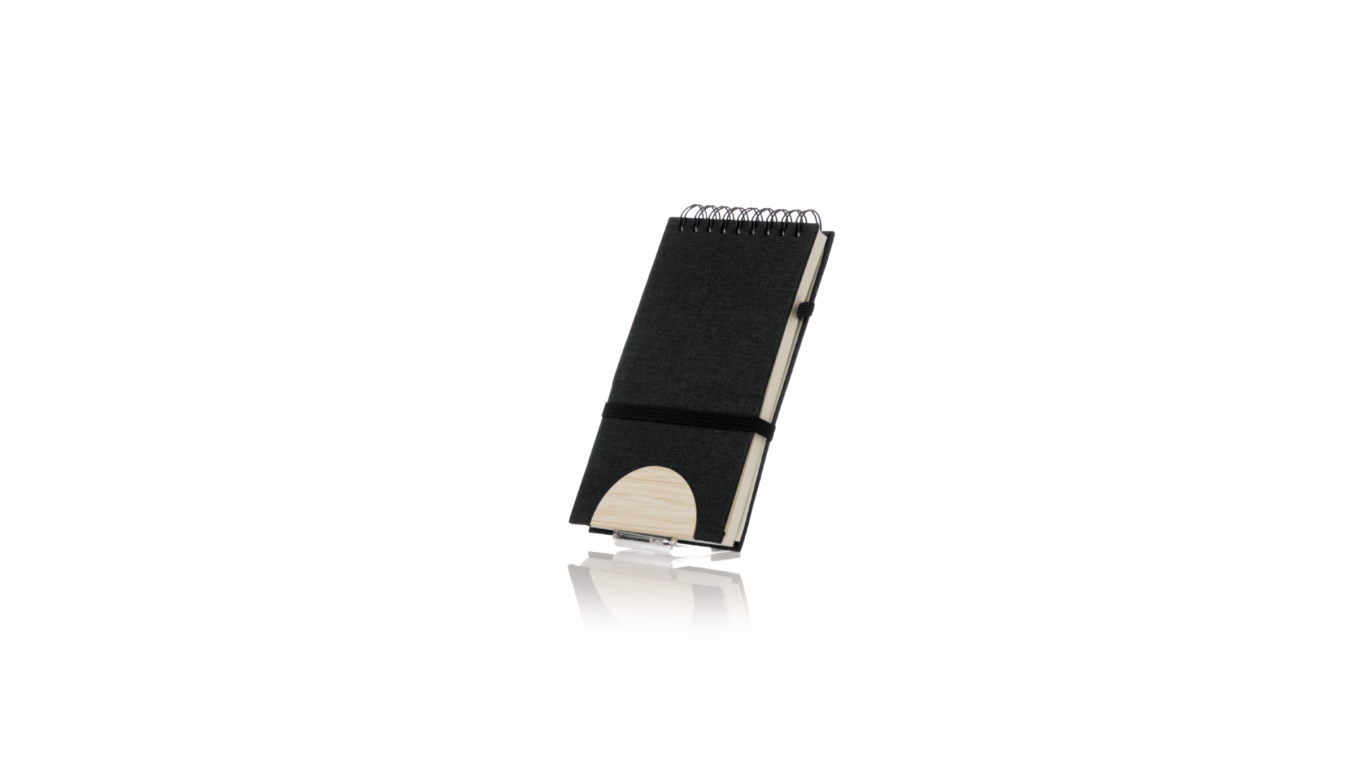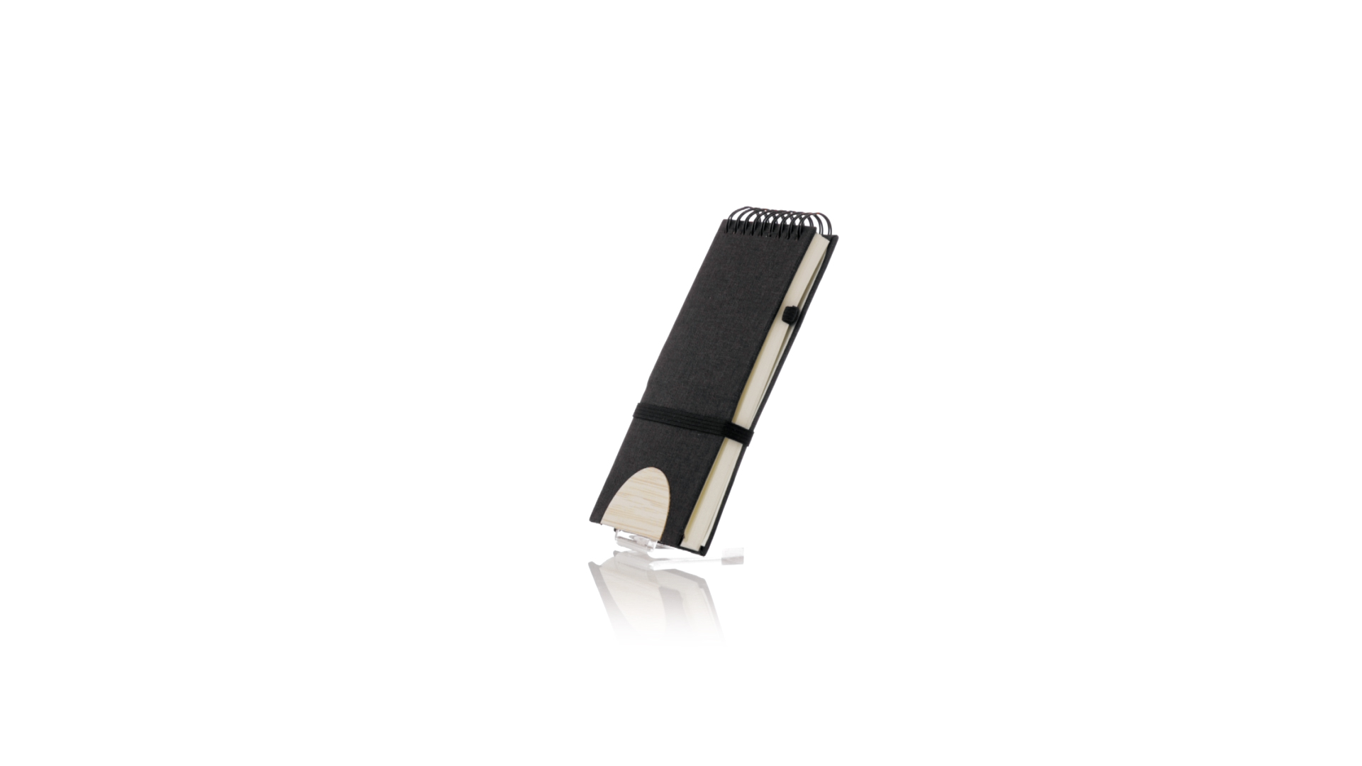 Ring-Notebook mit Halterung, hergestellt aus RPET 300D und Bambus. Sein harter Einband wird durch eine vielseitige integrierte Smartphone-Halterung aus Bambus ergänzt. Ausserdem hat es einen Gummibandverschluss und einen passenden Stifthalter. Enthält 80 unbedruckte Innenblätter und ist in einer breiten Farbpalette erhältlich. Mit RPET-Logo auf der Rückseite und in einer individuellen, recycelten Tasche.Das RPET-Material wird aus recyceltem Kunststoff hergestellt, wodurch die Wiederverwendung von Kunststoffabfällen gefördert und ein Beitrag zur Nachhaltigkeit unseres Planeten geleistet wird.