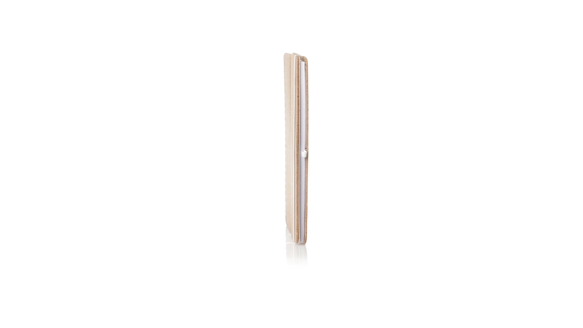 Ringnotizbuch der Linie Natur. Starre Einbände aus Naturkork, mit originellem Weizenstrohhalter für Smartphone und Tablet. Mit elastischem Verschluss und Stifthalter in weisser Farbe. 70 Innenseiten mit einstreifigem Layout. Präsentiert in einer individuellen Designtasche.