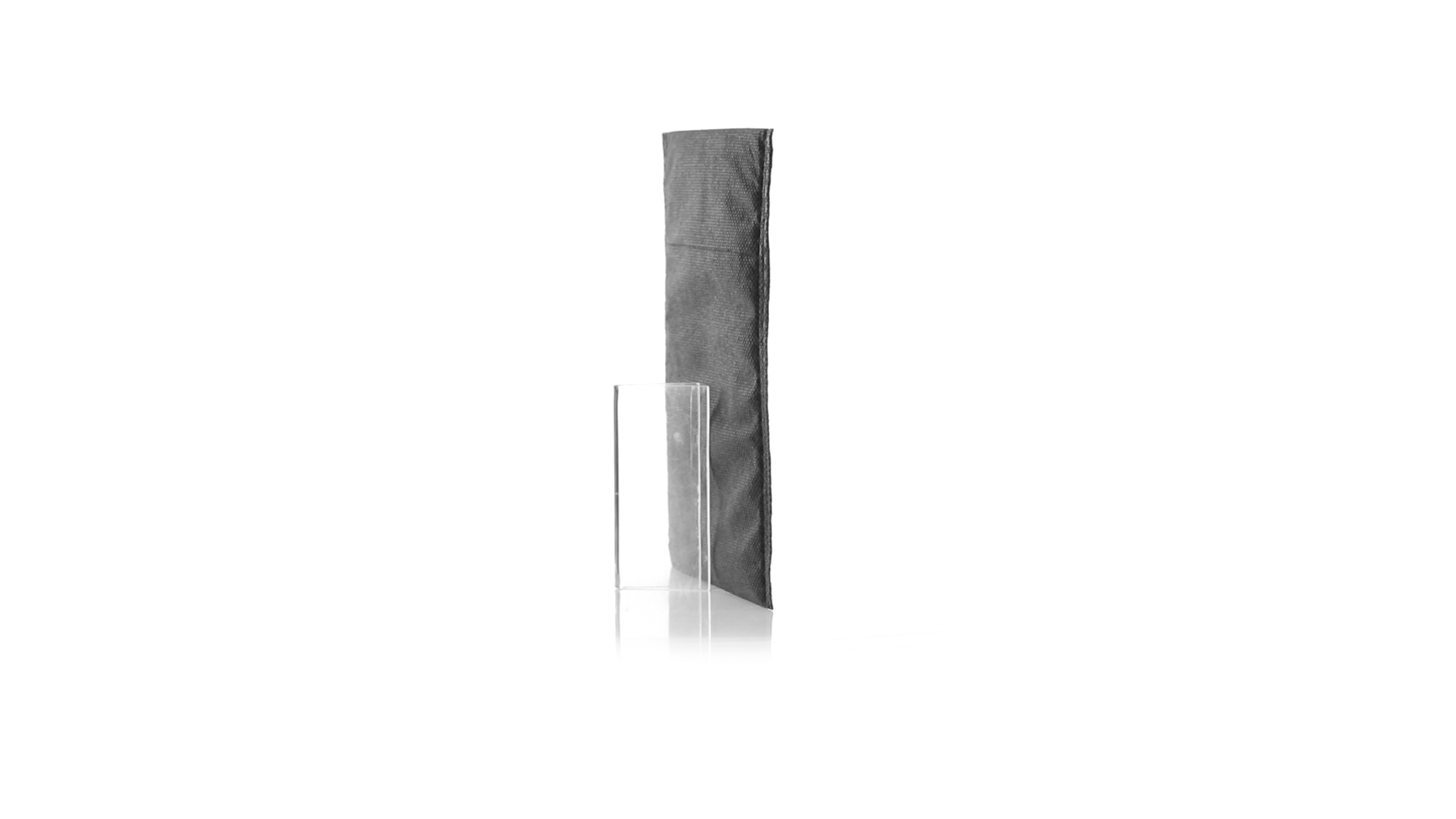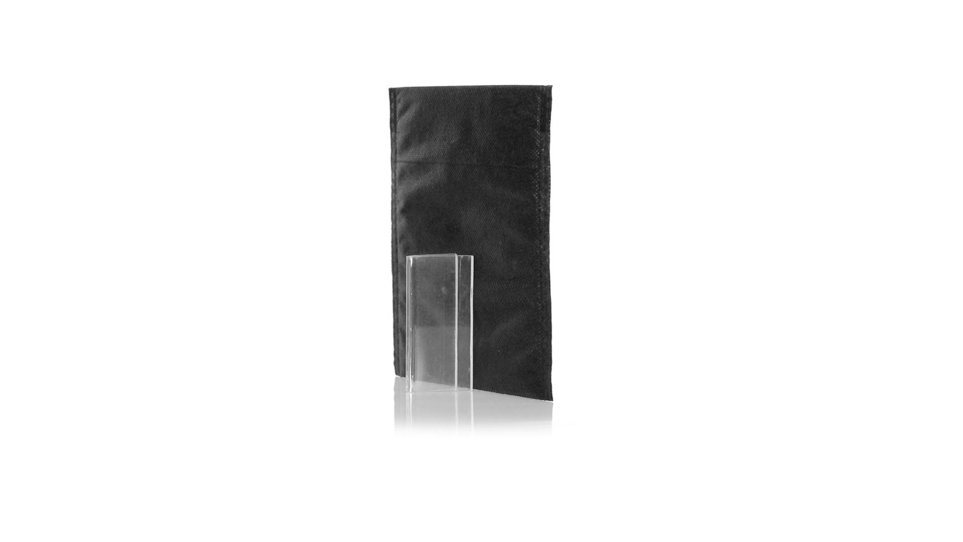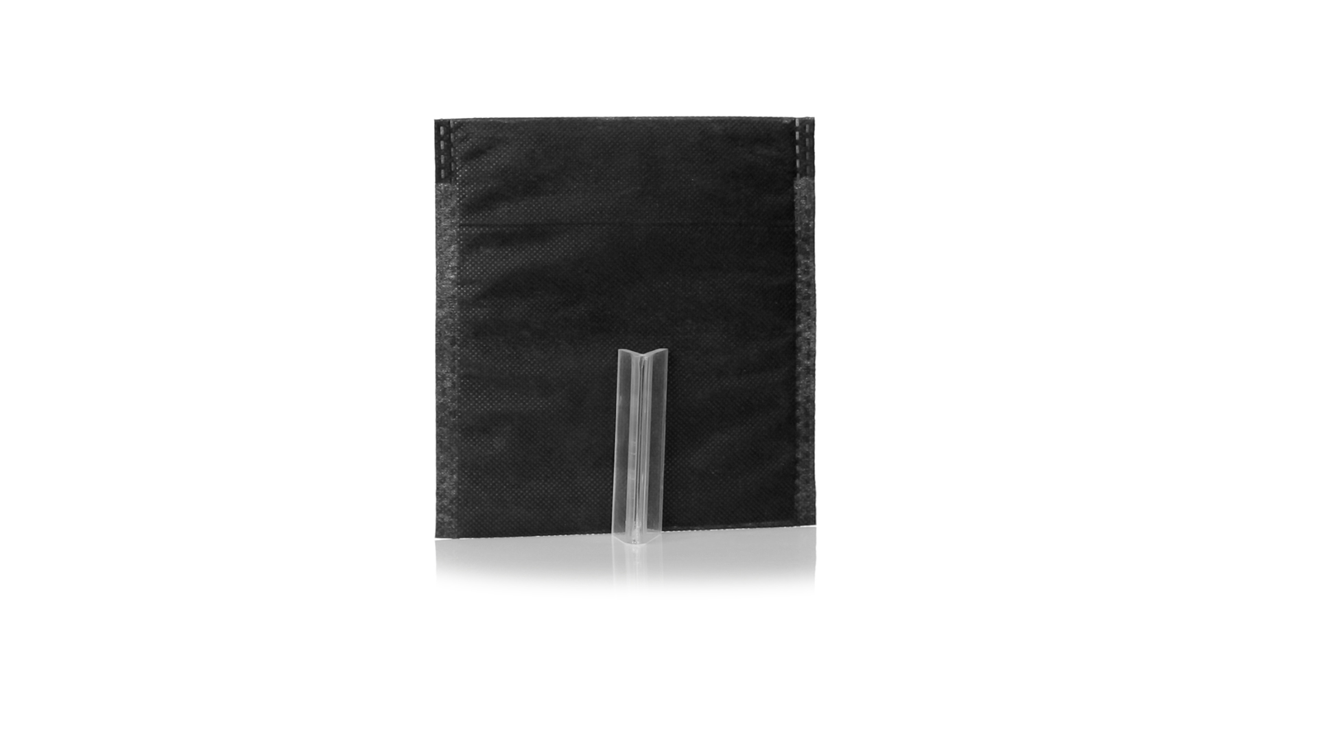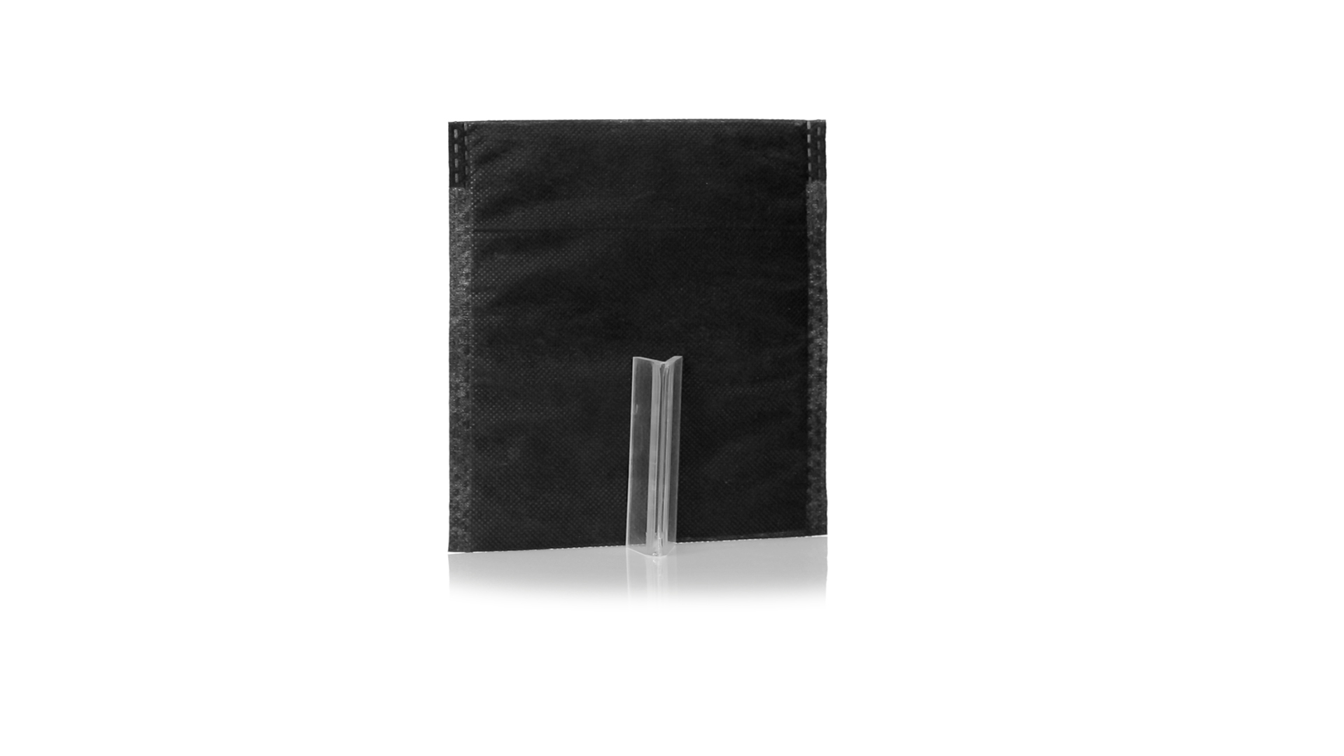 Vielseitiger Bezug aus schwarzem Vliesstoff mit verschweisster Oberfläche, atmungsaktiv und waschbar. Kompaktes Format und ideal zum Bedrucken.