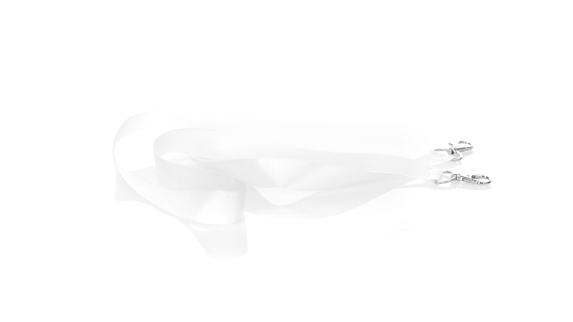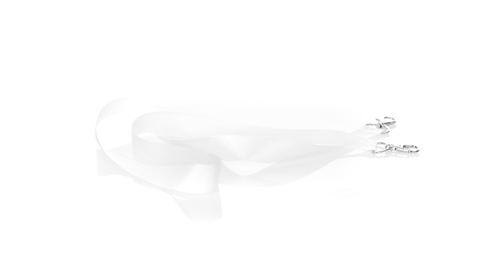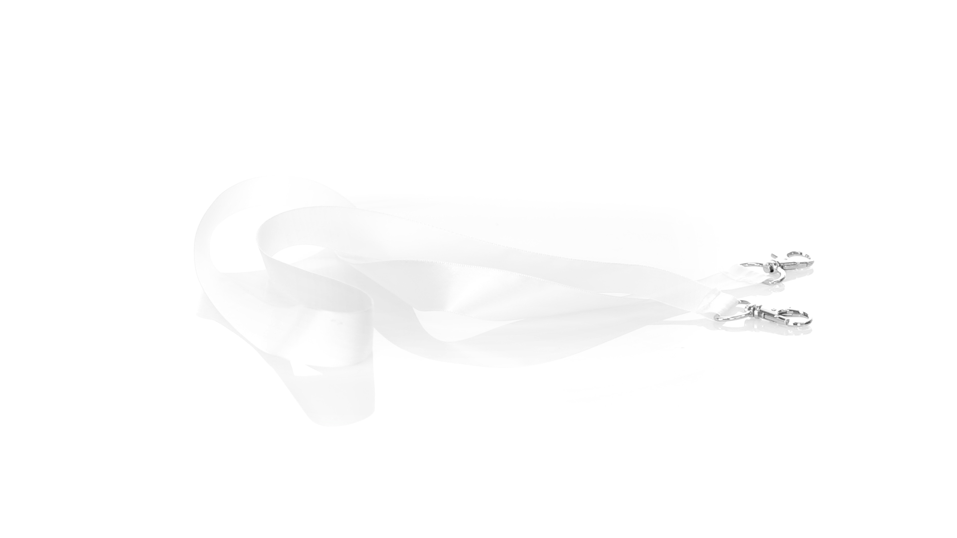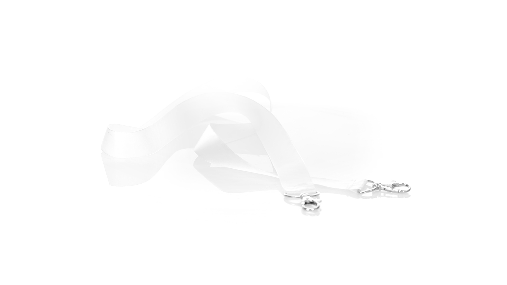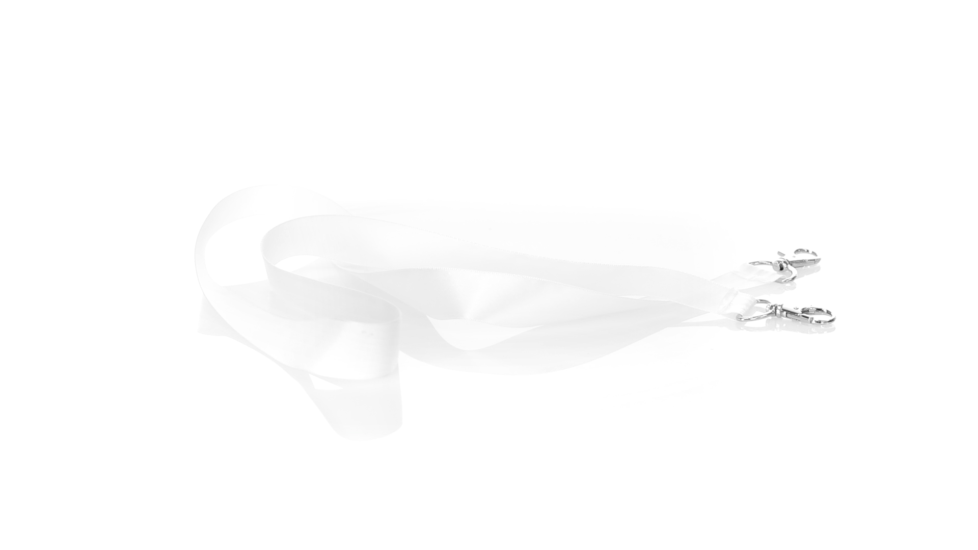 Maskenhalter mit Umhängeband aus weichem, weissem Polyester. Geeignet für alle Arten von Masken, mit zwei Sicherheitskarabinern an den Anschlüssen zur Befestigung der elastischen Bänder der Maske, die einen bequemen und unbequemen Transport der Maske ermöglichen. Gleichzeitig ermöglicht sie einen schnellen und einfachen Zugang zur Maske, wenn sie gebraucht wird, um sie zu benutzen. Farbband mit spezieller Breite für bequemen Sitz, einfach zu bedrucken.
