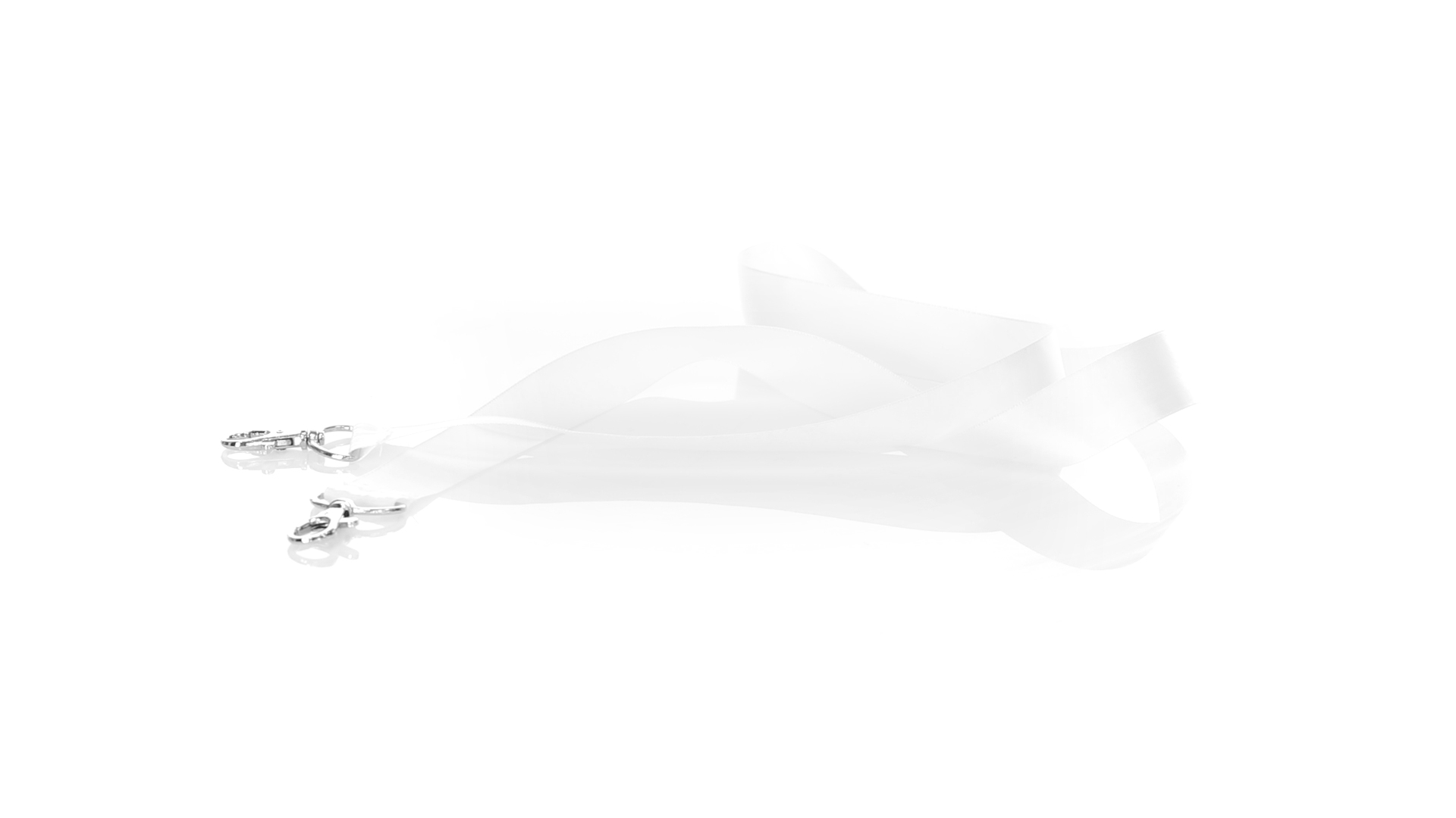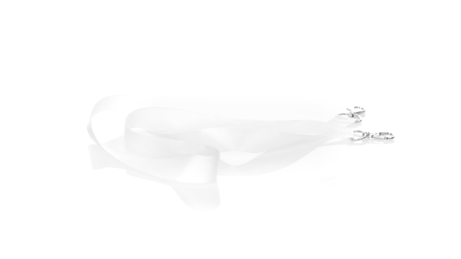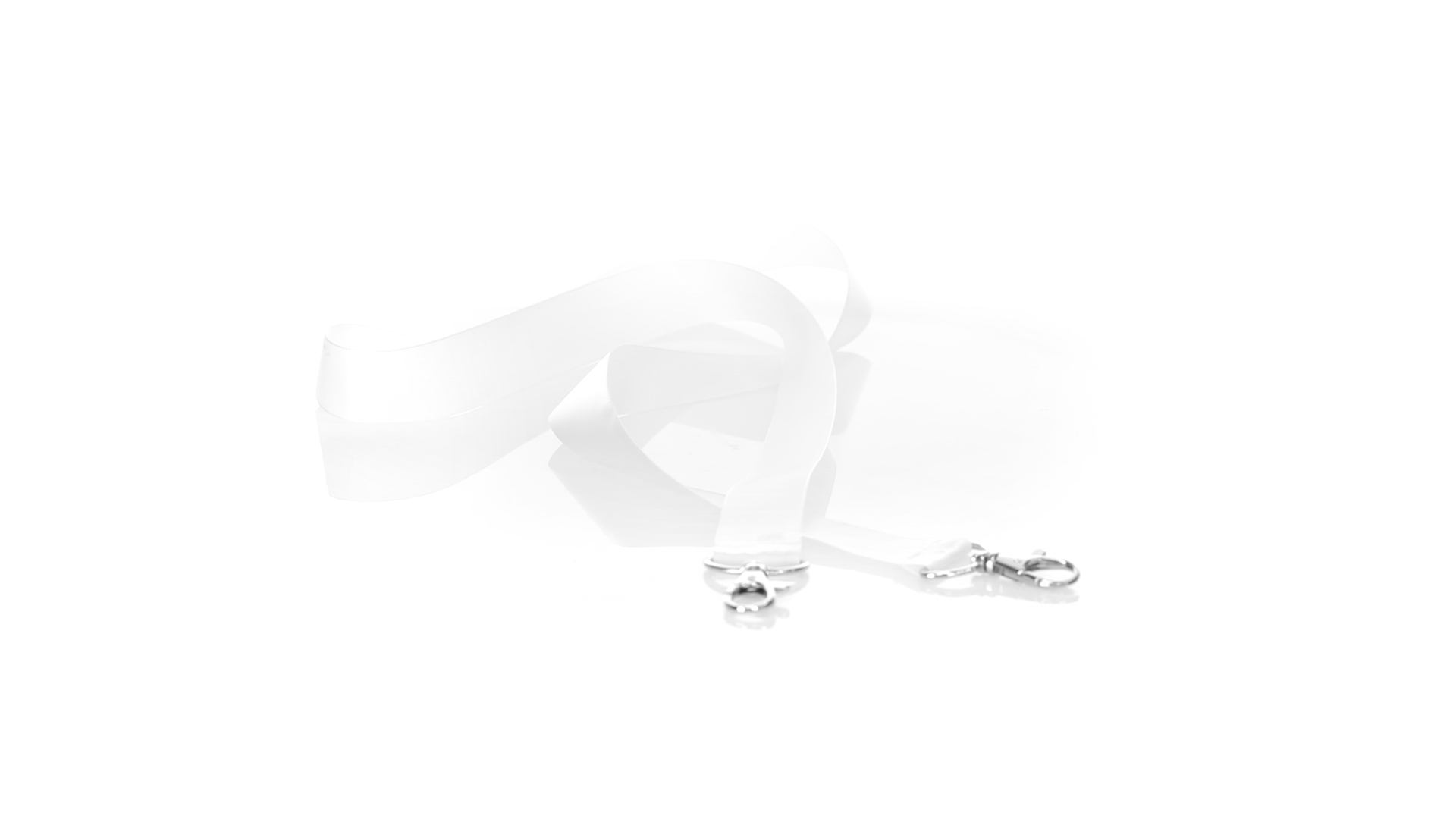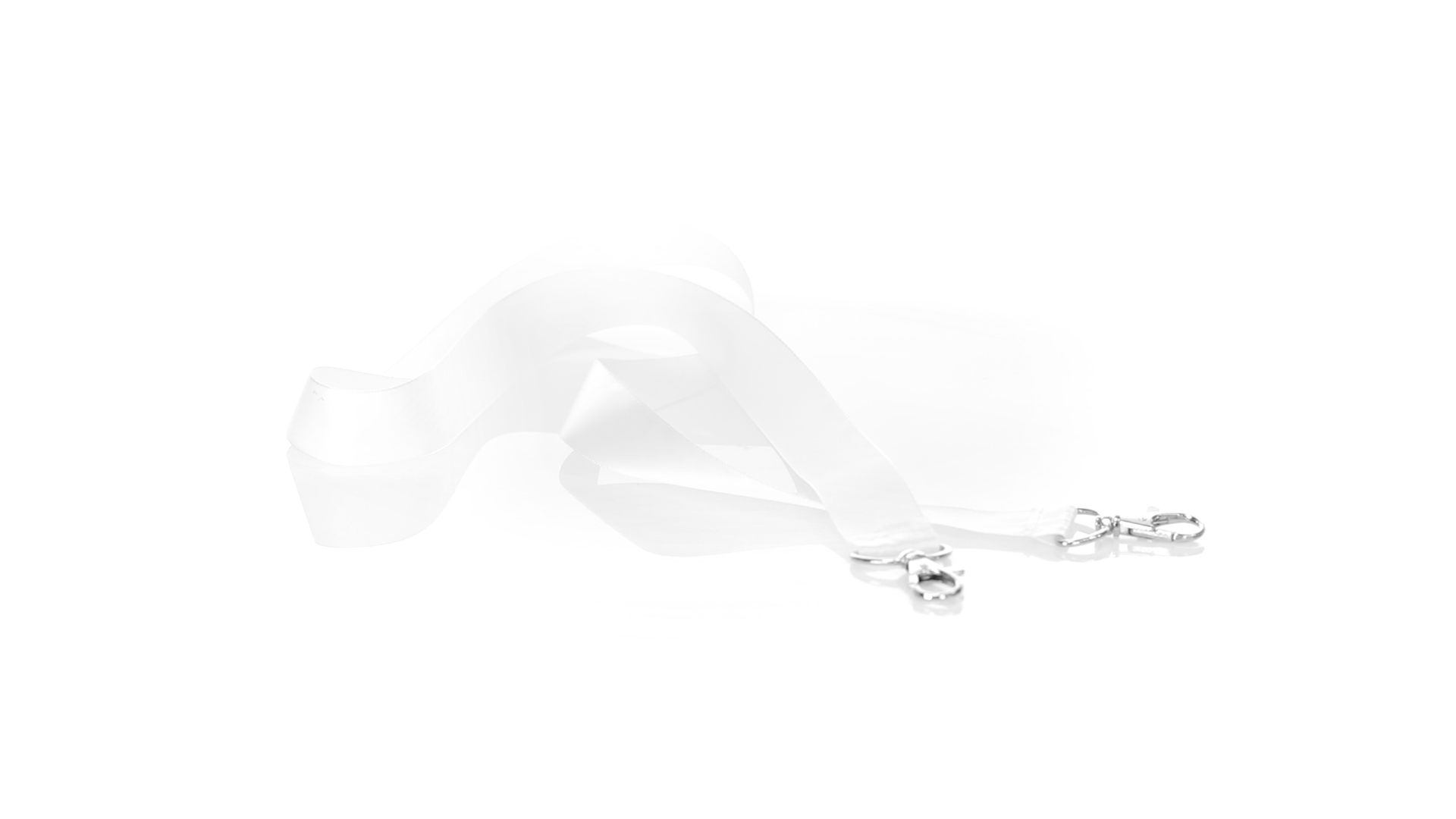 Maskenhalter mit Umhängeband aus weichem, weissem Polyester. Geeignet für alle Arten von Masken, mit zwei Sicherheitskarabinern an den Anschlüssen zur Befestigung der elastischen Bänder der Maske, die einen bequemen und unbequemen Transport der Maske ermöglichen. Gleichzeitig ermöglicht sie einen schnellen und einfachen Zugang zur Maske, wenn sie gebraucht wird, um sie zu benutzen. Farbband mit spezieller Breite für bequemen Sitz, einfach zu bedrucken.