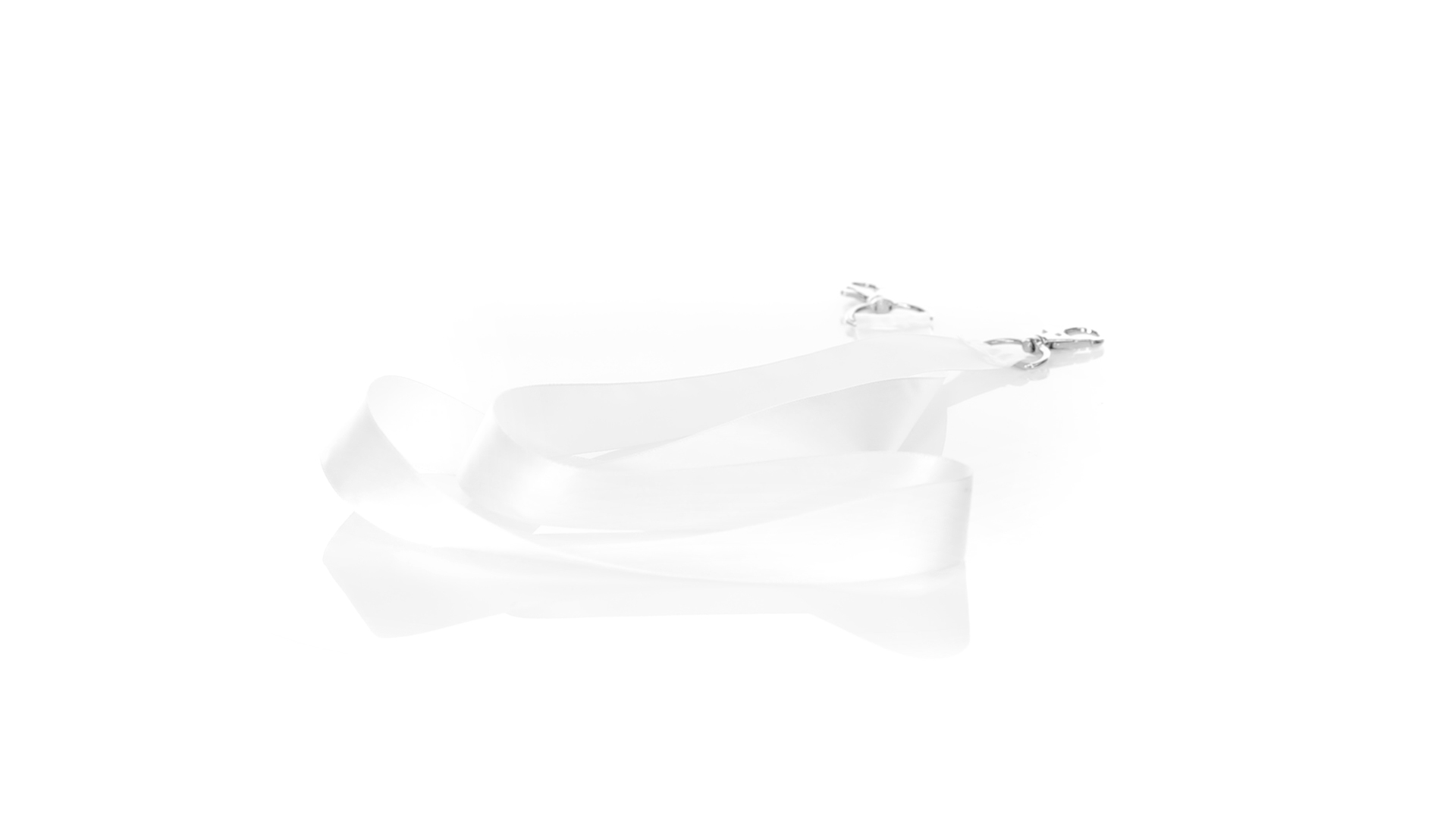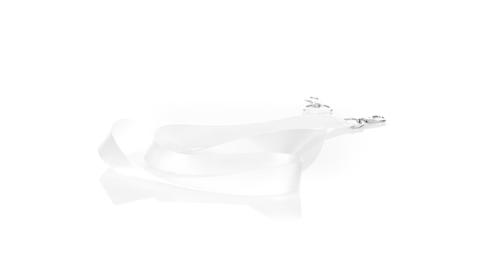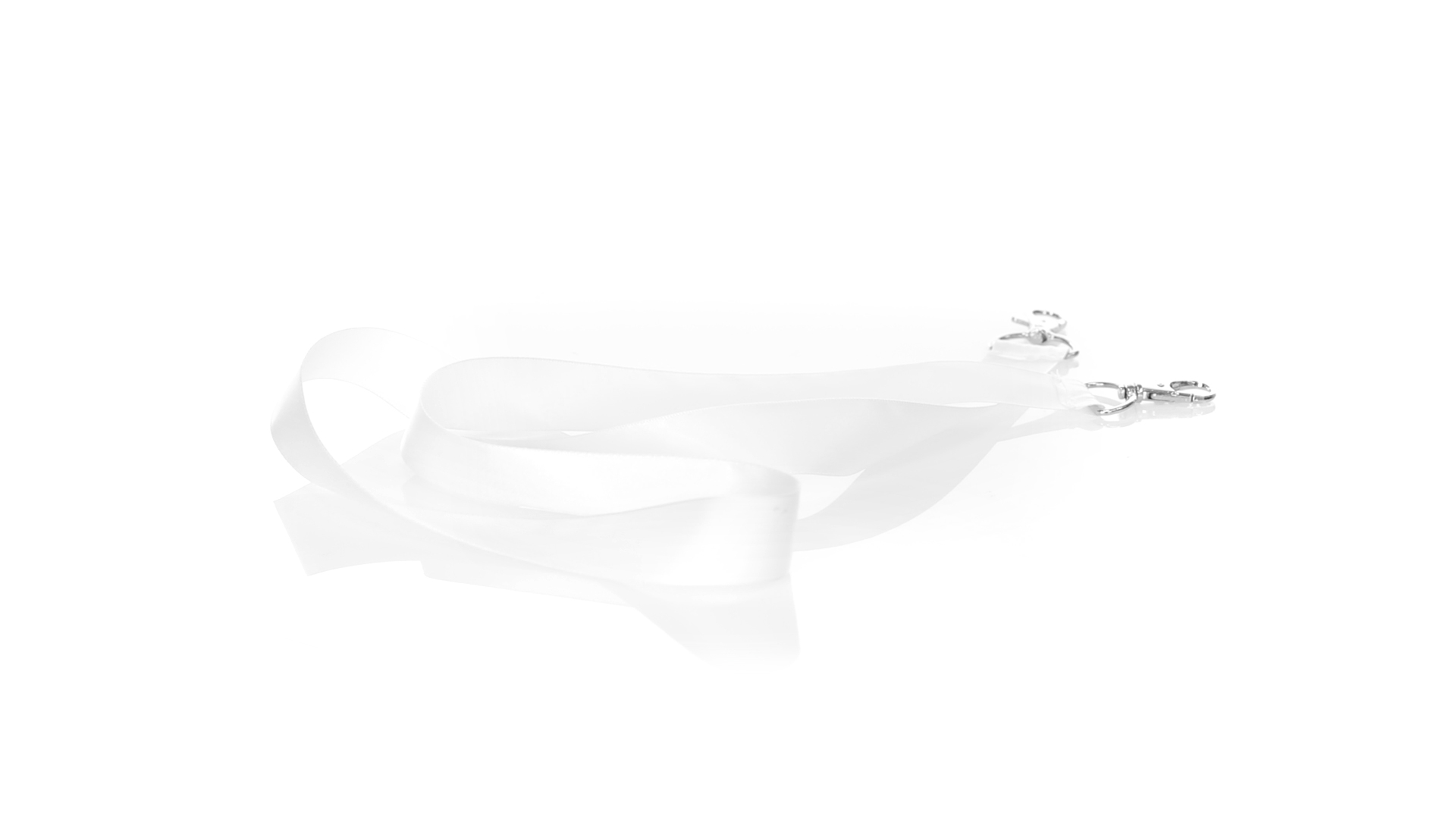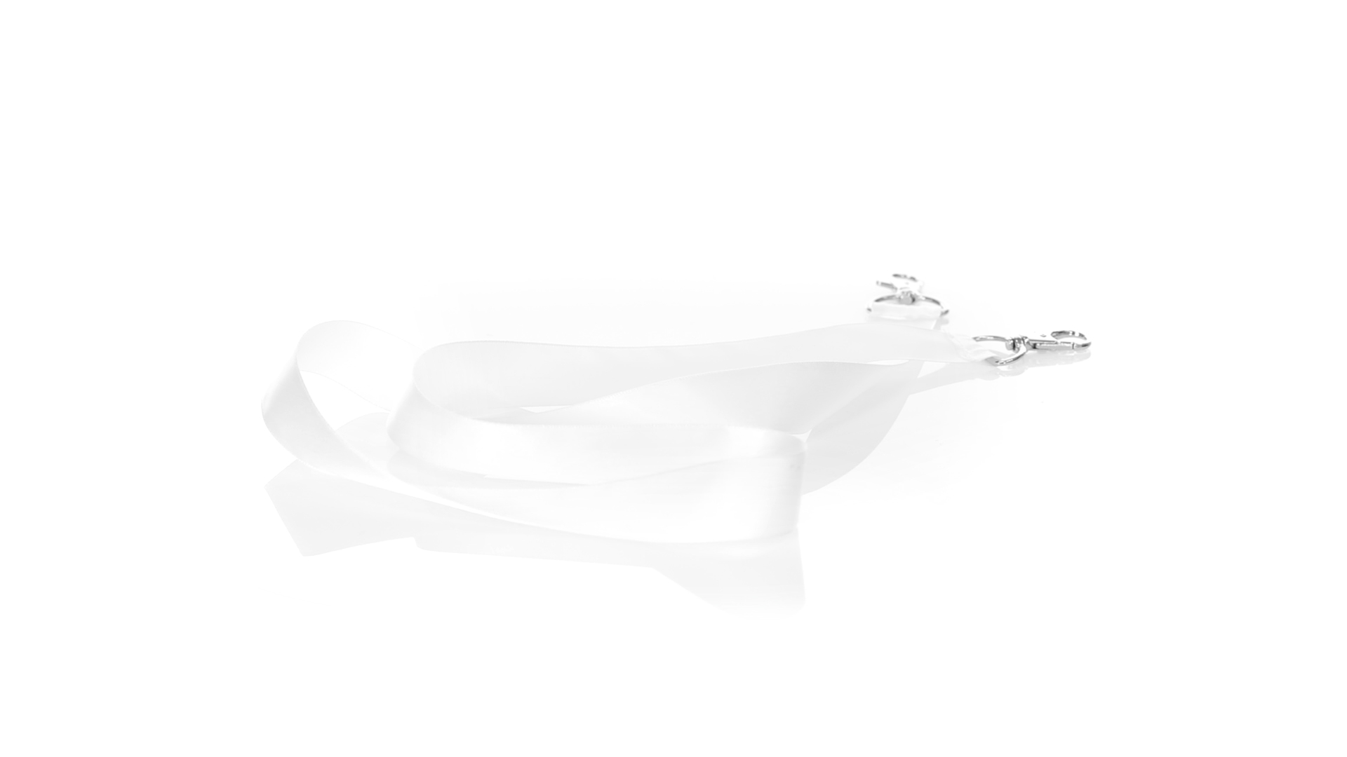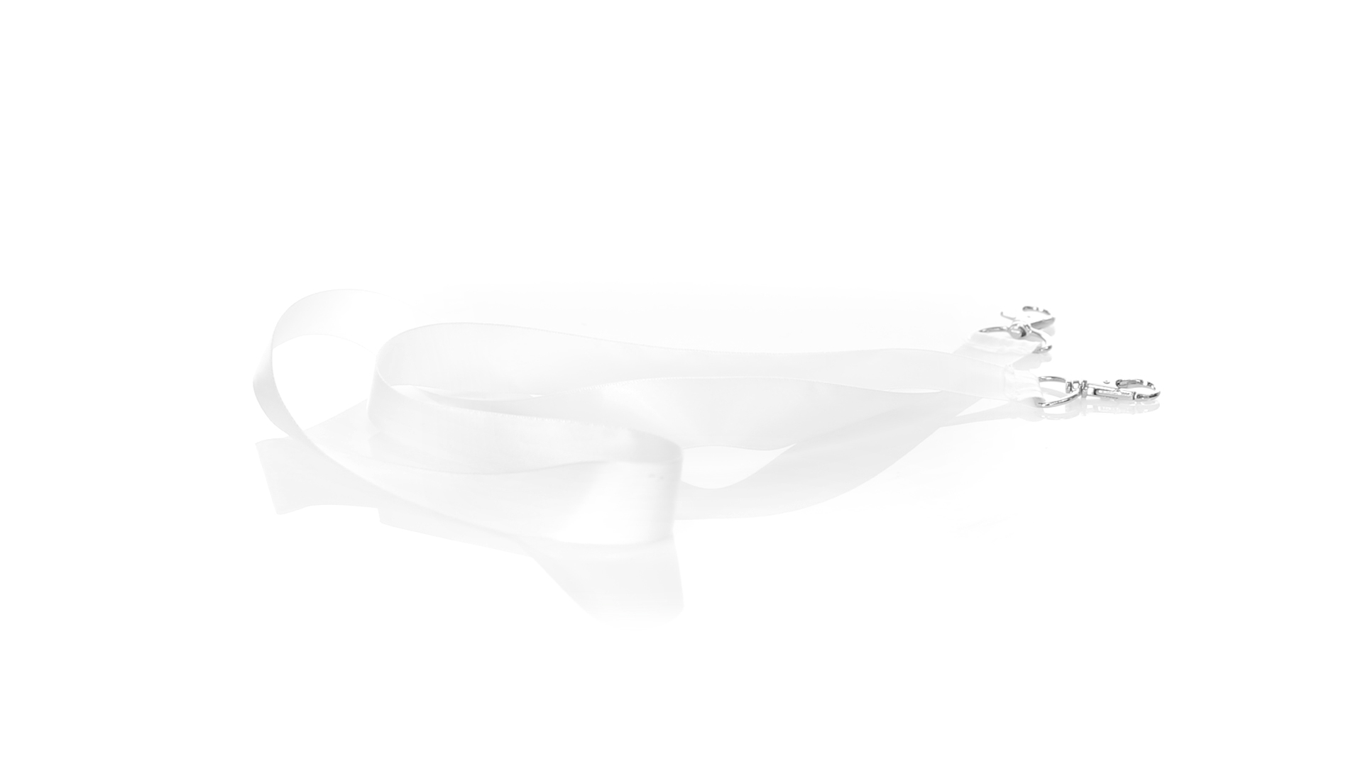 Maskenhalter mit Umhängeband aus weichem, weissem Polyester. Geeignet für alle Arten von Masken, mit zwei Sicherheitskarabinern an den Anschlüssen zur Befestigung der elastischen Bänder der Maske, die einen bequemen und unbequemen Transport der Maske ermöglichen. Gleichzeitig ermöglicht sie einen schnellen und einfachen Zugang zur Maske, wenn sie gebraucht wird, um sie zu benutzen. Farbband mit spezieller Breite für bequemen Sitz, einfach zu bedrucken.