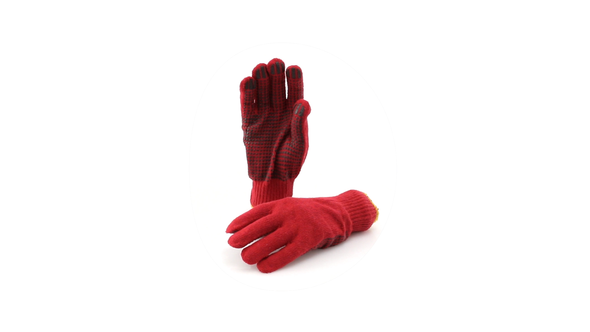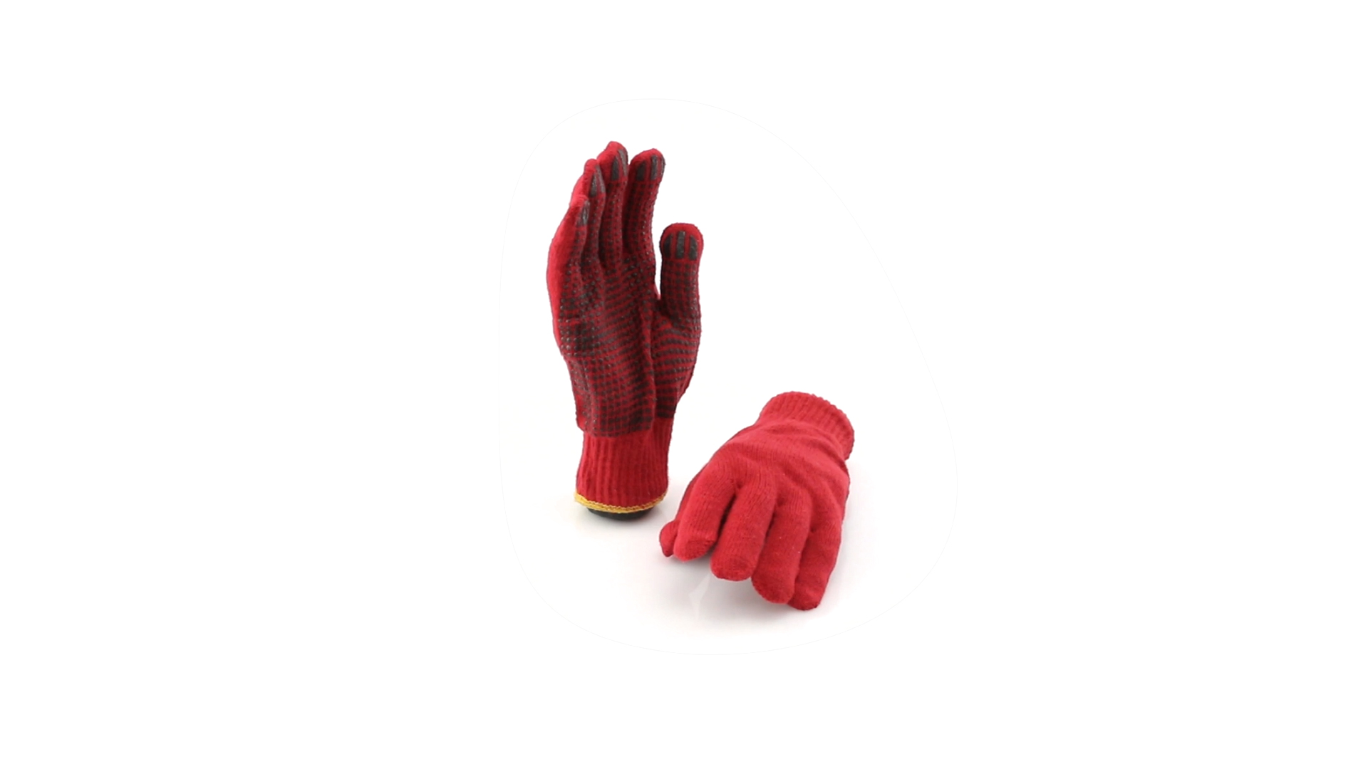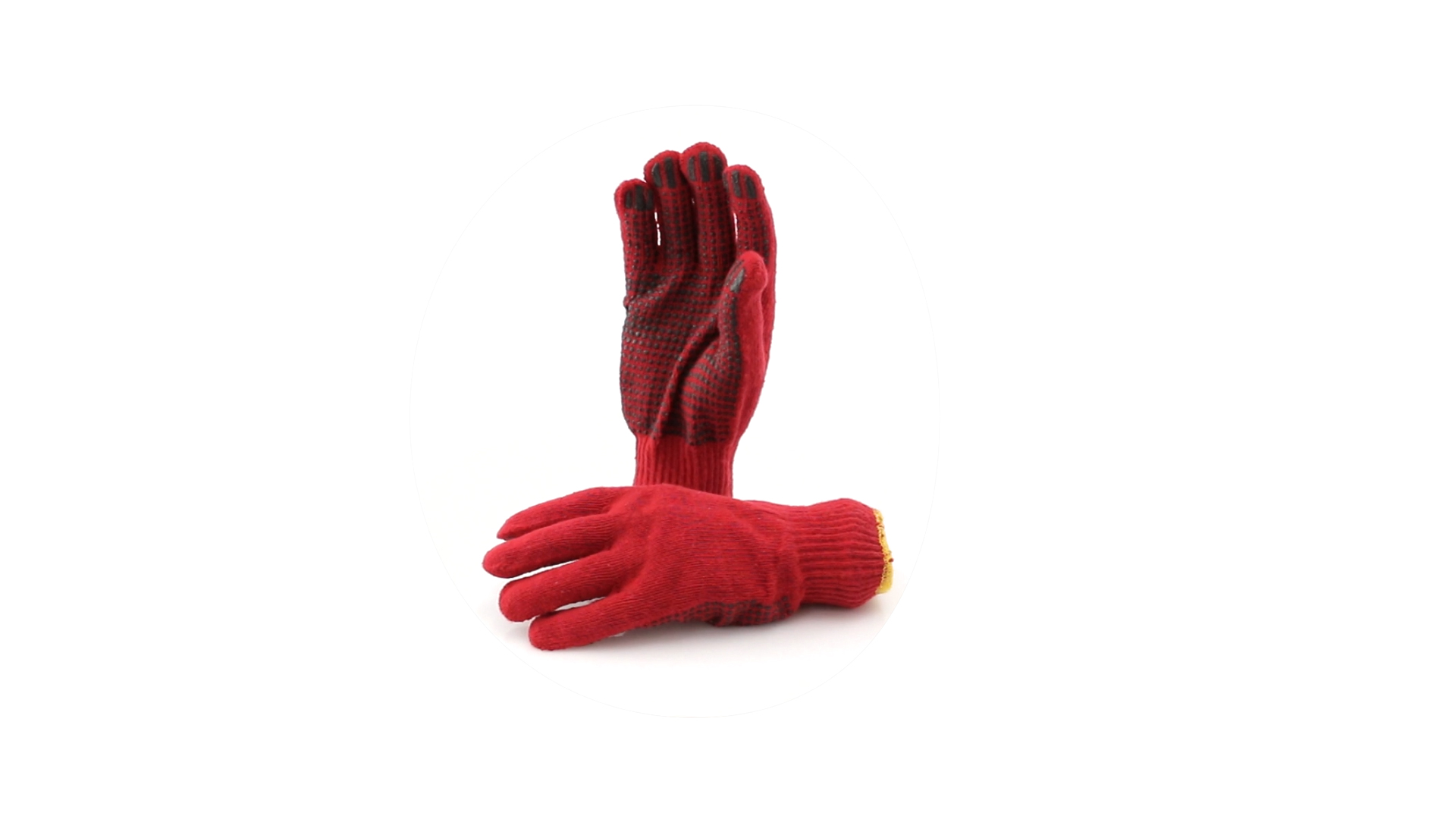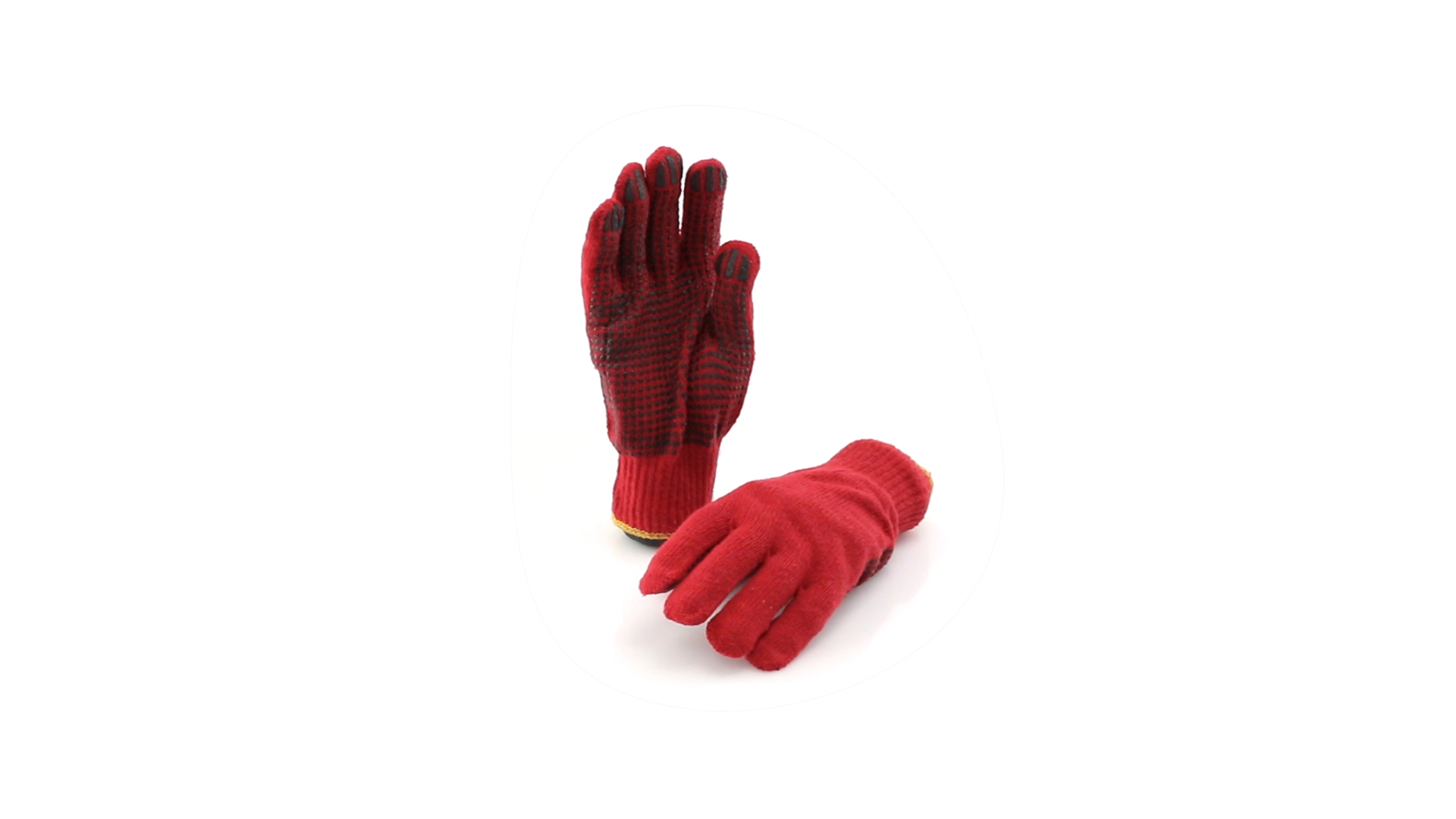 Arbeitshandschuhe aus weichem, widerstandsfähigem Material aus einer Baumwoll/Polyester-Kombination. Handfläche verstärkt mit rutschfestem Silikon sowie Gummiband an den Handgelenken für einen guten Sitz.