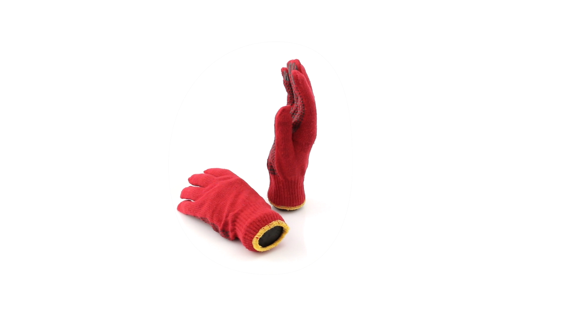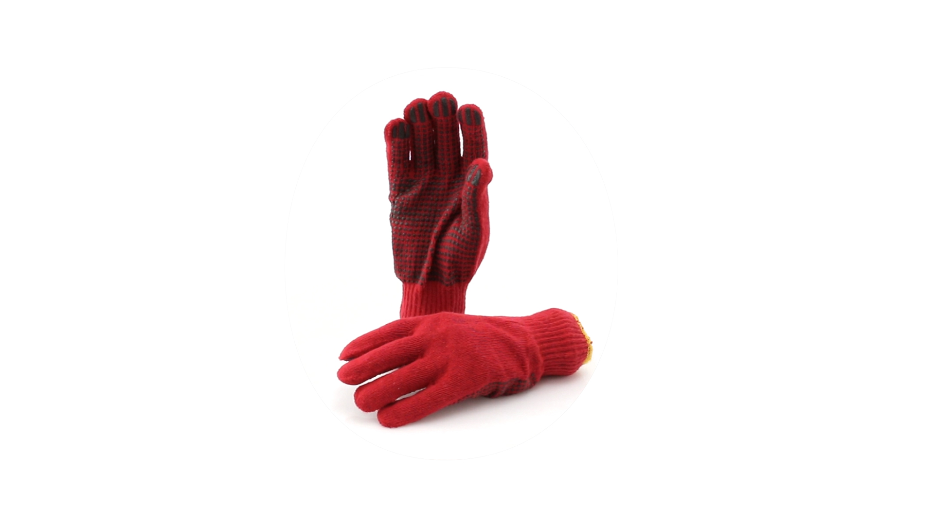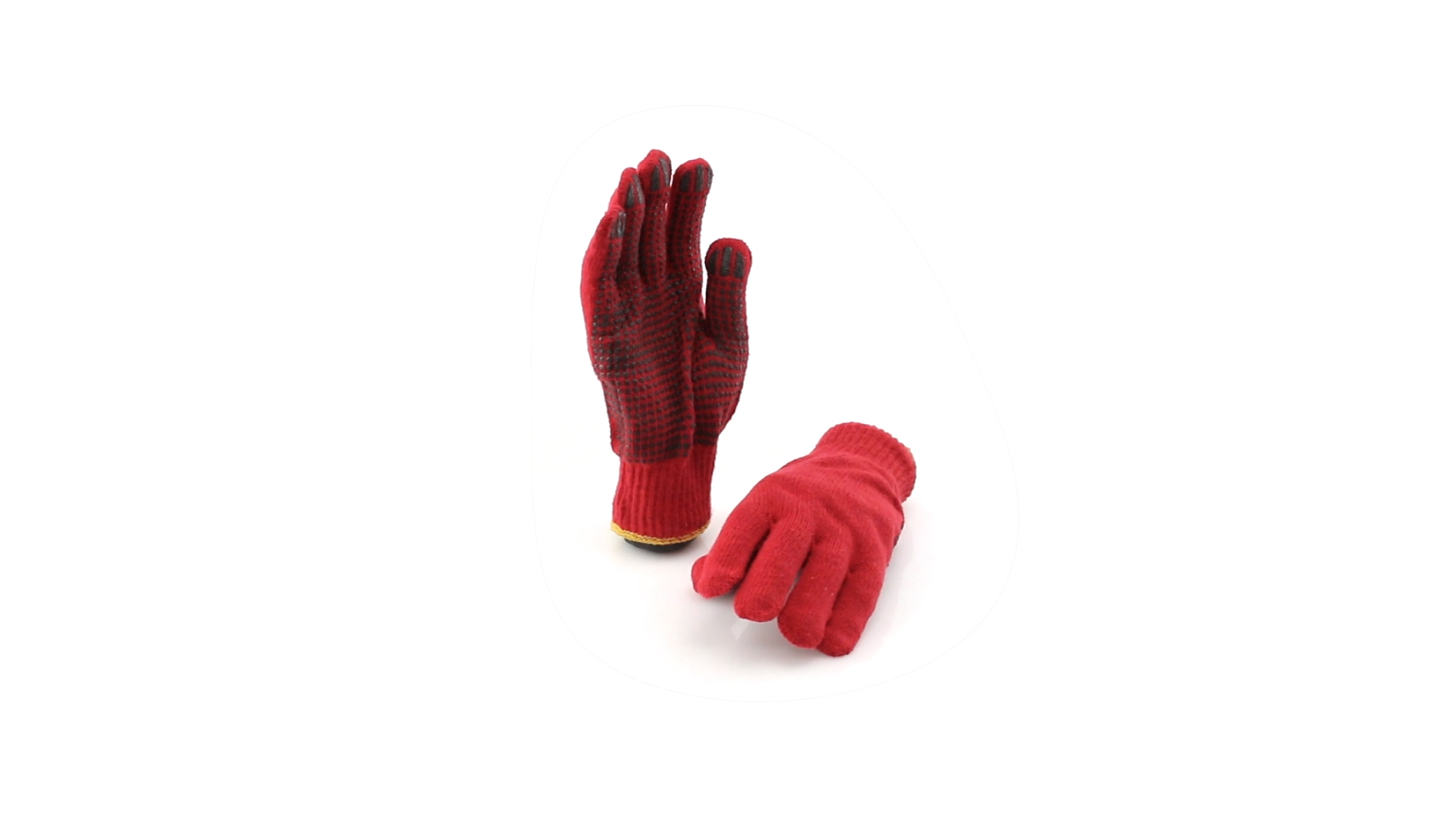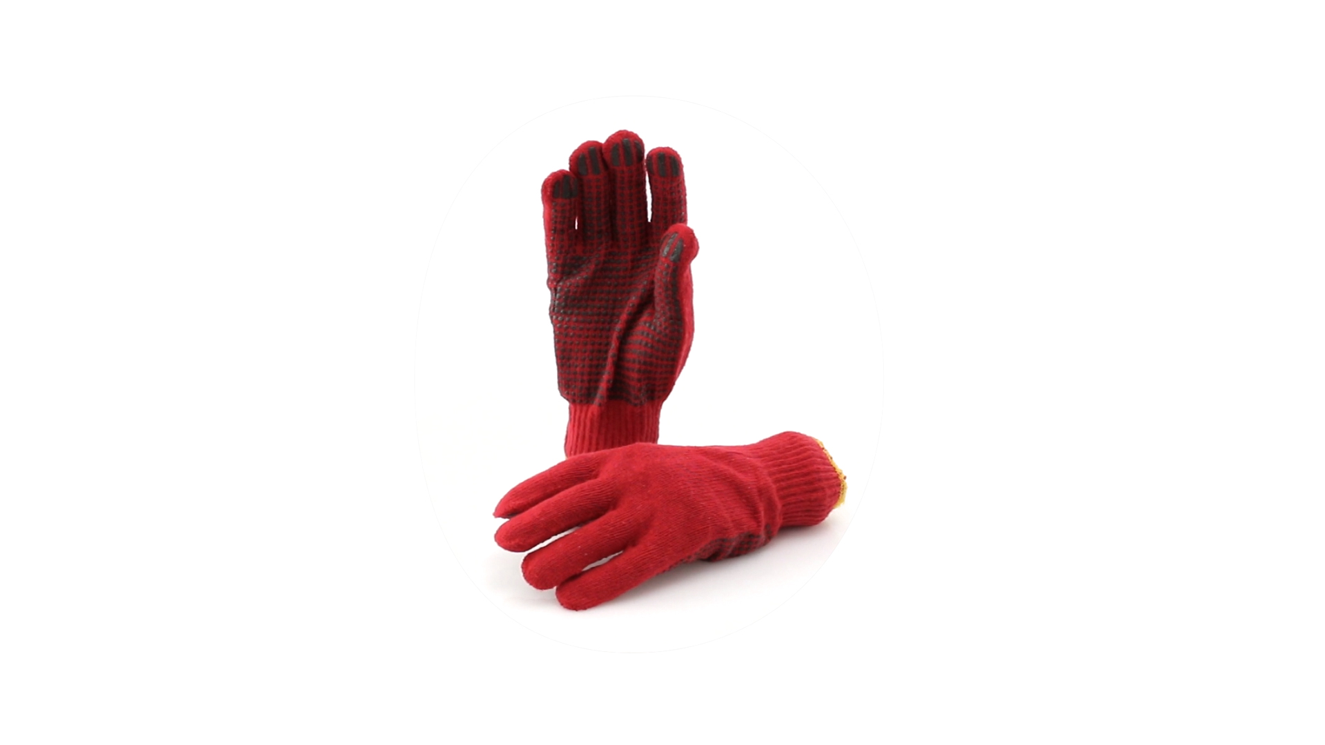 Arbeitshandschuhe aus weichem, widerstandsfähigem Material aus einer Baumwoll/Polyester-Kombination. Handfläche verstärkt mit rutschfestem Silikon sowie Gummiband an den Handgelenken für einen guten Sitz.